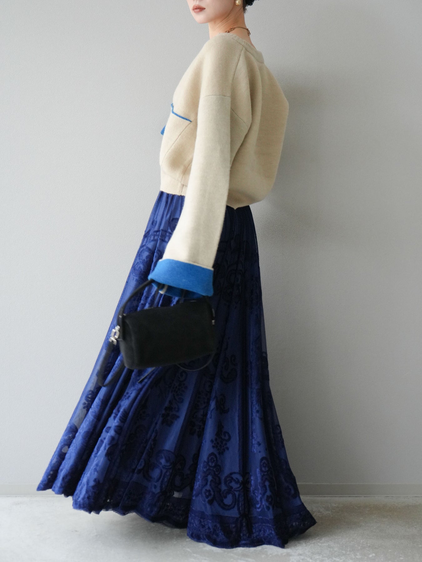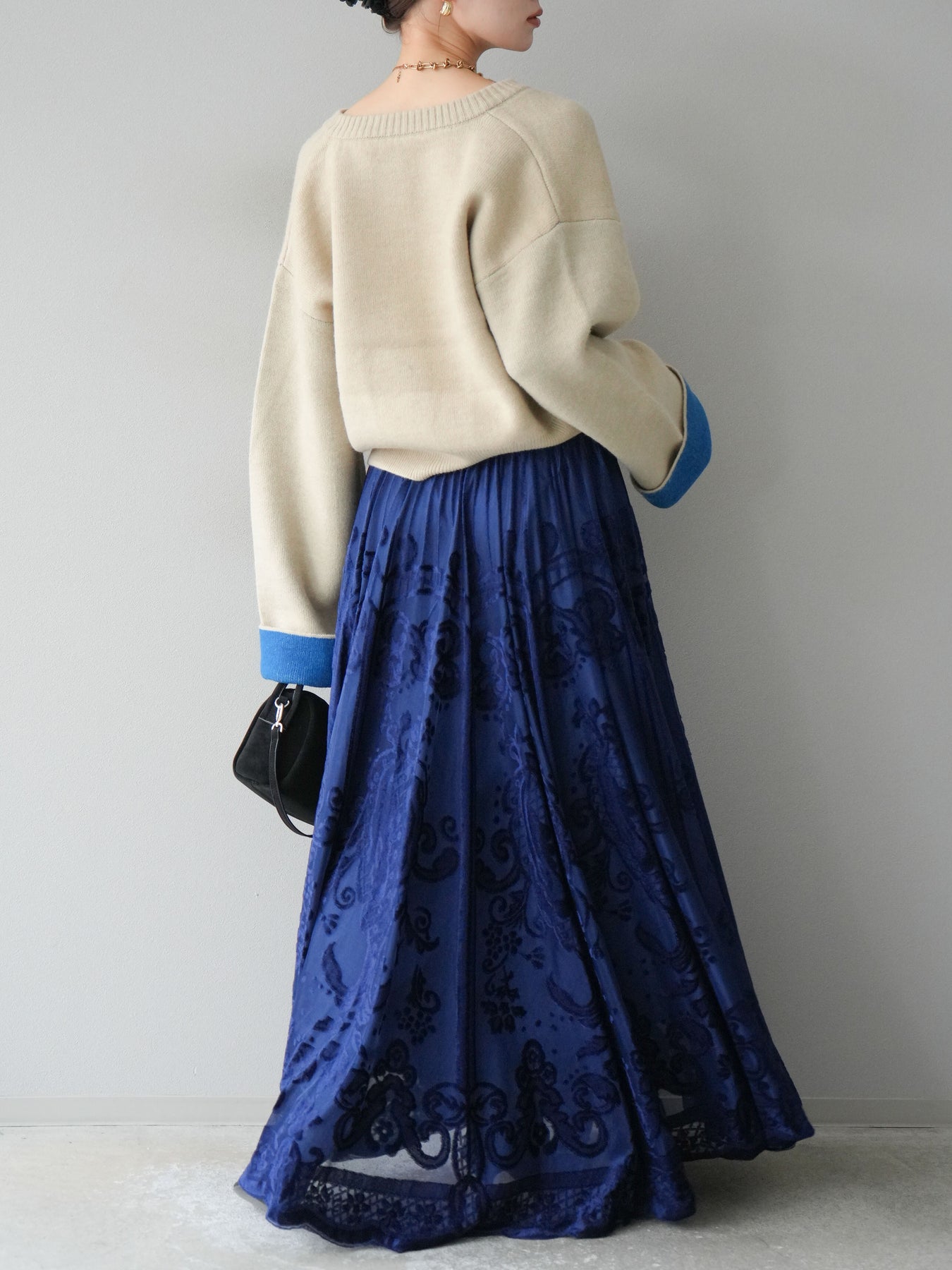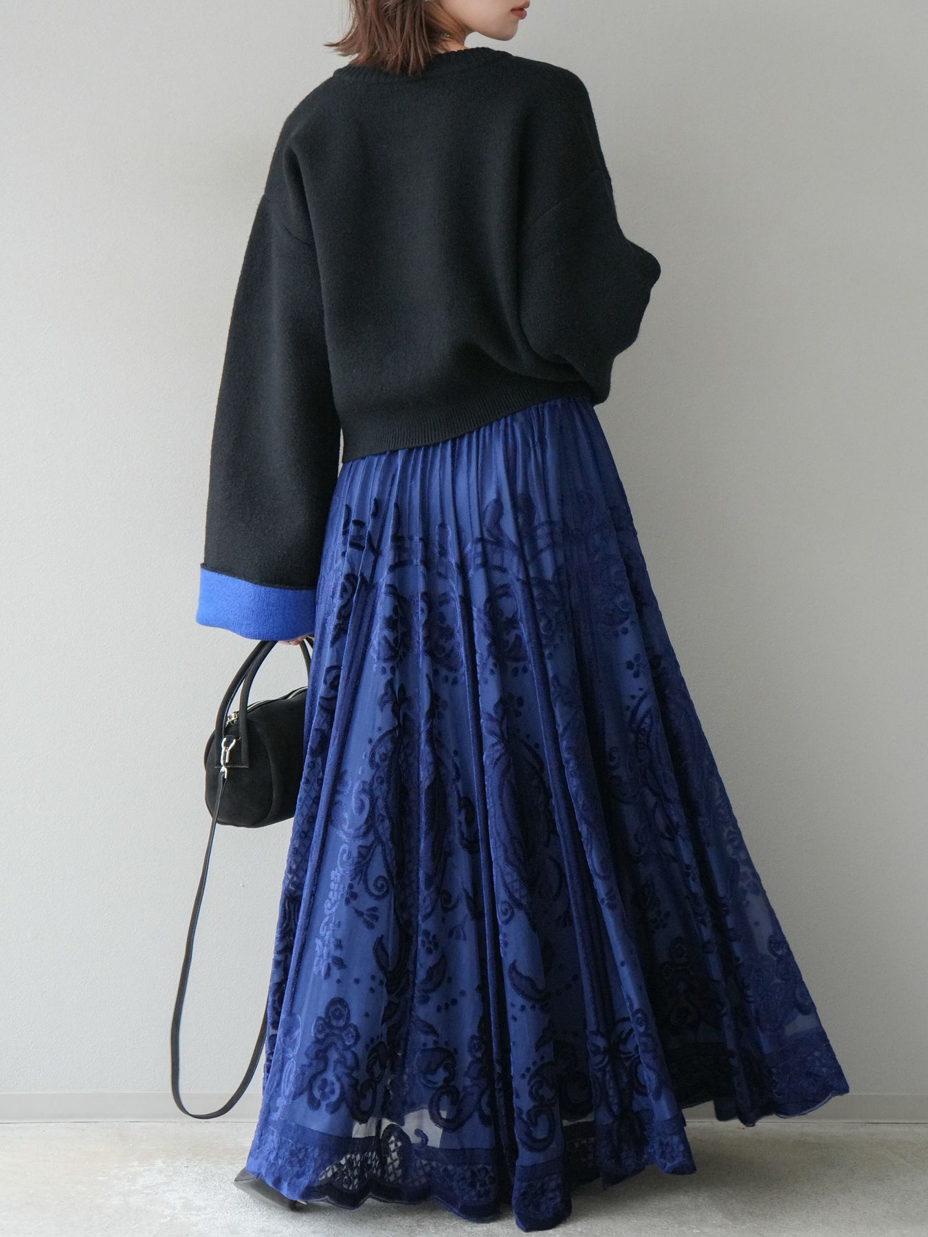 ◆ [予約]アンティーク柄フロッキーマキシスカート