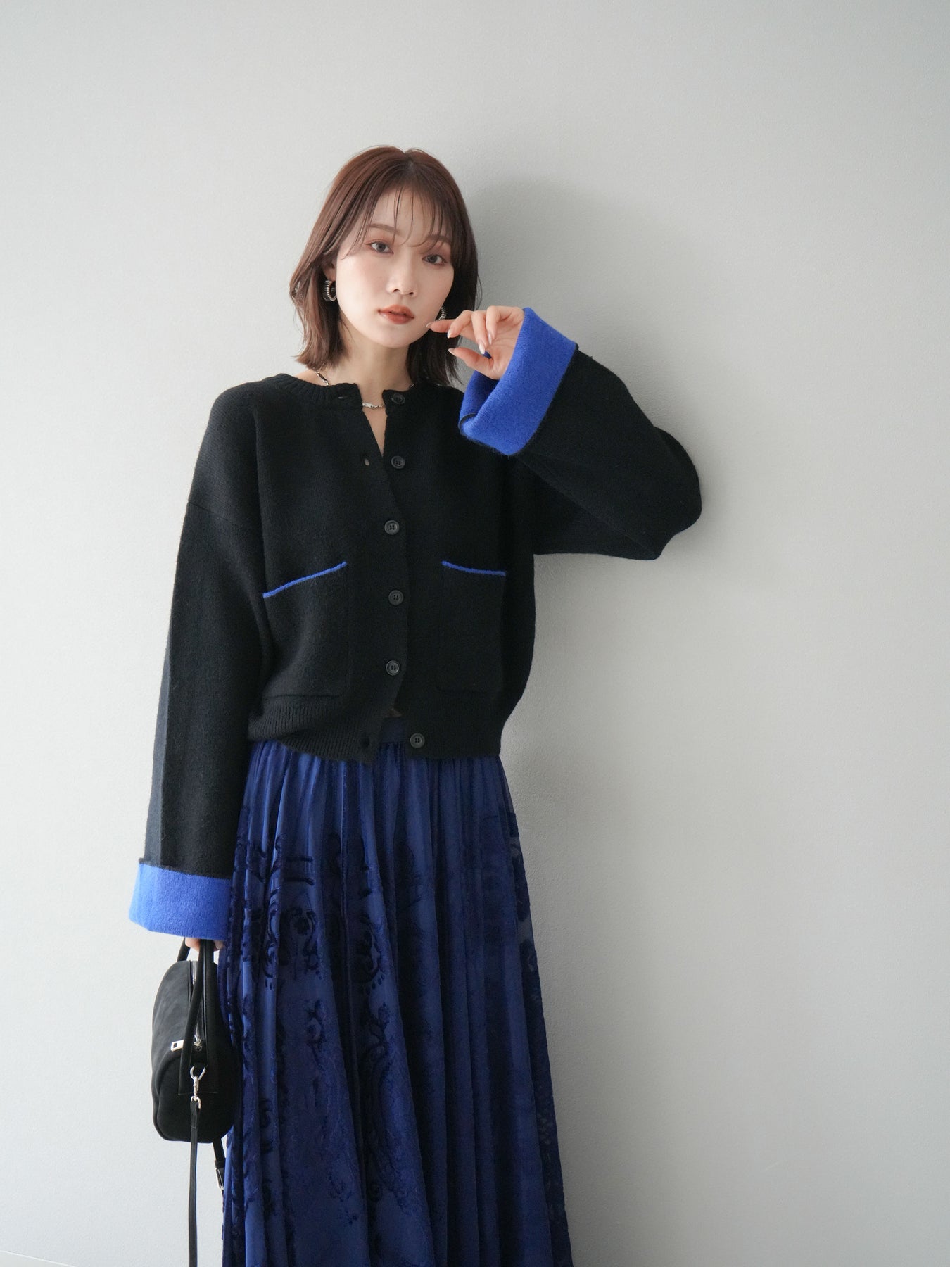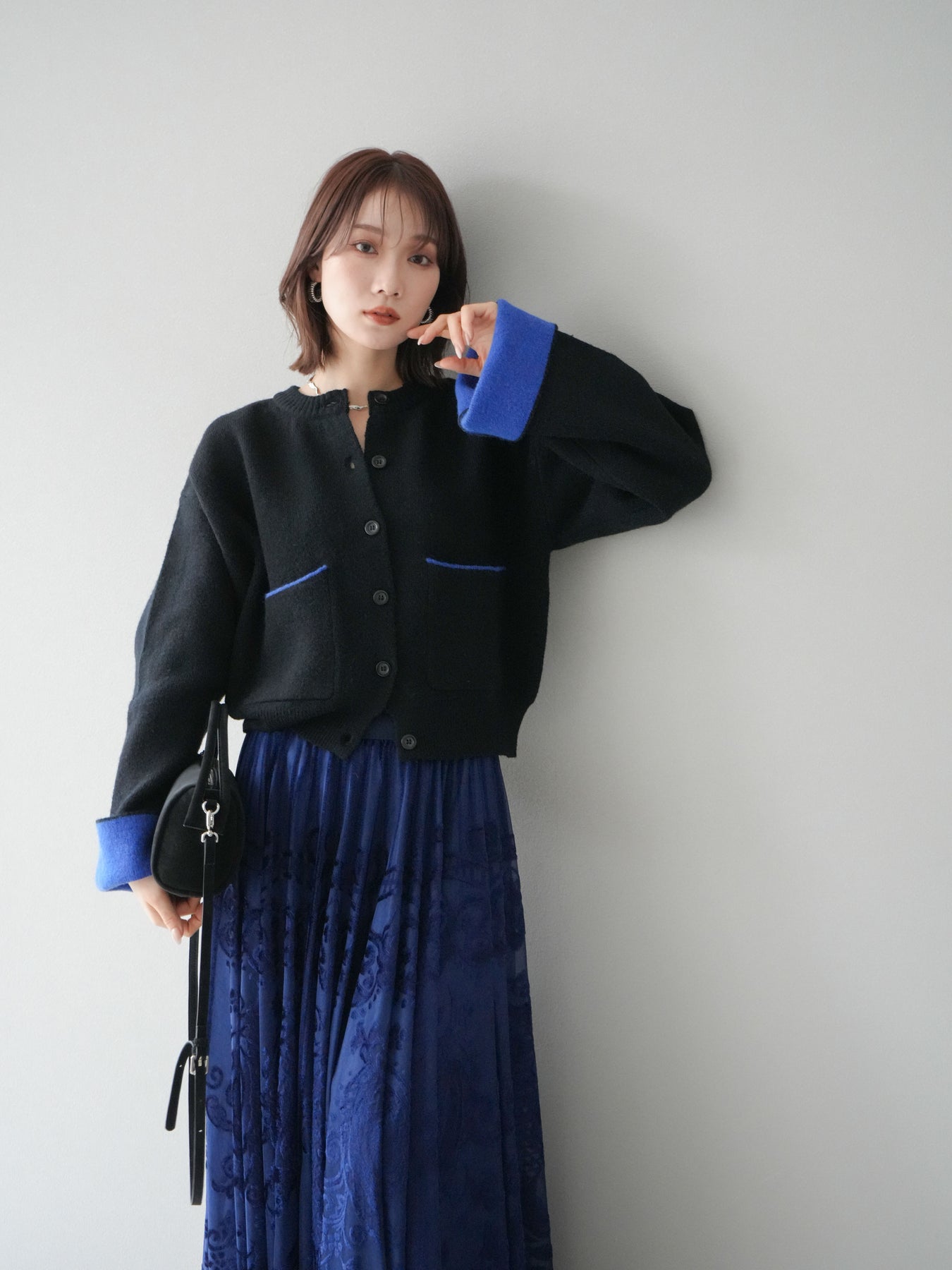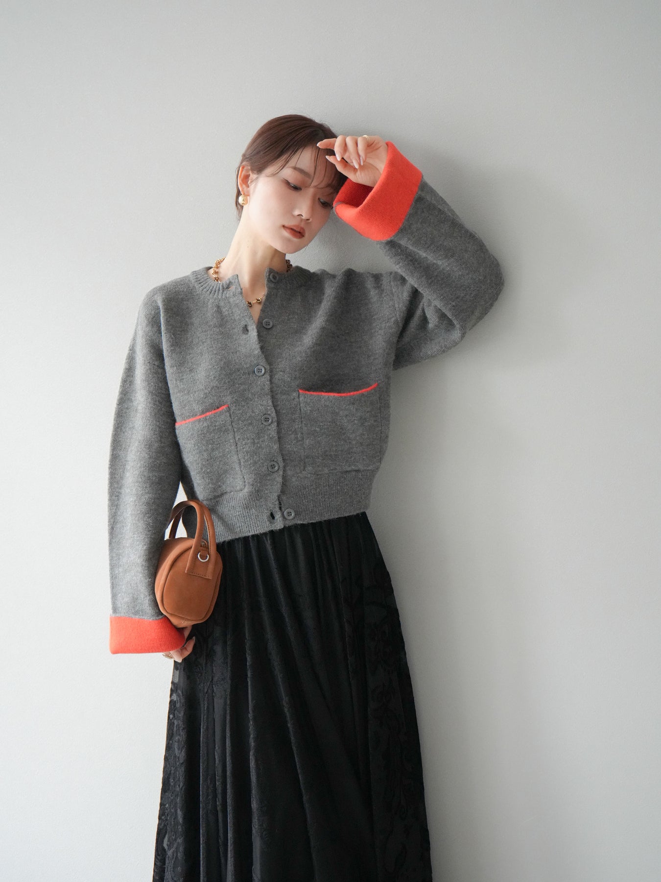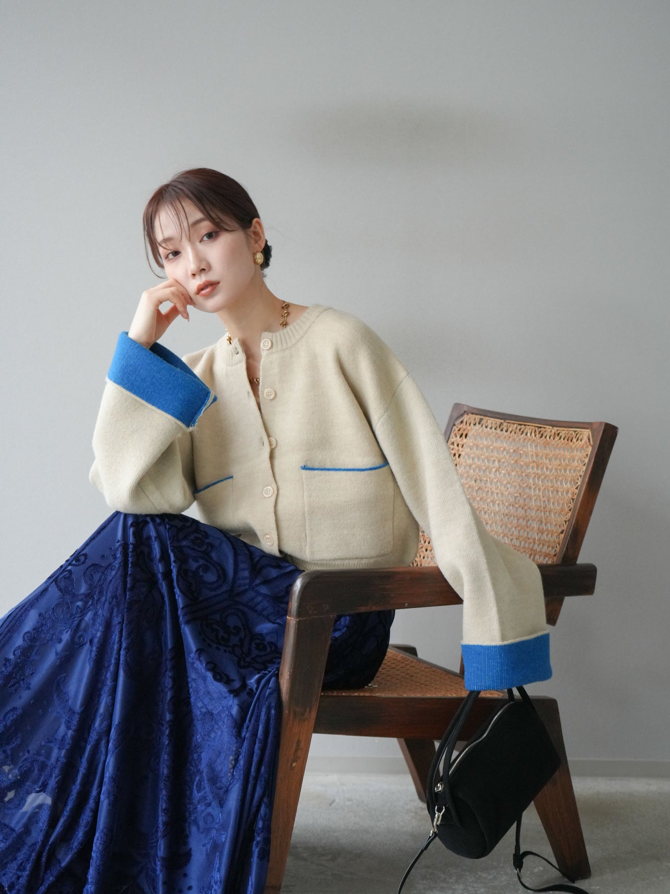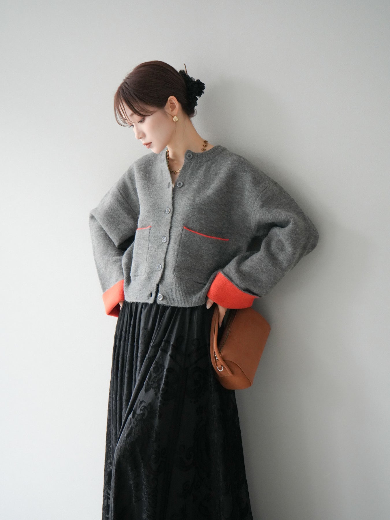 配色のアクセントが目を惹くバイカラーデザインのオーバーニットカーディガン。袖口やポケット口に効かせたカラーが遊び心をプラスし、シンプルなスタイリングにも映える一枚です。ゆったりとしたシルエットで抜け感がありながら、厚みのあるニット素材があたたかく快適な着心地を実現。羽織るだけでシーズンムードを高めてくれる、主役級のカーディガンです。 ※ボトムス、キャミソール(インナー)以外の商品は一律でインナーは付属していません。