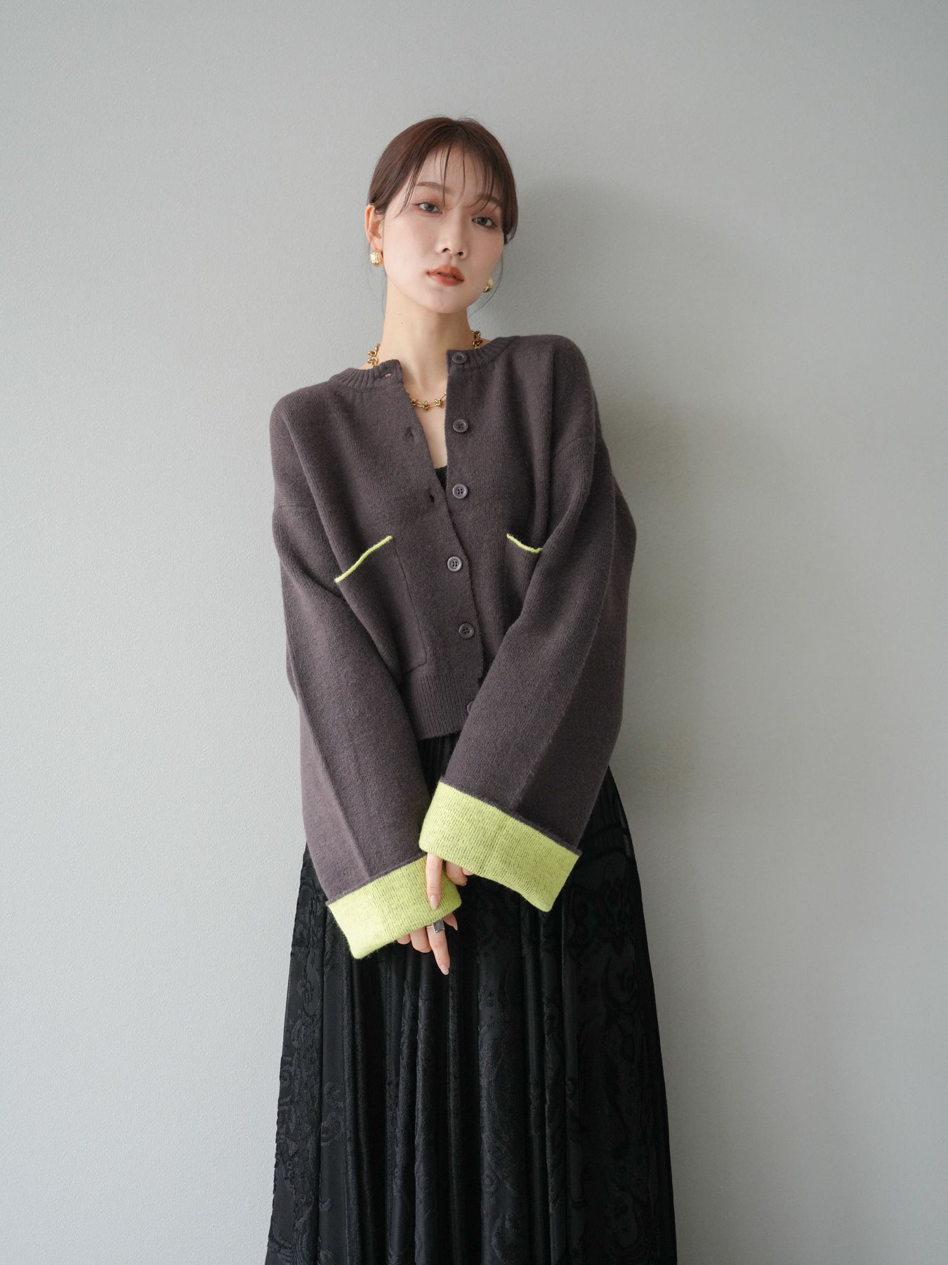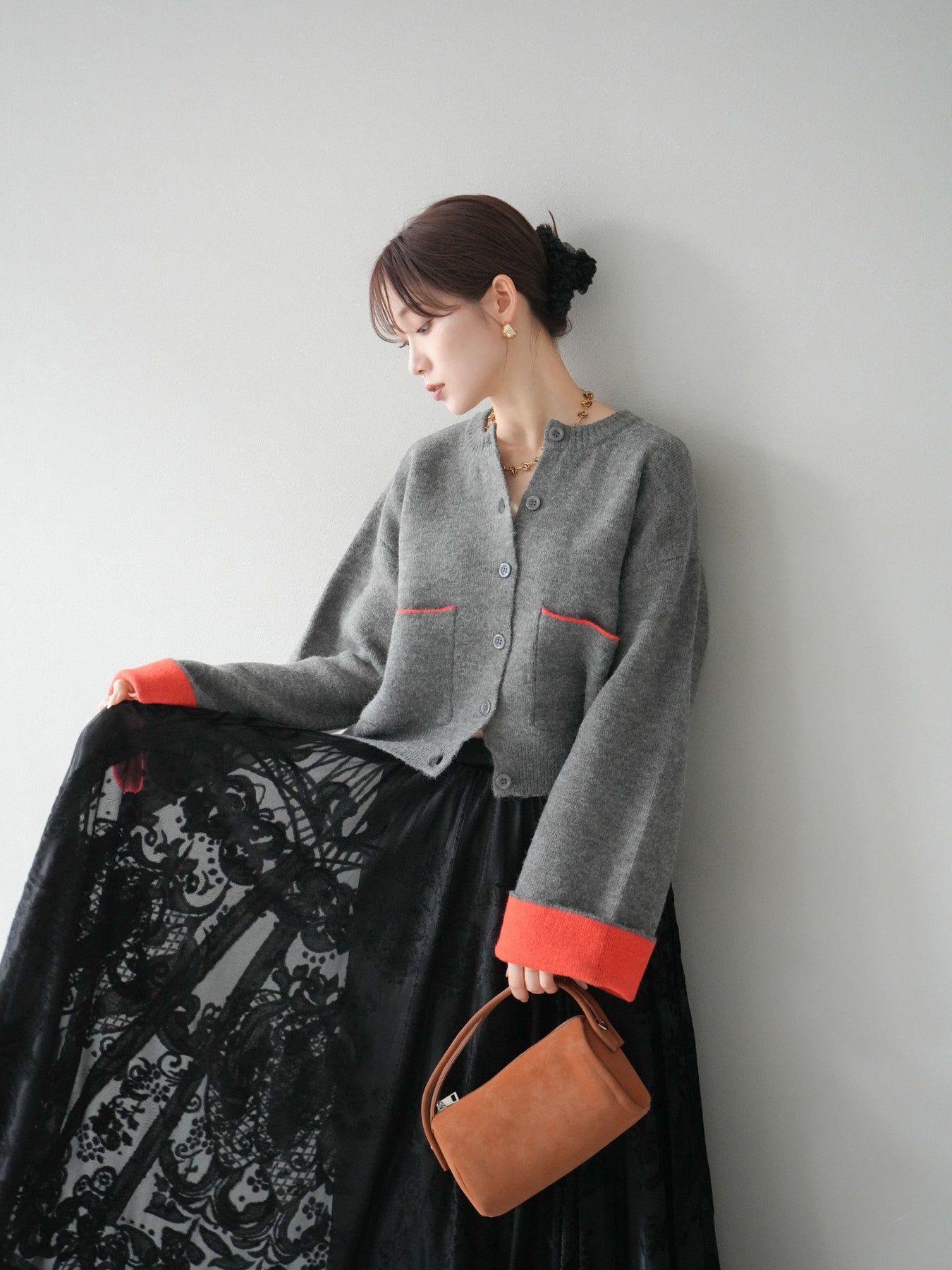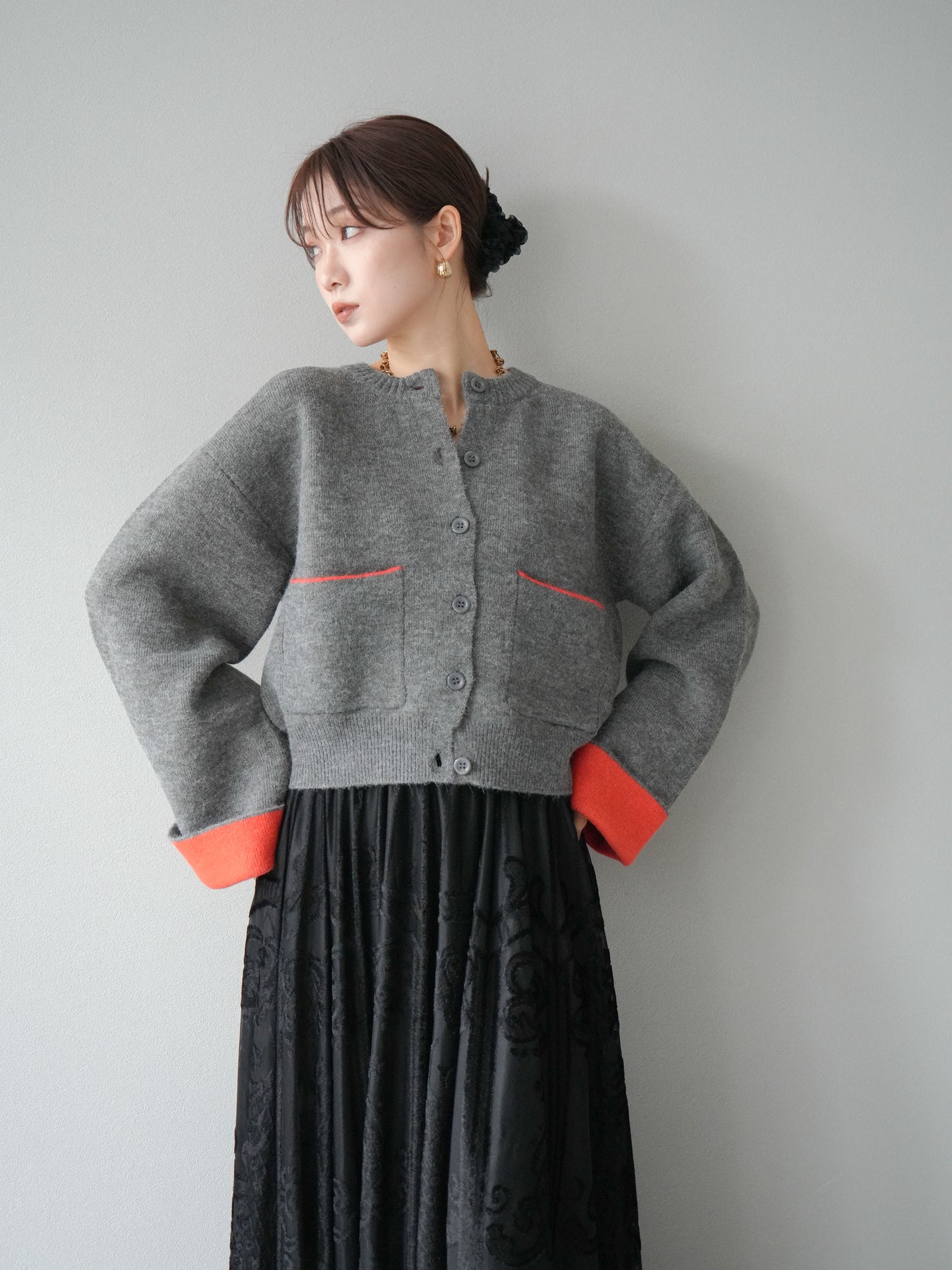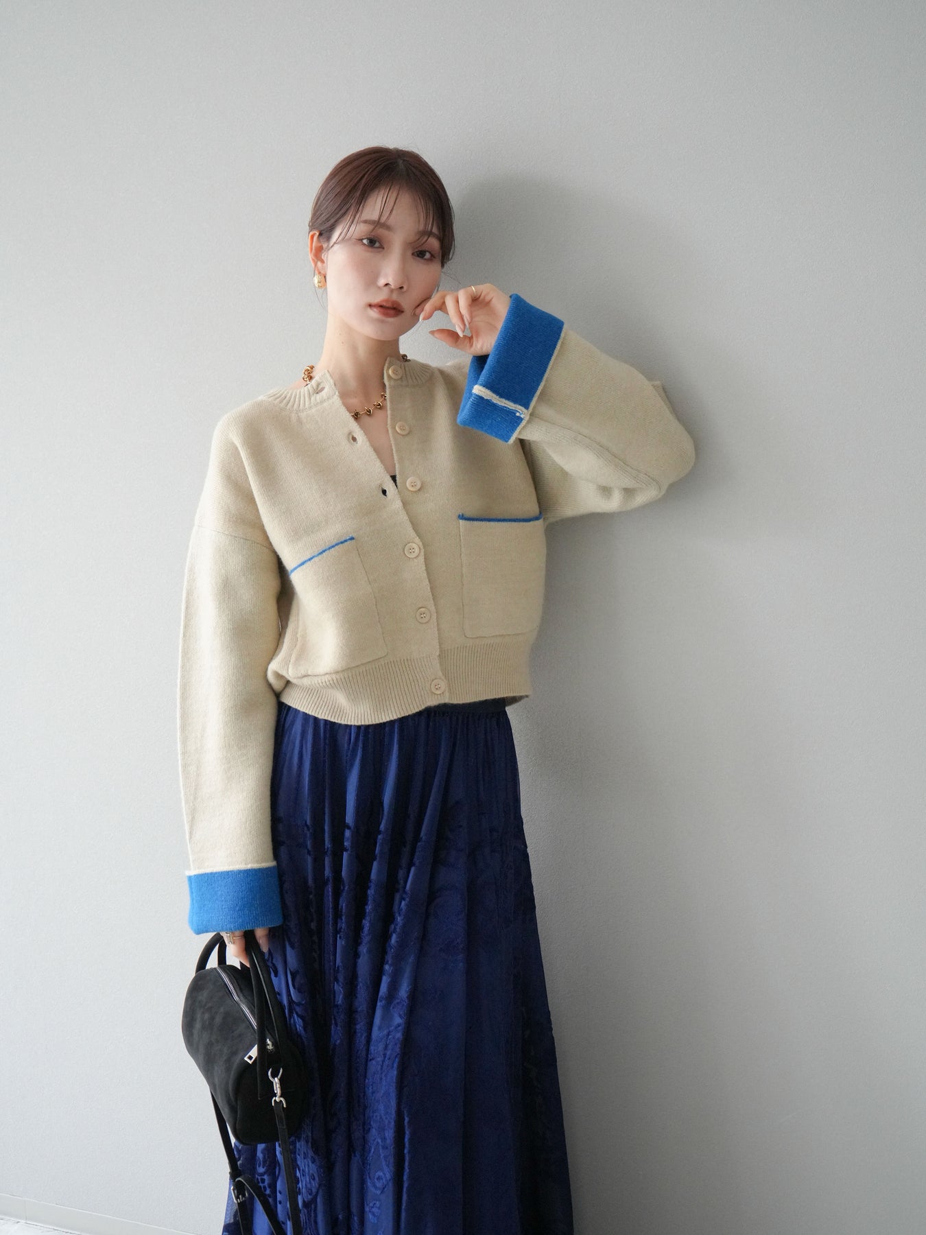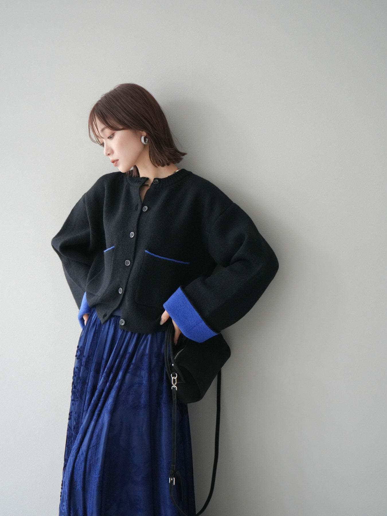 配色のアクセントが目を惹くバイカラーデザインのオーバーニットカーディガン。袖口やポケット口に効かせたカラーが遊び心をプラスし、シンプルなスタイリングにも映える一枚です。ゆったりとしたシルエットで抜け感がありながら、厚みのあるニット素材があたたかく快適な着心地を実現。羽織るだけでシーズンムードを高めてくれる、主役級のカーディガンです。 ※ボトムス、キャミソール(インナー)以外の商品は一律でインナーは付属していません。