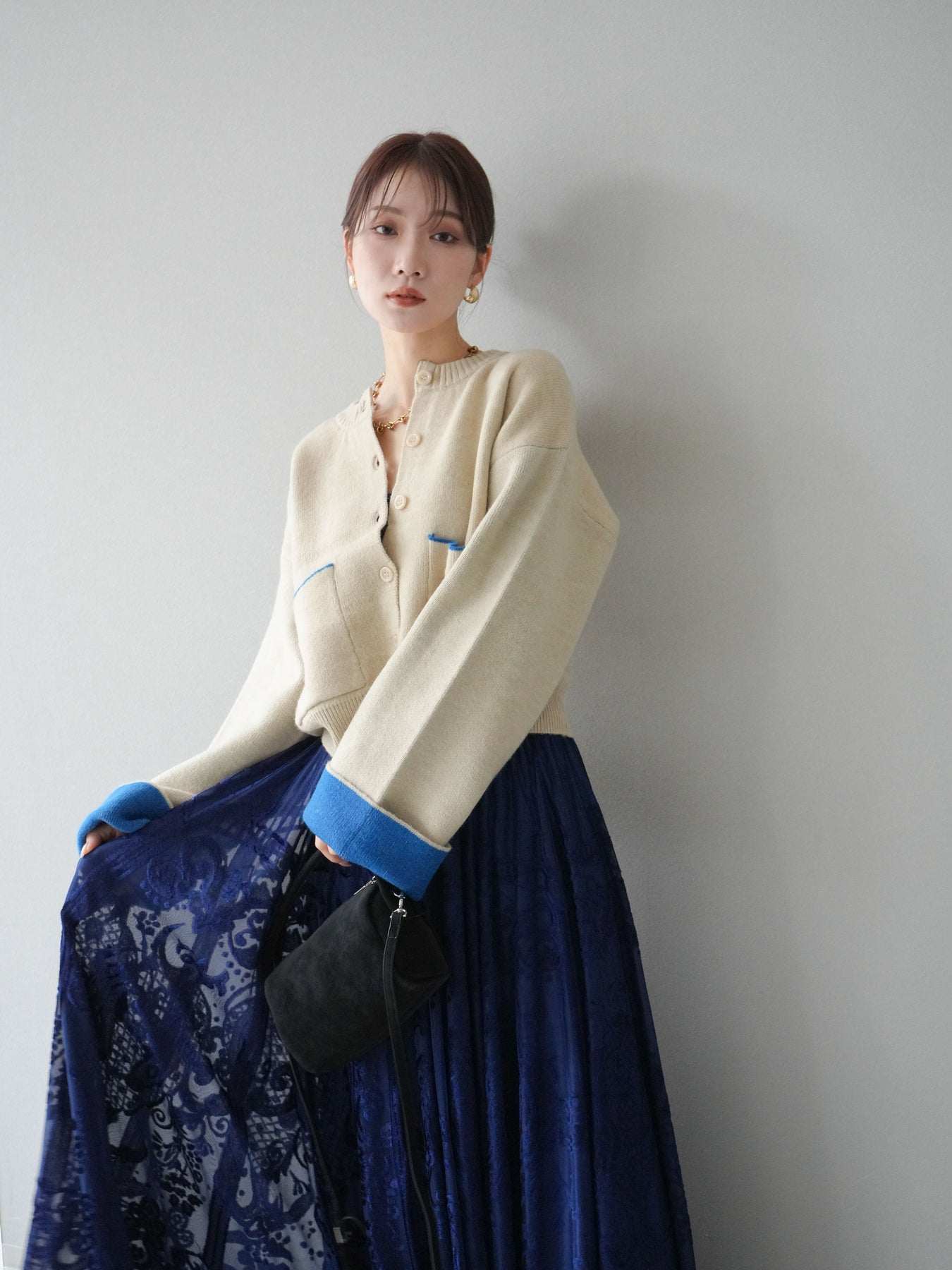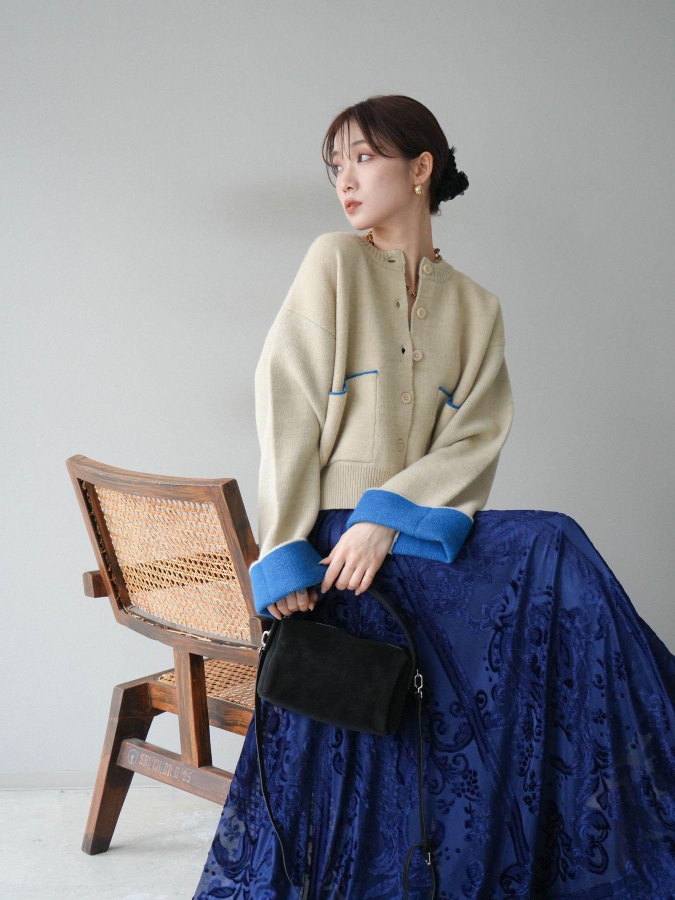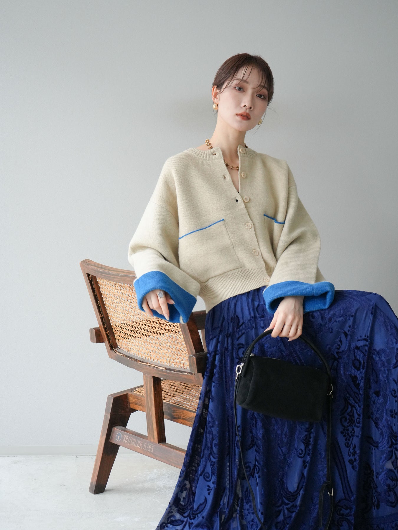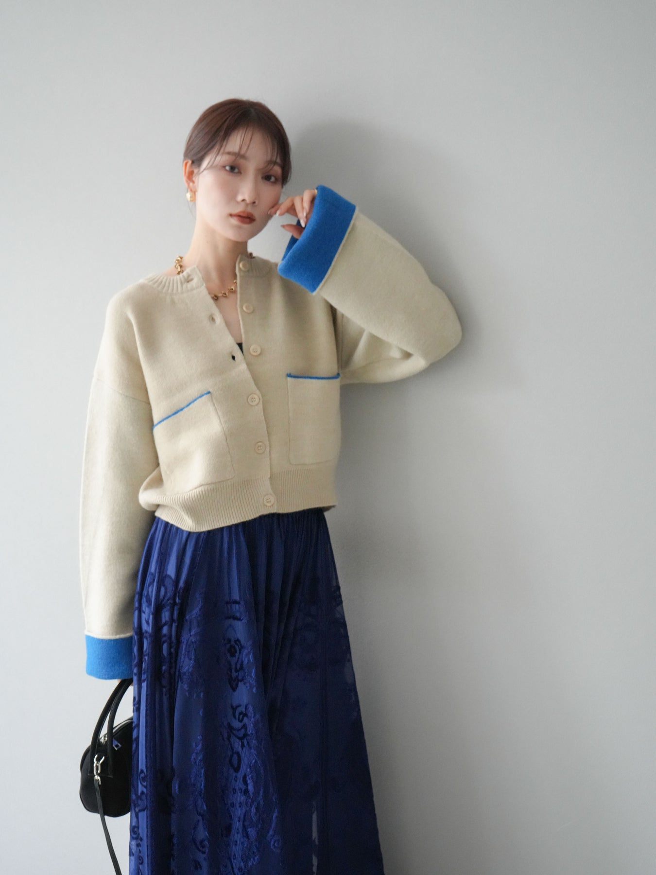 配色のアクセントが目を惹くバイカラーデザインのオーバーニットカーディガン。袖口やポケット口に効かせたカラーが遊び心をプラスし、シンプルなスタイリングにも映える一枚です。ゆったりとしたシルエットで抜け感がありながら、厚みのあるニット素材があたたかく快適な着心地を実現。羽織るだけでシーズンムードを高めてくれる、主役級のカーディガンです。 ※ボトムス、キャミソール(インナー)以外の商品は一律でインナーは付属していません。