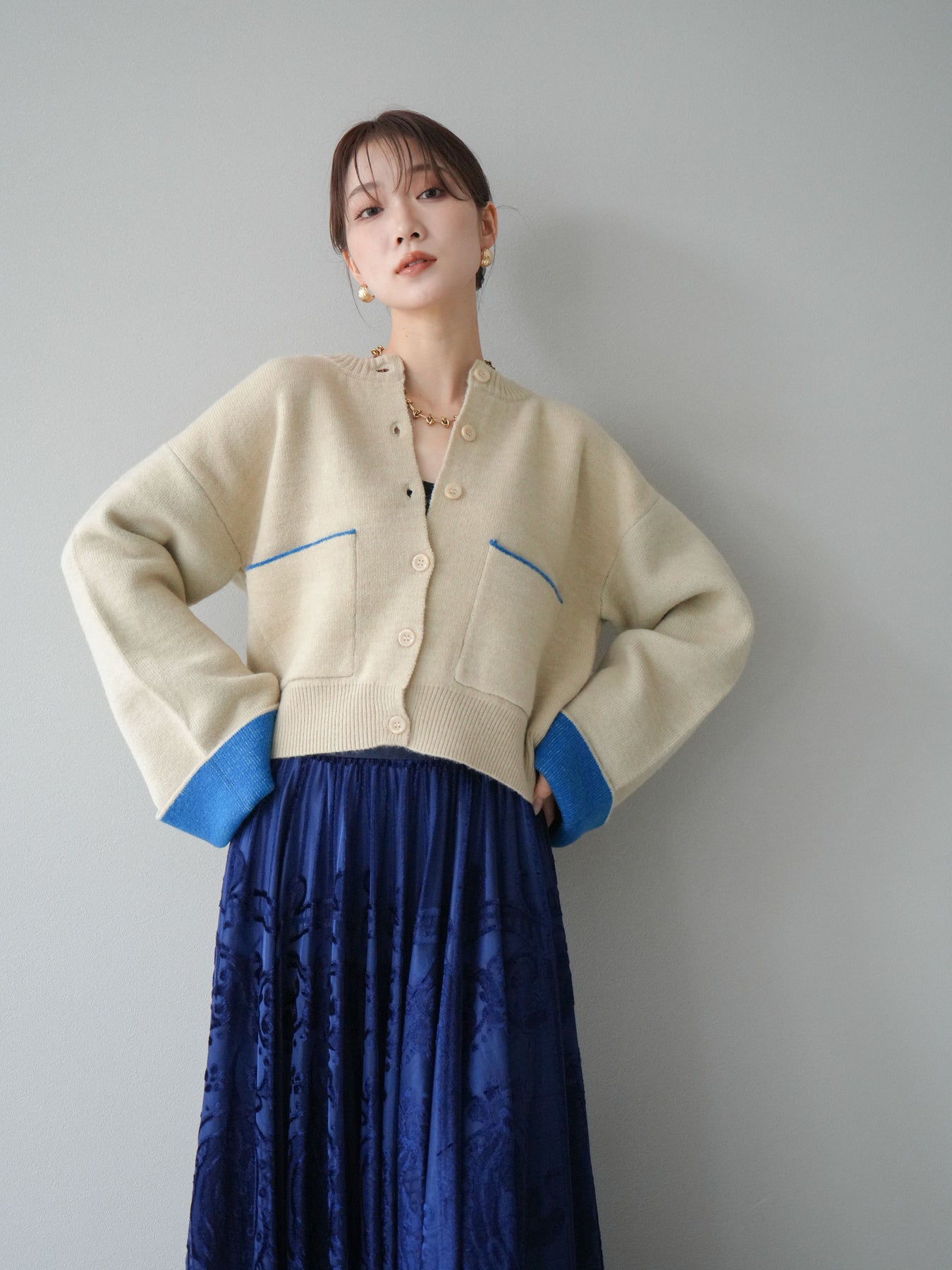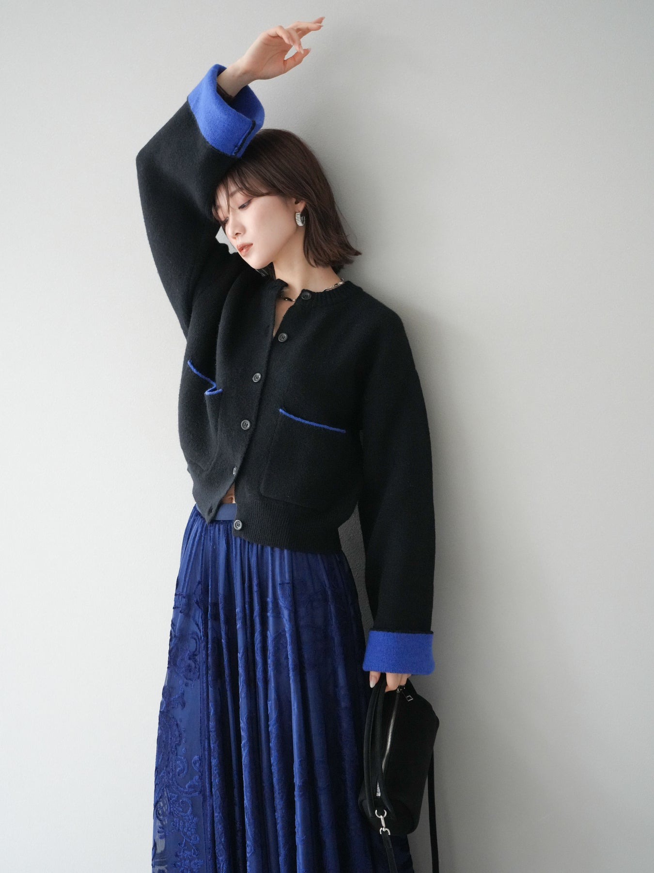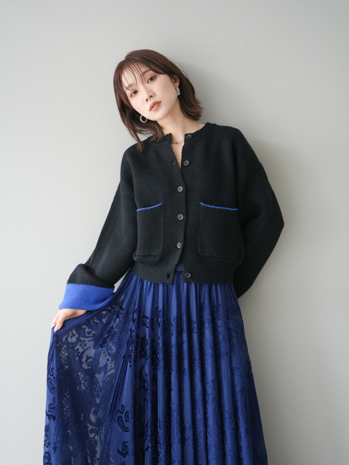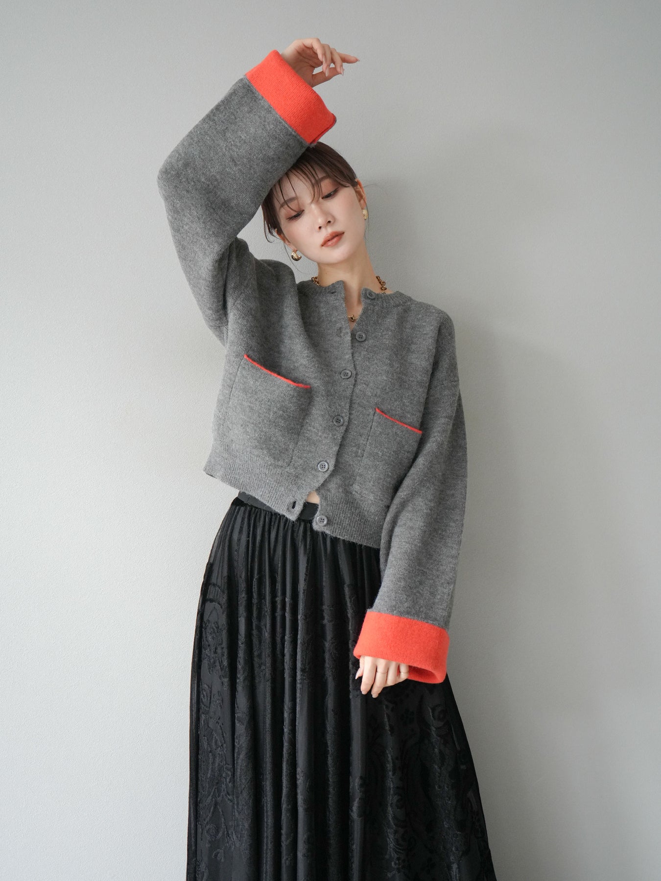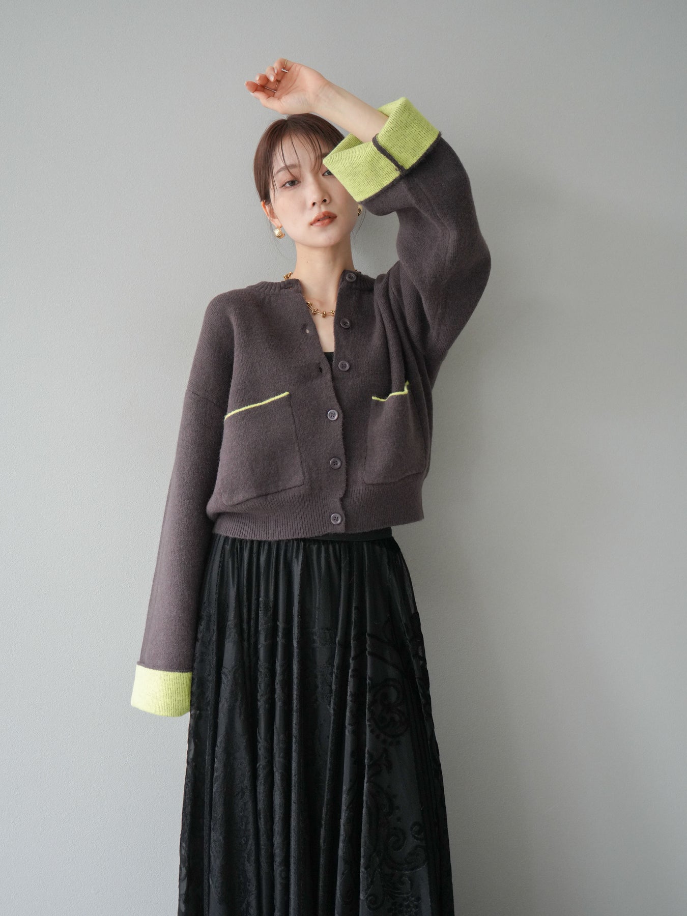 配色のアクセントが目を惹くバイカラーデザインのオーバーニットカーディガン。袖口やポケット口に効かせたカラーが遊び心をプラスし、シンプルなスタイリングにも映える一枚です。ゆったりとしたシルエットで抜け感がありながら、厚みのあるニット素材があたたかく快適な着心地を実現。羽織るだけでシーズンムードを高めてくれる、主役級のカーディガンです。 ※ボトムス、キャミソール(インナー)以外の商品は一律でインナーは付属していません。