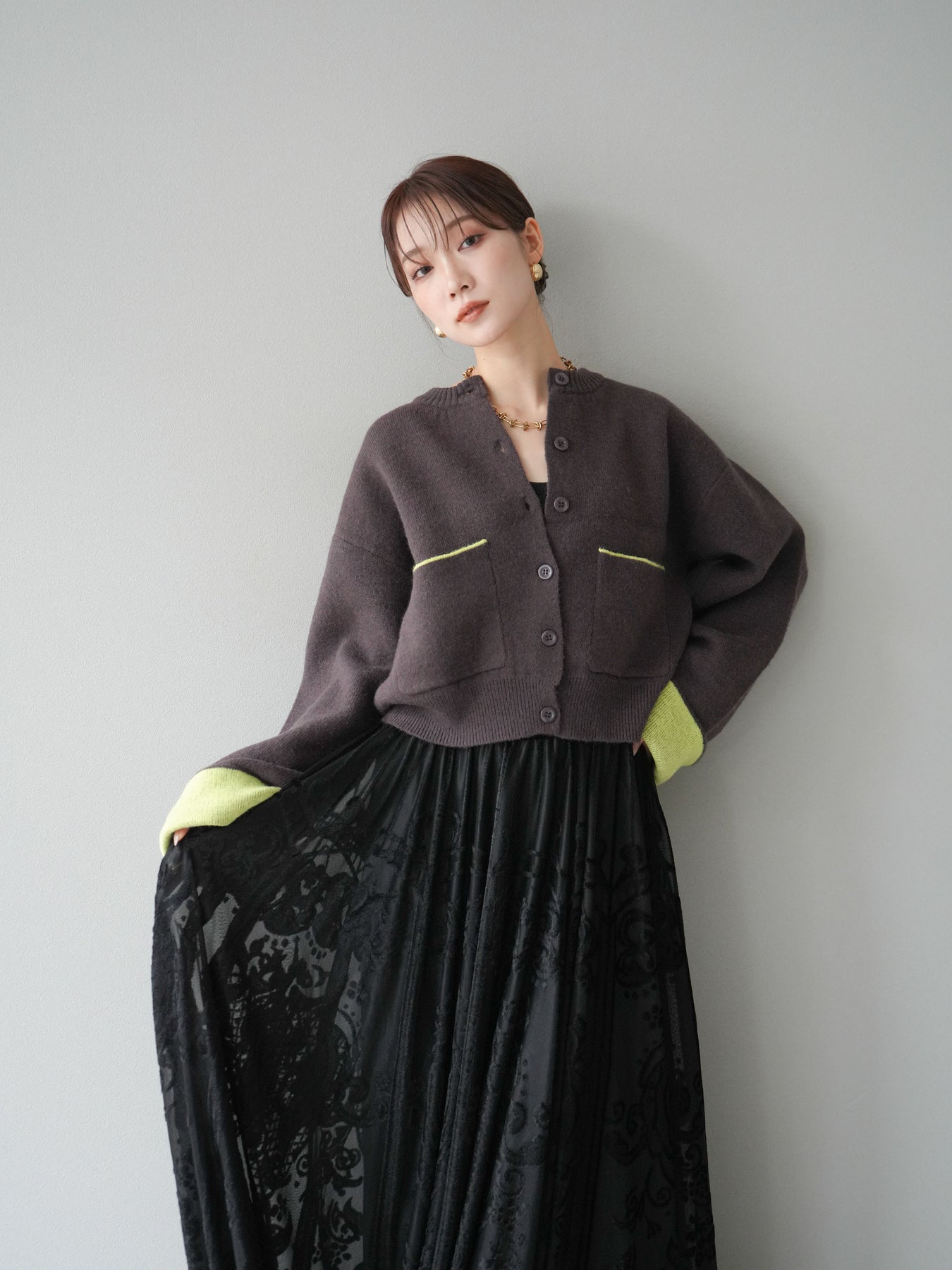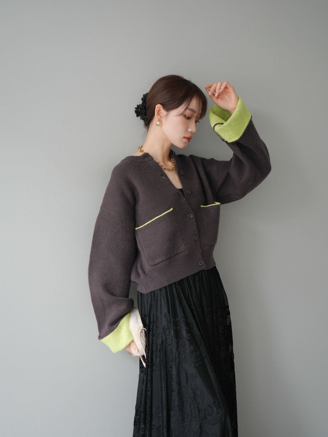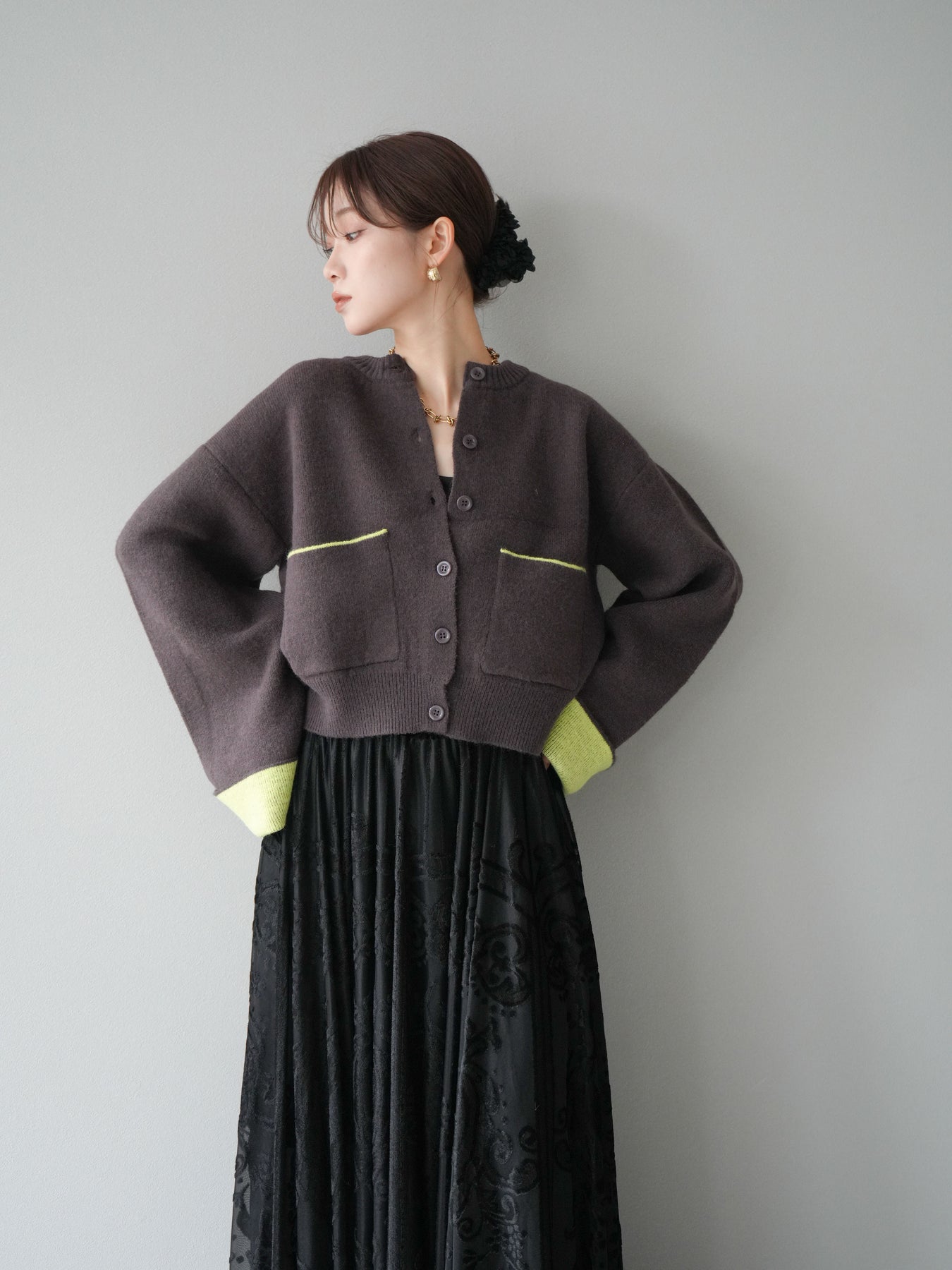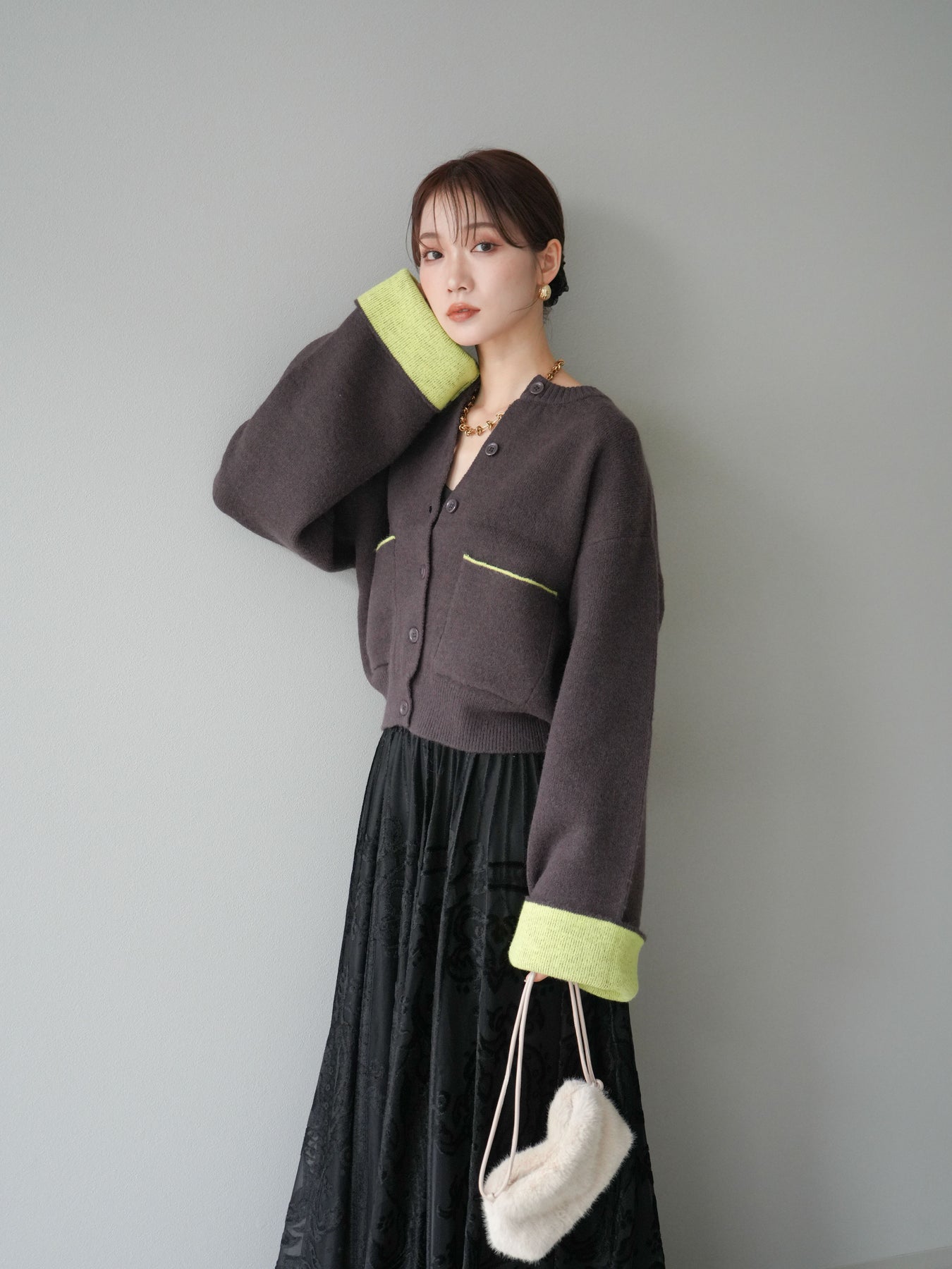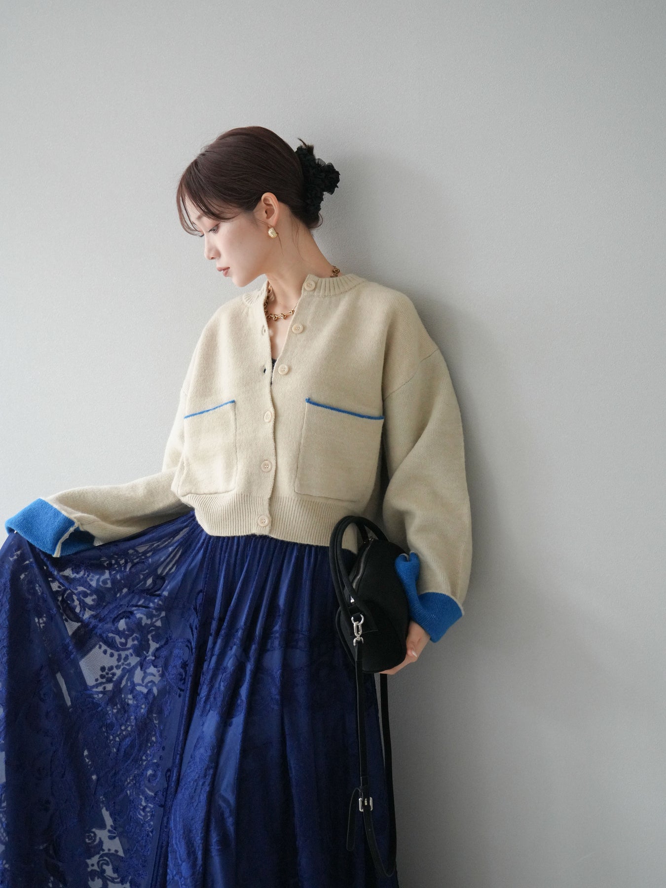 配色のアクセントが目を惹くバイカラーデザインのオーバーニットカーディガン。袖口やポケット口に効かせたカラーが遊び心をプラスし、シンプルなスタイリングにも映える一枚です。ゆったりとしたシルエットで抜け感がありながら、厚みのあるニット素材があたたかく快適な着心地を実現。羽織るだけでシーズンムードを高めてくれる、主役級のカーディガンです。 ※ボトムス、キャミソール(インナー)以外の商品は一律でインナーは付属していません。