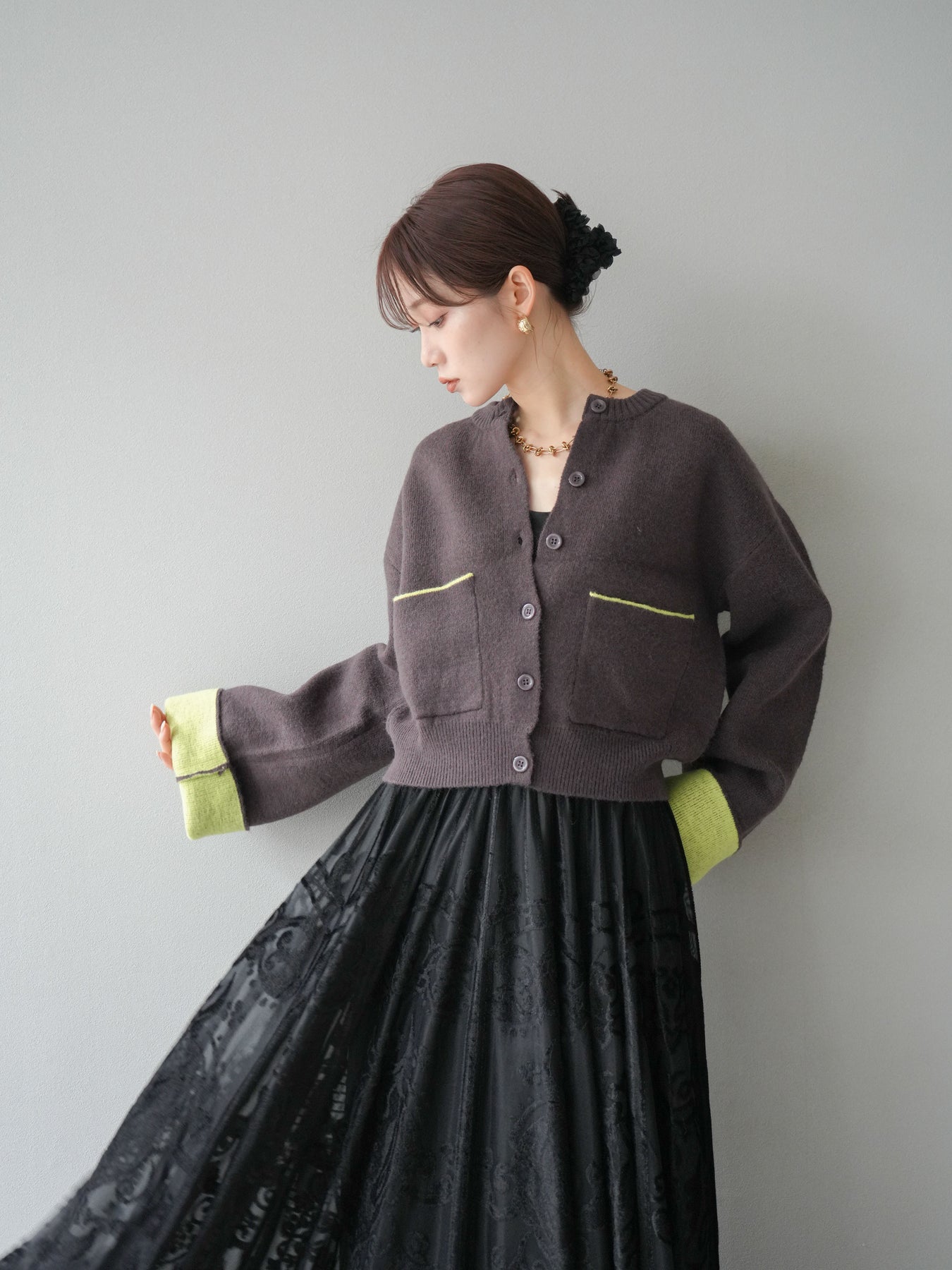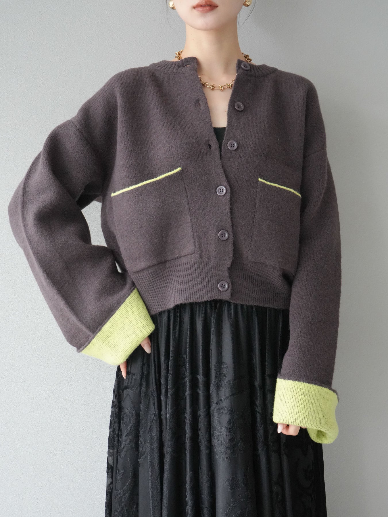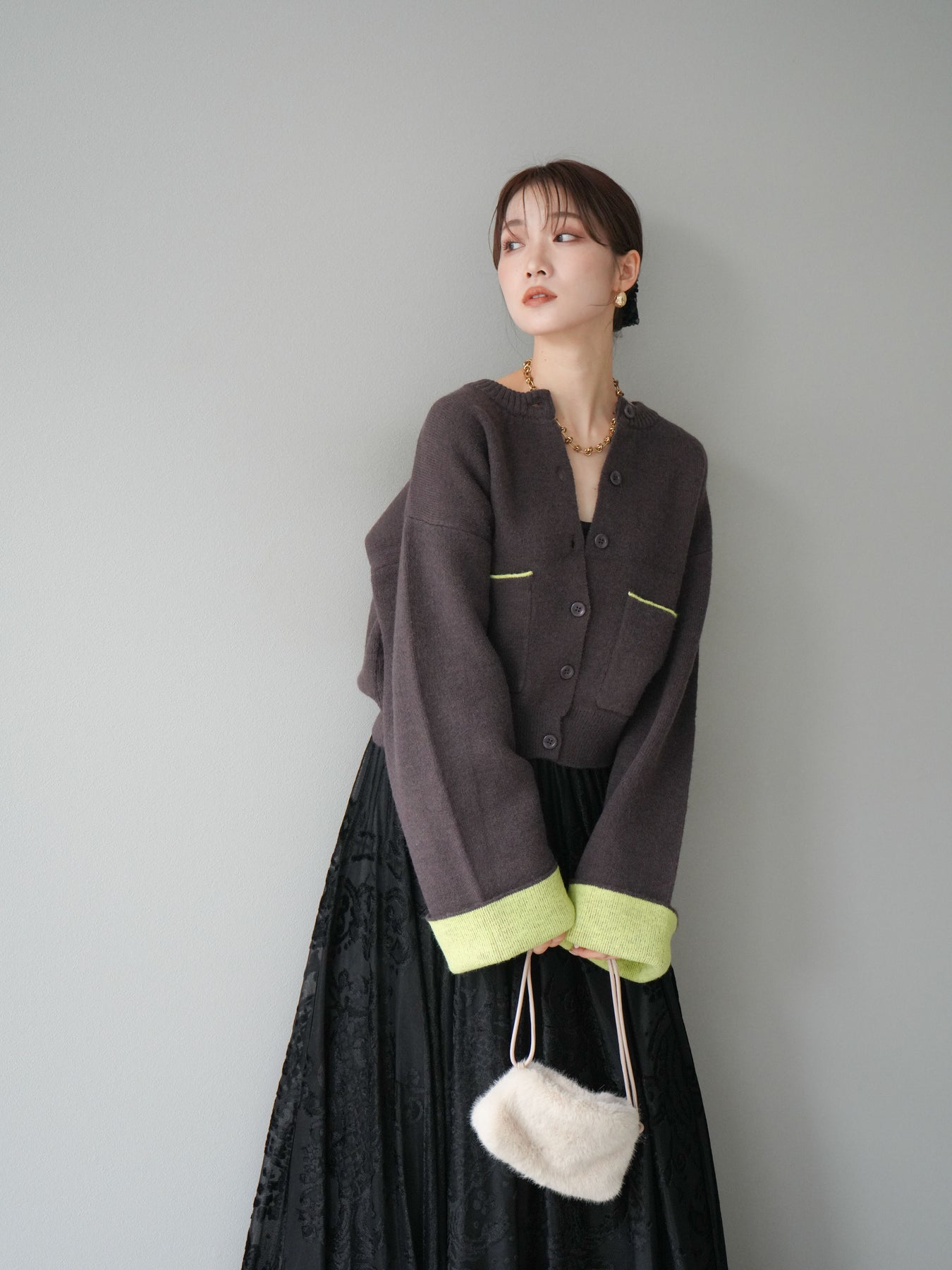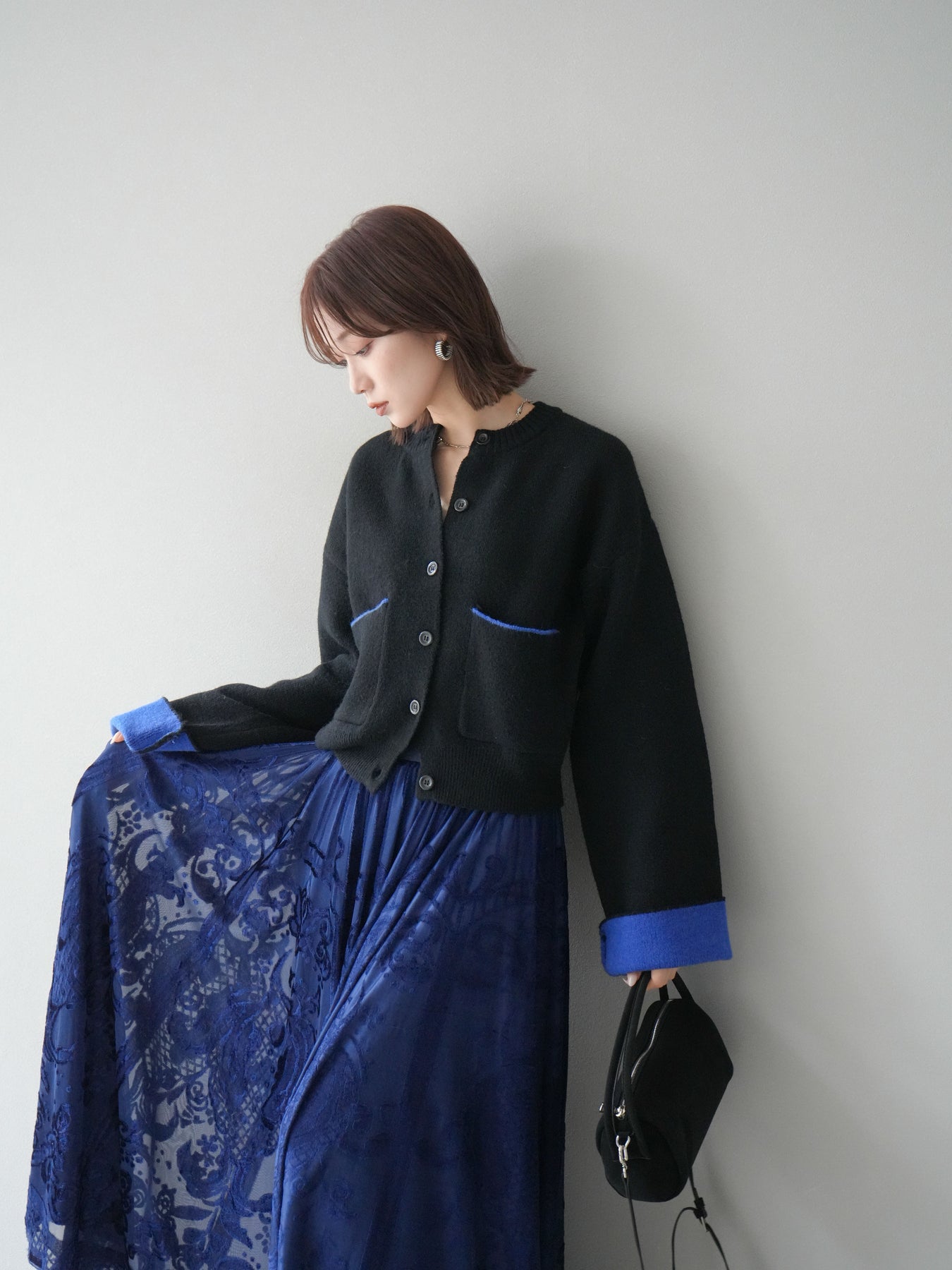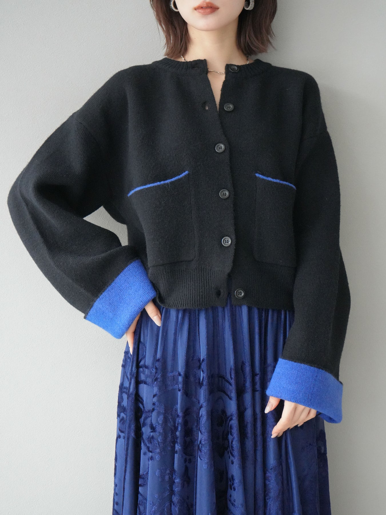 配色のアクセントが目を惹くバイカラーデザインのオーバーニットカーディガン。袖口やポケット口に効かせたカラーが遊び心をプラスし、シンプルなスタイリングにも映える一枚です。ゆったりとしたシルエットで抜け感がありながら、厚みのあるニット素材があたたかく快適な着心地を実現。羽織るだけでシーズンムードを高めてくれる、主役級のカーディガンです。 ※ボトムス、キャミソール(インナー)以外の商品は一律でインナーは付属していません。