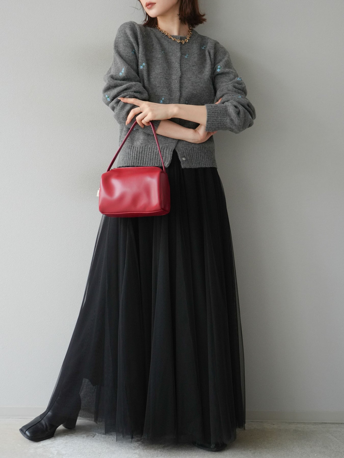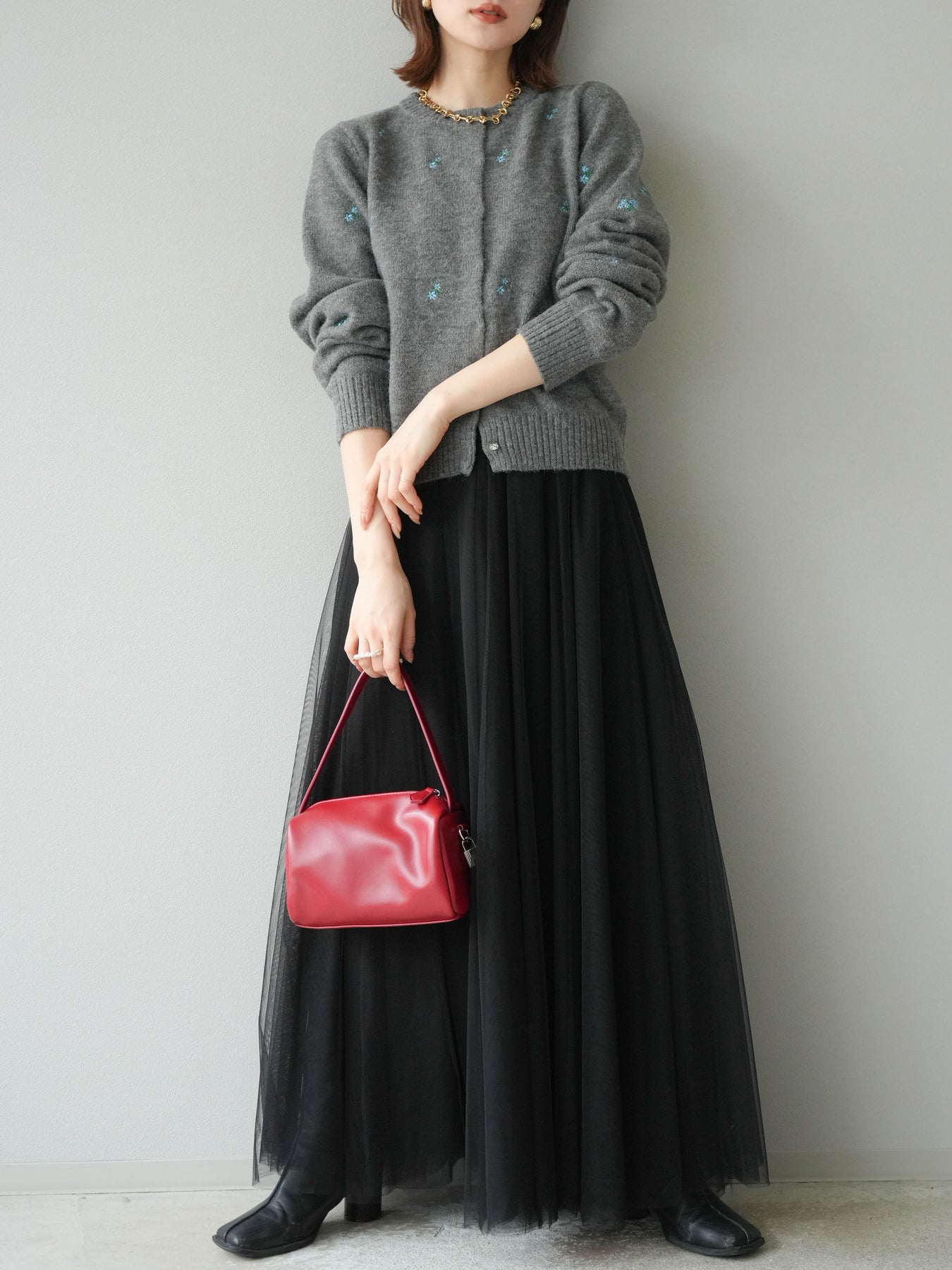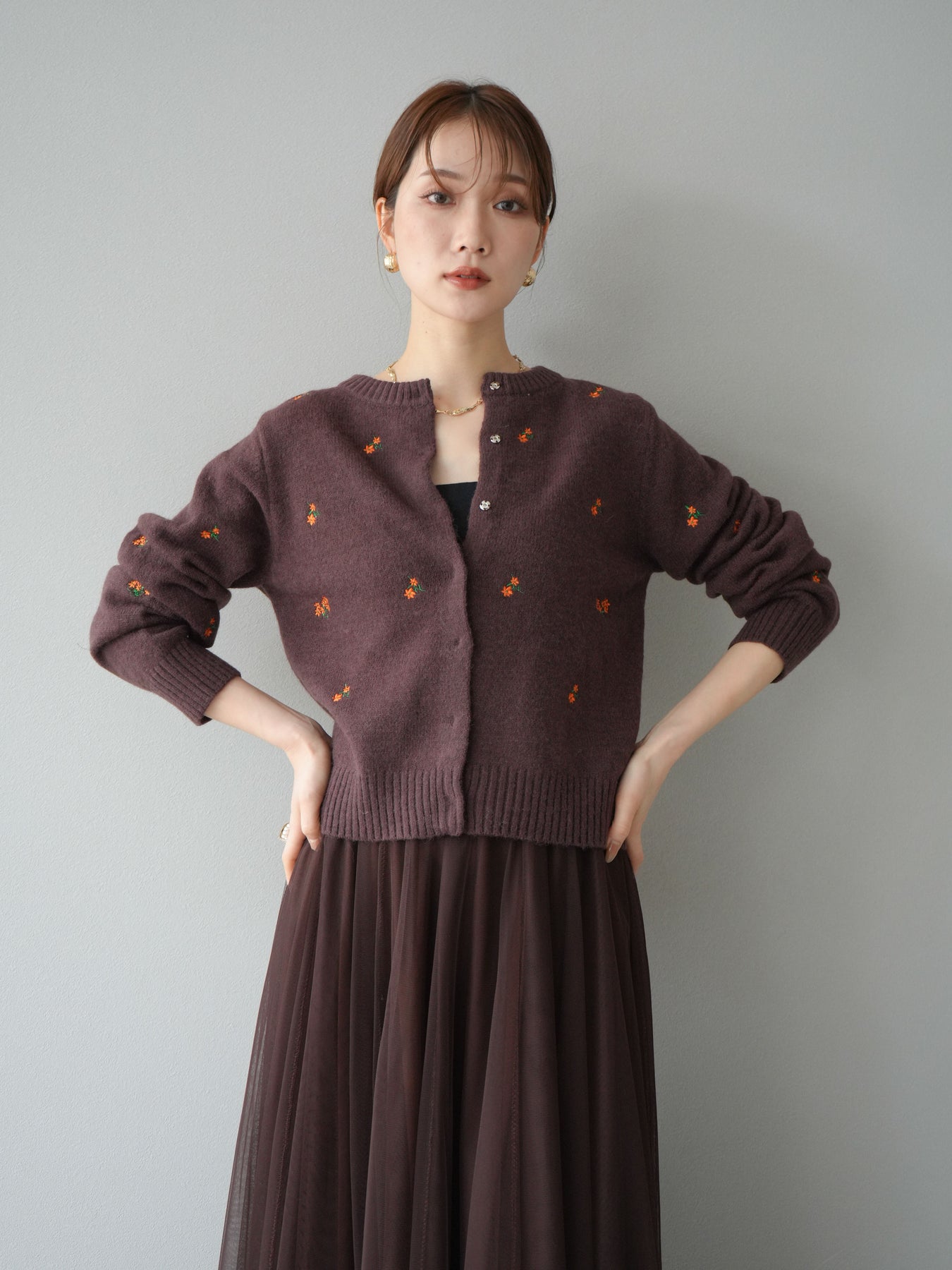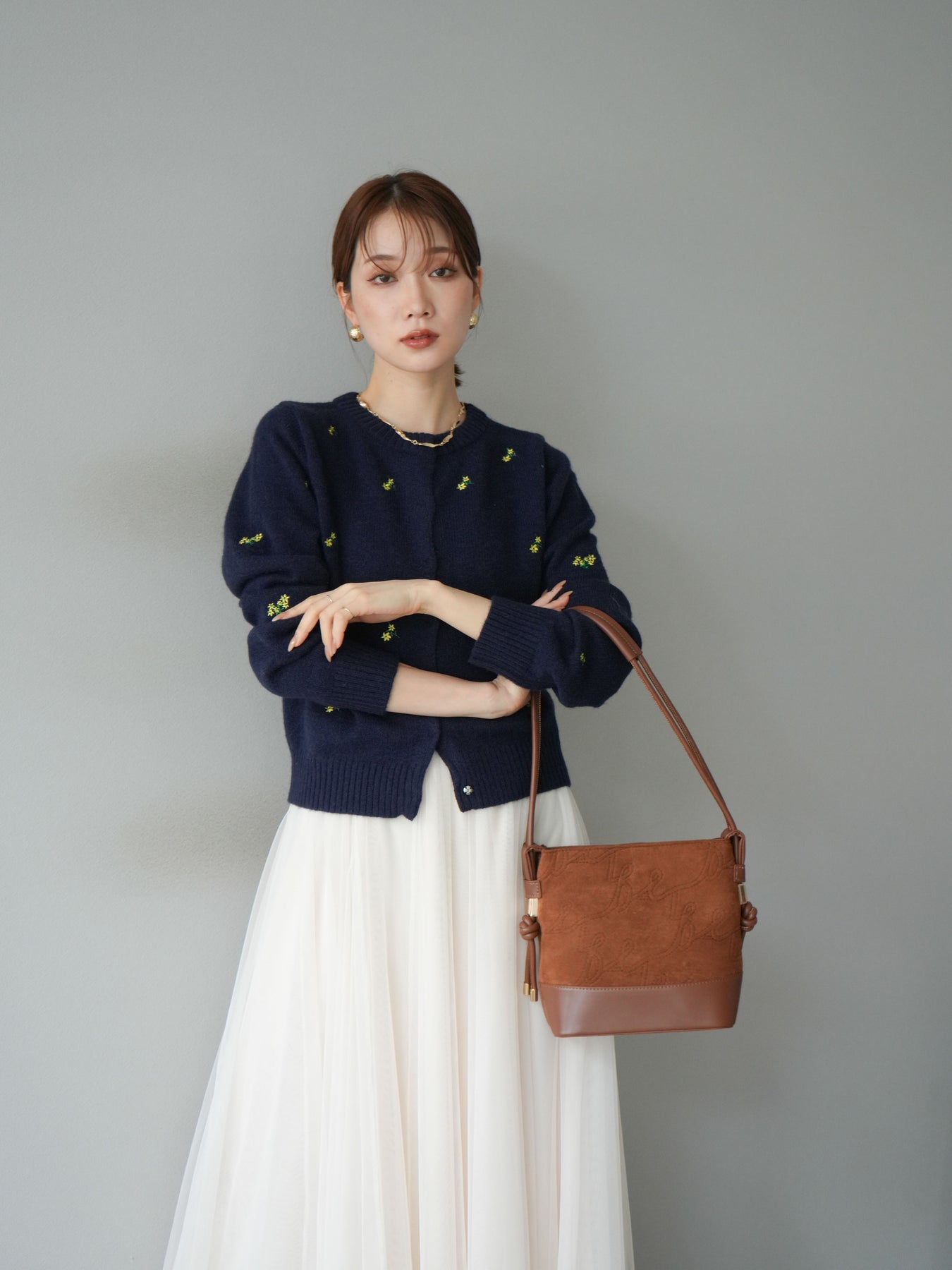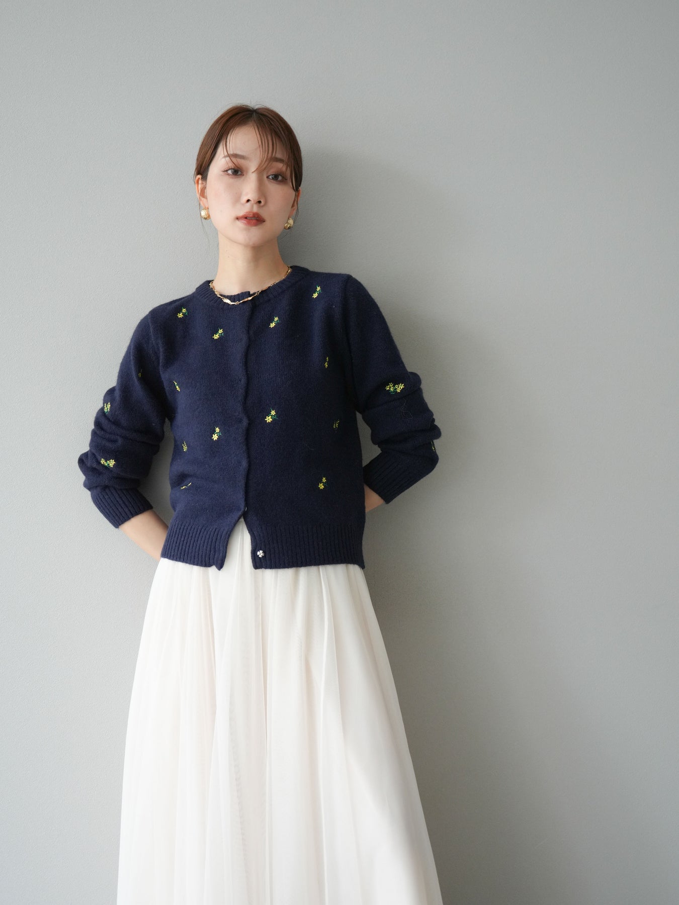 [SET]フラワー刺繍ニットカーディガン+チュールボリュームスカート(2set)