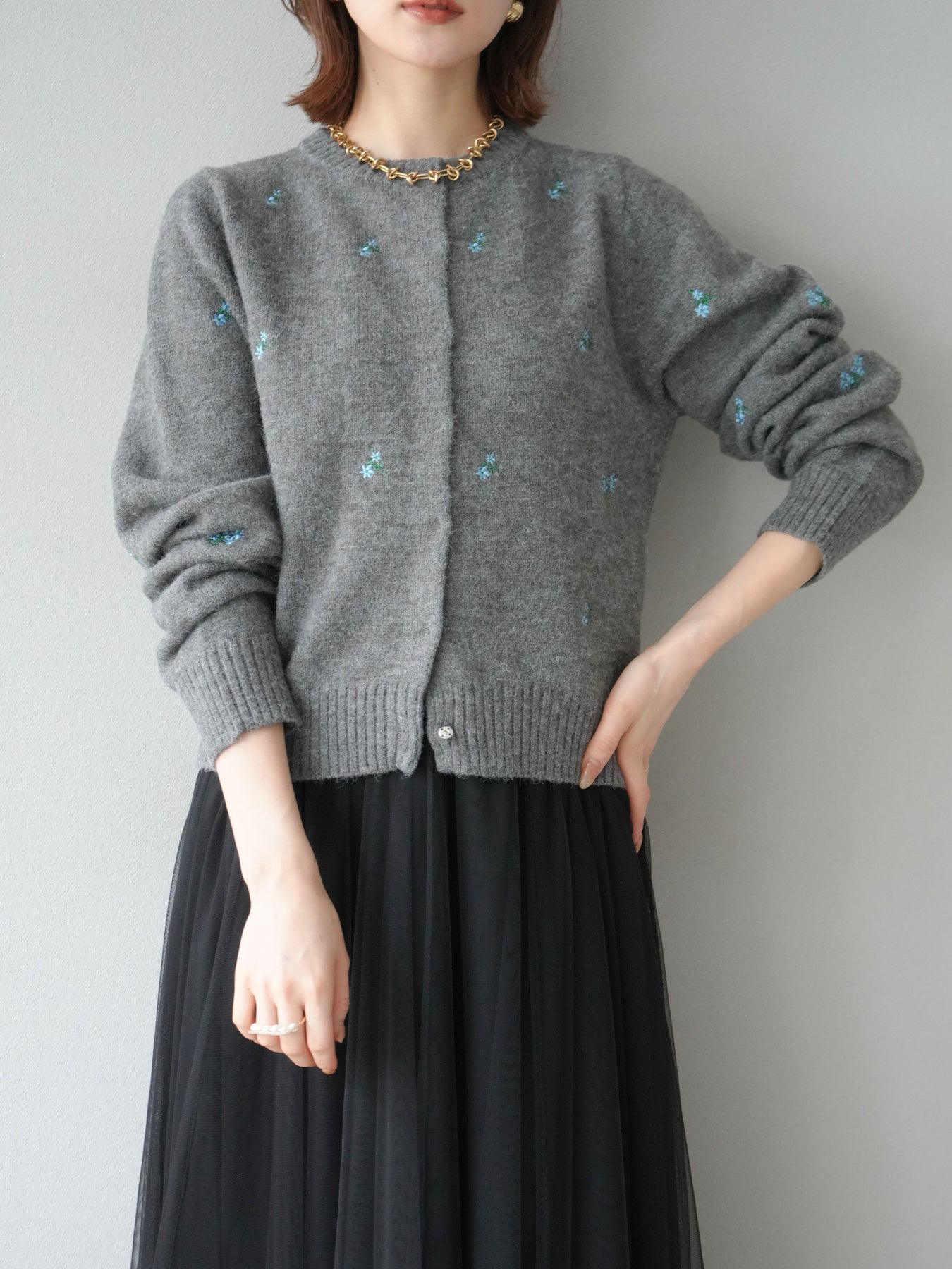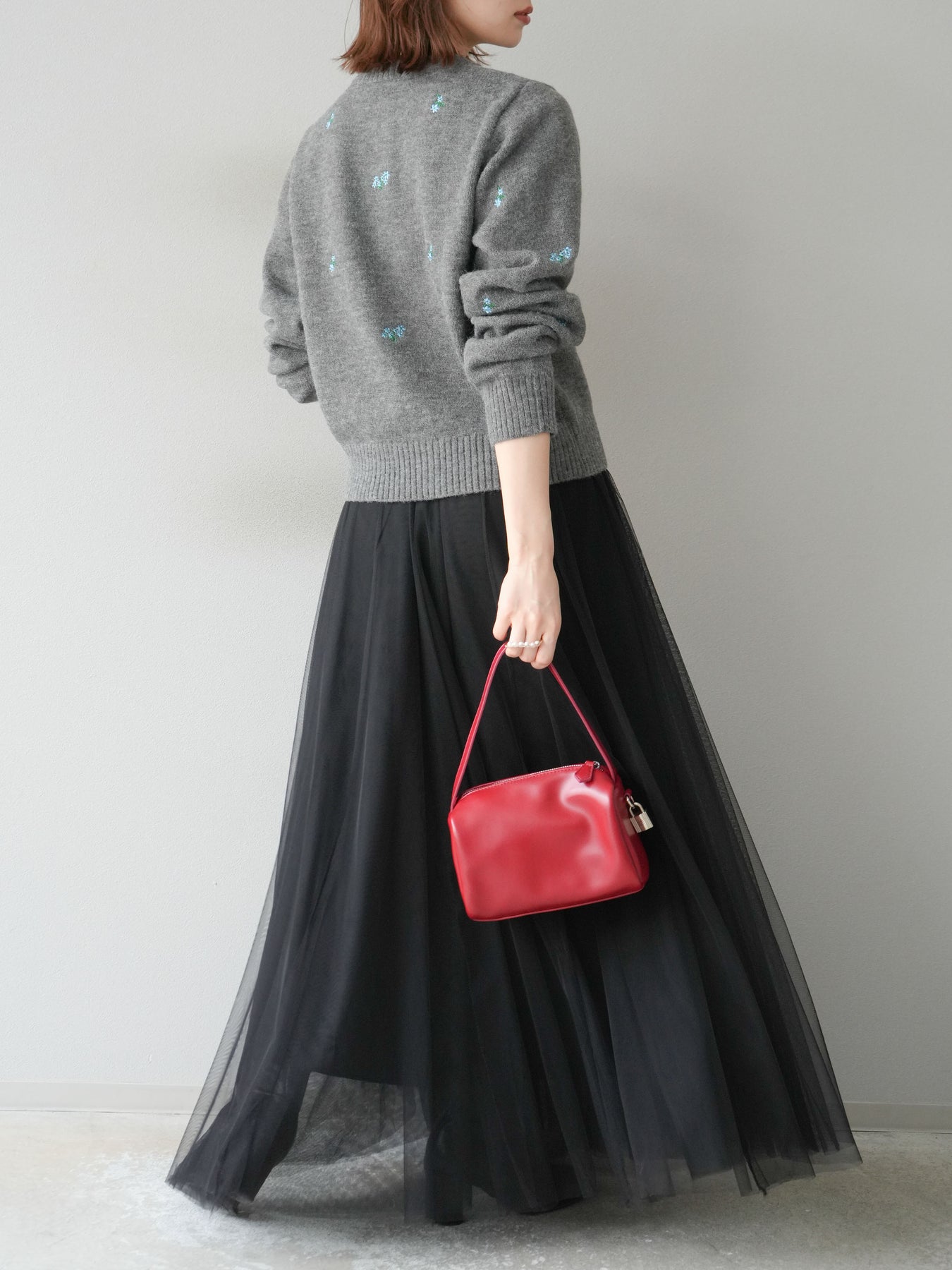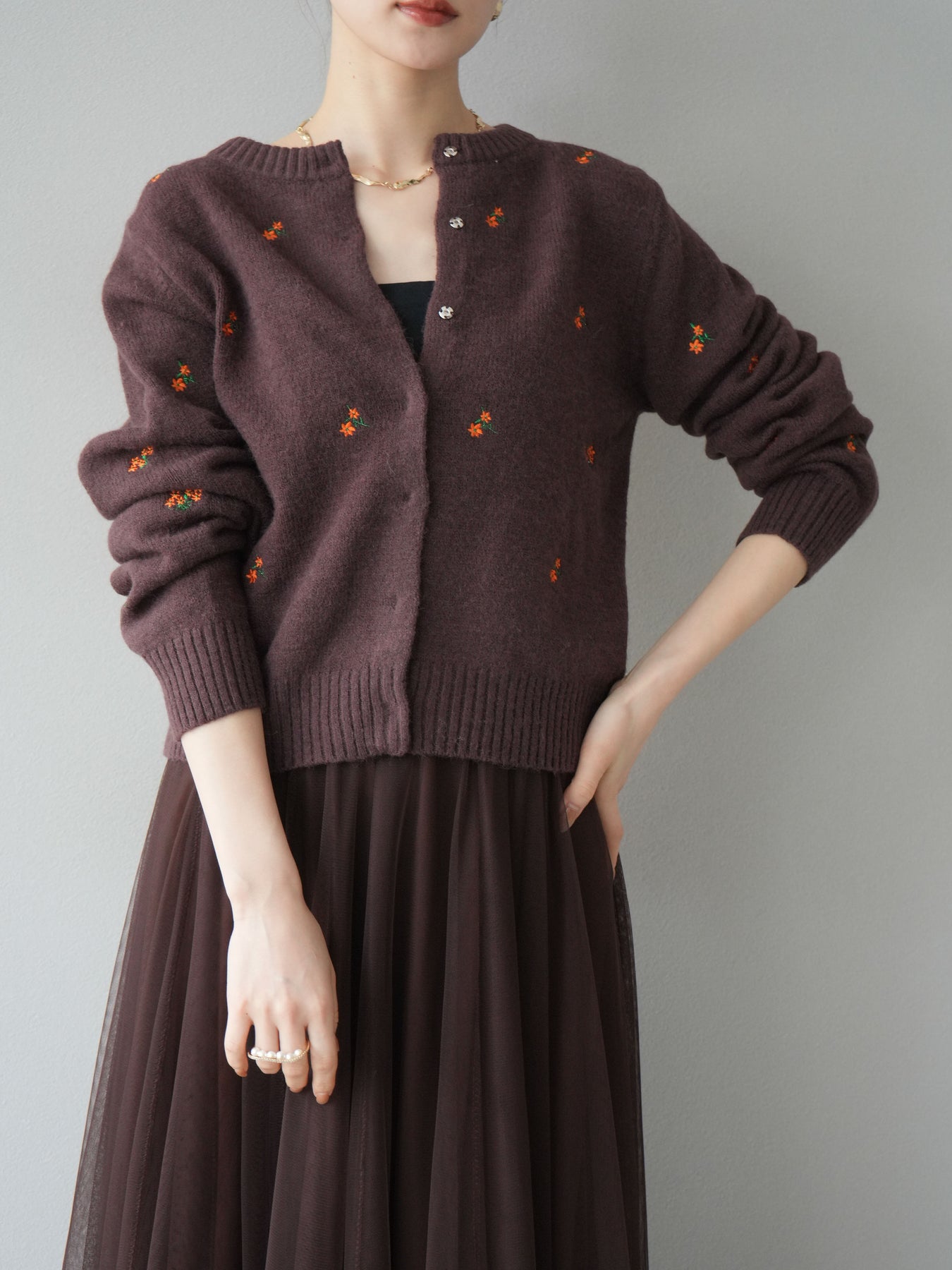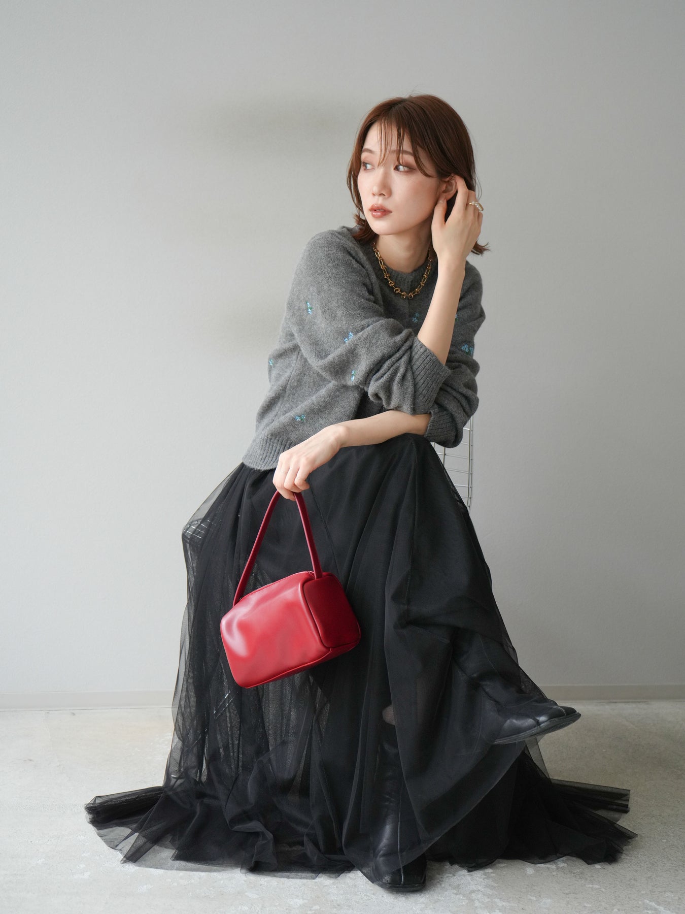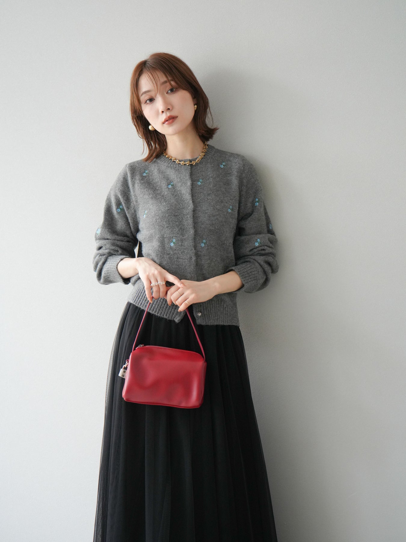 [SET]フラワー刺繍ニットカーディガン+チュールボリュームスカート(2set)