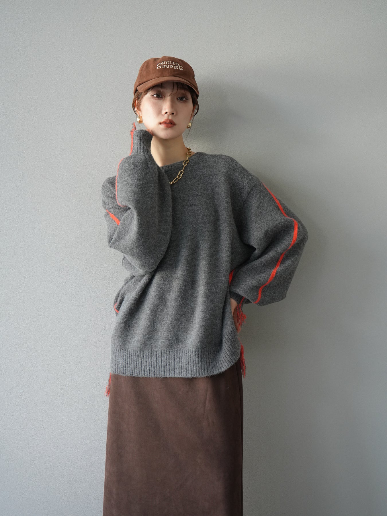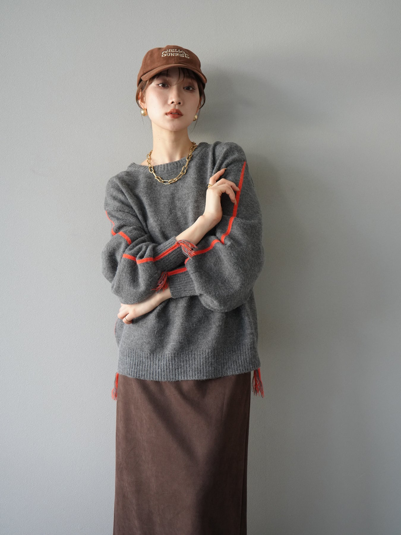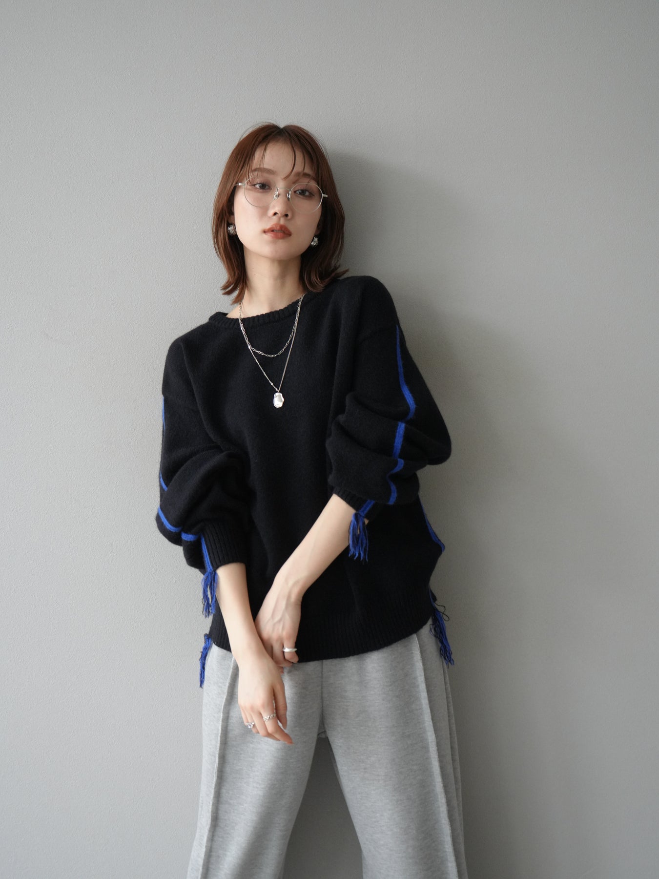 ◆ [予約]配色ステッチフリンジニットプルオーバー