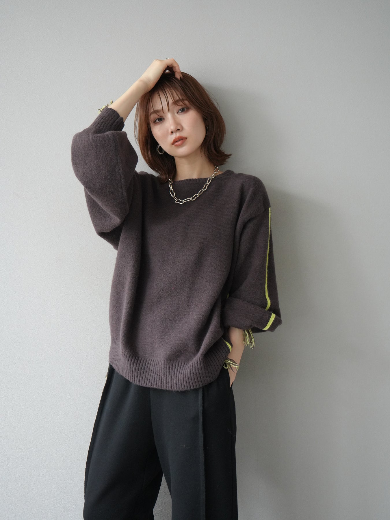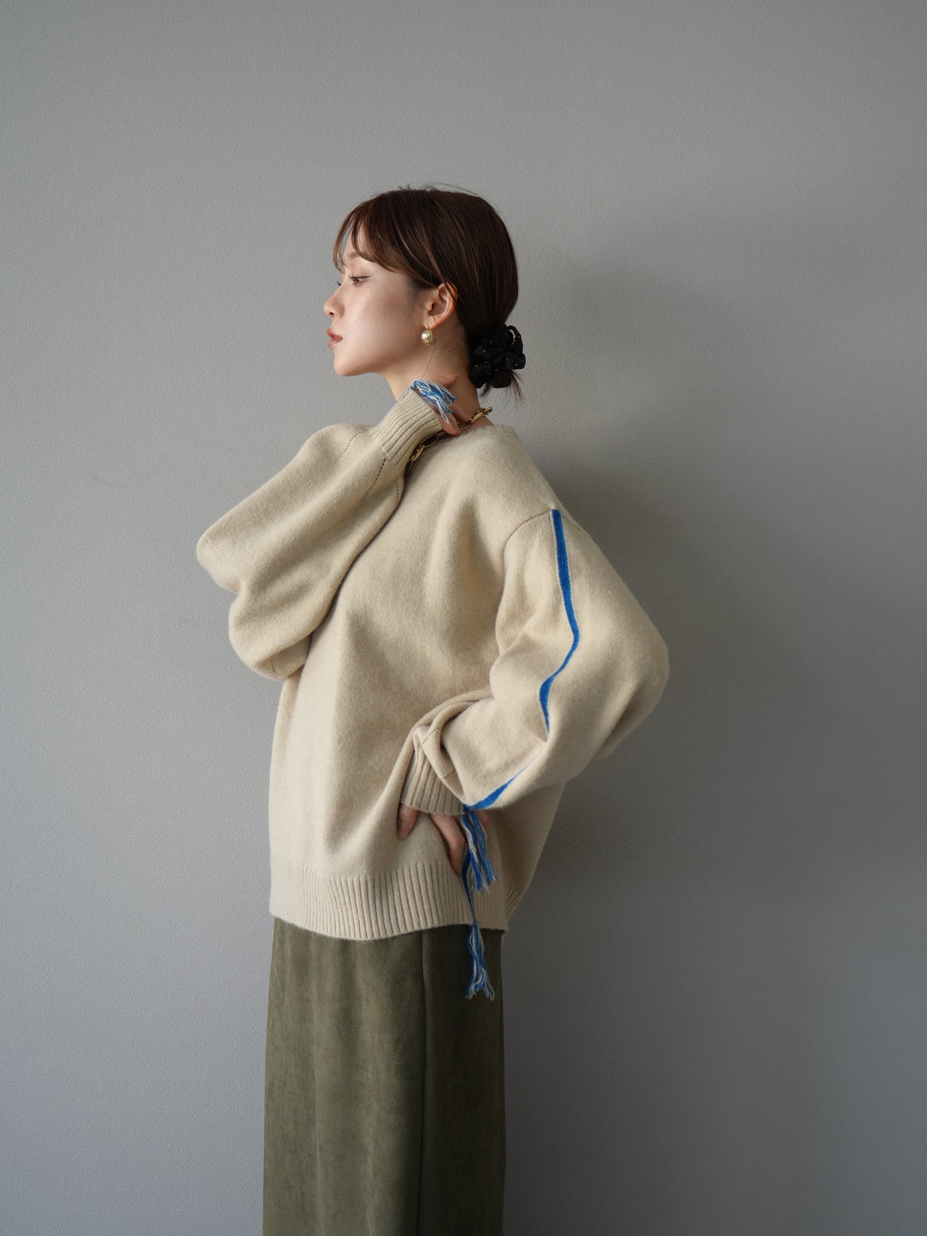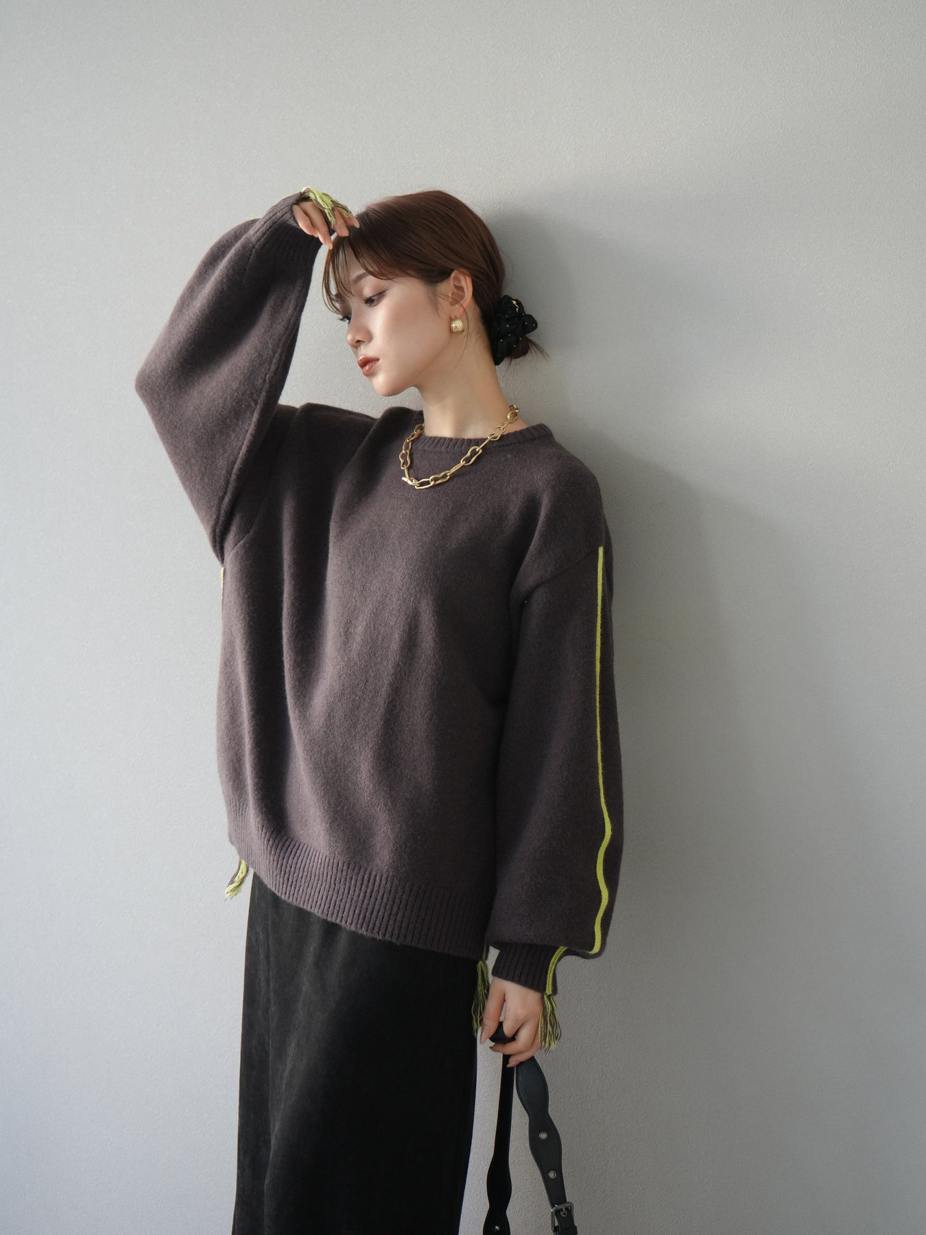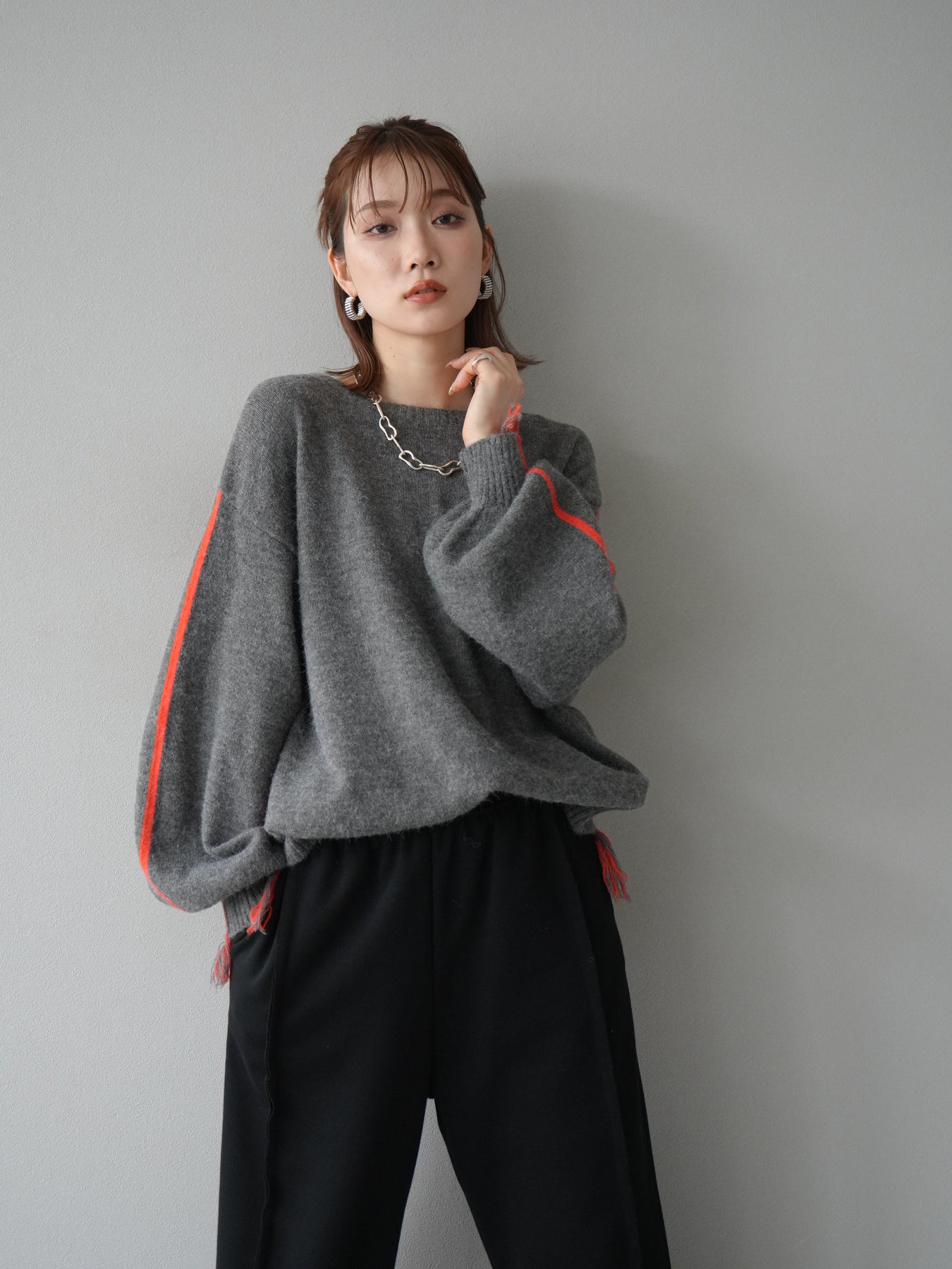 ◆ [予約]配色ステッチフリンジニットプルオーバー
