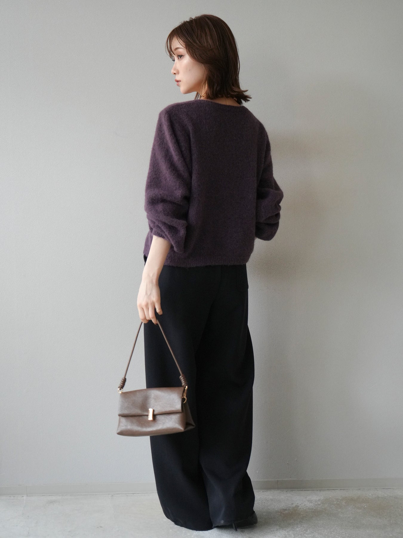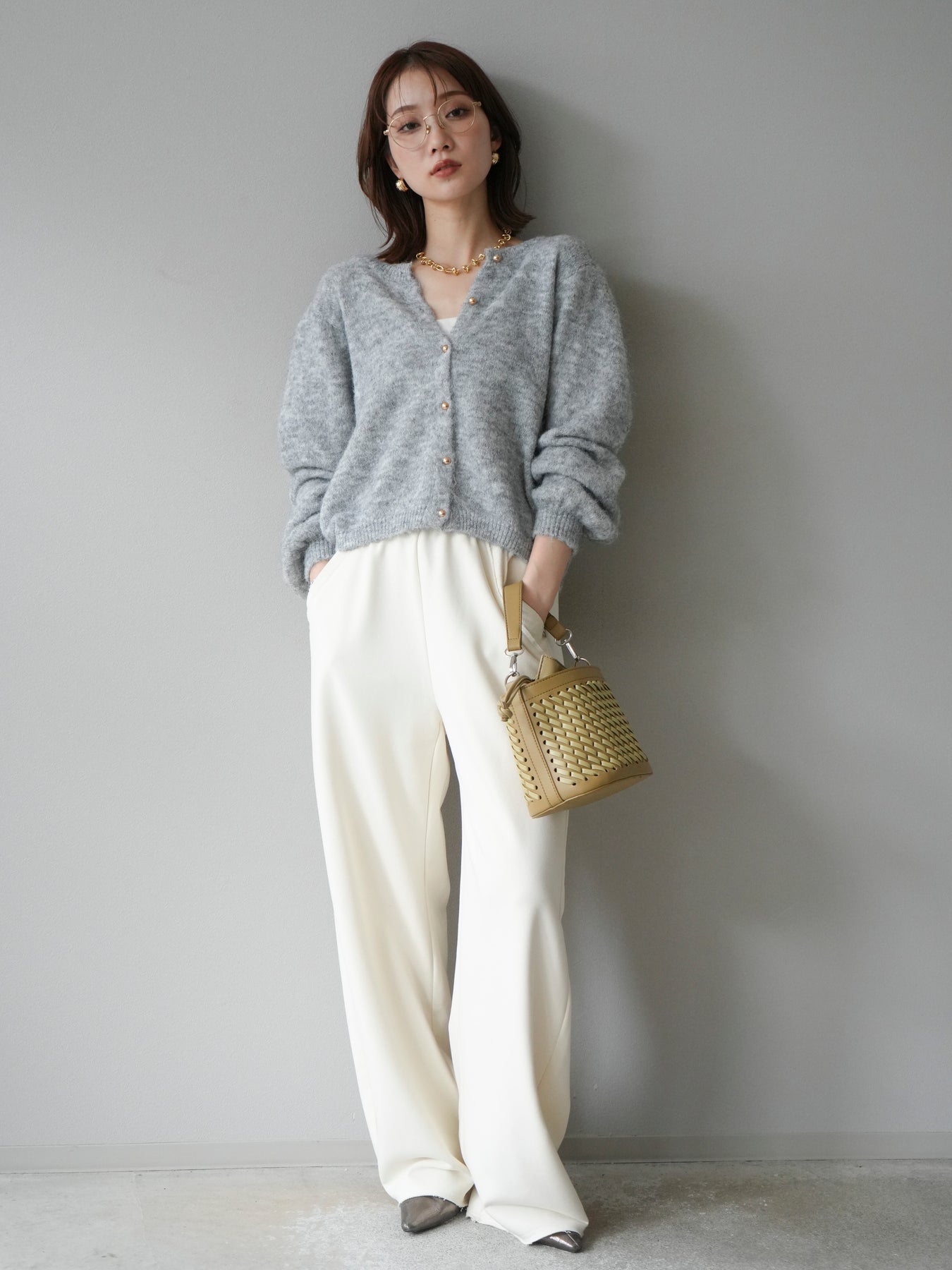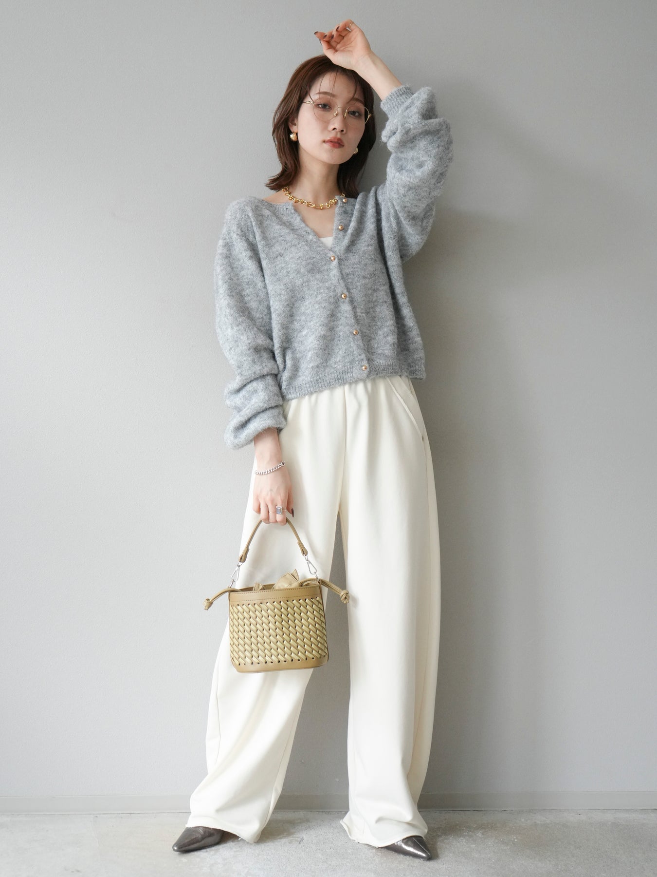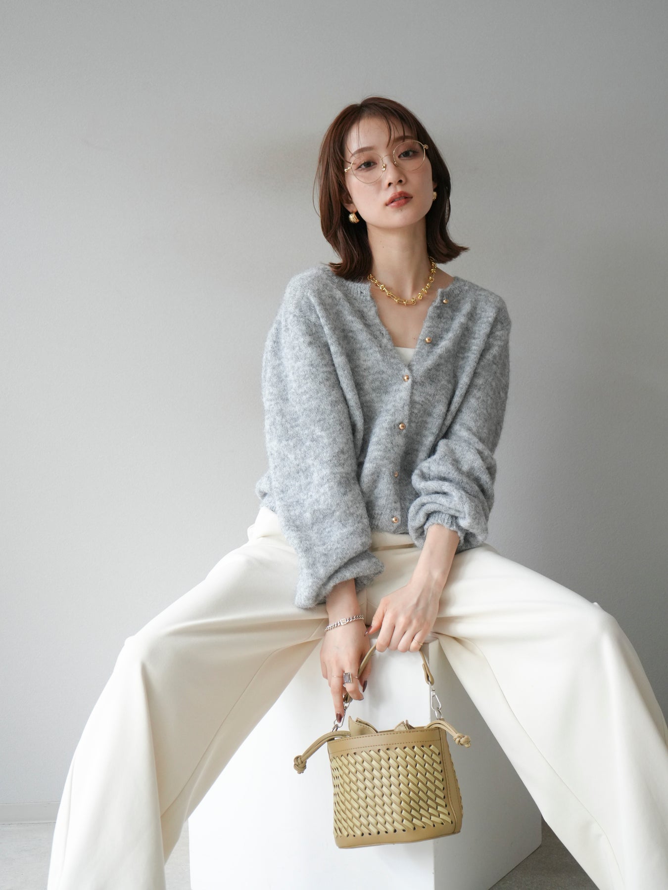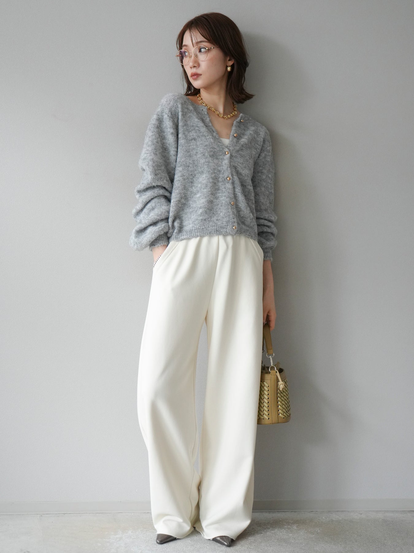 柔らかなタッチの起毛ニットを使用したカーディガン。ボリュームスリーブやゴールドボタンがアクセントになり、1枚で女性らしい印象に仕上がります。フロントを閉じてプルオーバー風にも、開けて羽織りとしても着用でき、着こなしの幅が広がる1着。