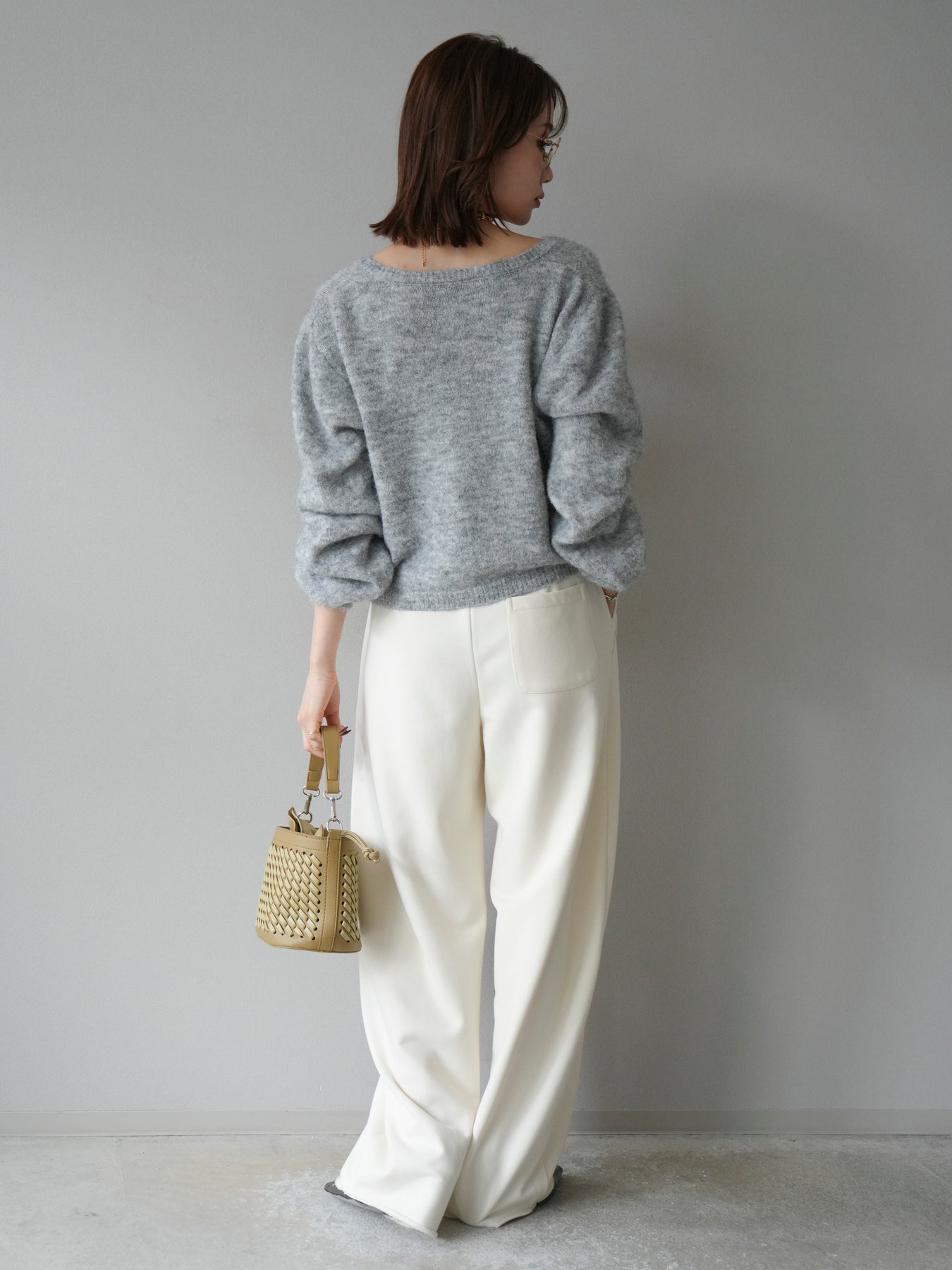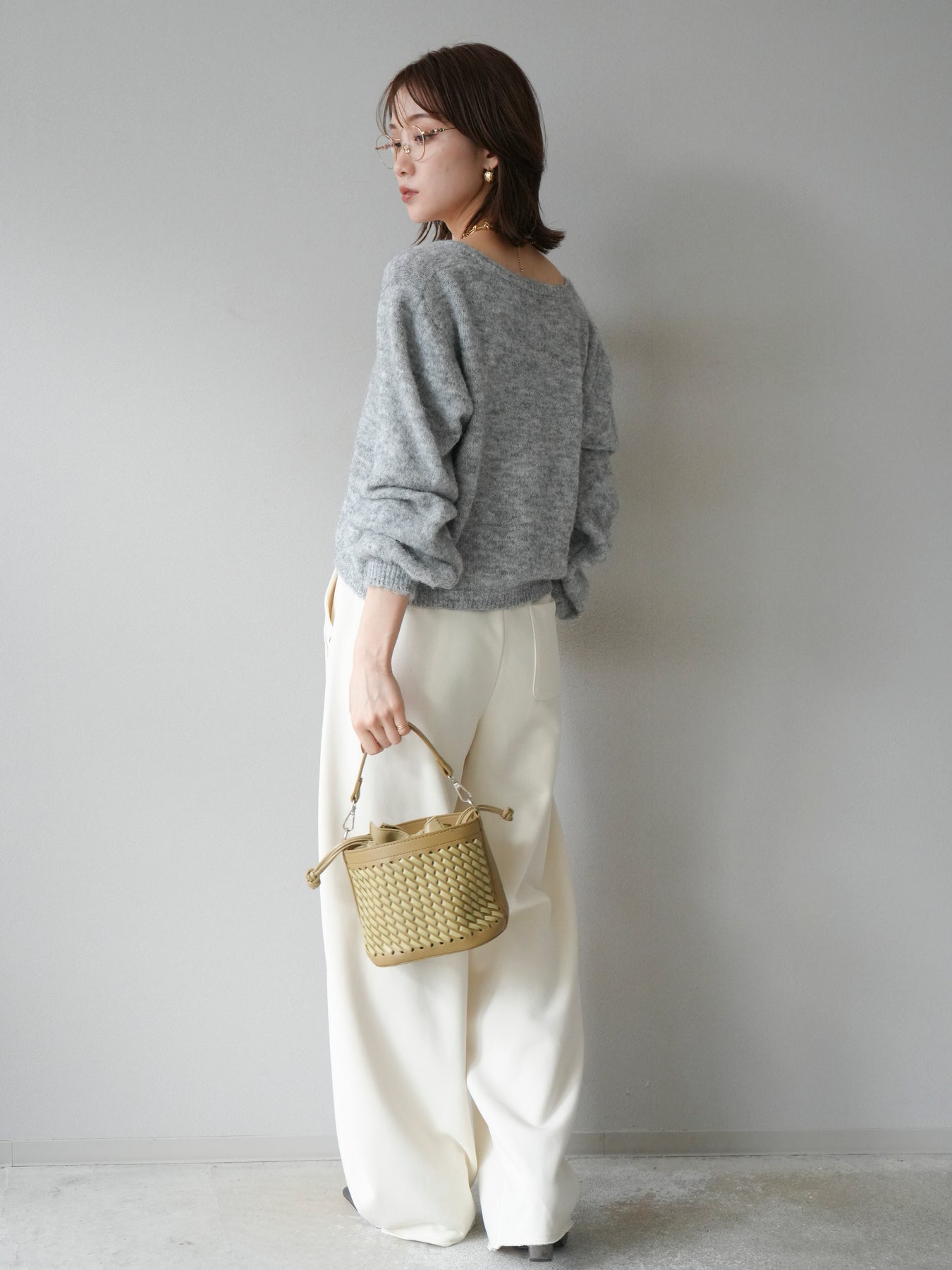 ・お手入れ方法:水温30℃以下手洗いでのお洗濯をお薦めします。素材の特性上、洗濯の際に色落ち・縮みが生じる恐れがありますので単独で・短時間でのお洗濯をお薦めします。裏返してネットに入れ手洗いコースで洗濯、洗濯後は形を整えてから干してください。※タンブラー乾燥は控えてください。濡れたままの状態で擦れると、色落ち色移りすることがあります。つけ置き洗いや雨や汗で濡れたまま放置は避け、速やかに処理してください。着用中の摩擦や汗、水濡れ、濃淡差があるものとの重ね着にご注意ください。また、素材の特性上伸びやすい為ハンガーの使用はお控えいただき畳んで保管ください。