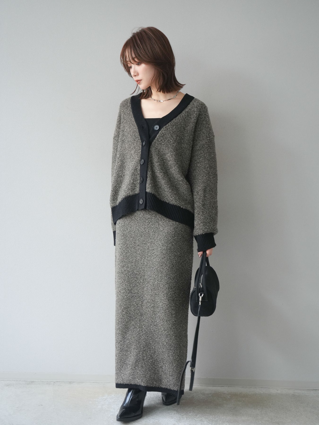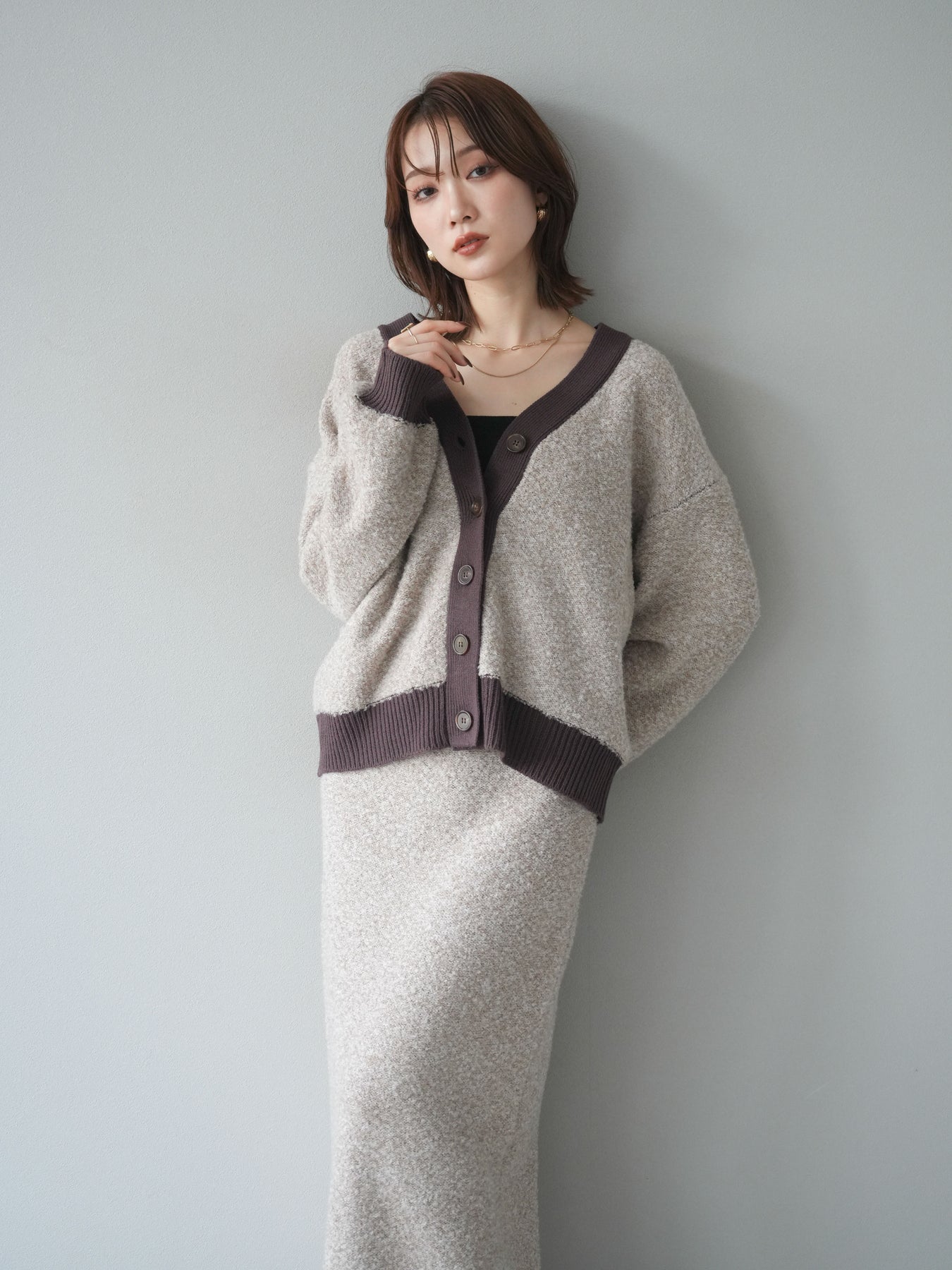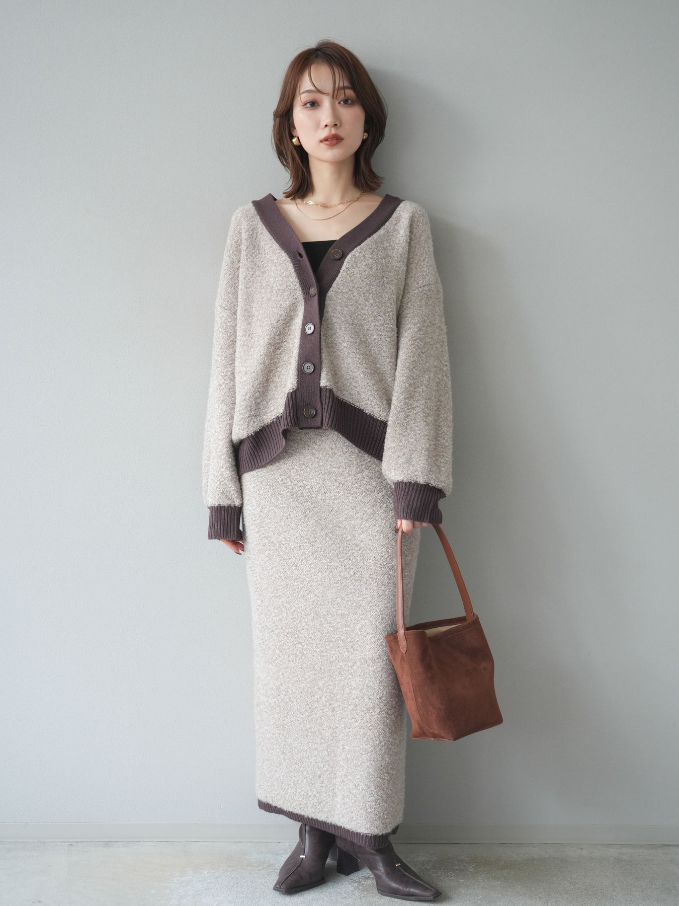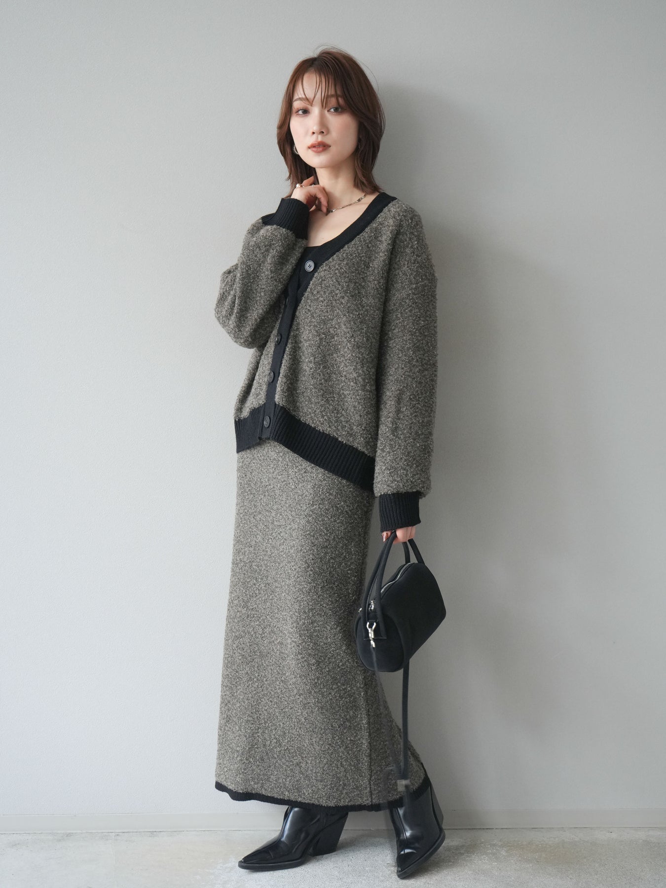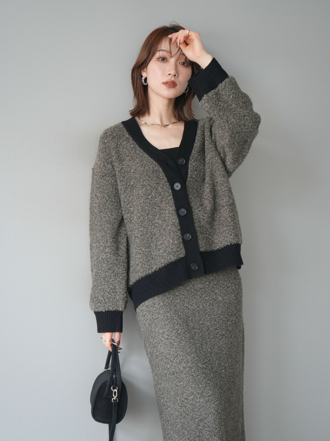 [SET]ブークレバイカラーニットカーディガン+ブークレバイカラータイトニットスカート(2set)