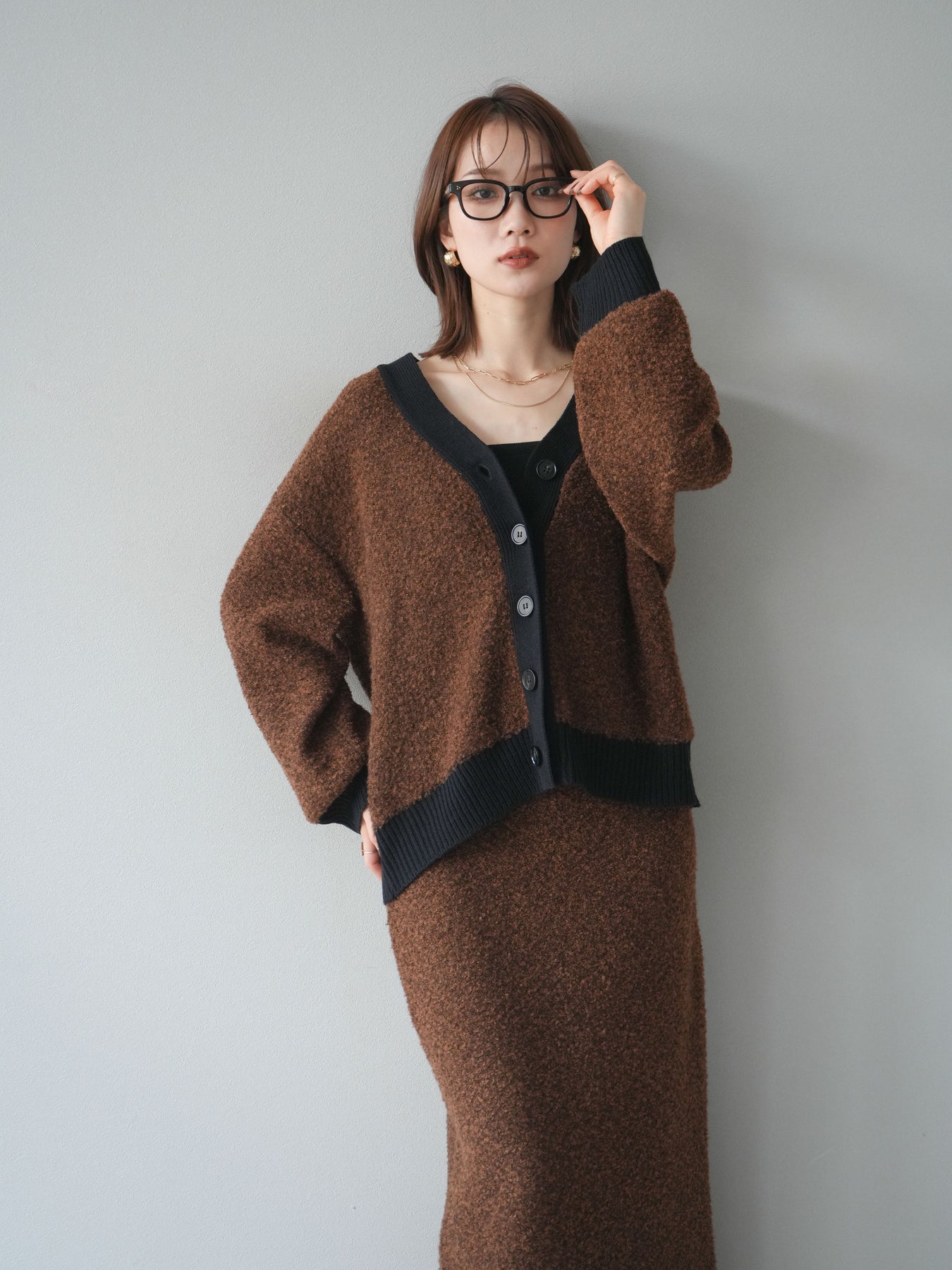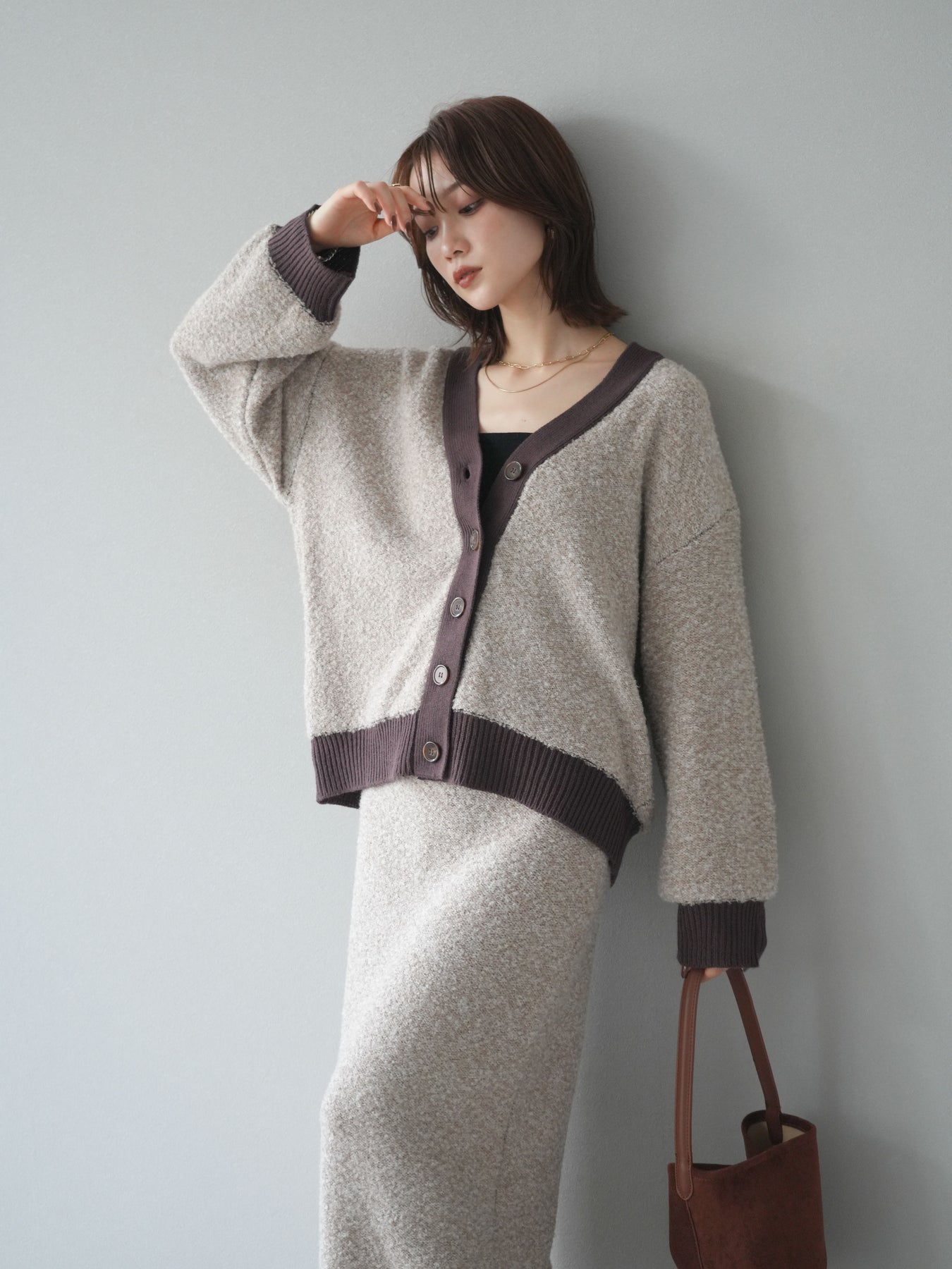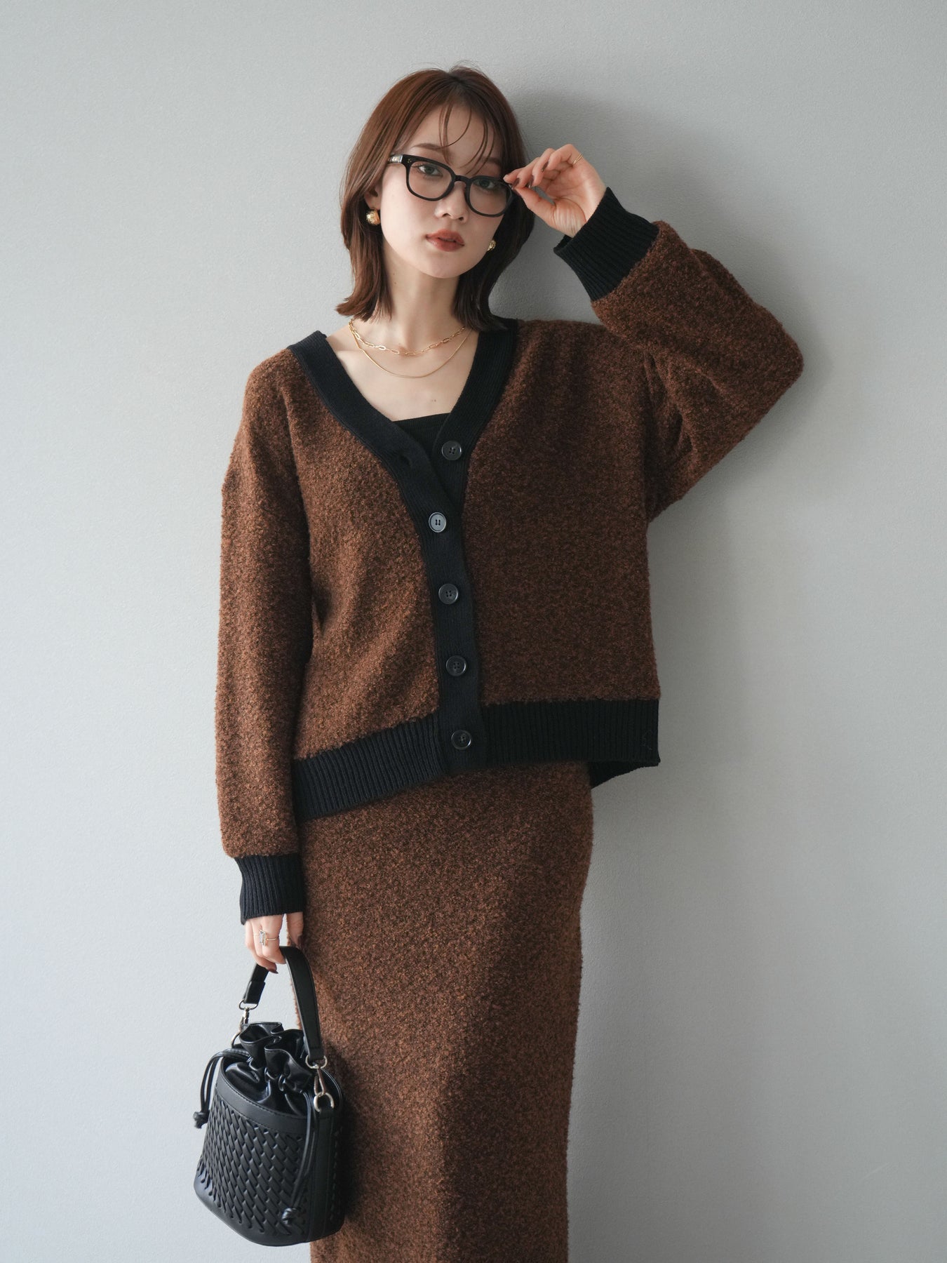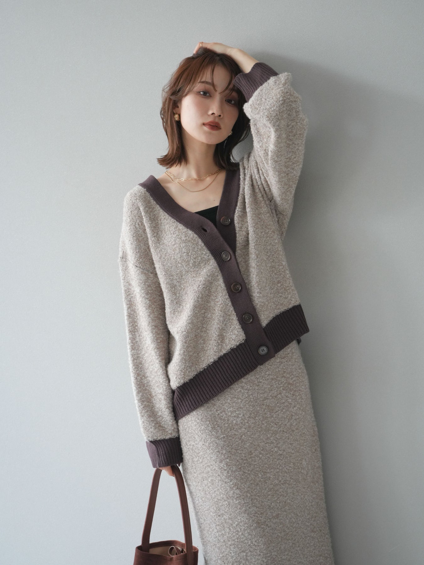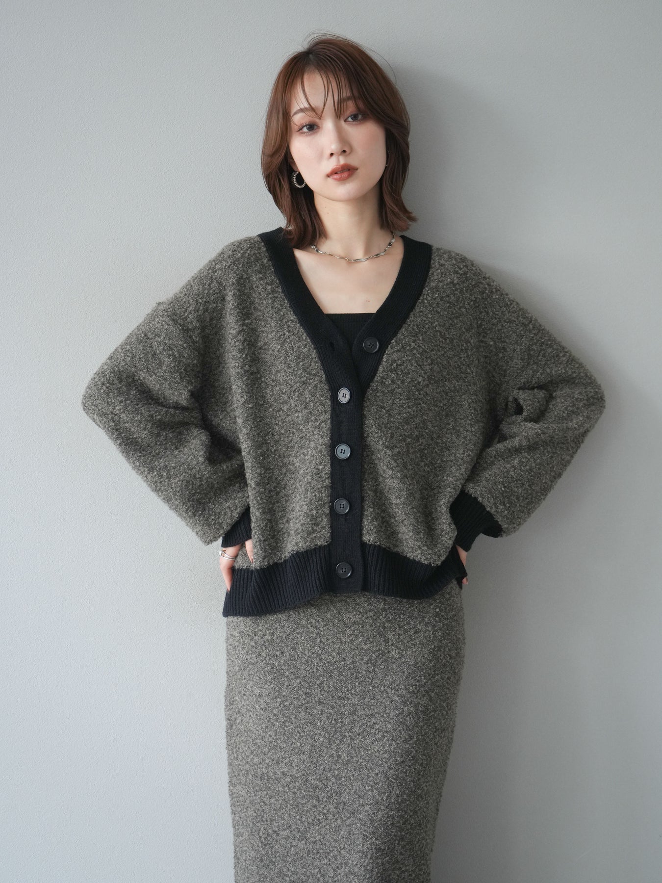 [SET]ブークレバイカラーニットカーディガン+ブークレバイカラータイトニットスカート(2set)