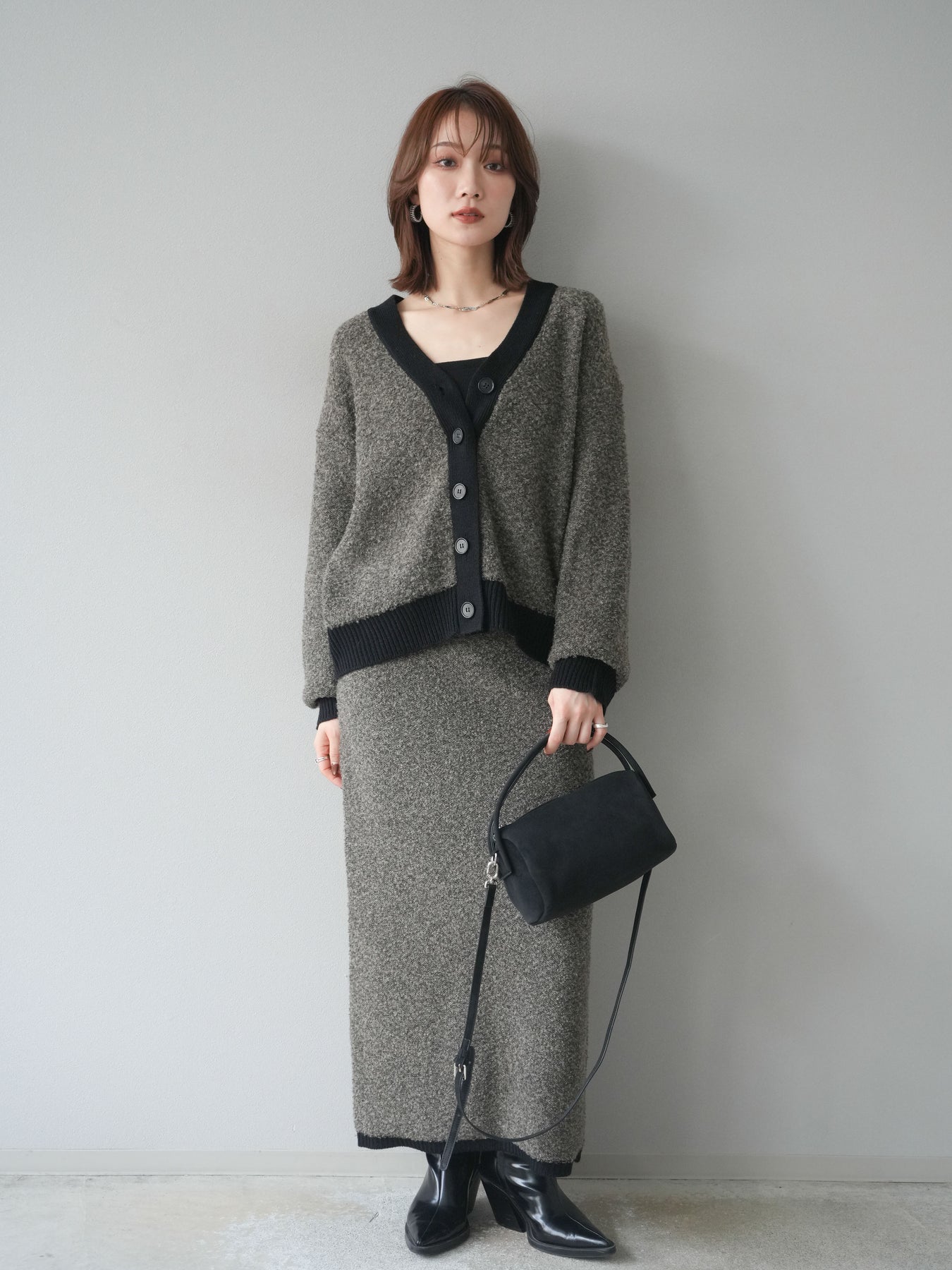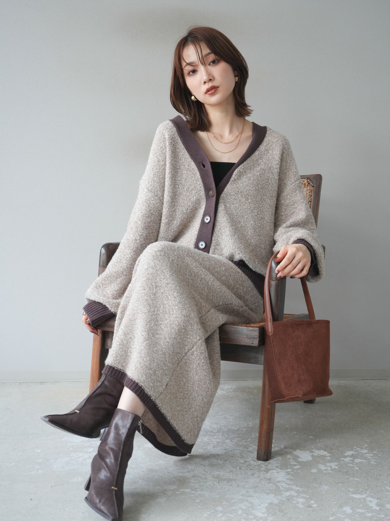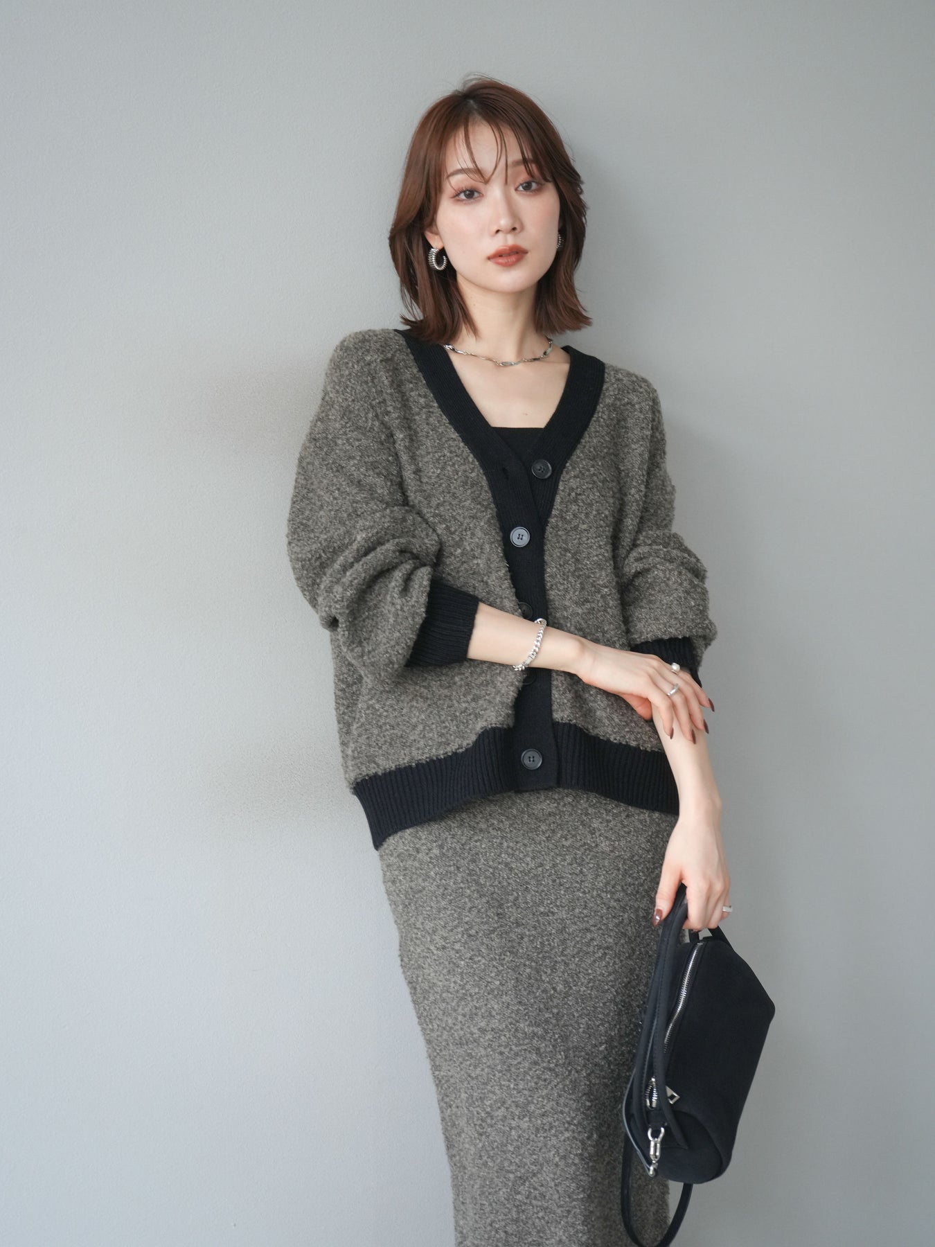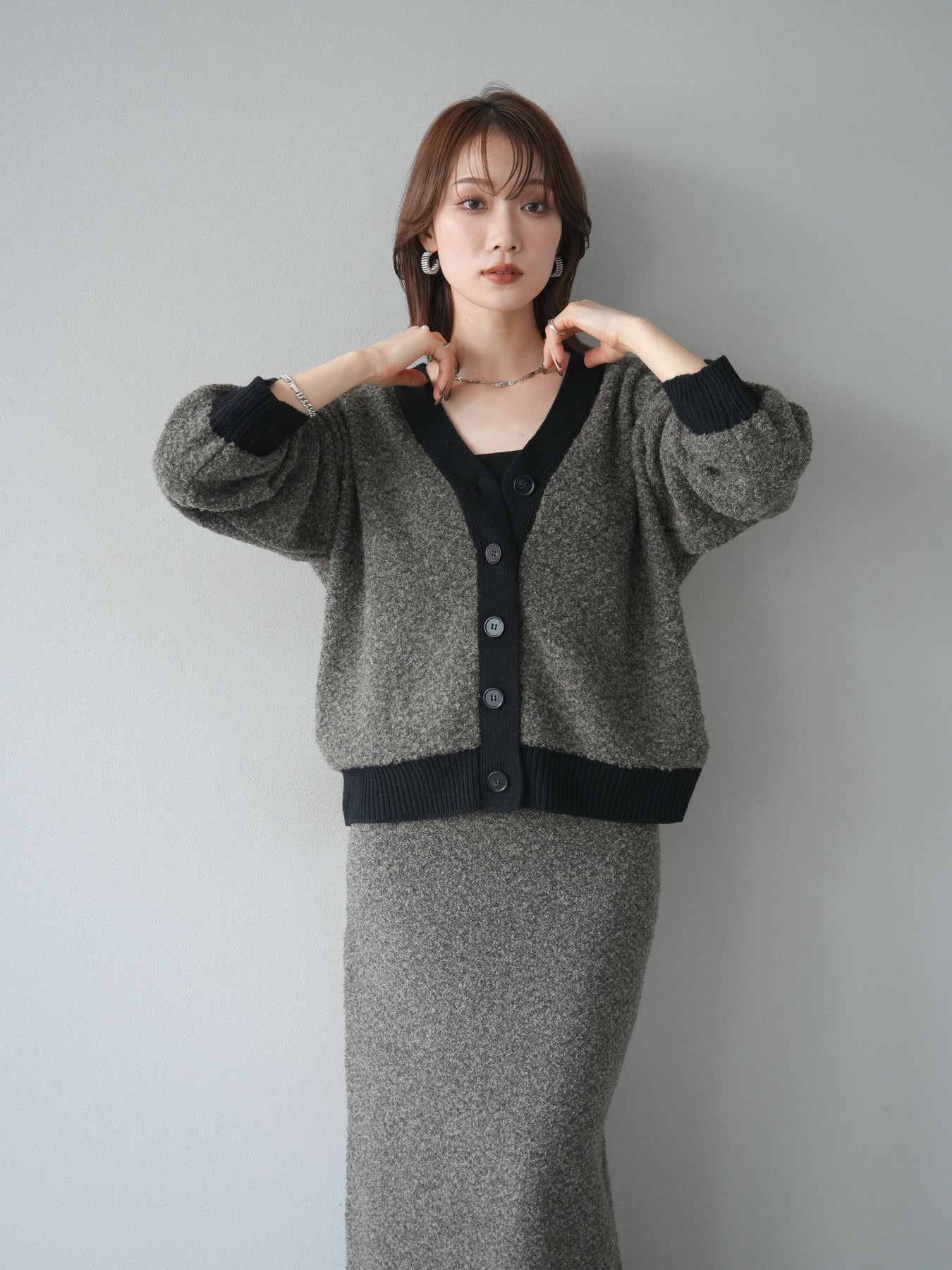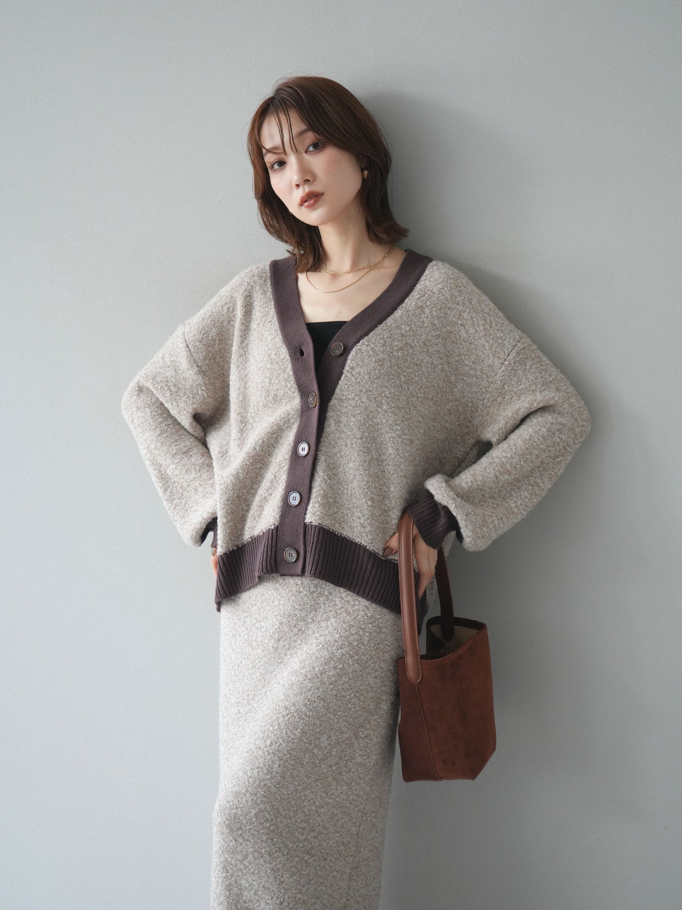 [SET]ブークレバイカラーニットカーディガン+ブークレバイカラータイトニットスカート(2set)
