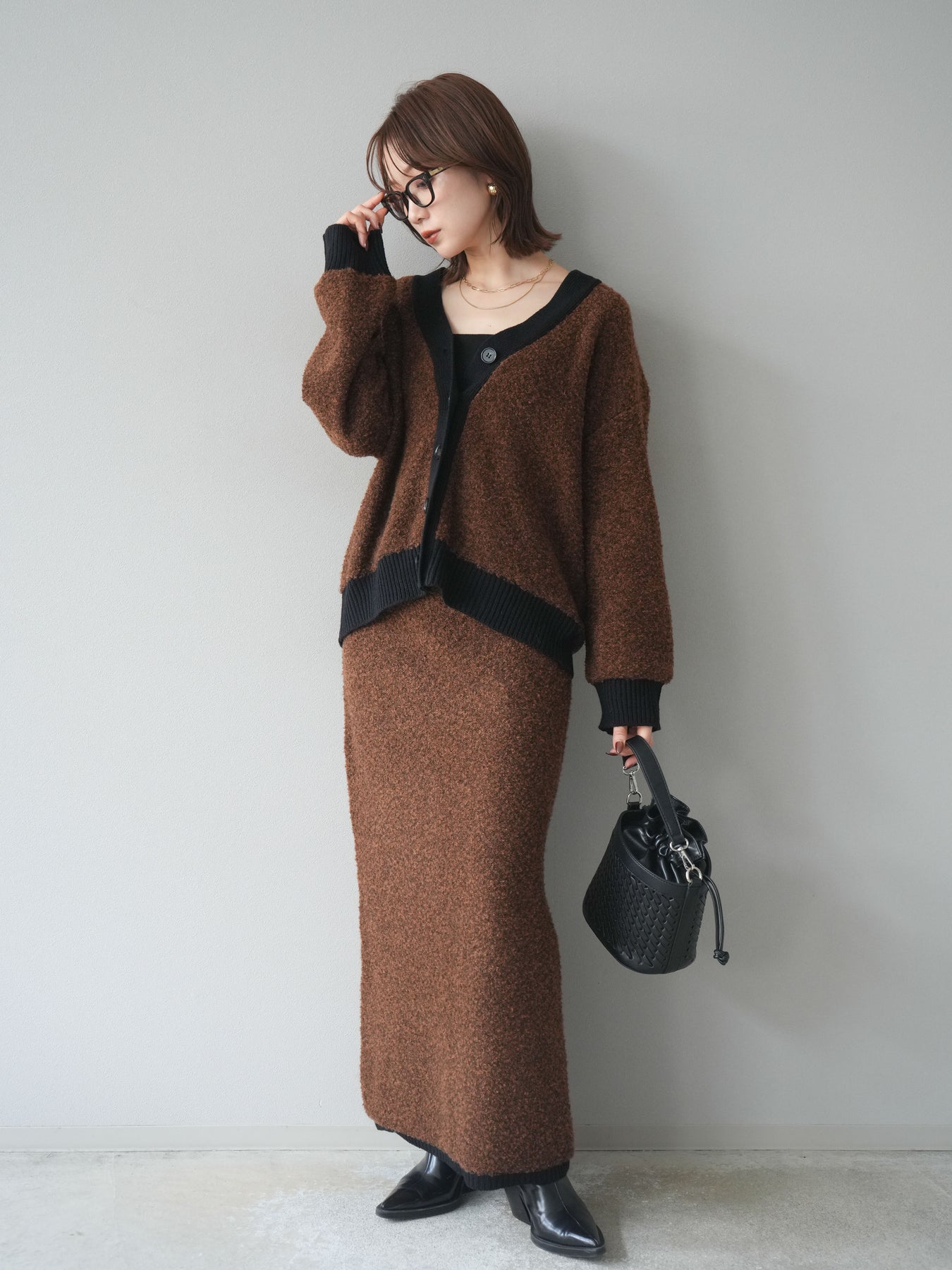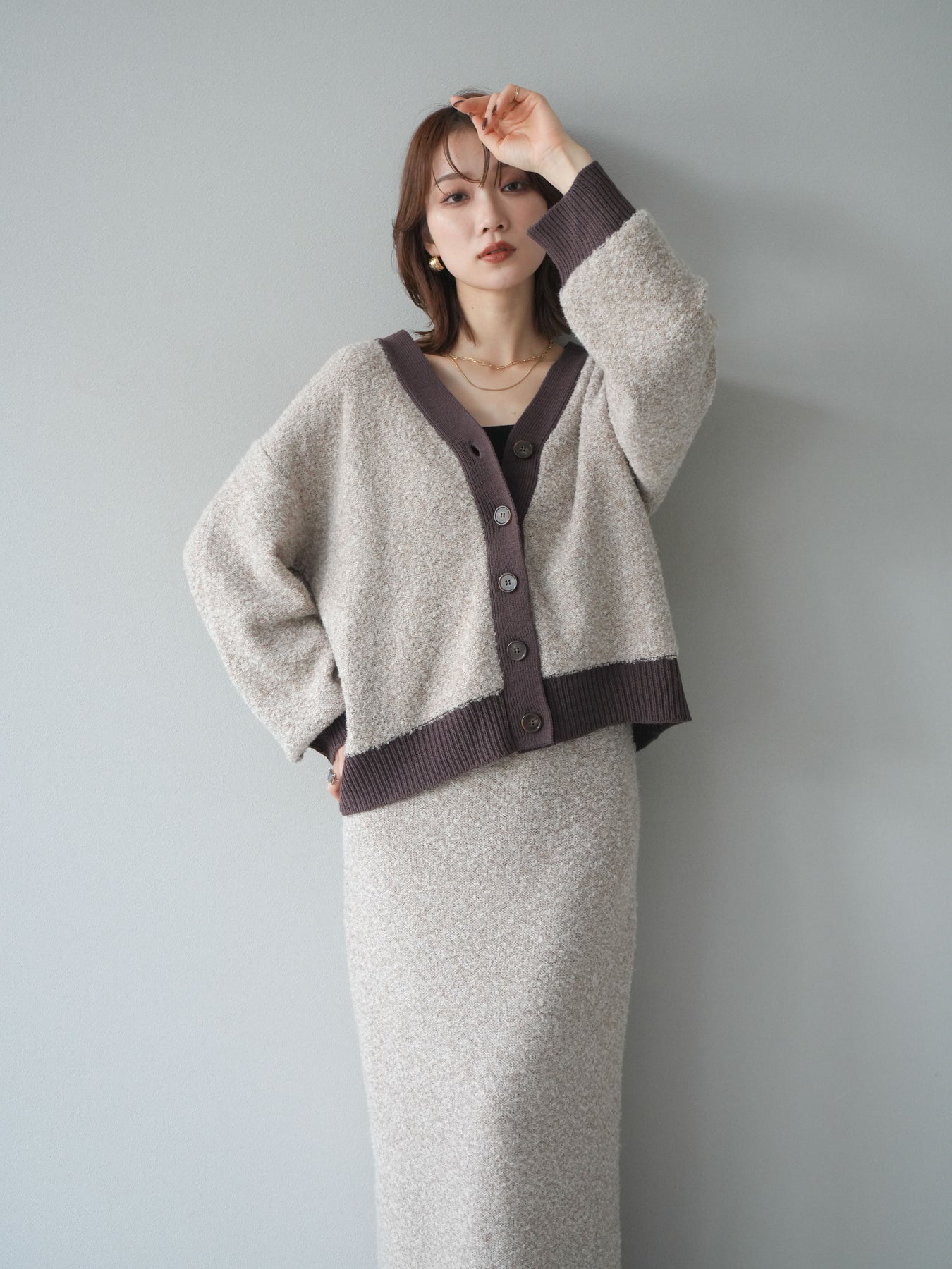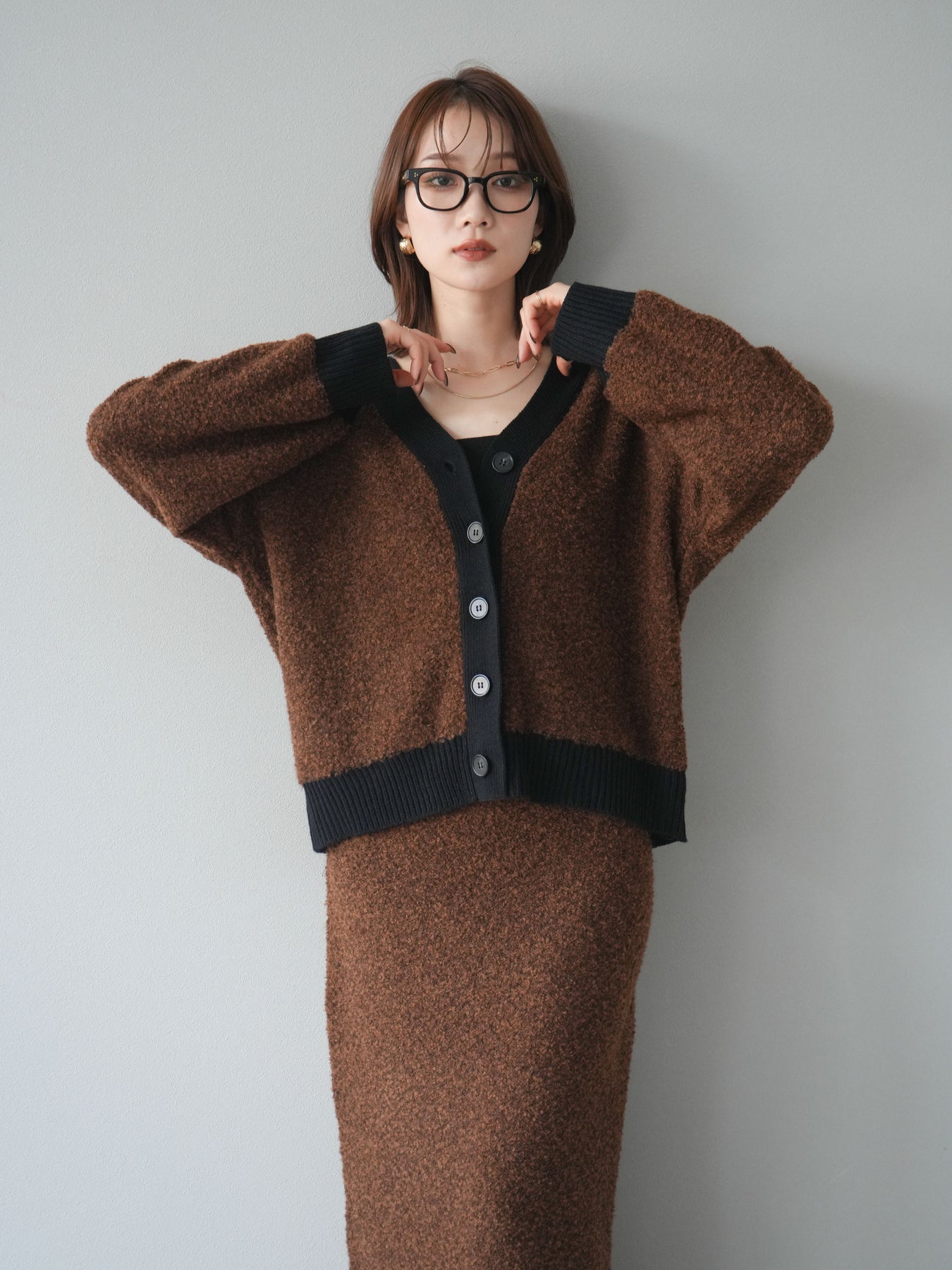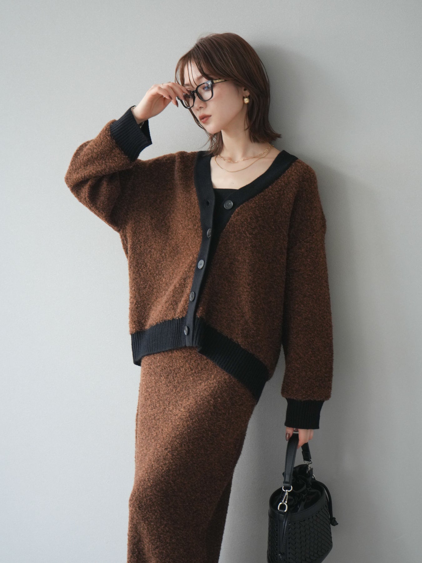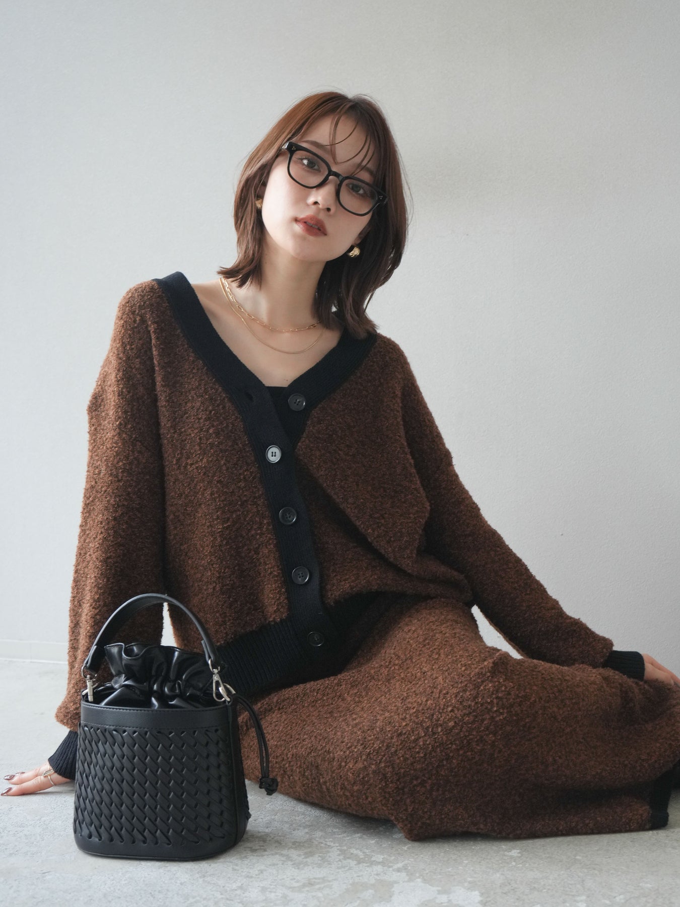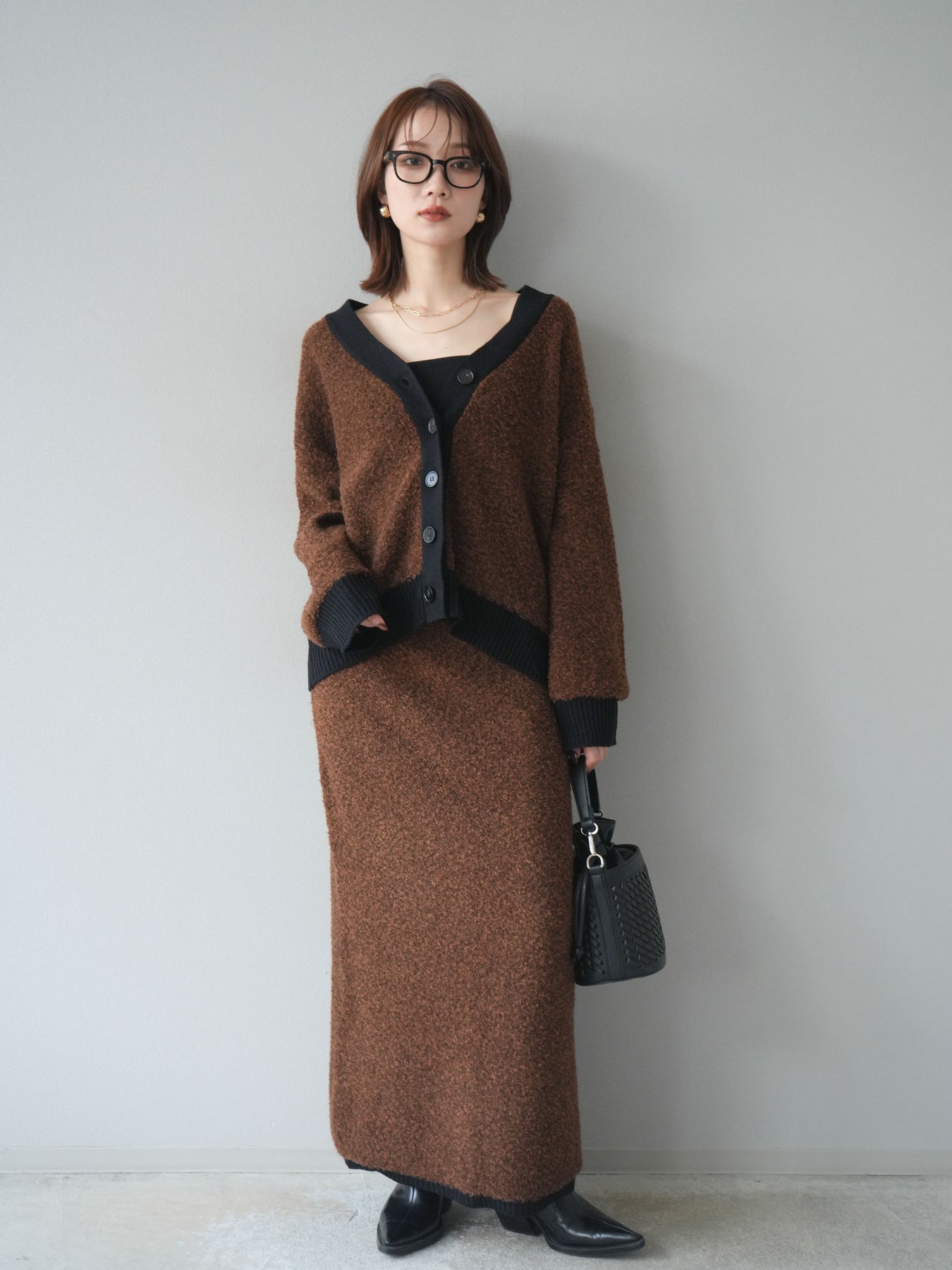 [SET]ブークレバイカラーニットカーディガン+ブークレバイカラータイトニットスカート(2set)