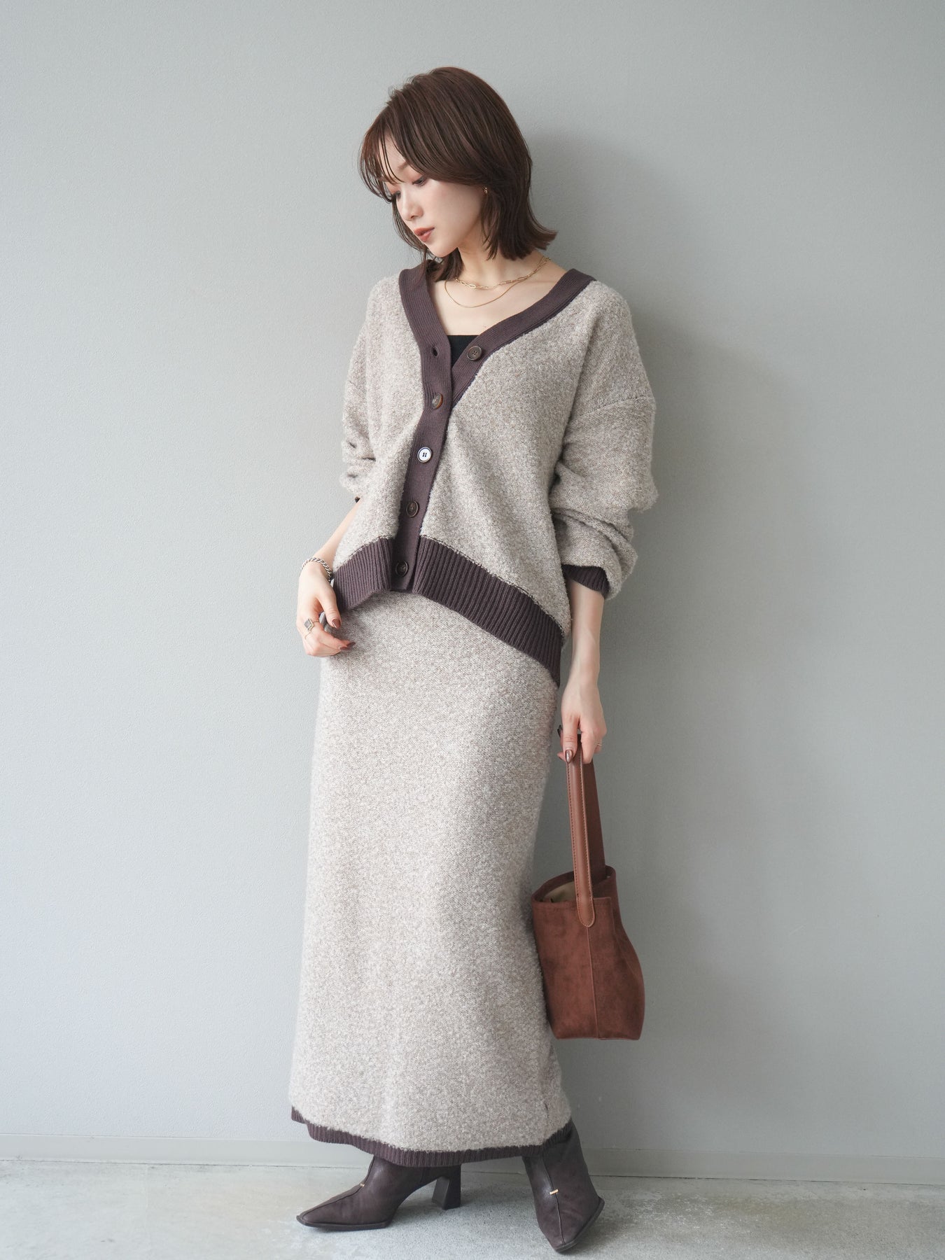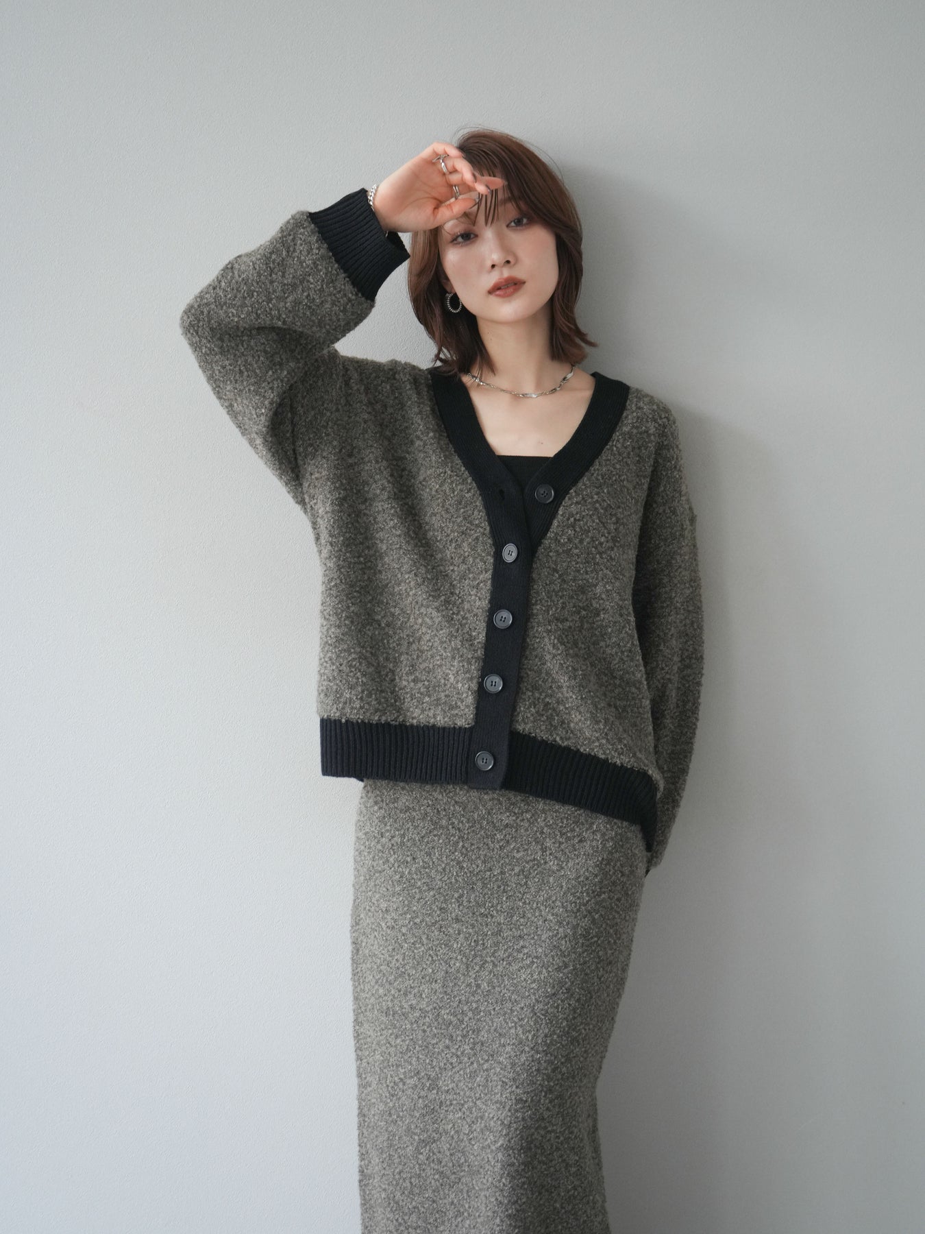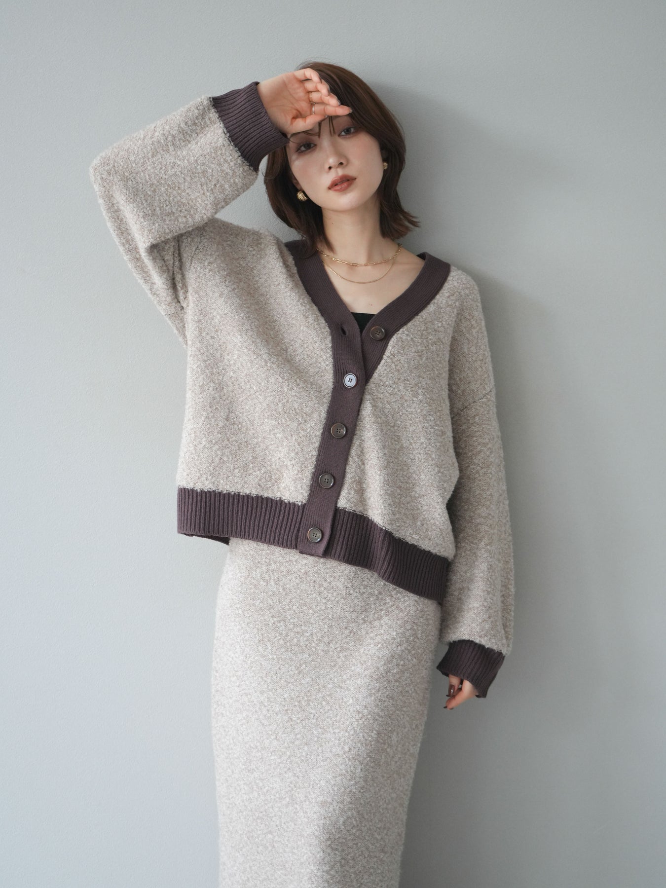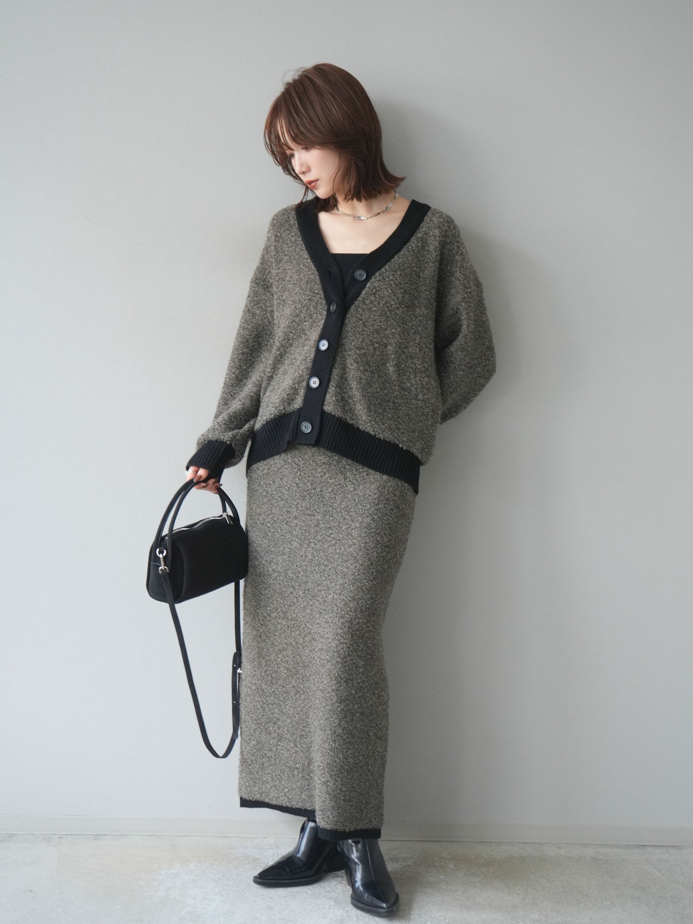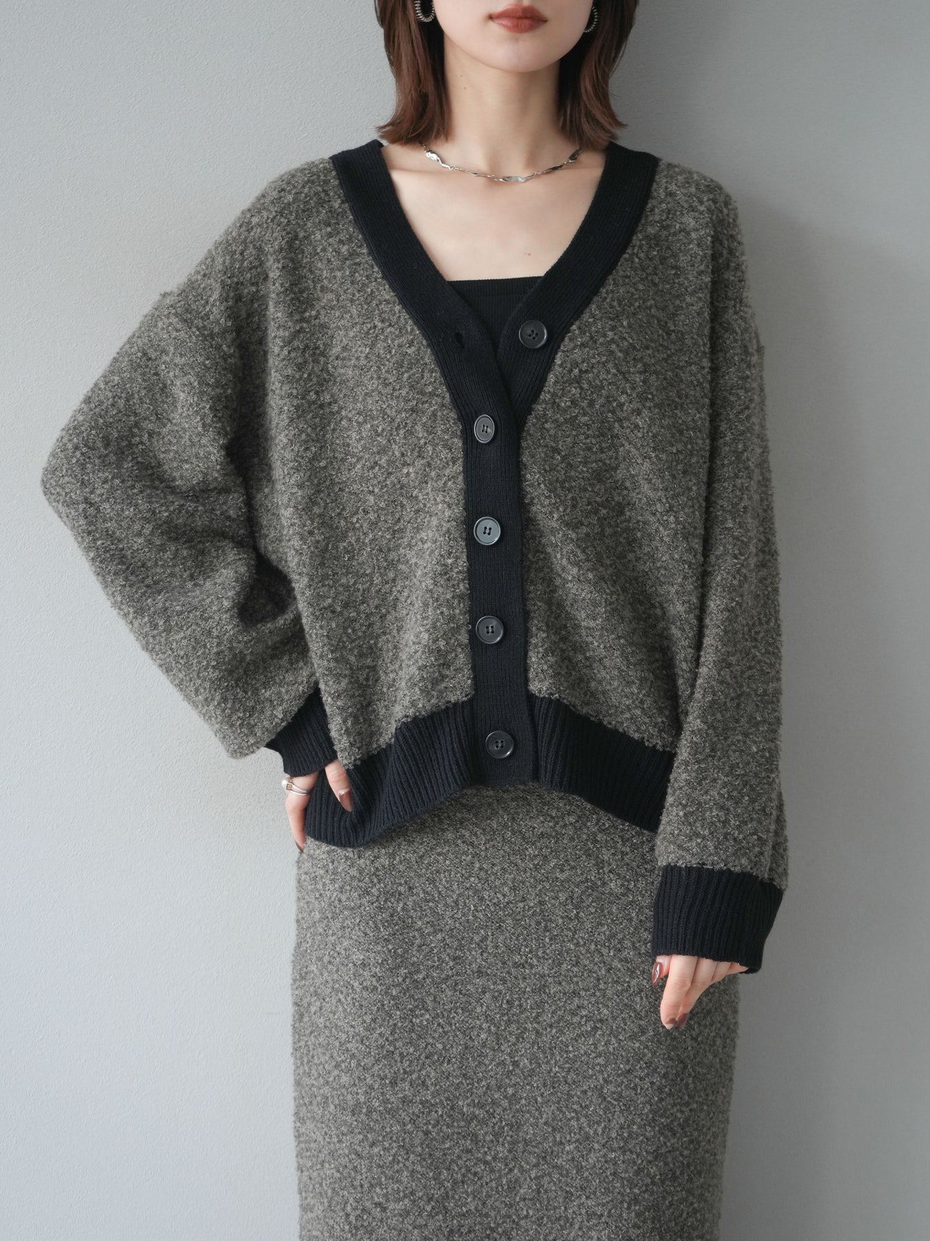 [SET]ブークレバイカラーニットカーディガン+ブークレバイカラータイトニットスカート(2set)