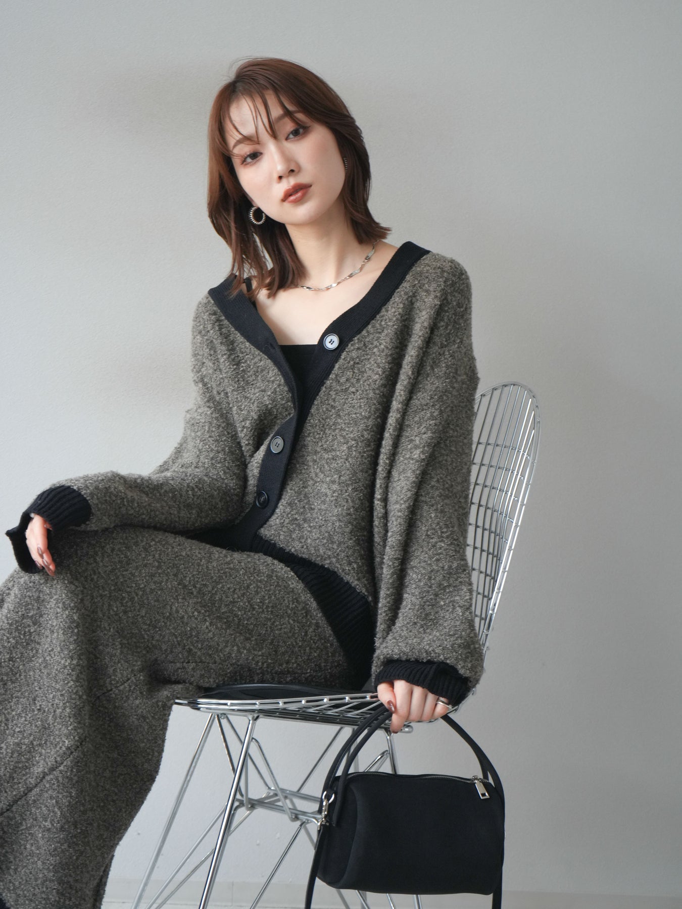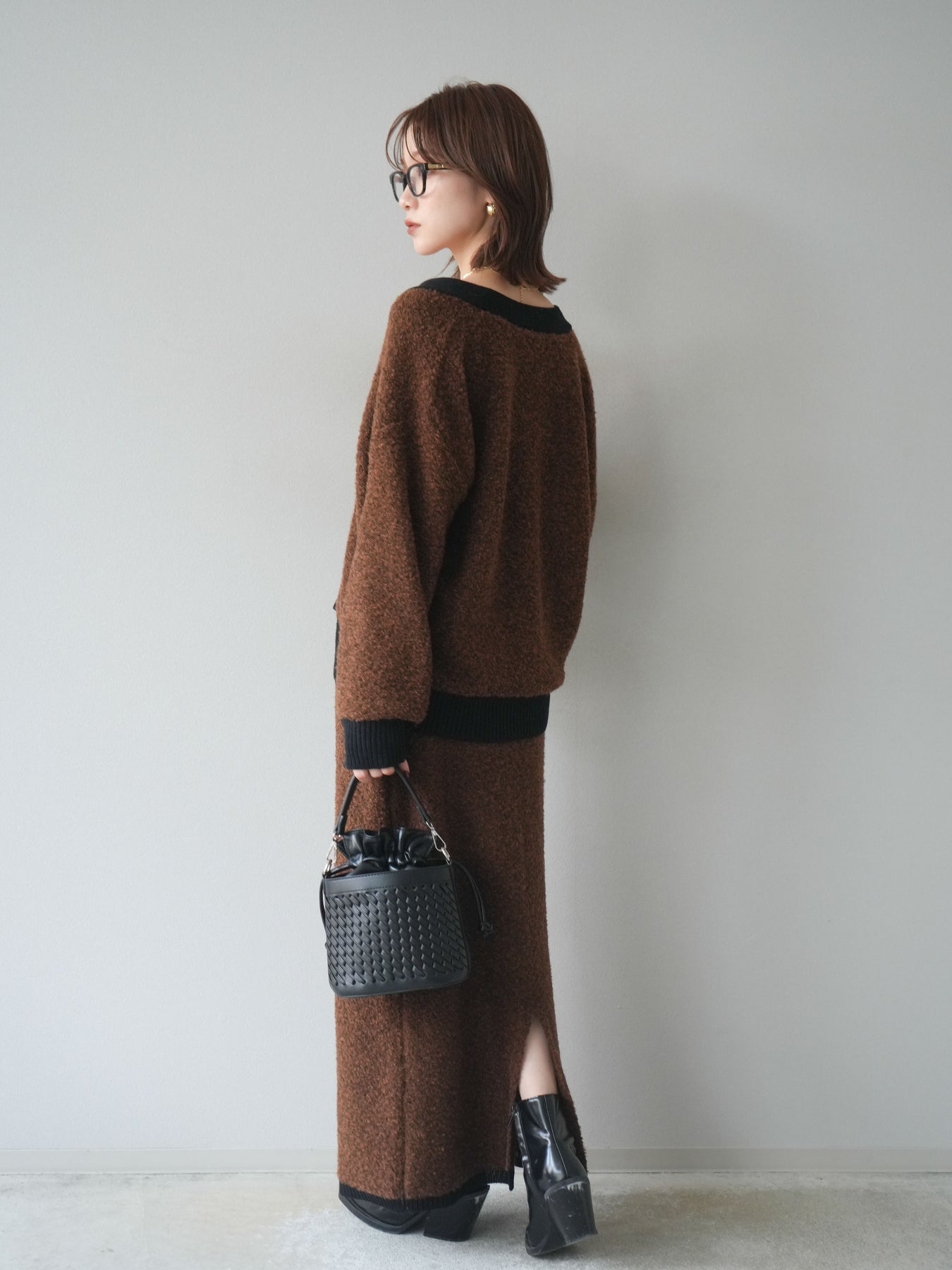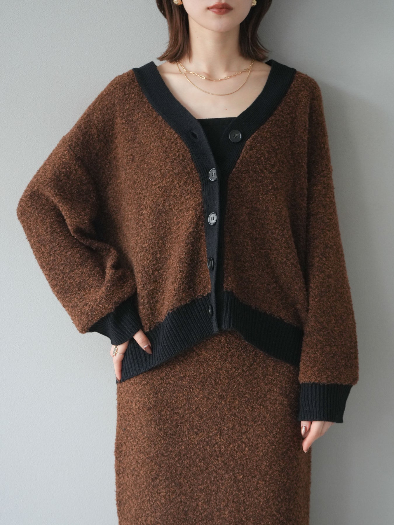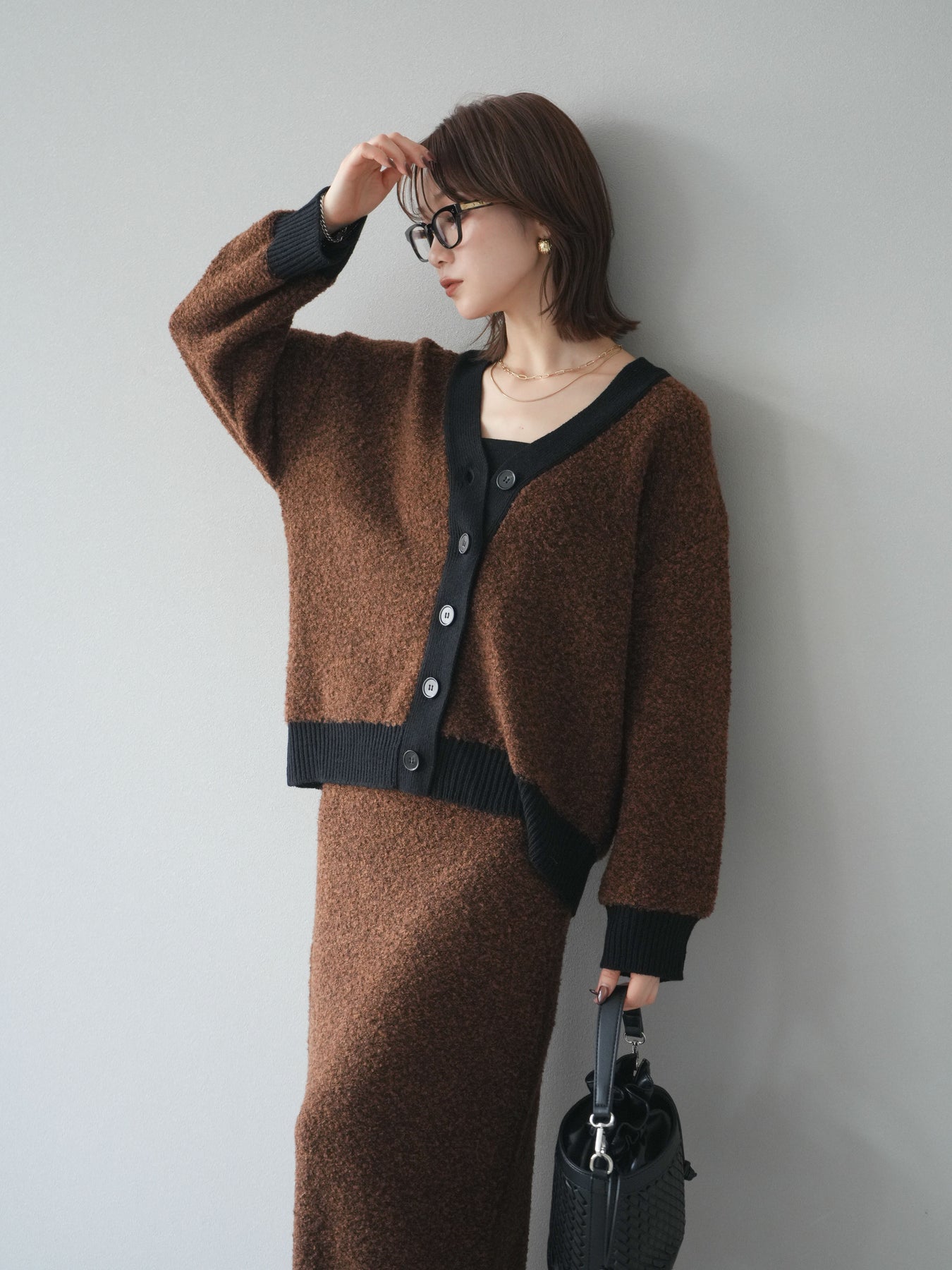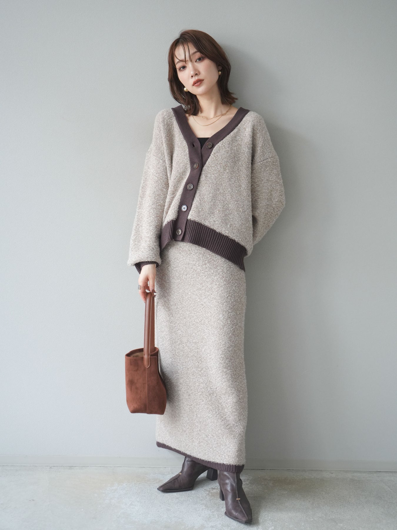 [SET]ブークレバイカラーニットカーディガン+ブークレバイカラータイトニットスカート(2set)