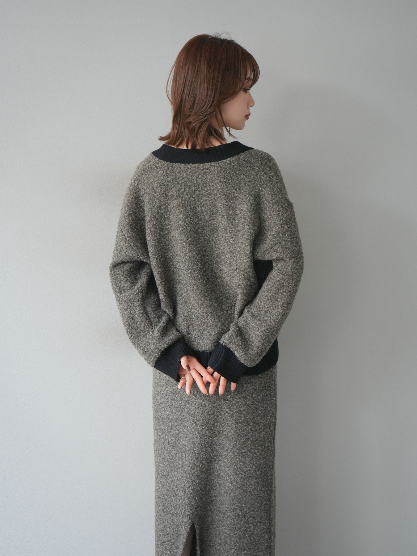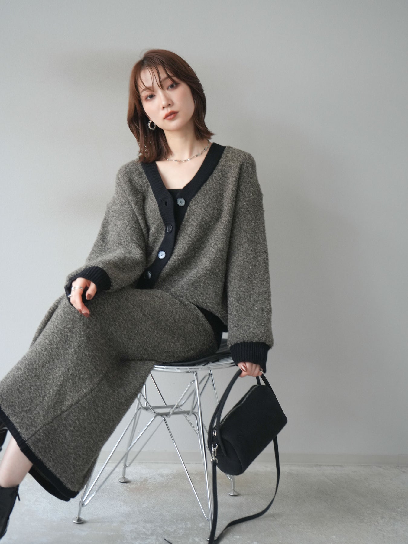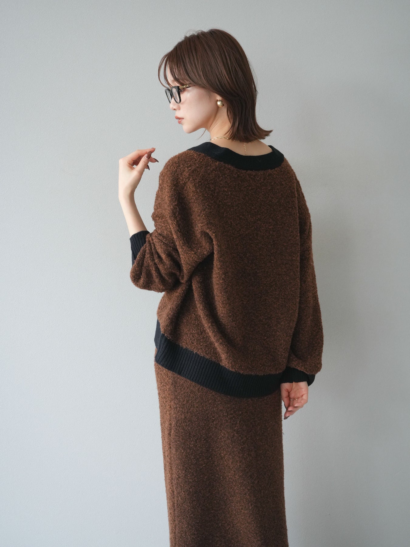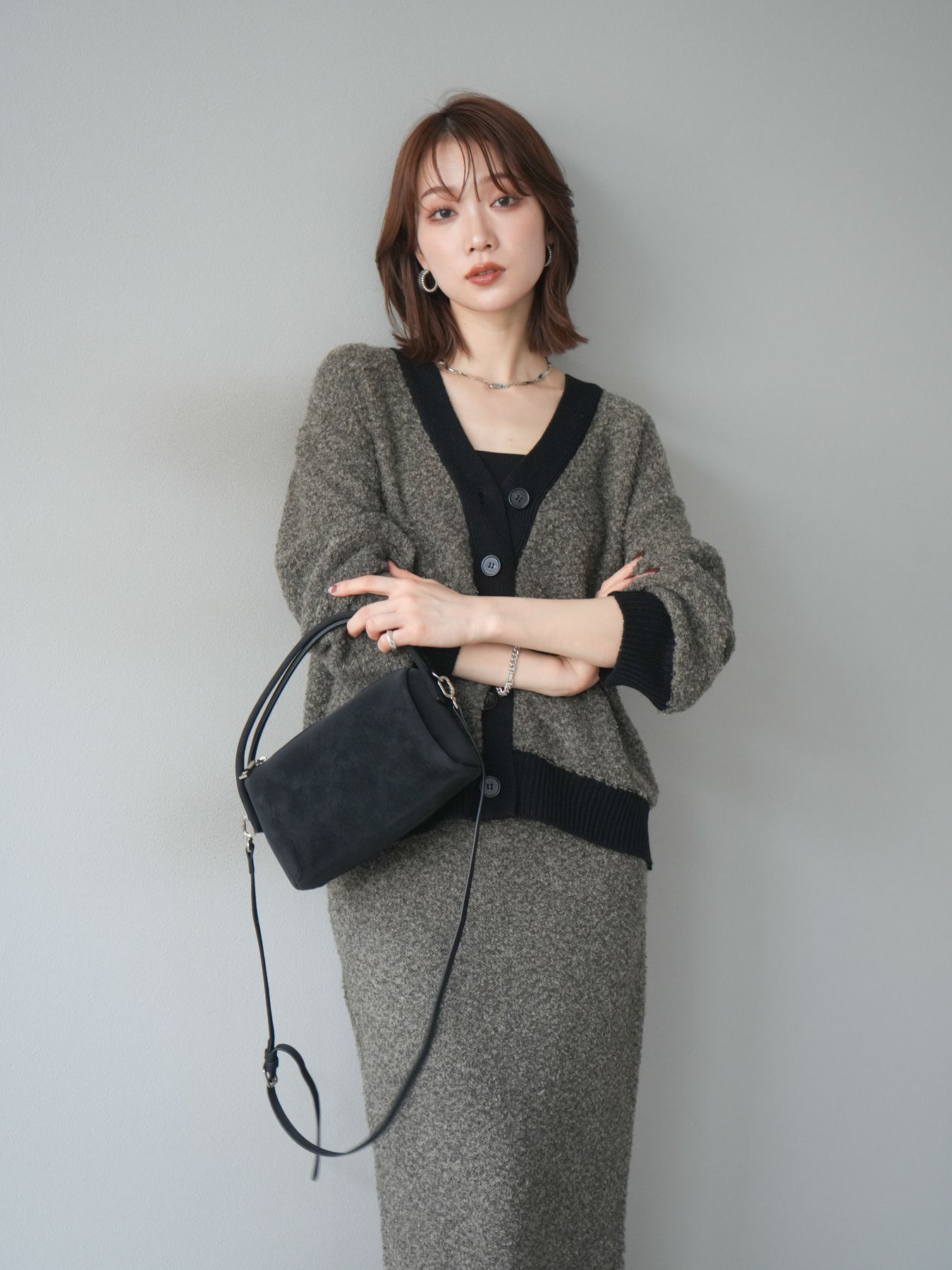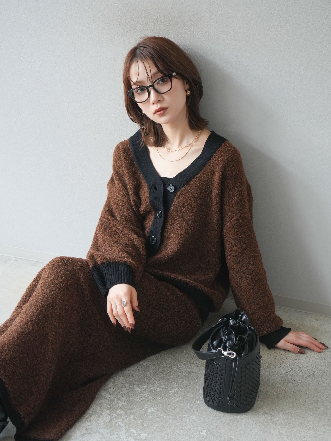 [SET]ブークレバイカラーニットカーディガン+ブークレバイカラータイトニットスカート(2set)