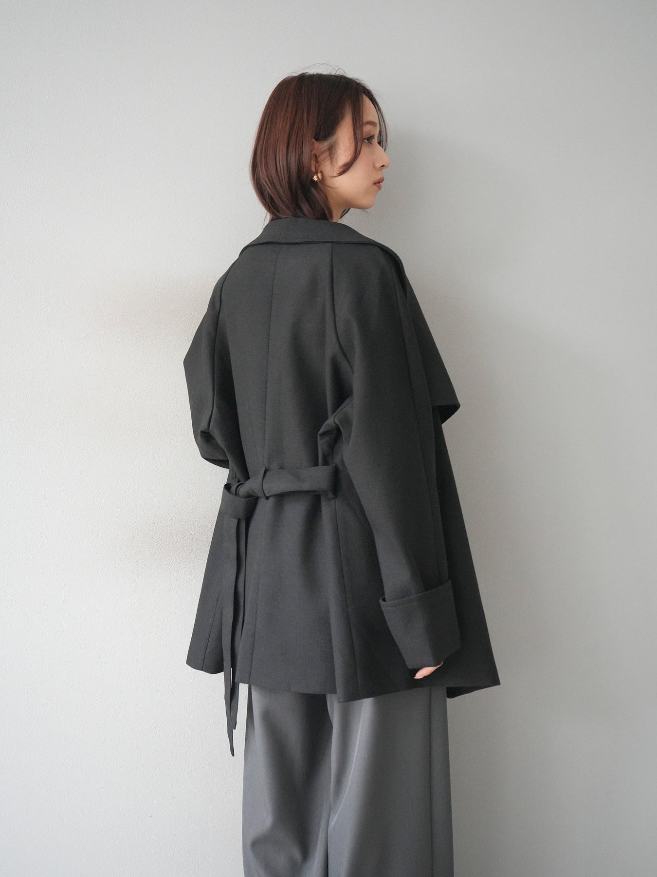 肩幅55cm バスト122cm アームホール35cm 袖丈67cm 袖口32cm 着丈74cm 透け感なし 裏地あり 伸縮性なし フロントポケットあり ベルト全長176cm