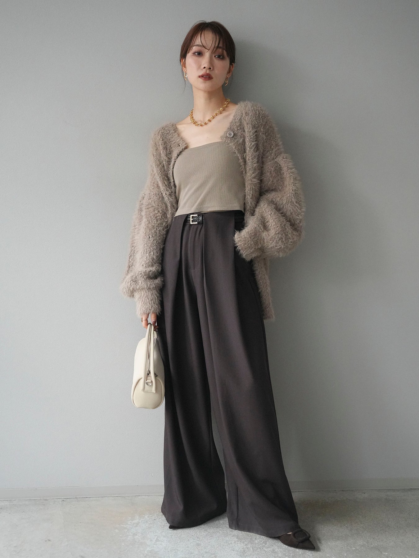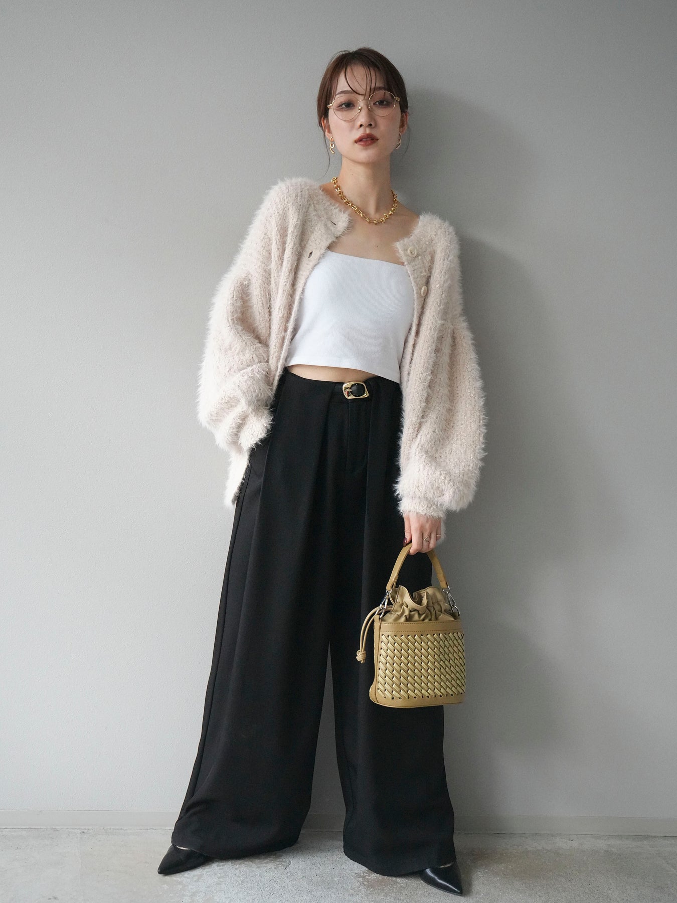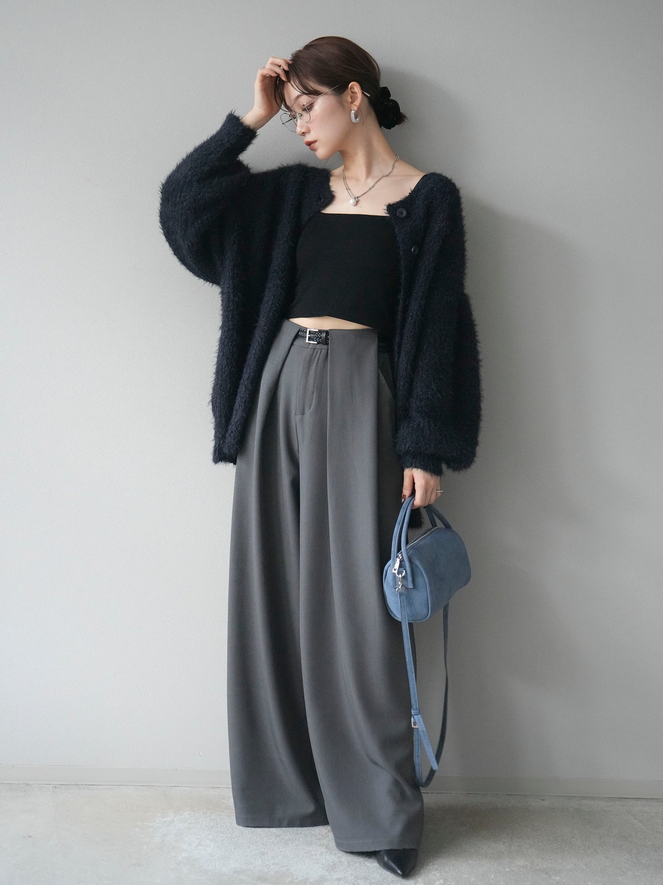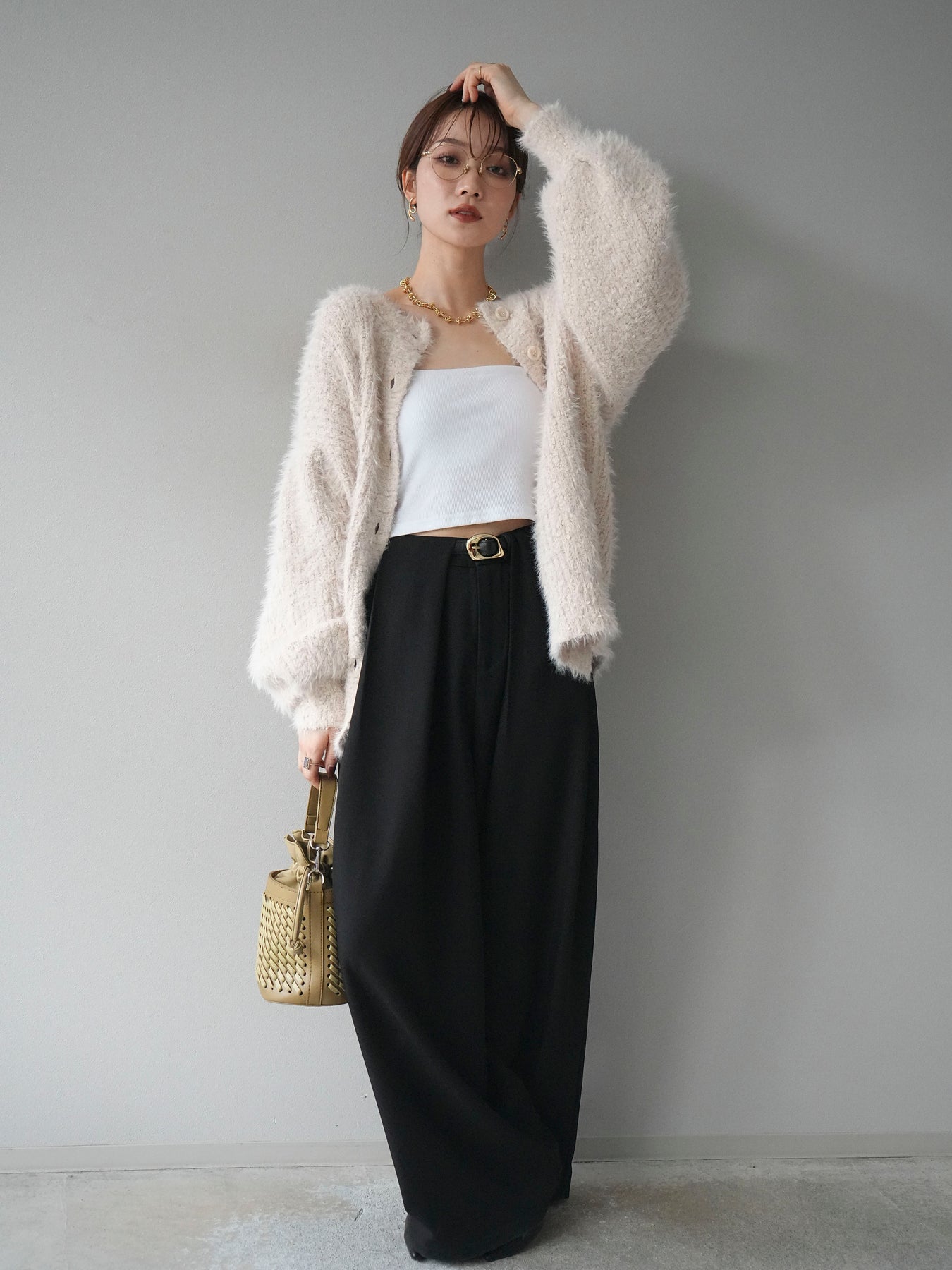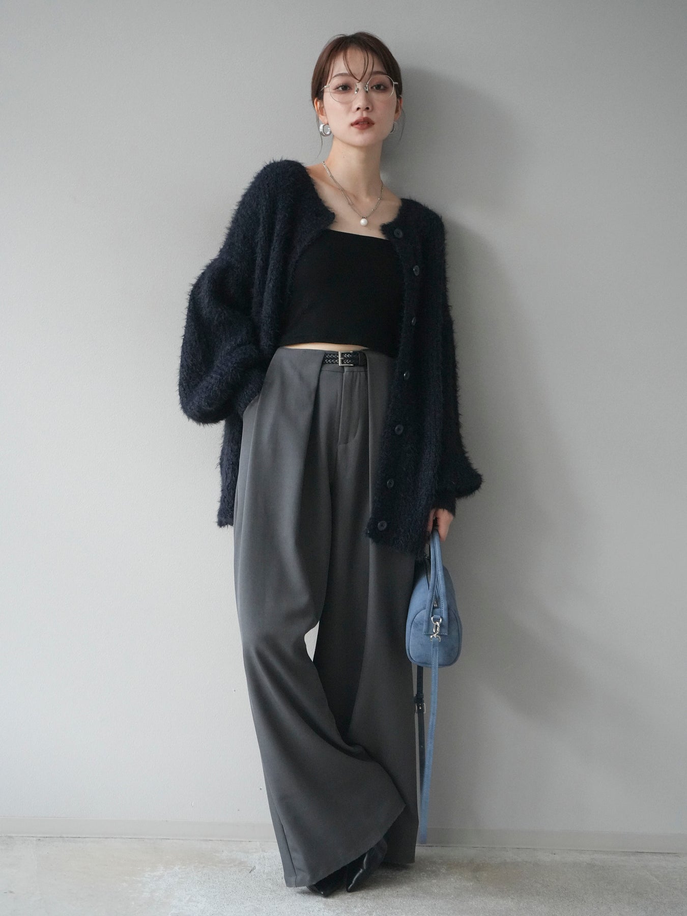 [SET]クルーネックランダムシャギーカーディガン+ベルトループデザインワイドパンツ(2set)