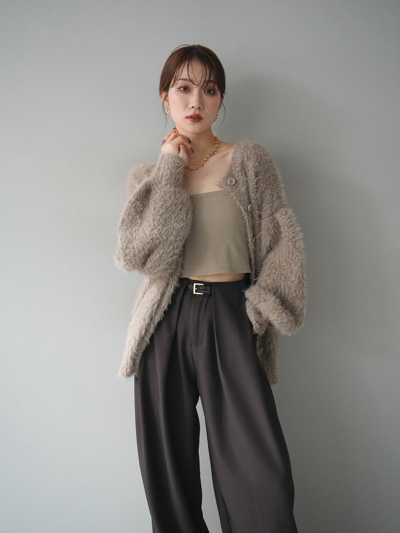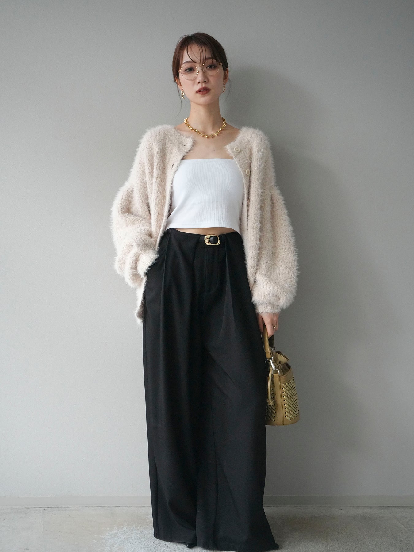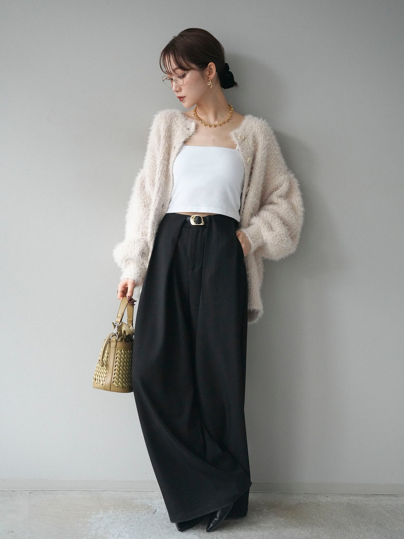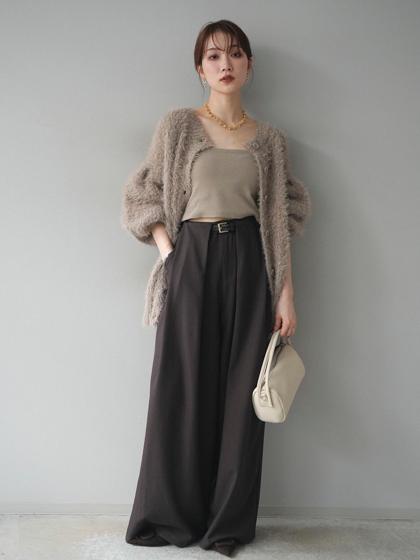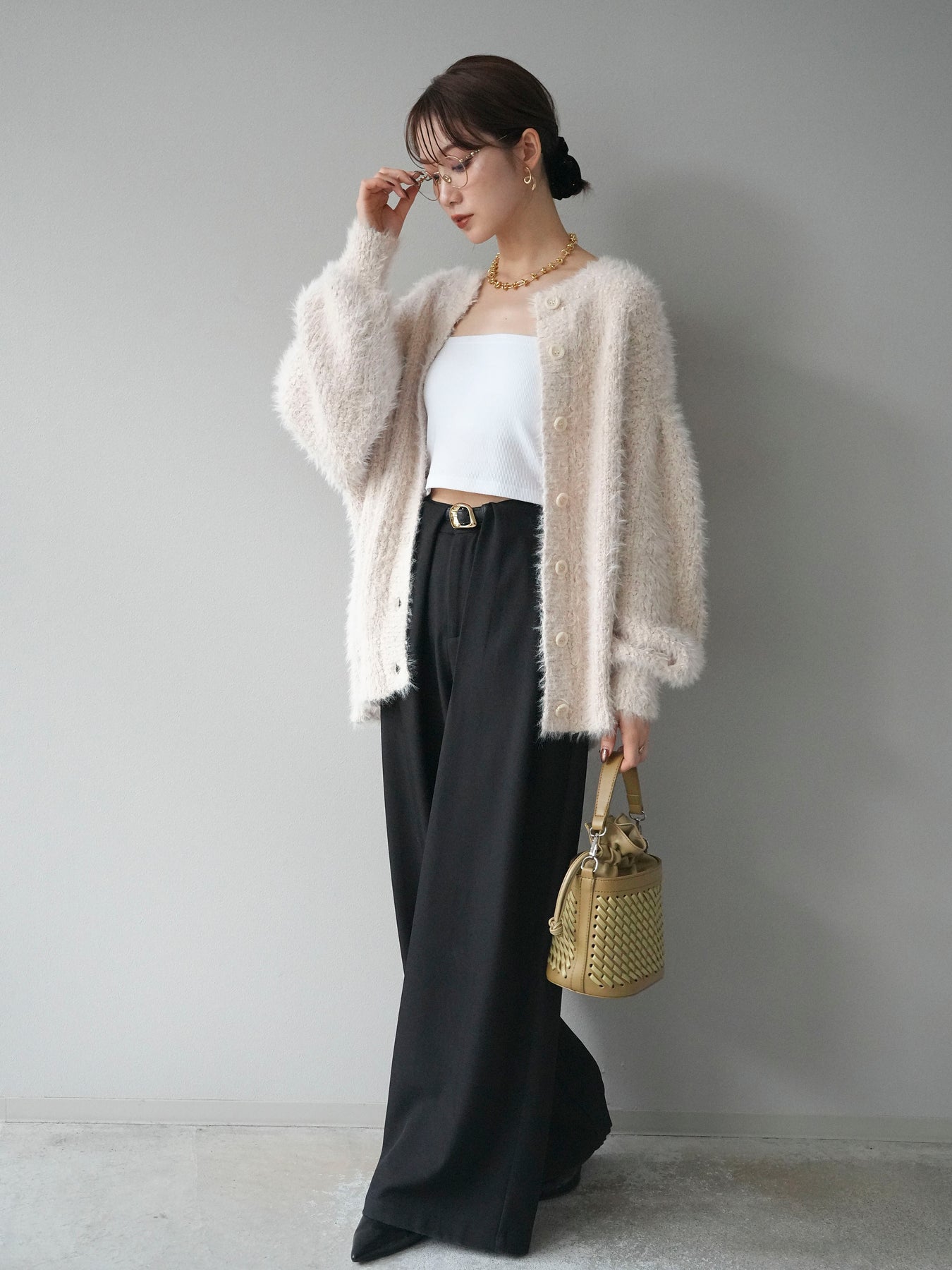 [SET]クルーネックランダムシャギーカーディガン+ベルトループデザインワイドパンツ(2set)