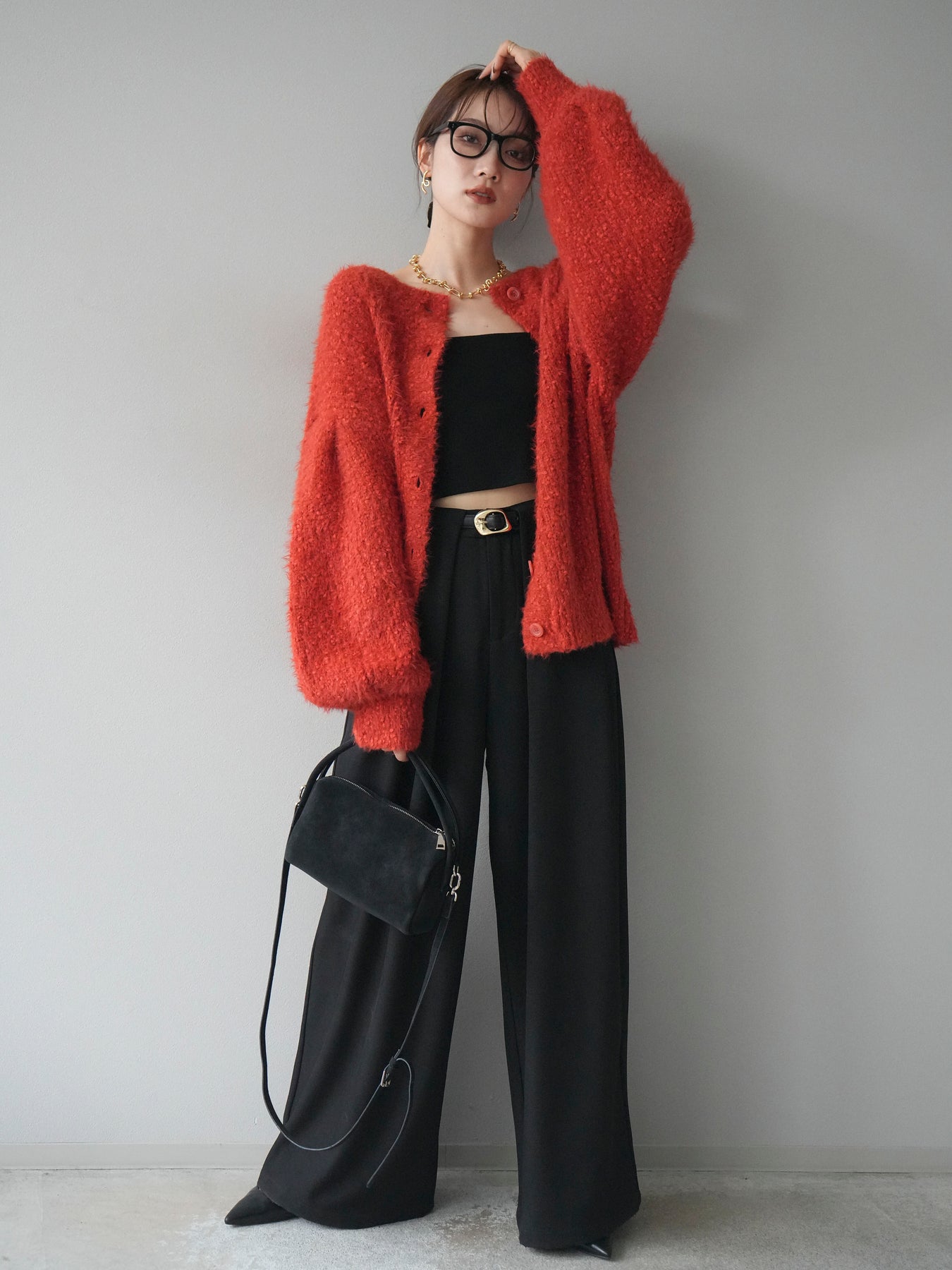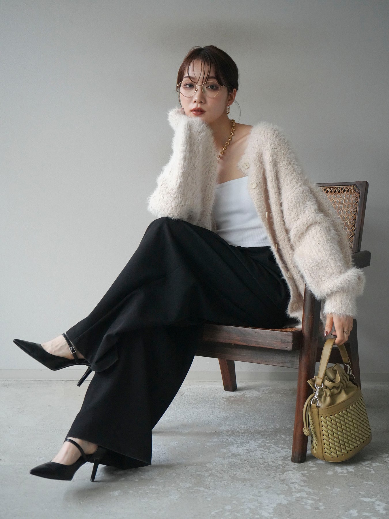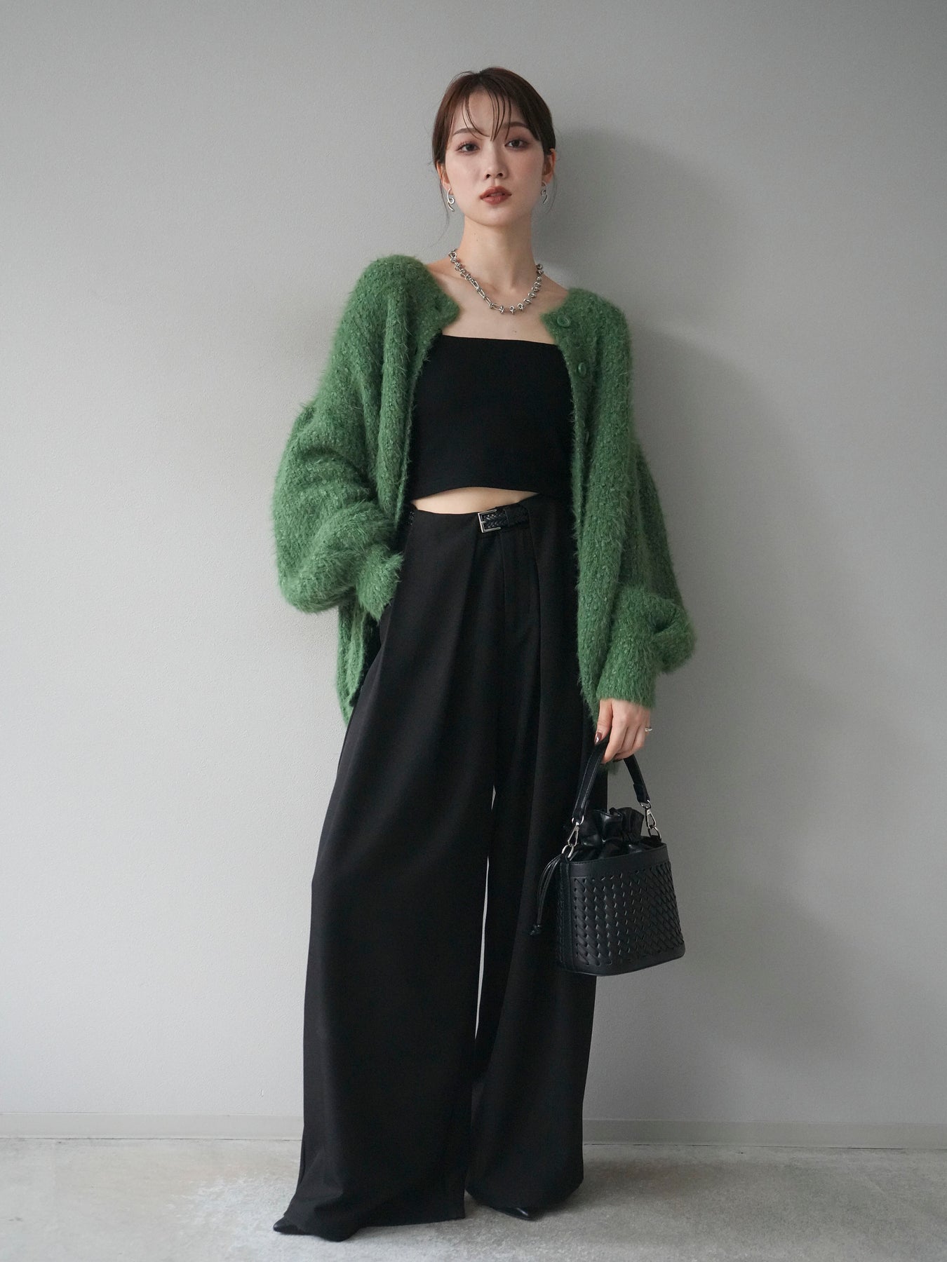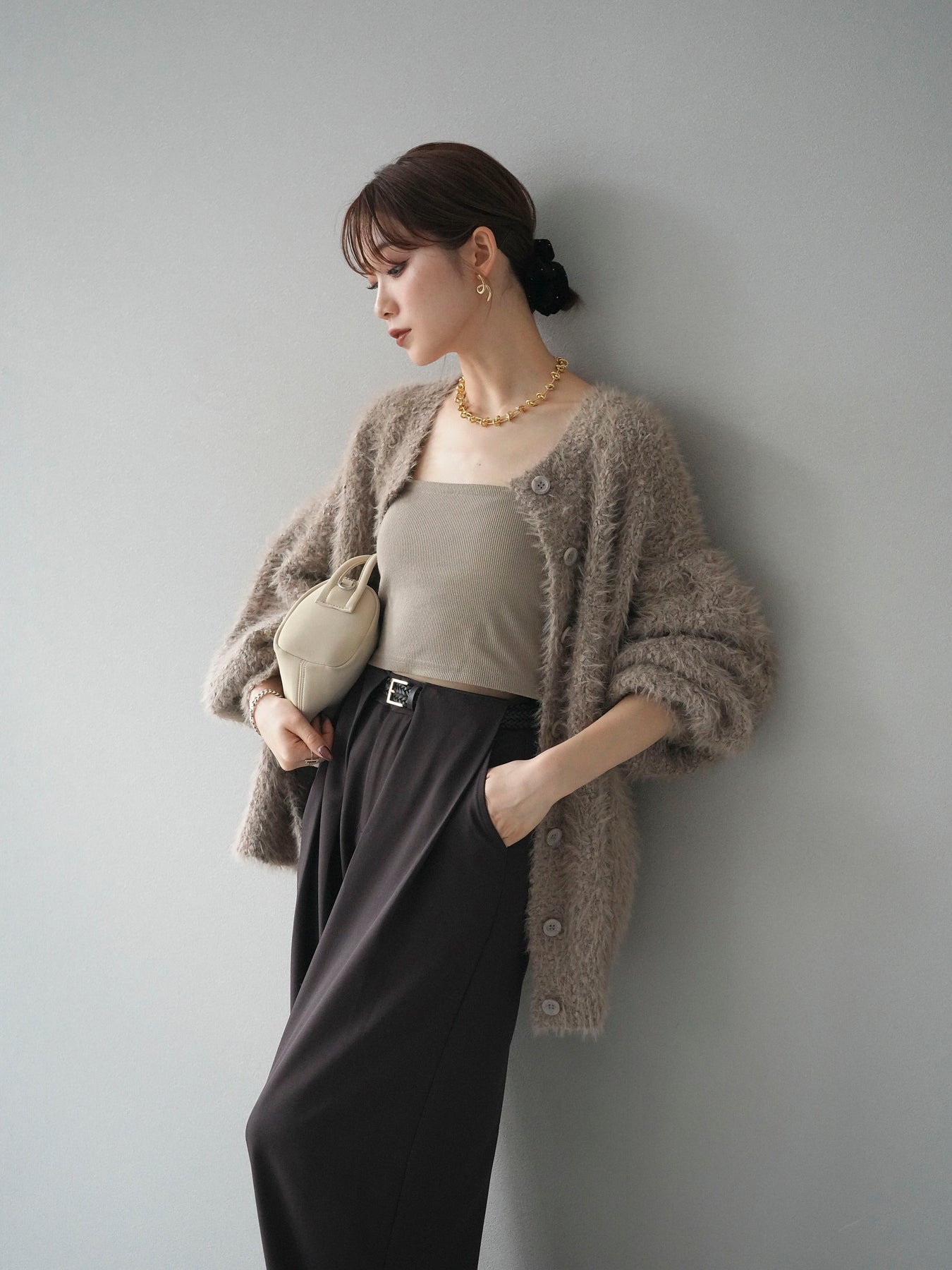 [SET]クルーネックランダムシャギーカーディガン+ベルトループデザインワイドパンツ(2set)