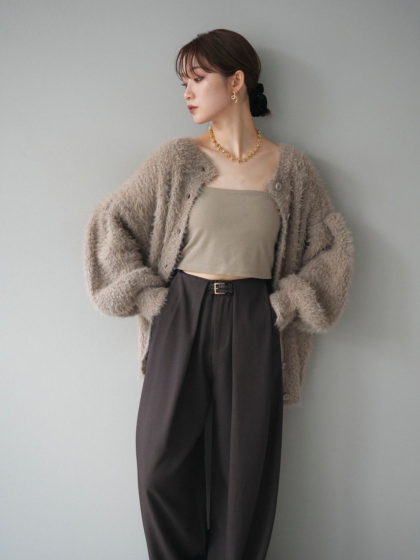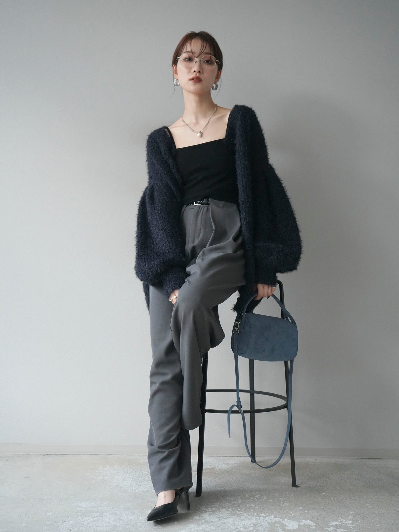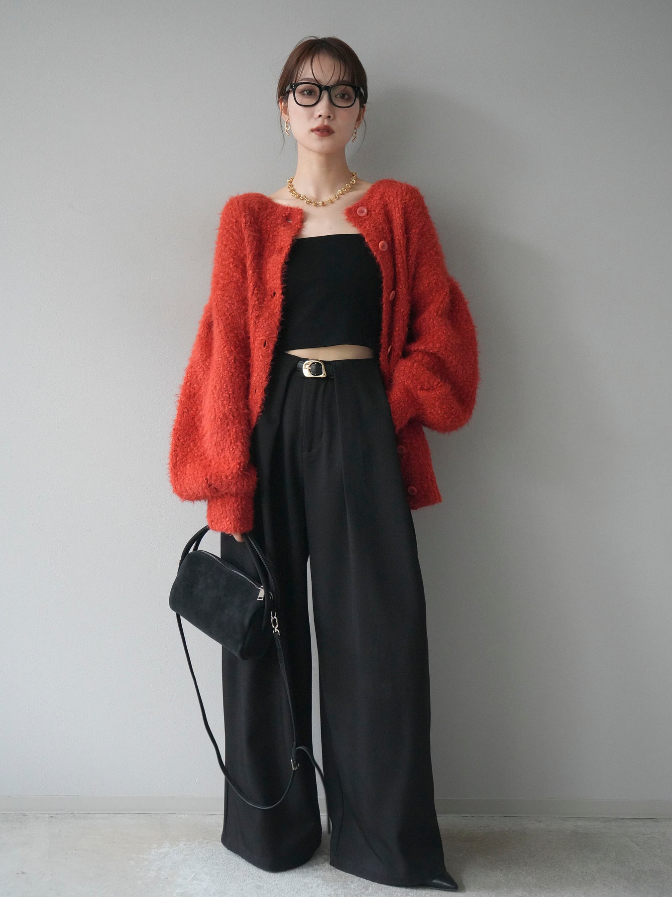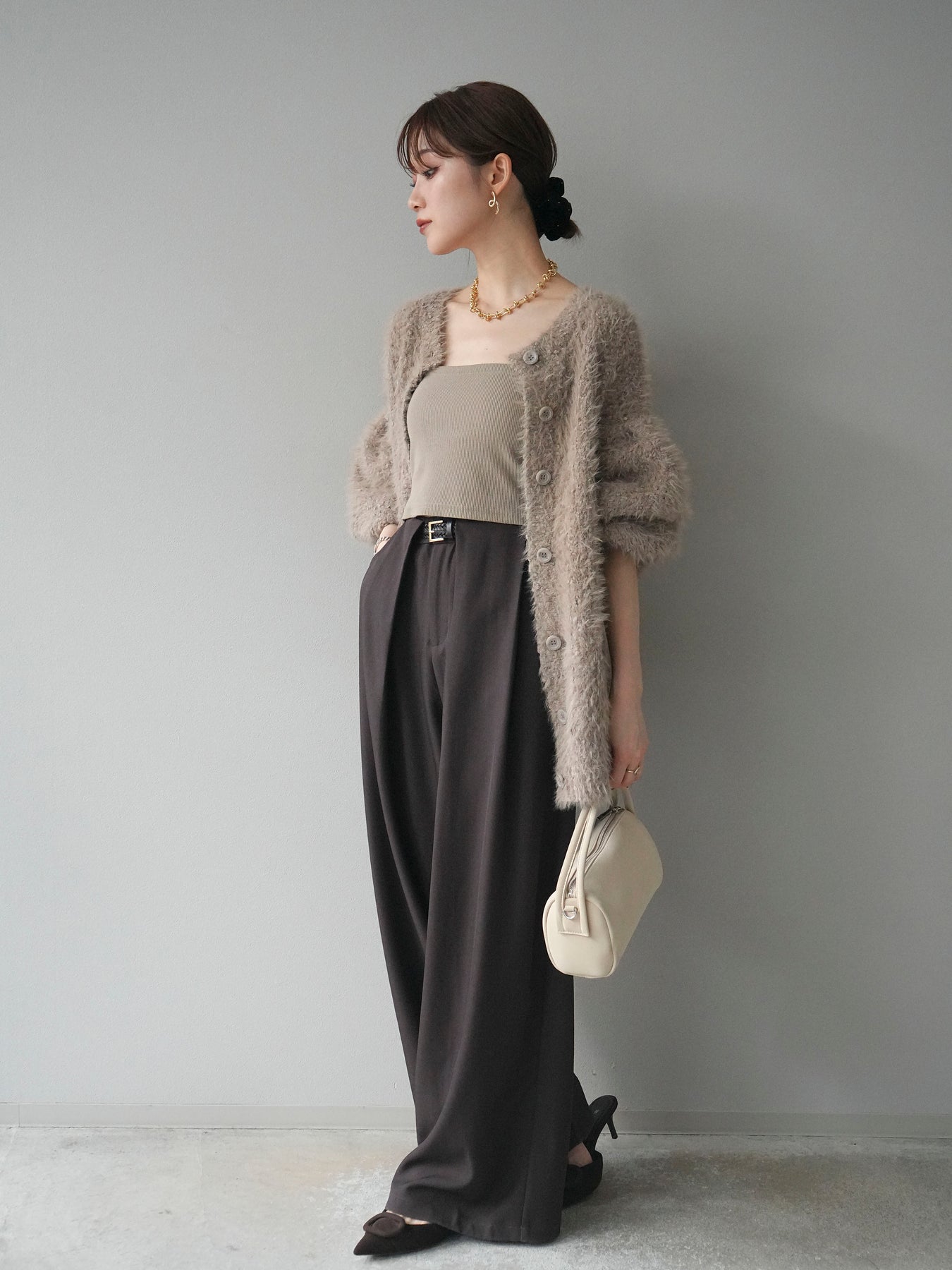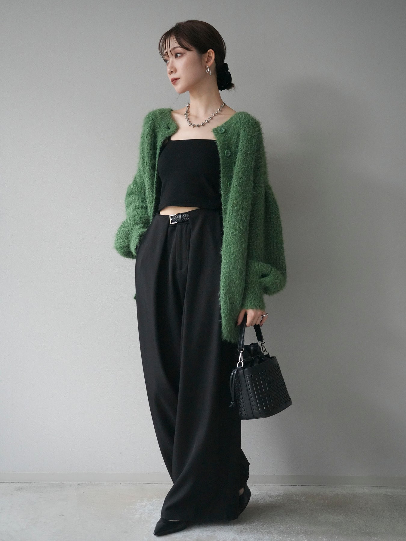 [SET]クルーネックランダムシャギーカーディガン+ベルトループデザインワイドパンツ(2set)