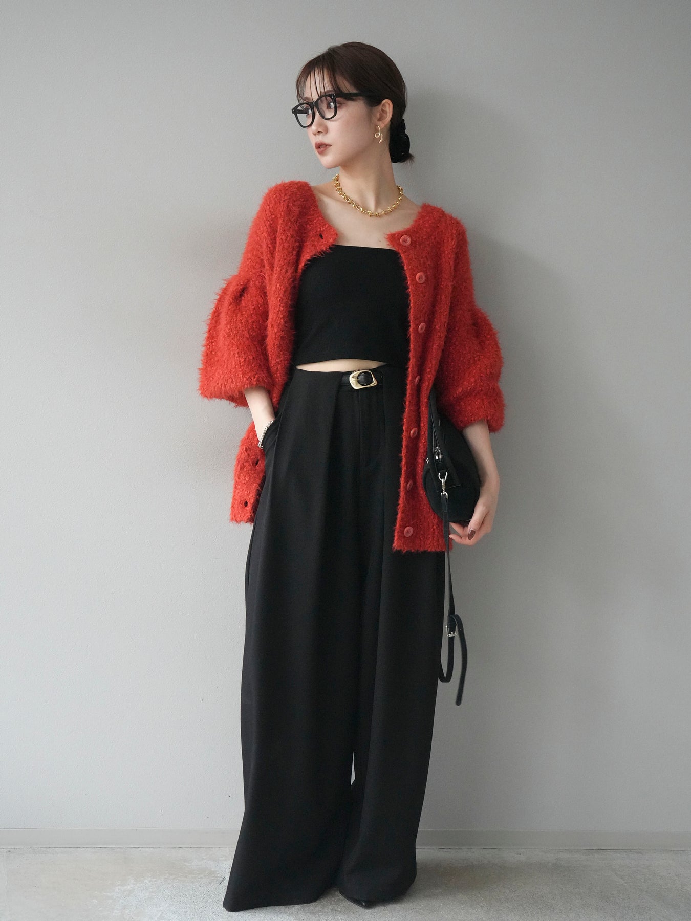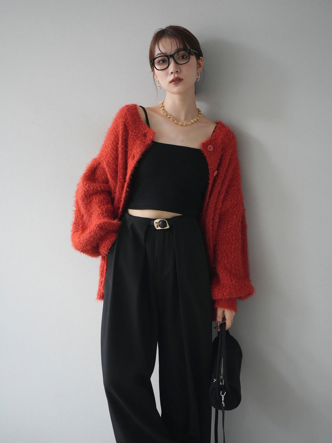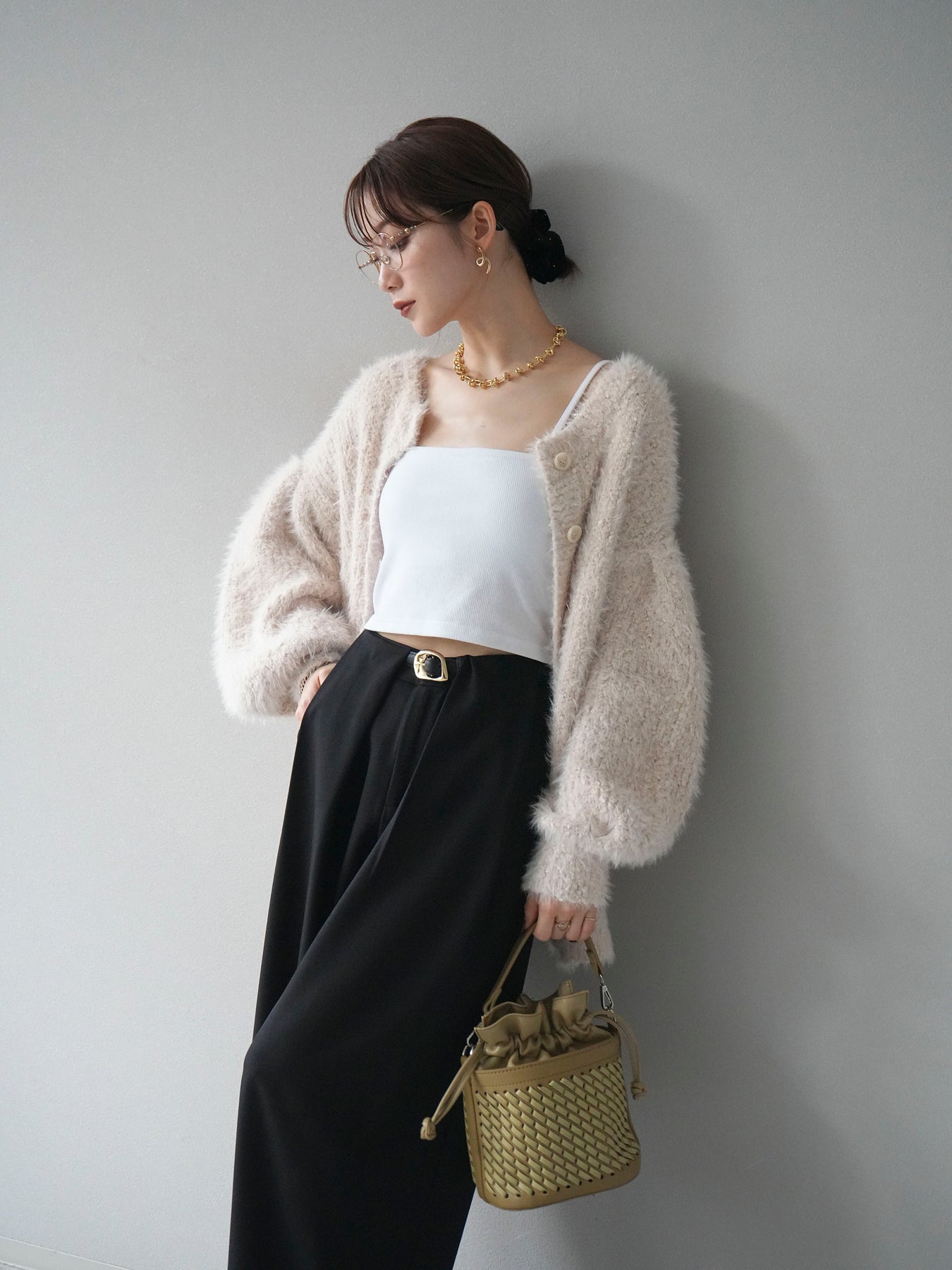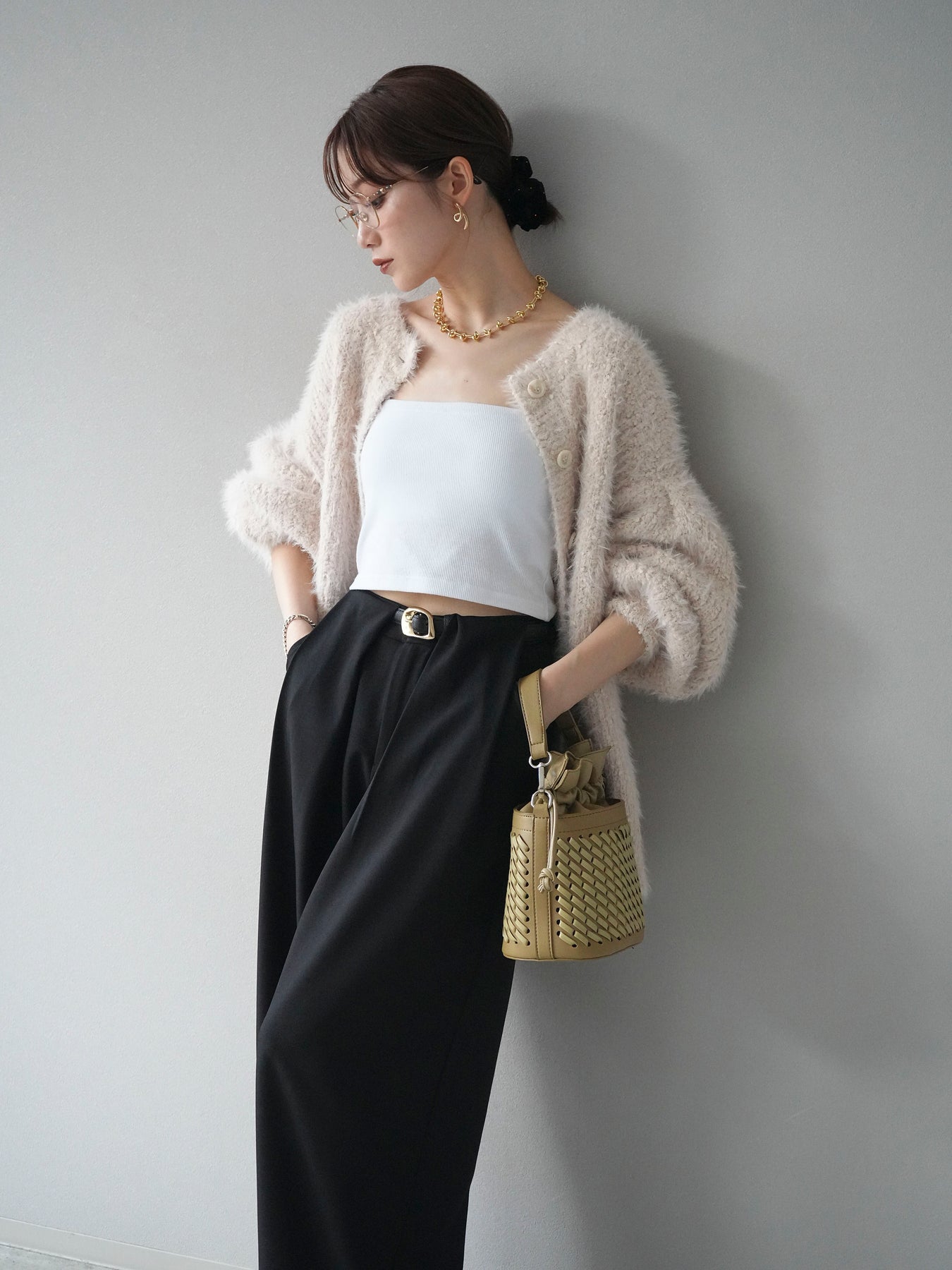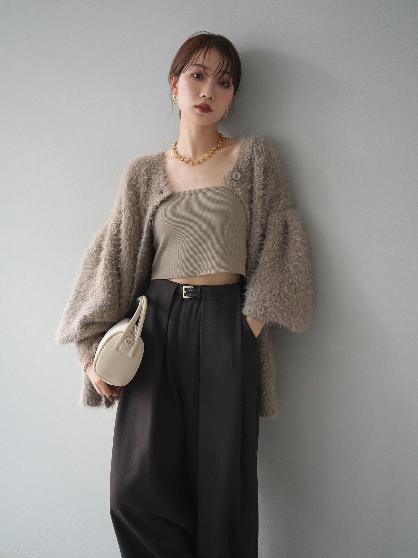 [SET]クルーネックランダムシャギーカーディガン+ベルトループデザインワイドパンツ(2set)