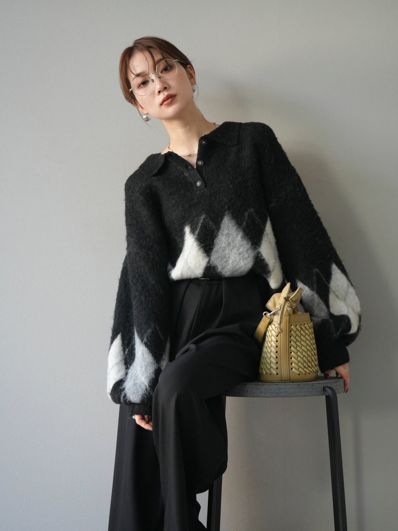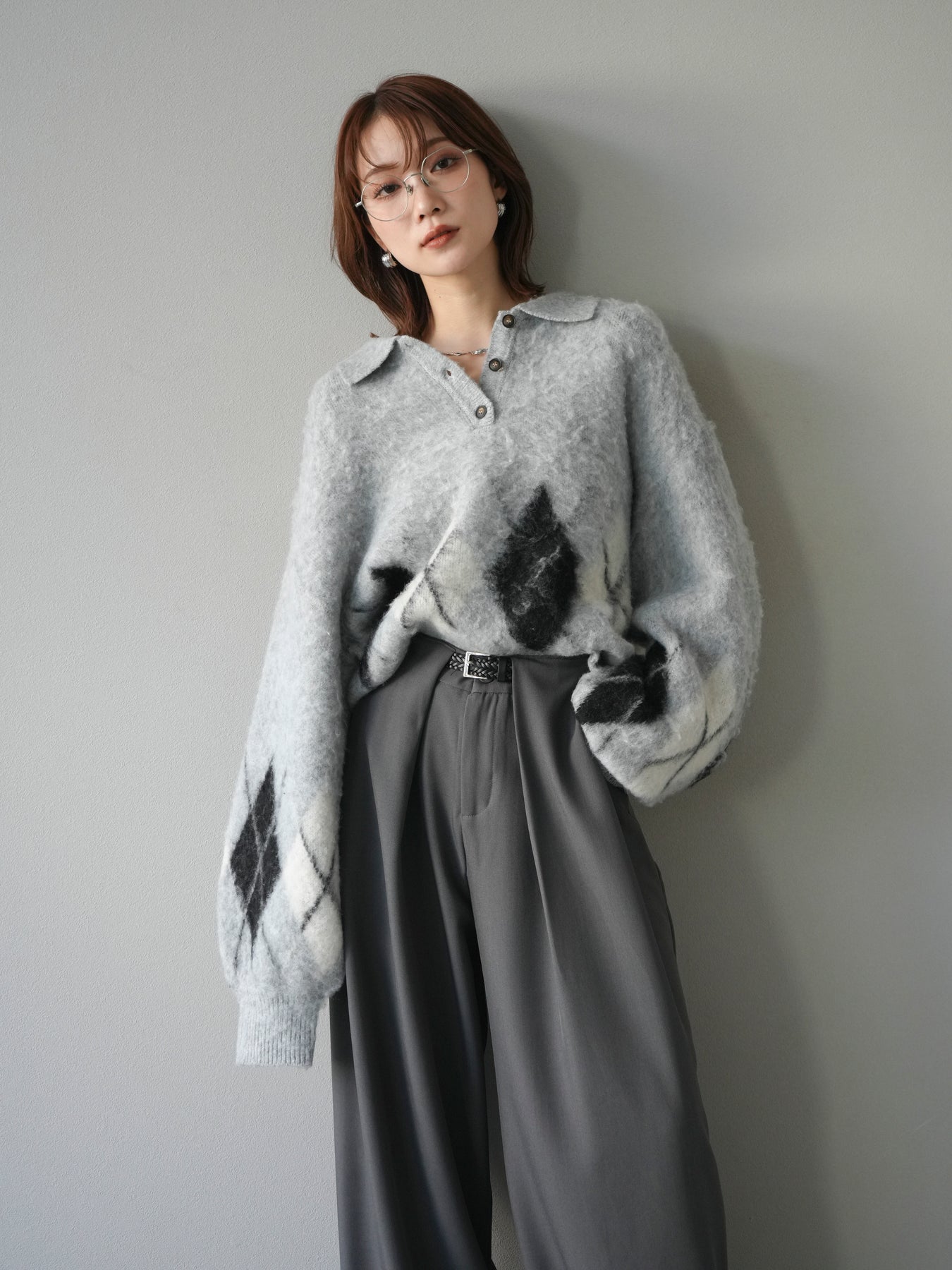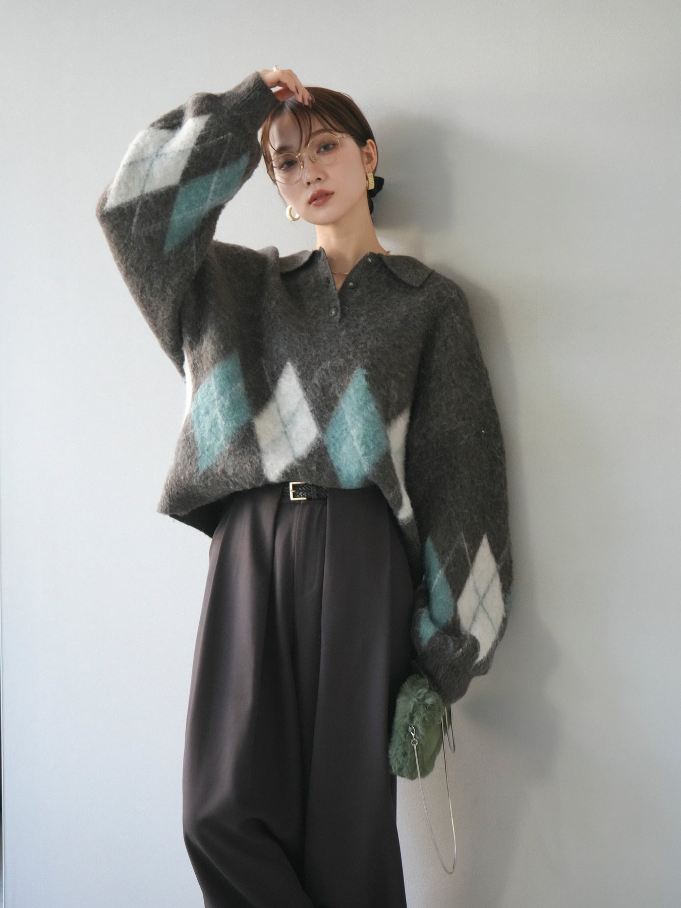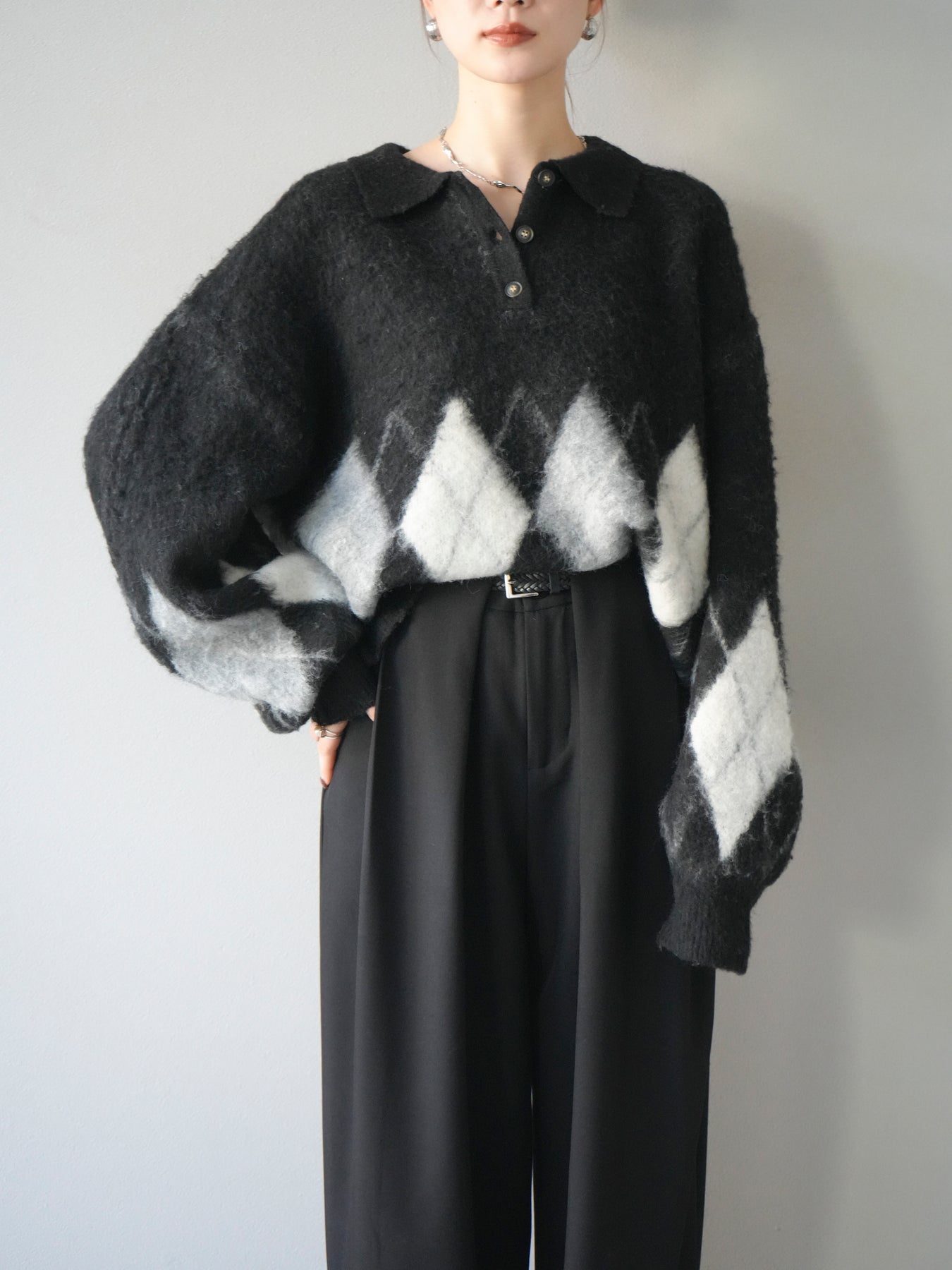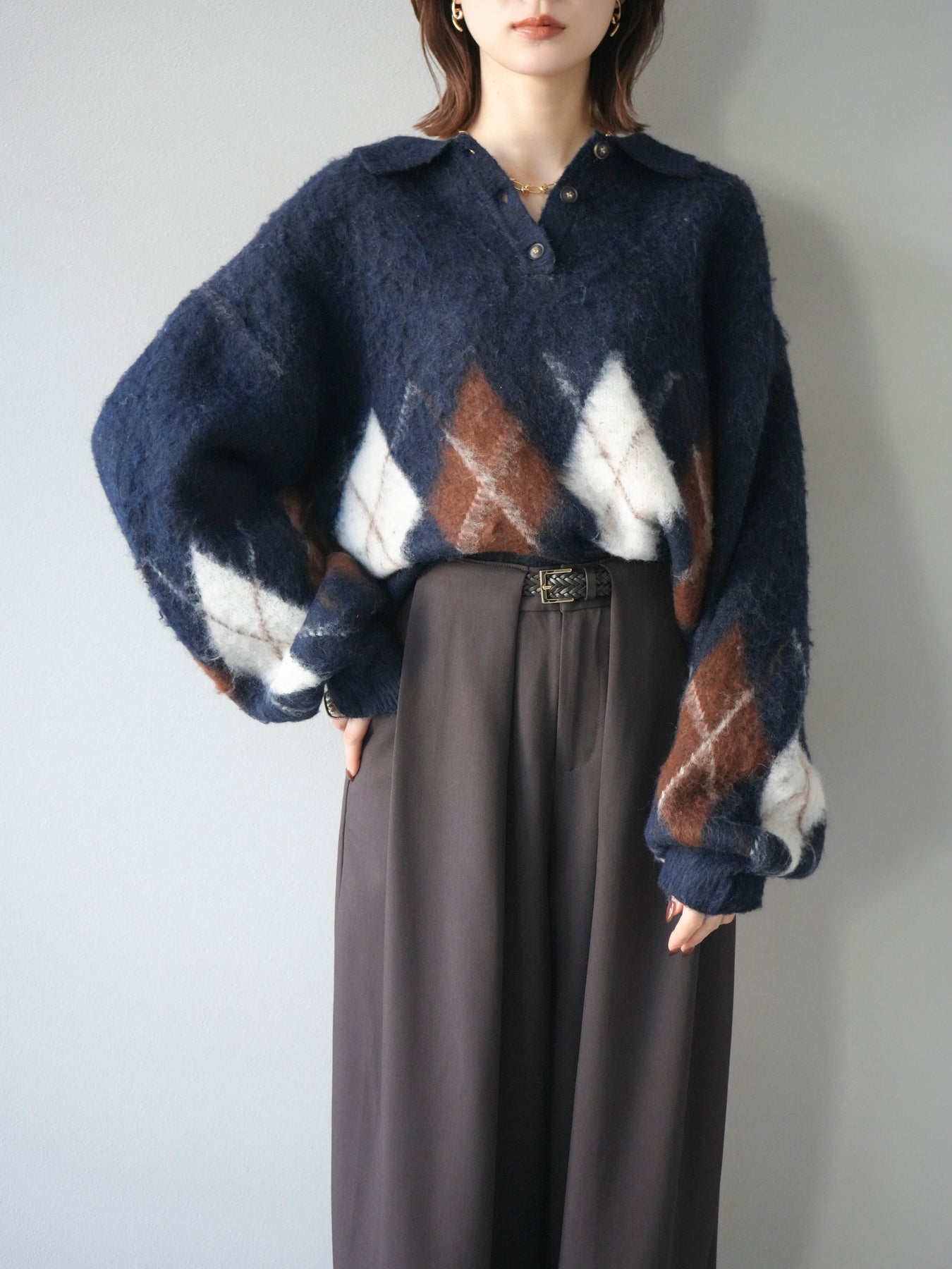 ◆ [予約]アーガイル柄ルーズポロニットプルオーバー