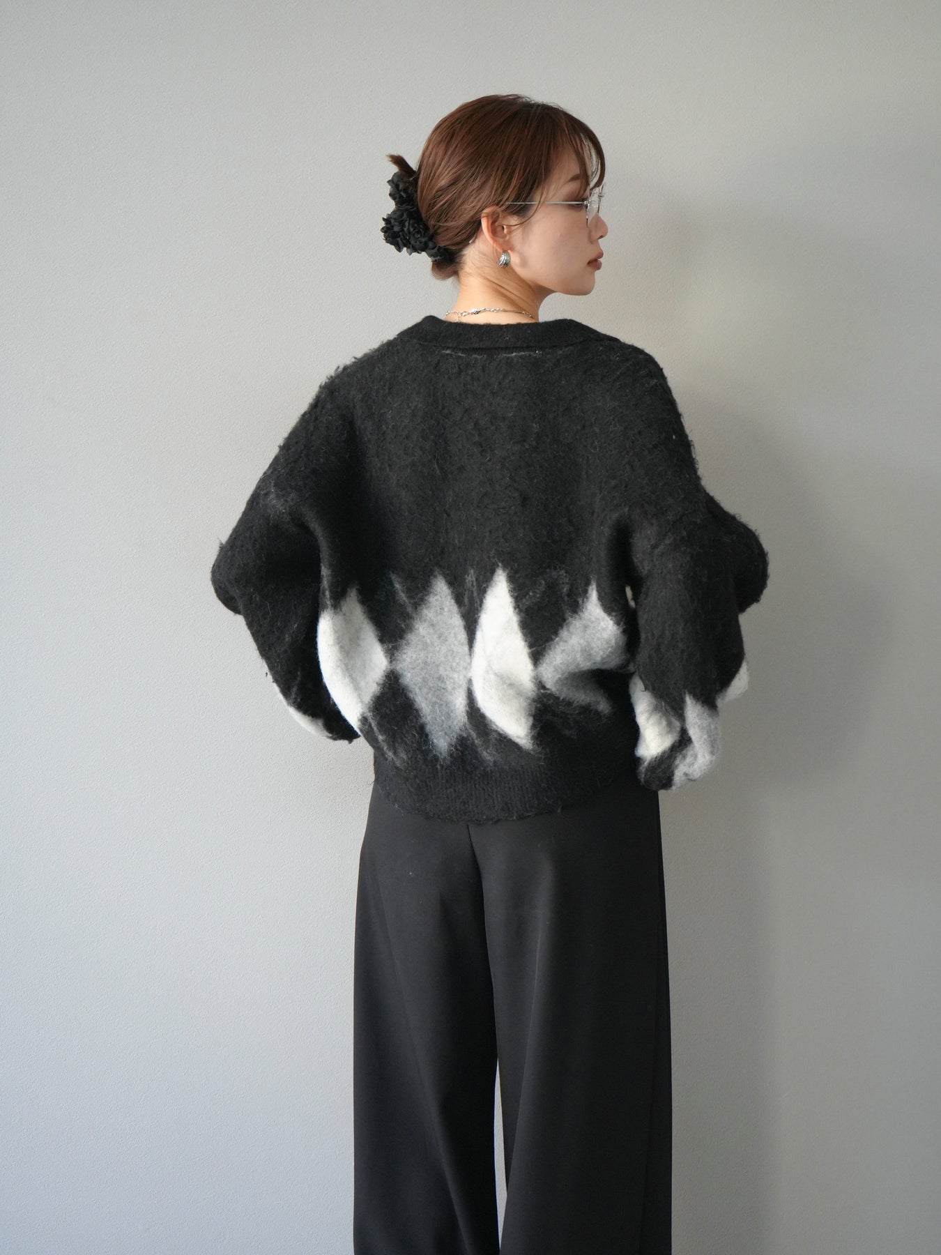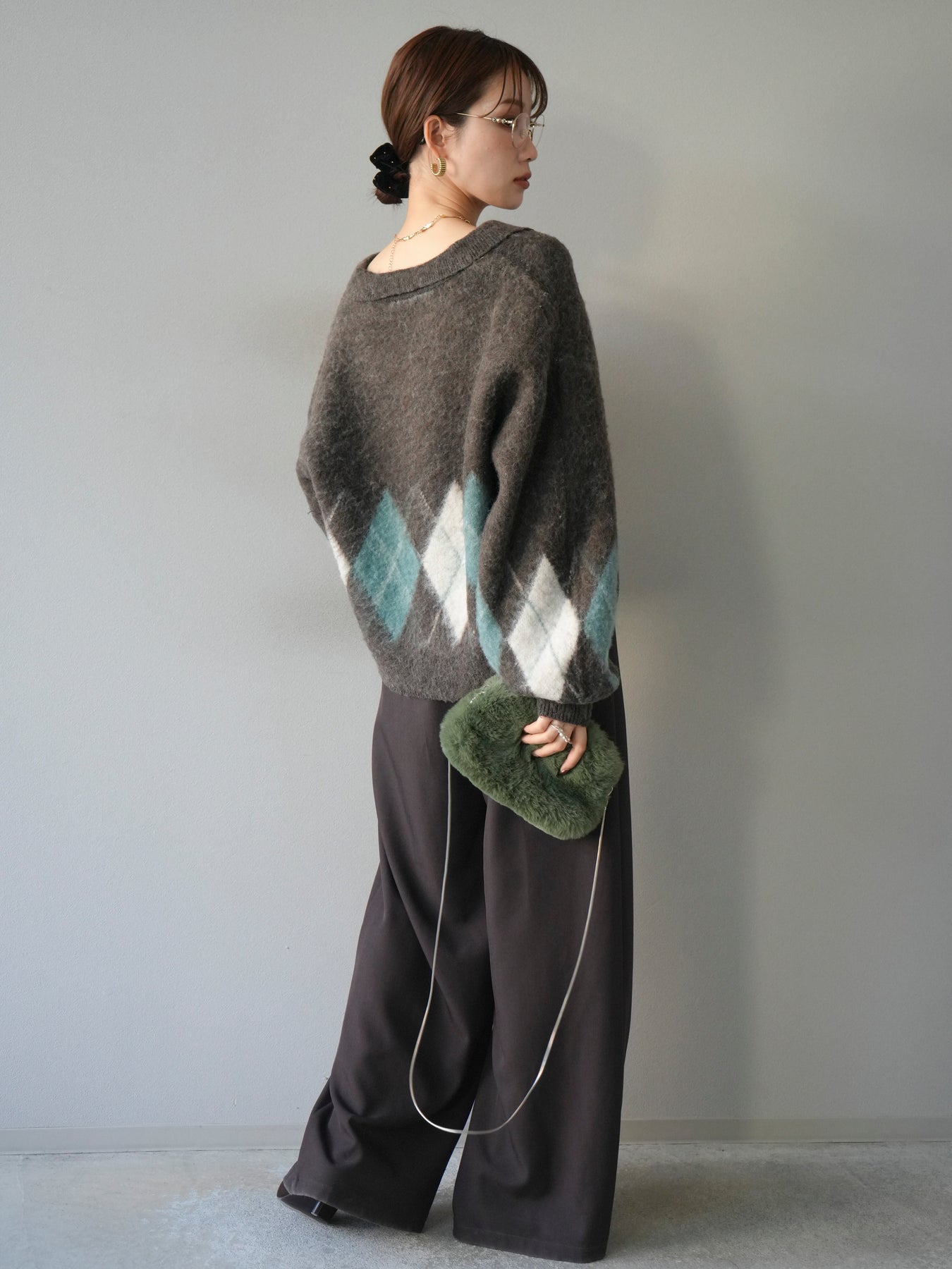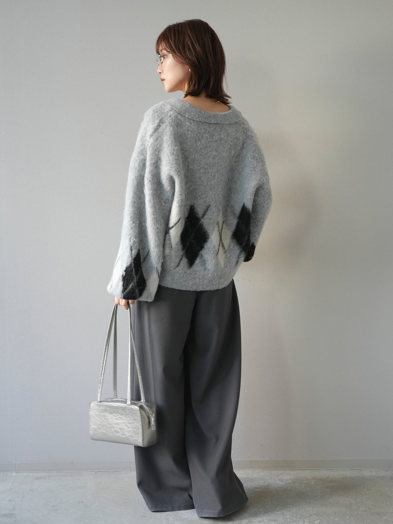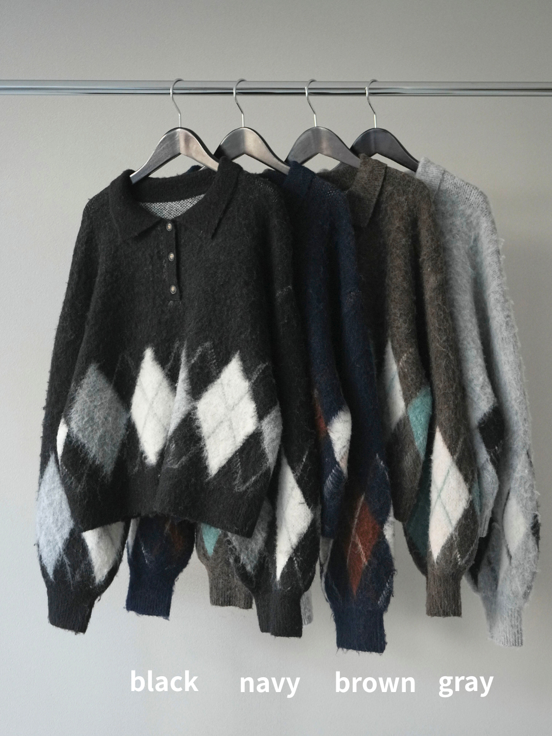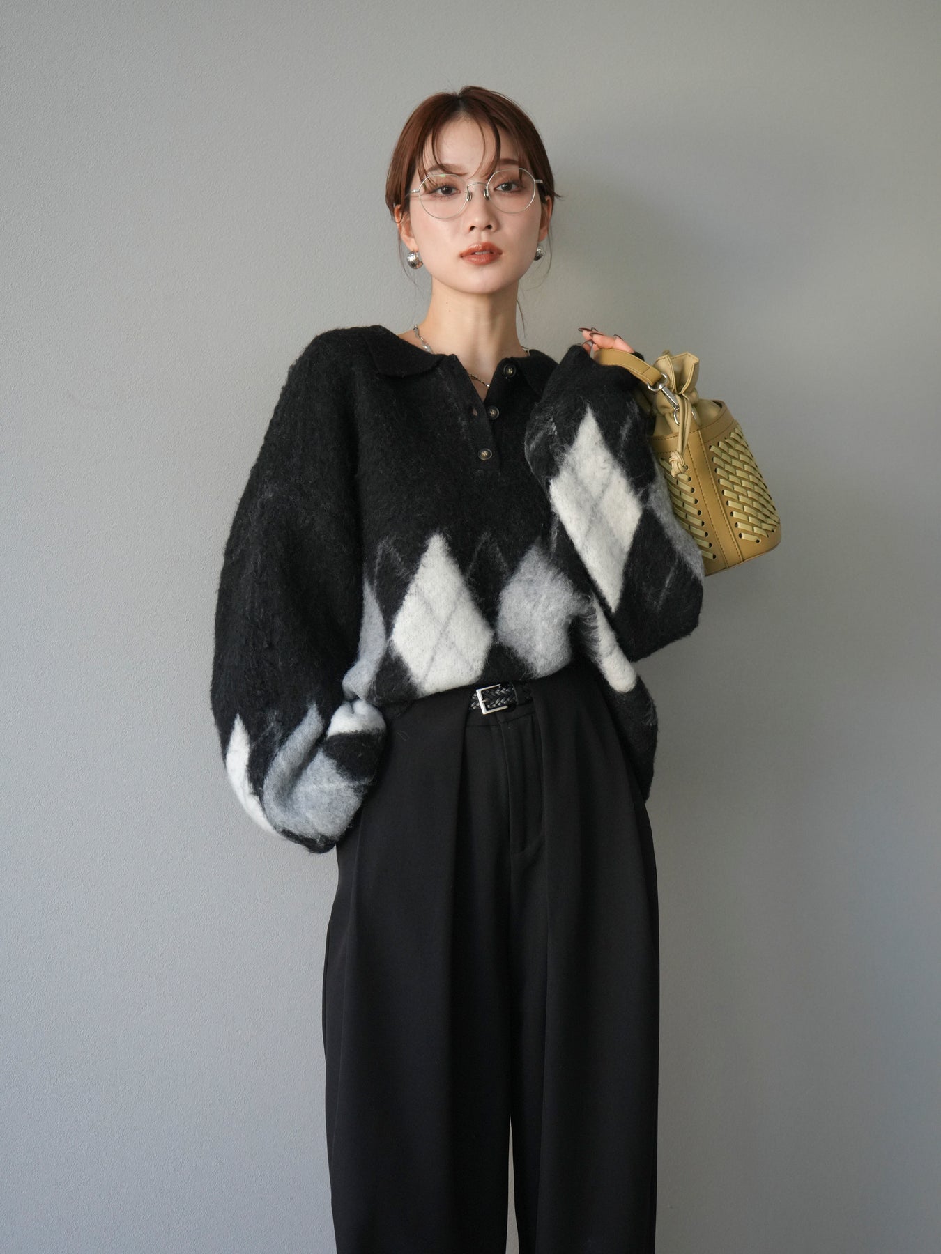 ◆ [予約]アーガイル柄ルーズポロニットプルオーバー