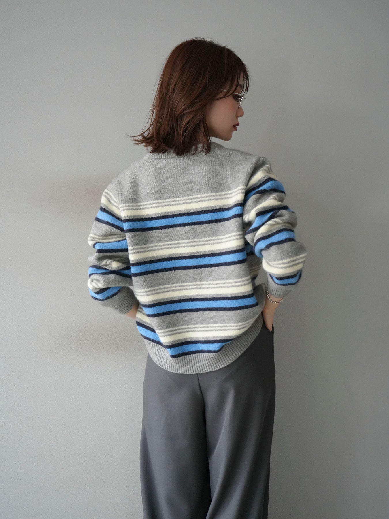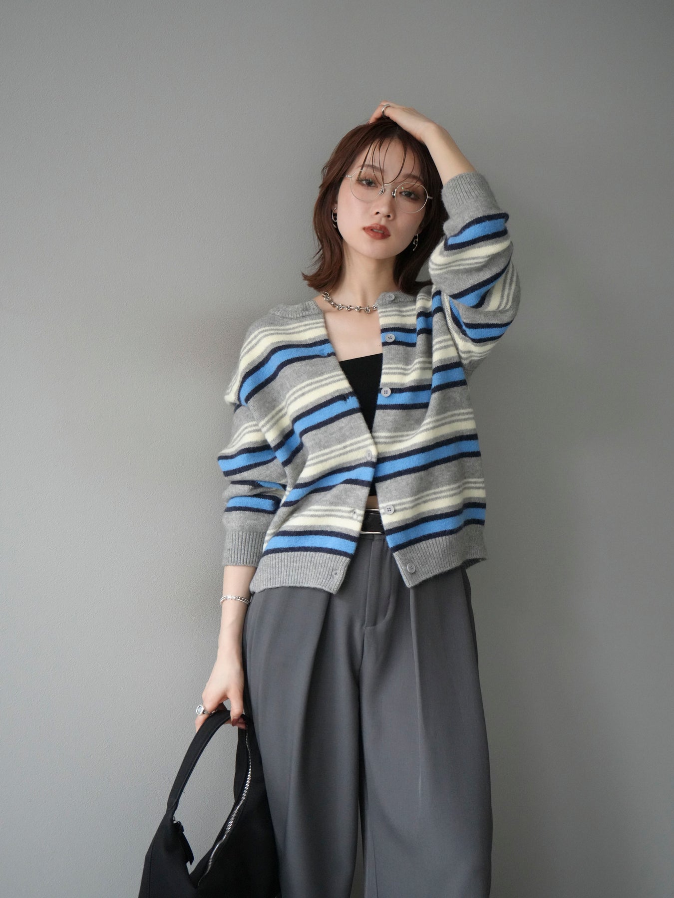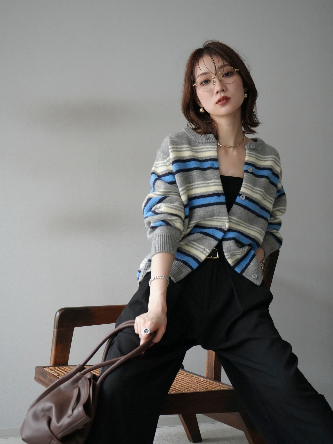 [SET]マルチボーダーニットカーディガン+選べるアクセセット(2set)