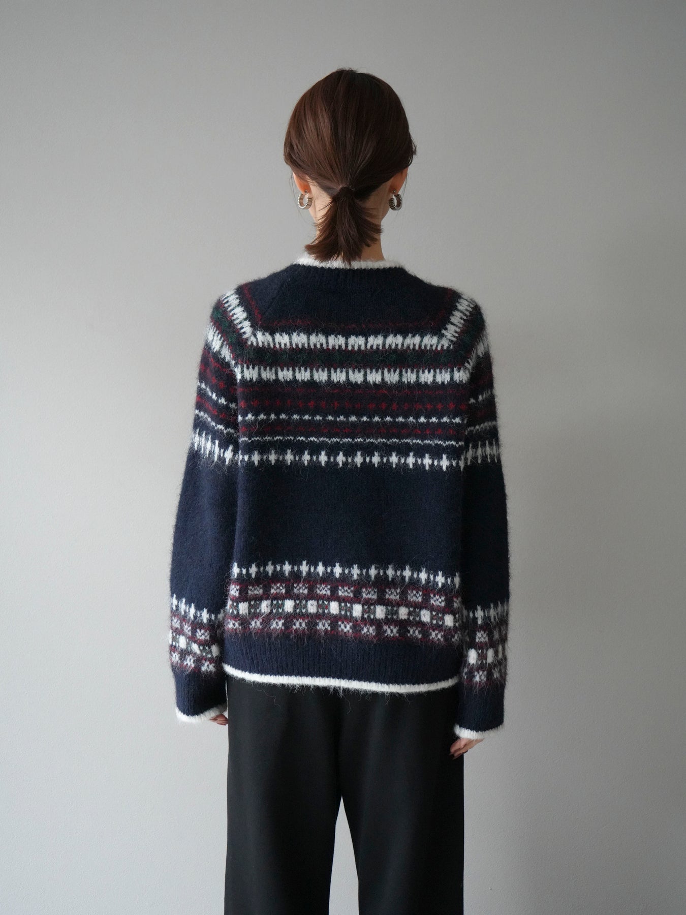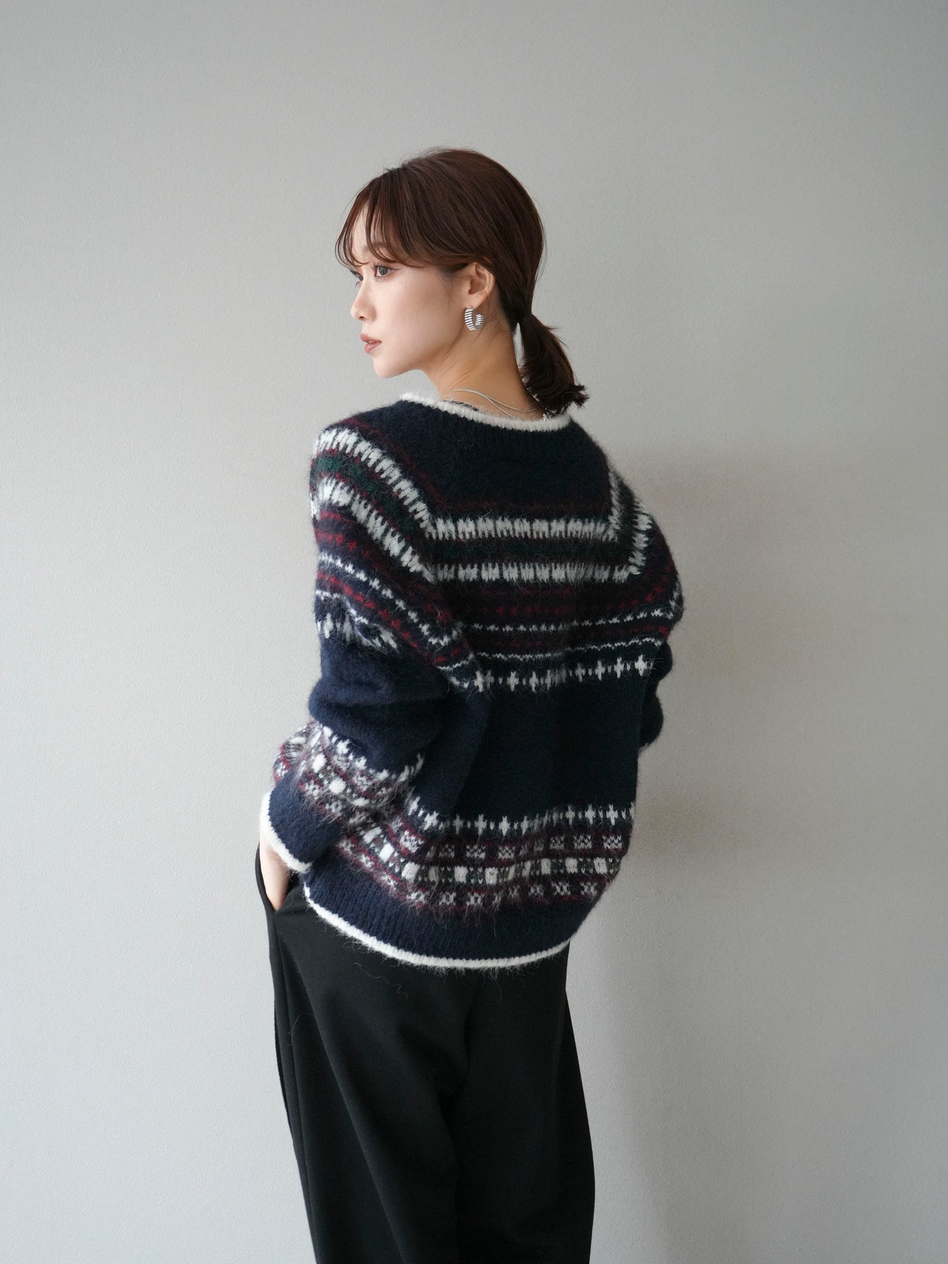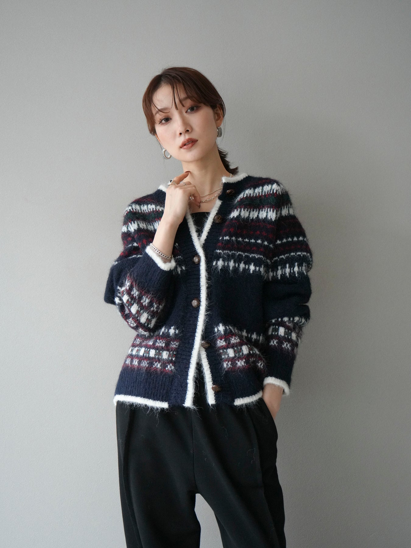 ◆ [予約]求心柄ウッドボタンニットカーディガン