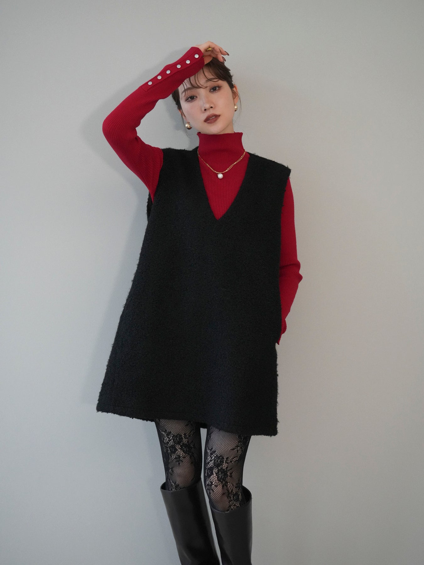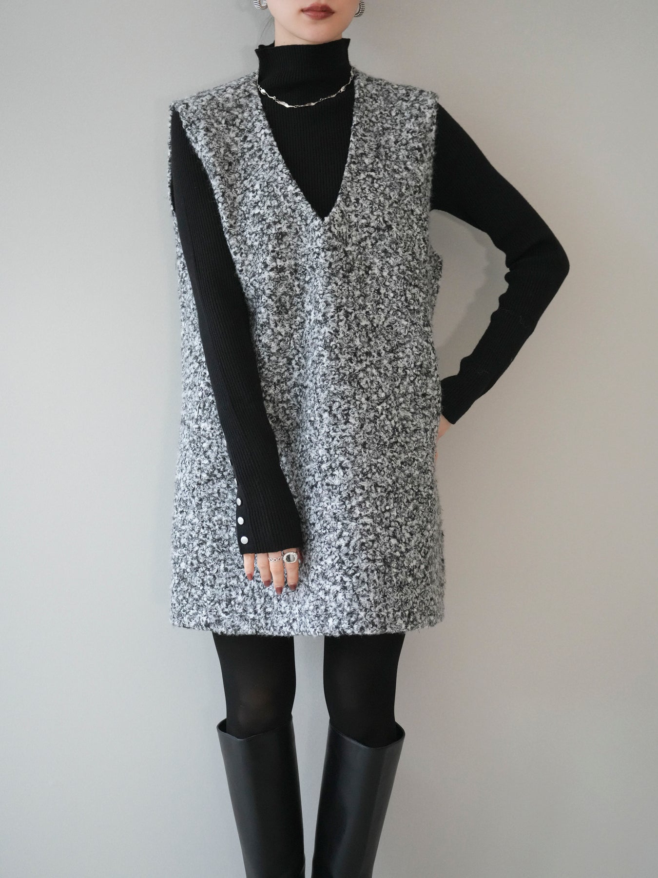◆ [予約]ミックスループヤーンニットミニワンピース