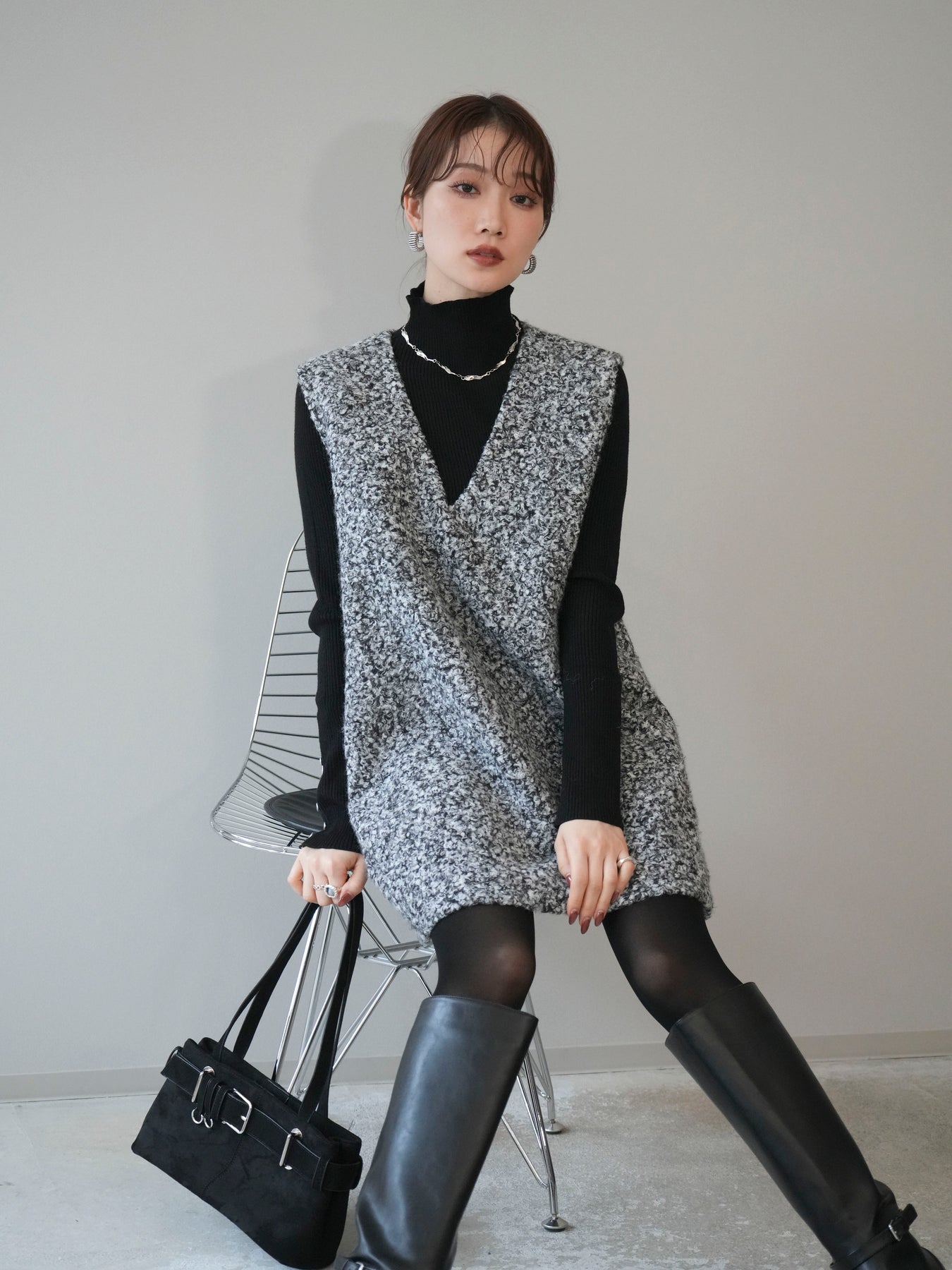 [SET]ミックスループヤーンニットミニワンピース+選べるアクセセット(2set)