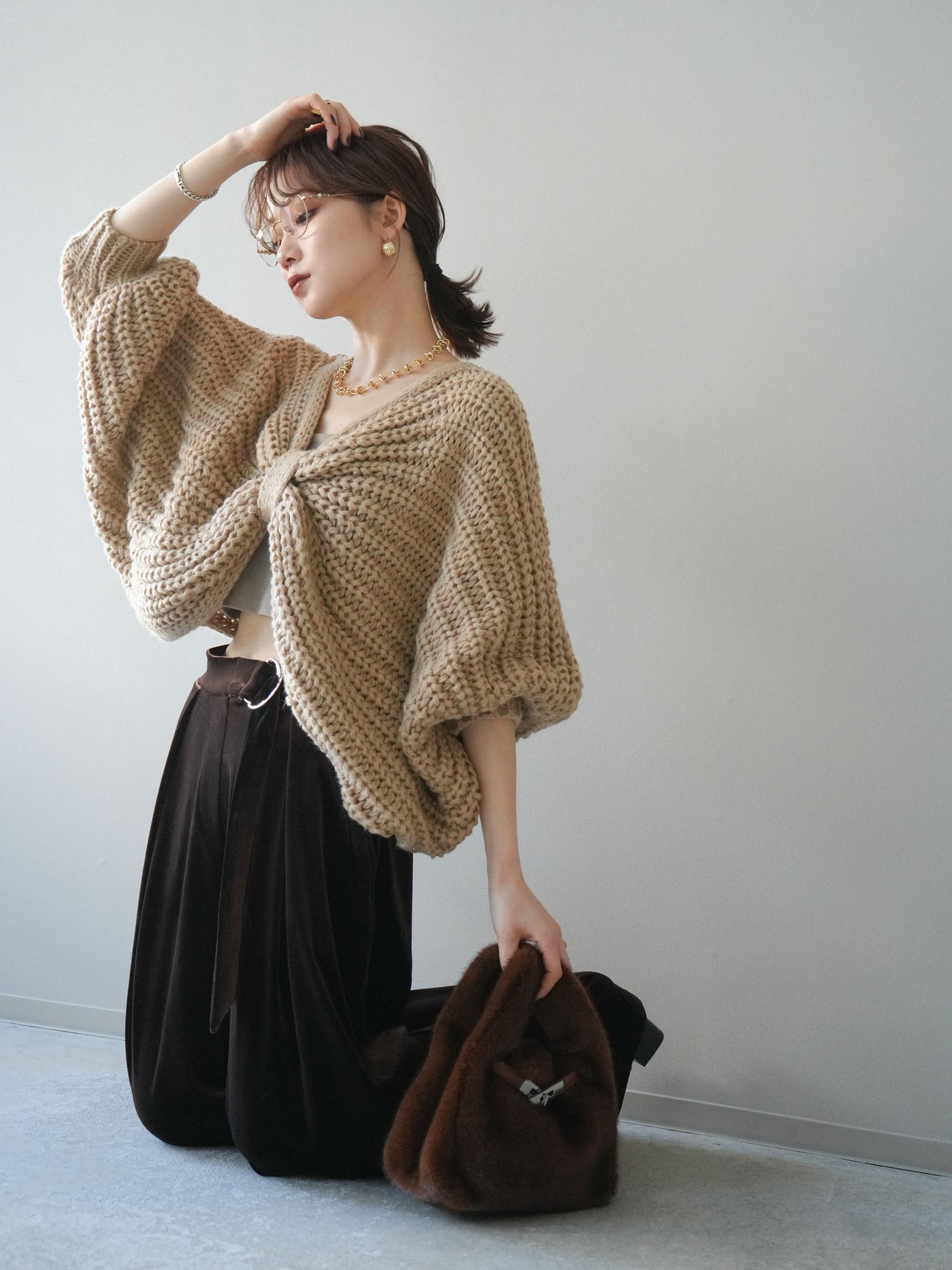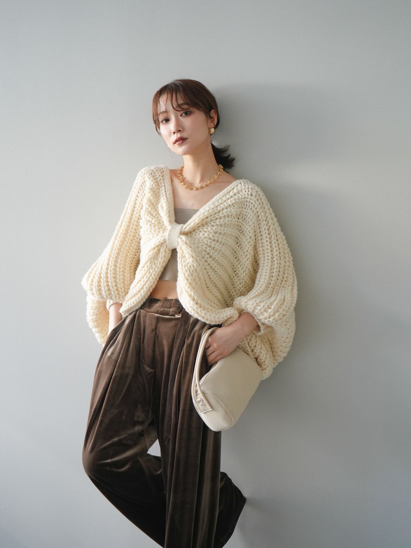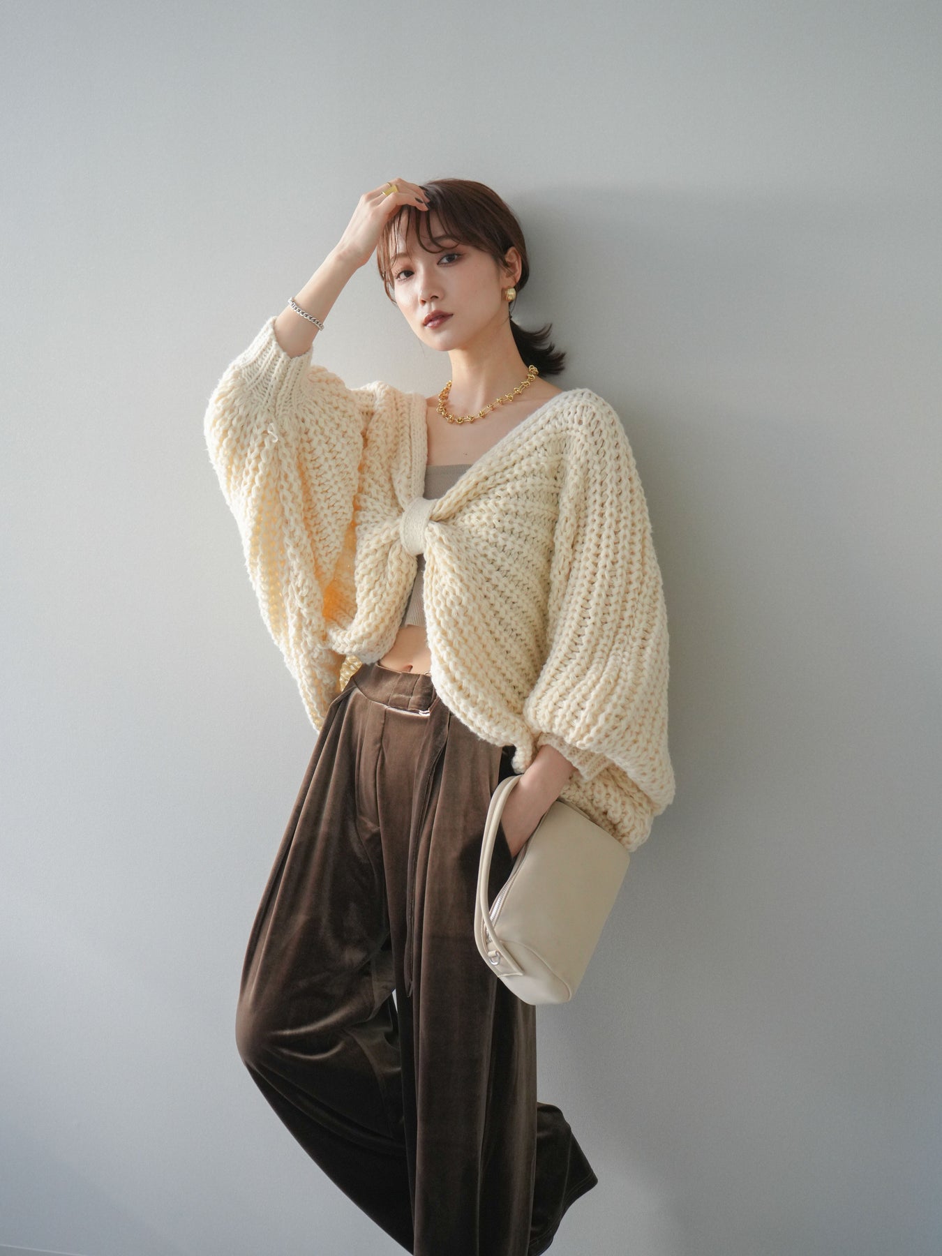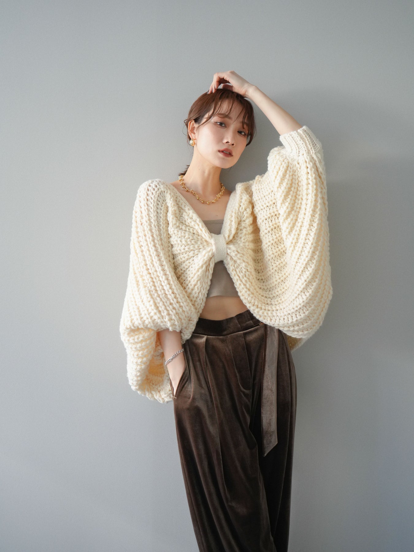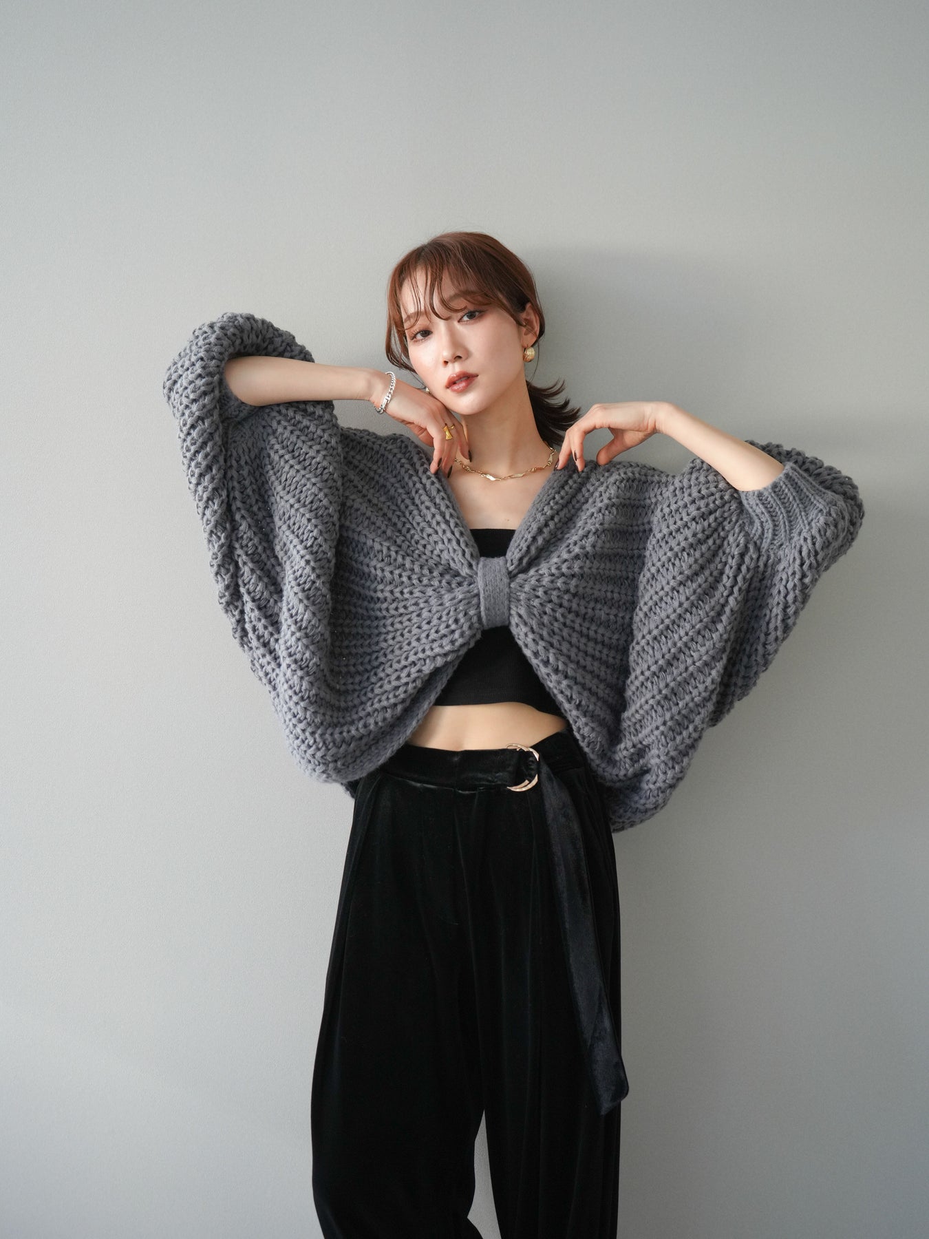 ◆ [予約]ローゲージ畦編みドルマンニットボレロ