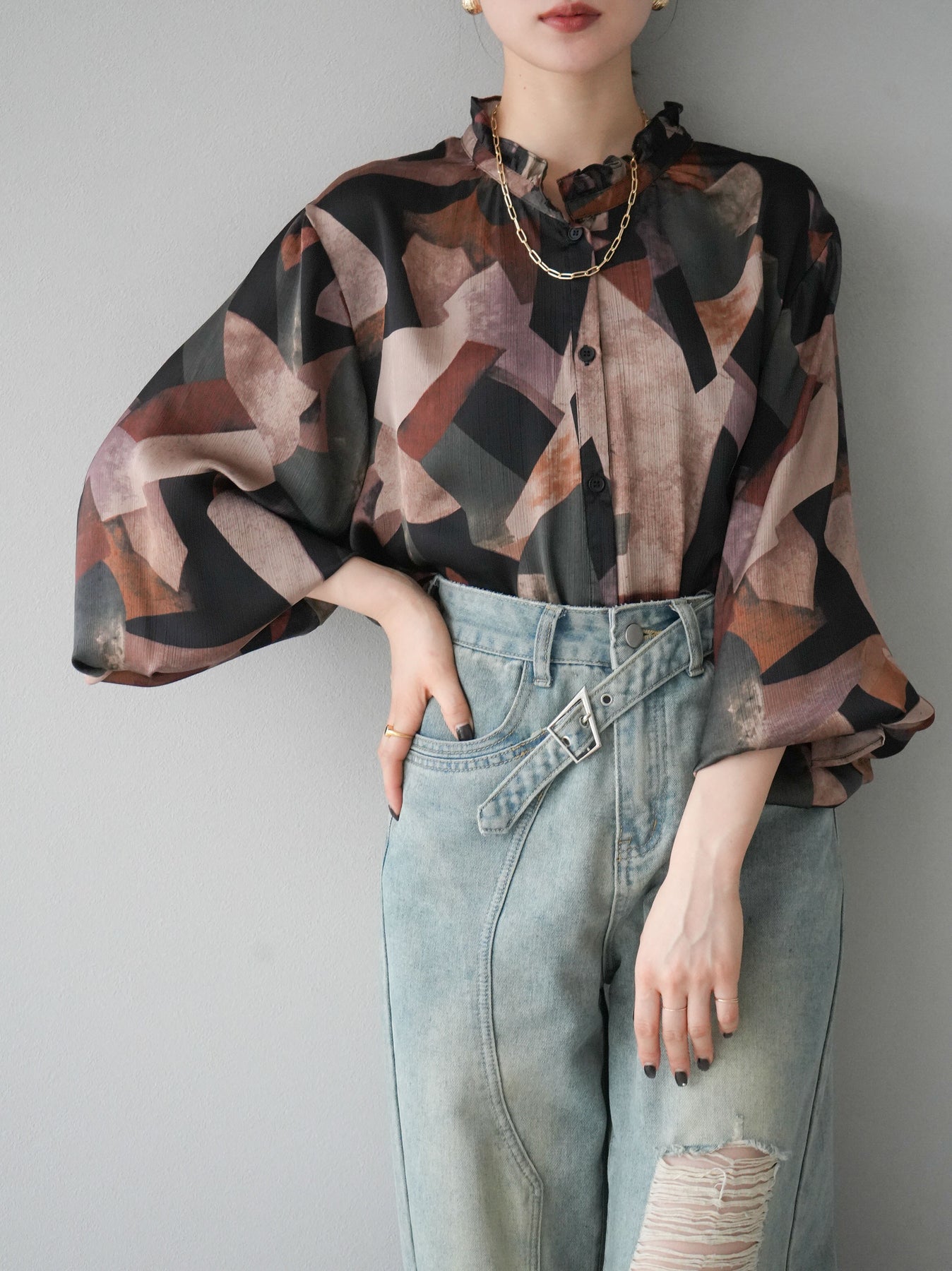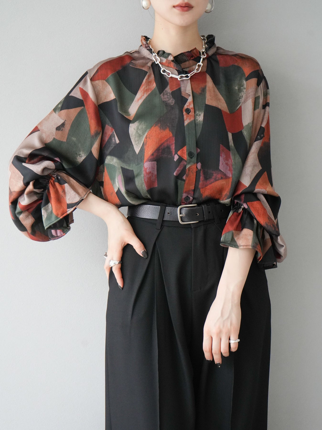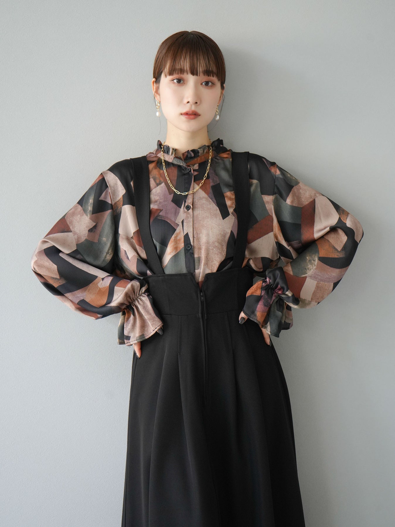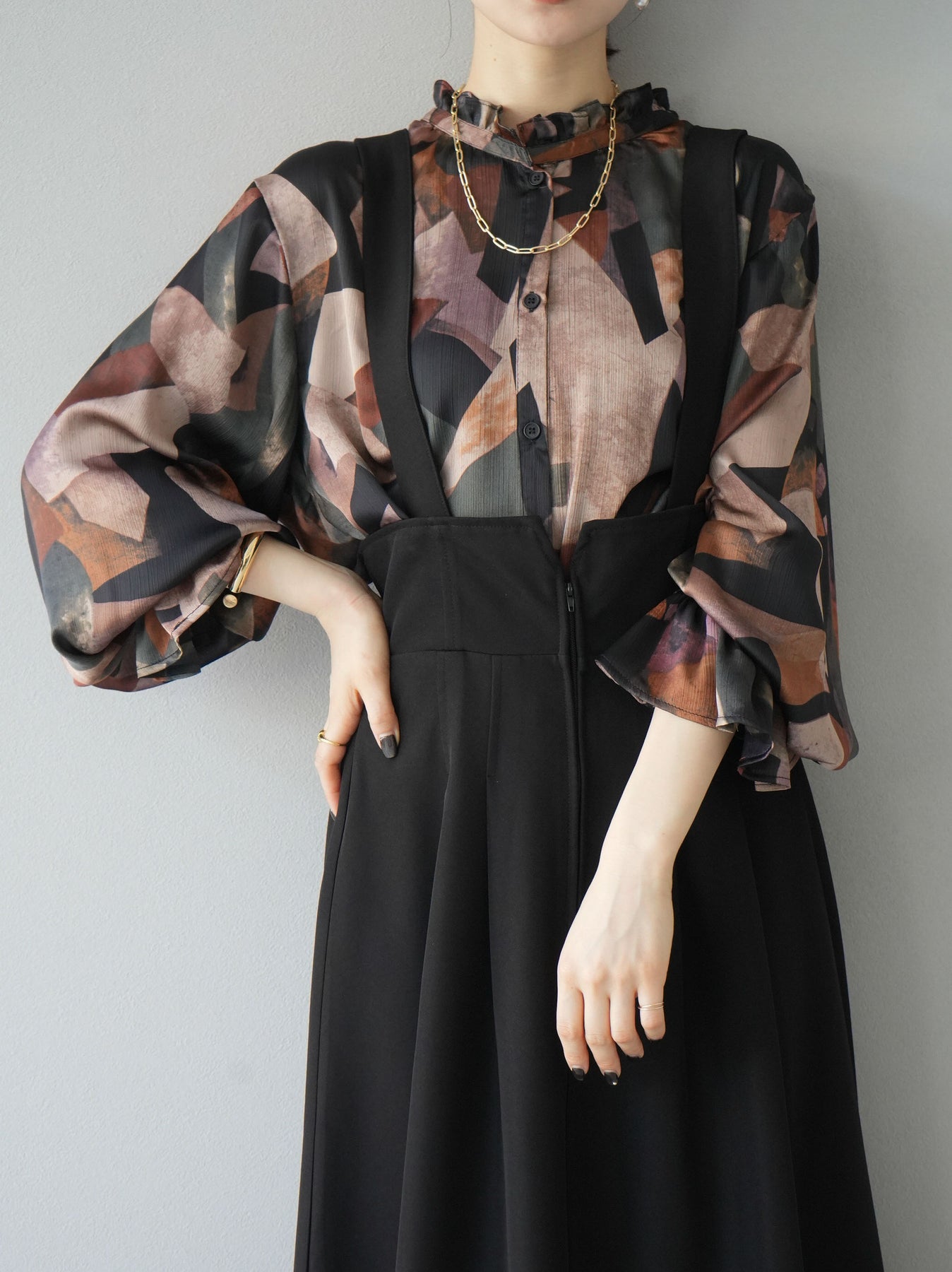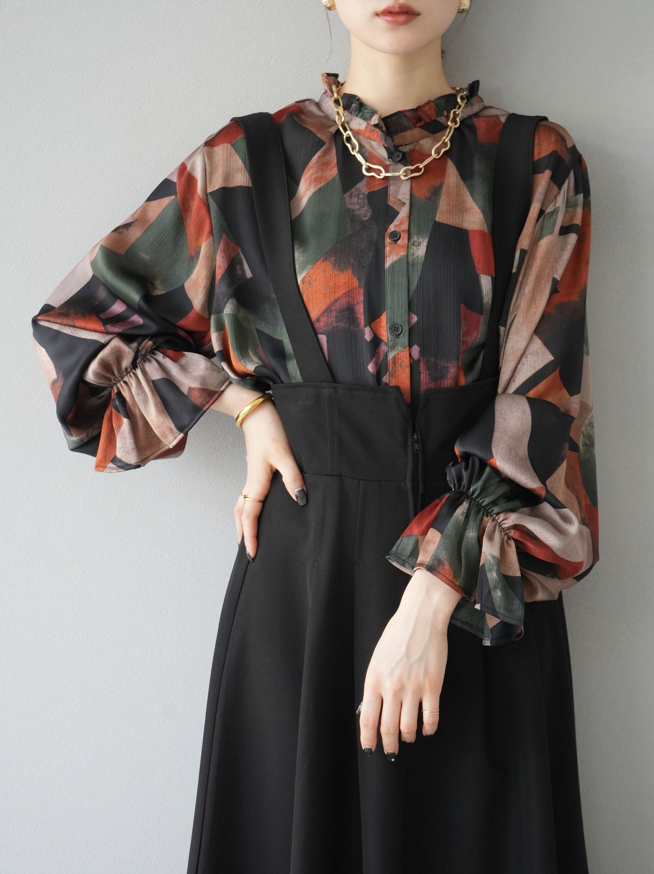 [SET]レトロプリントフリルブラウス+選べるアクセセット(2set)