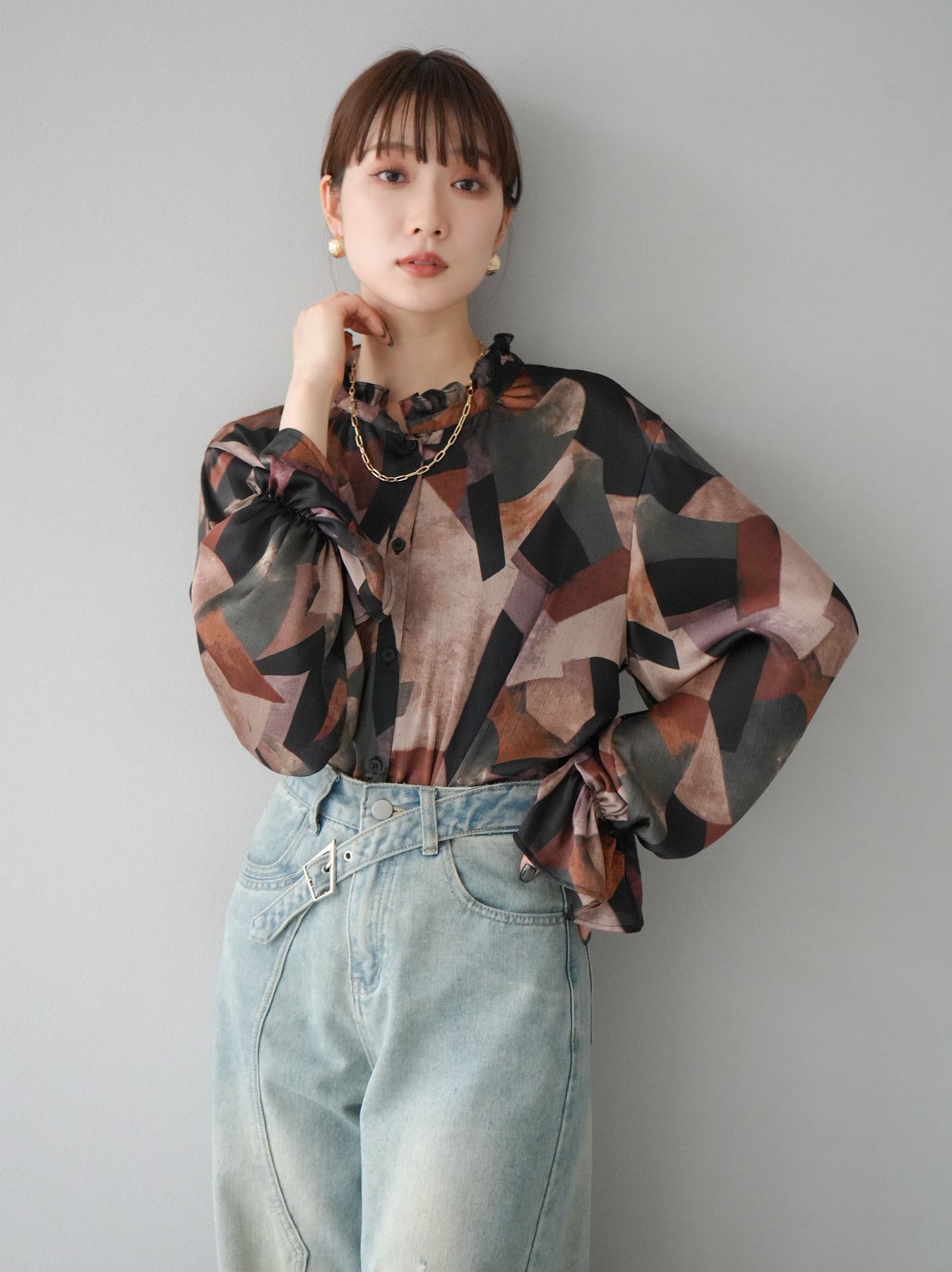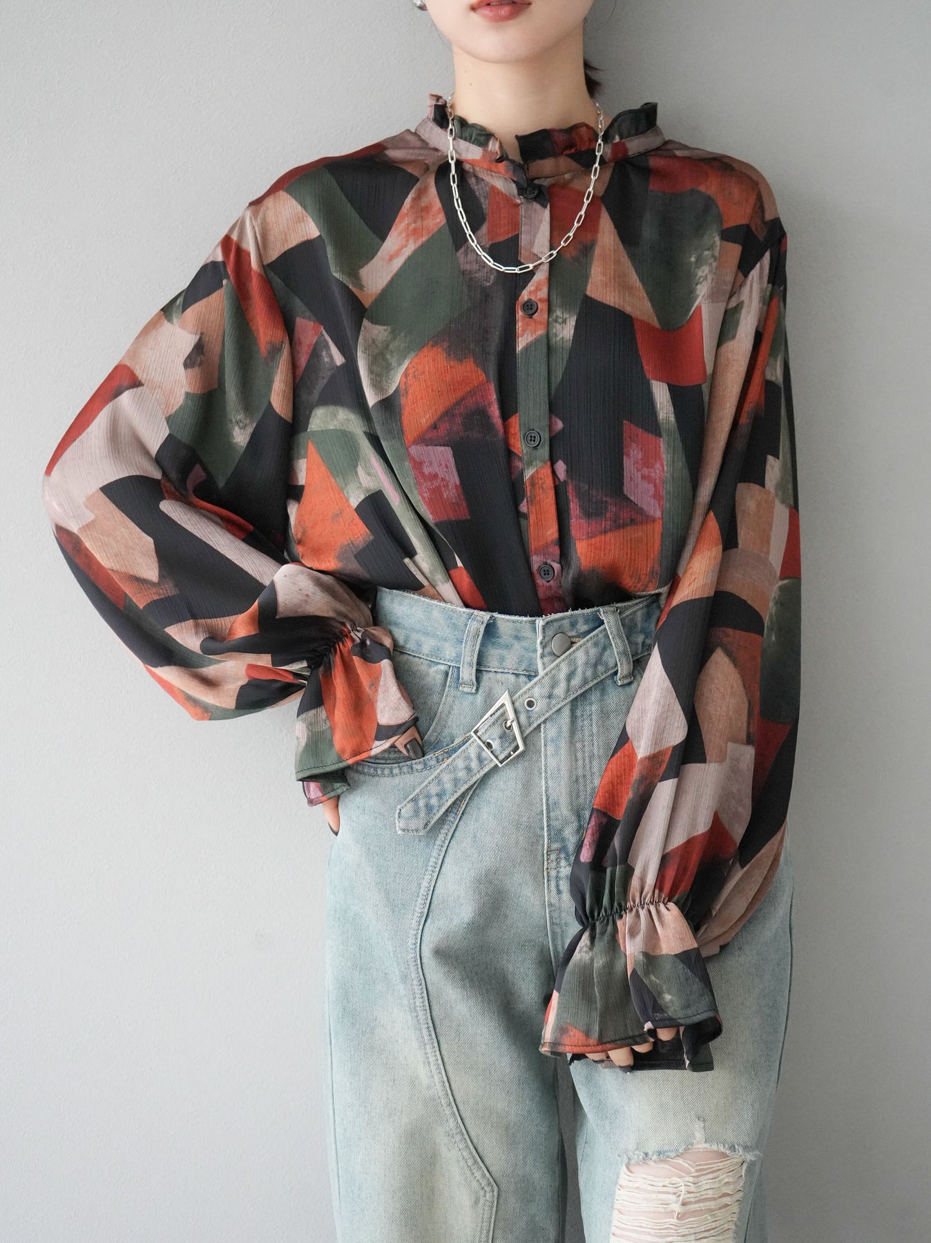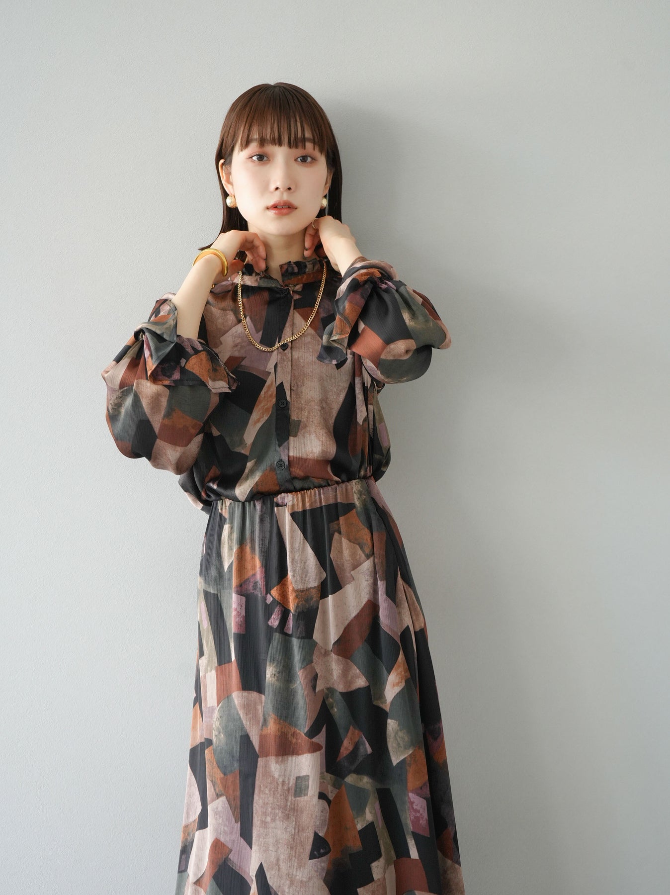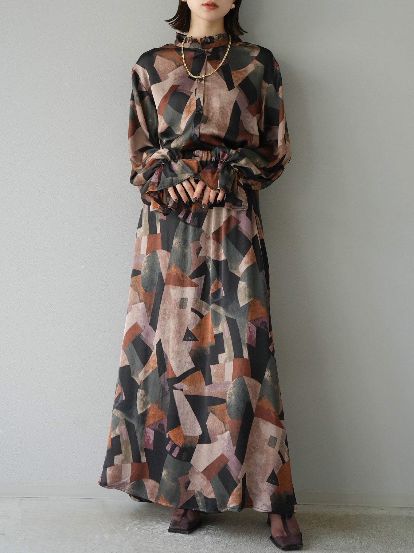 [SET]レトロプリントフリルブラウス+選べるアクセセット(2set)