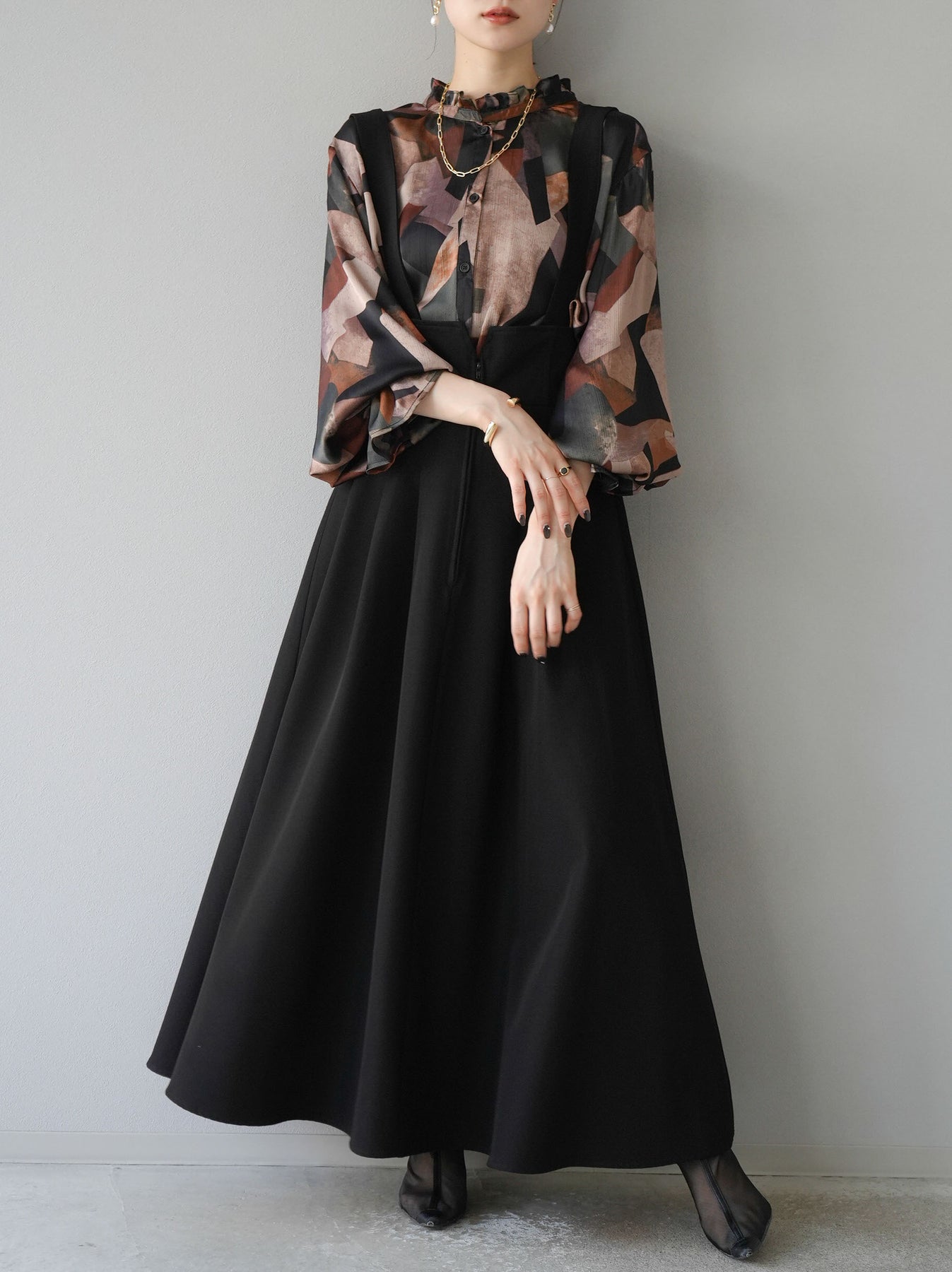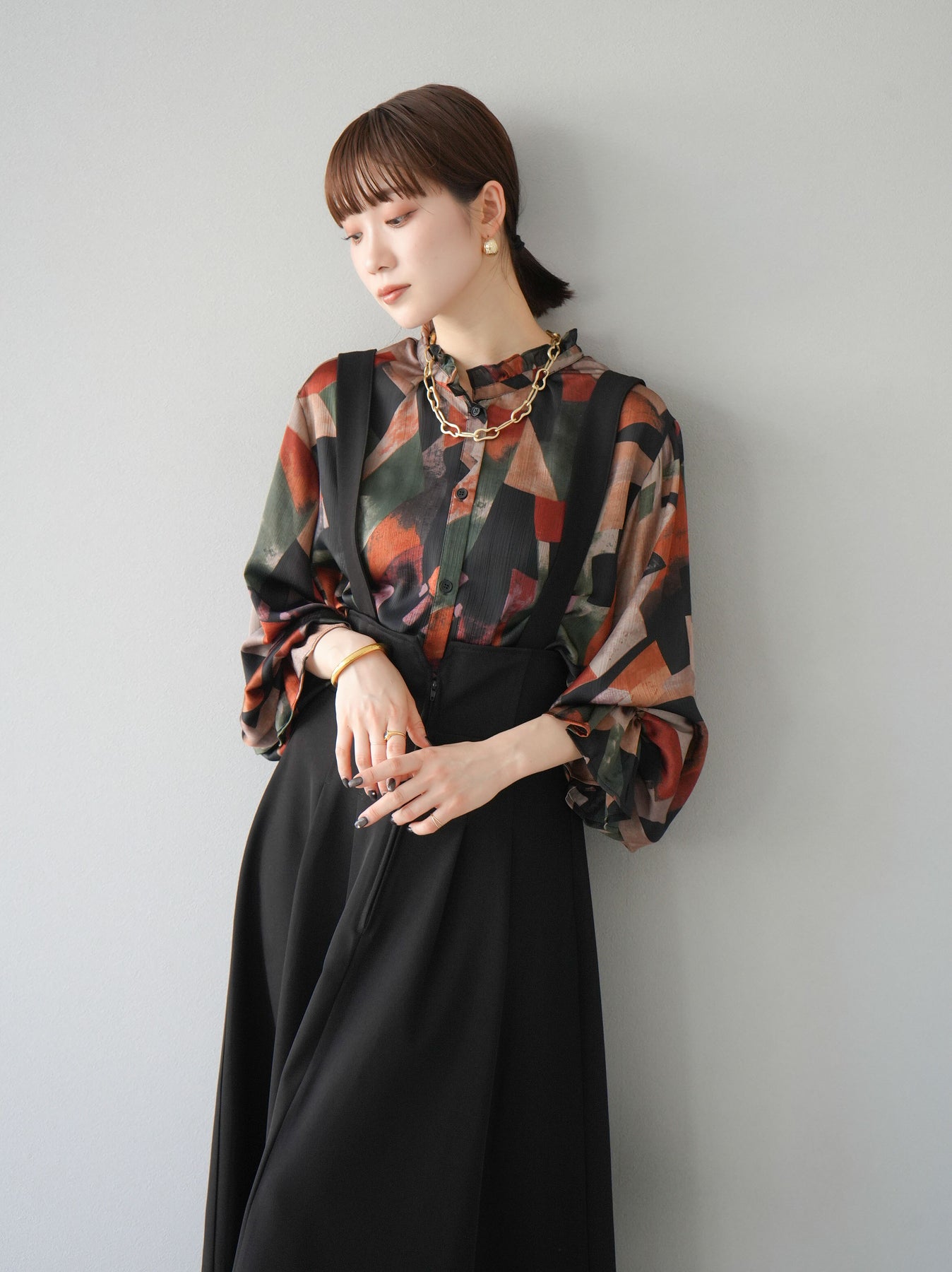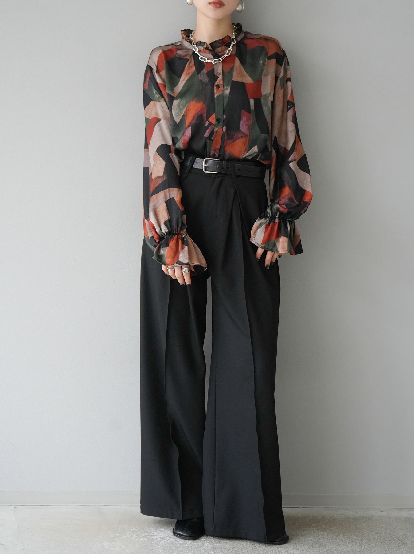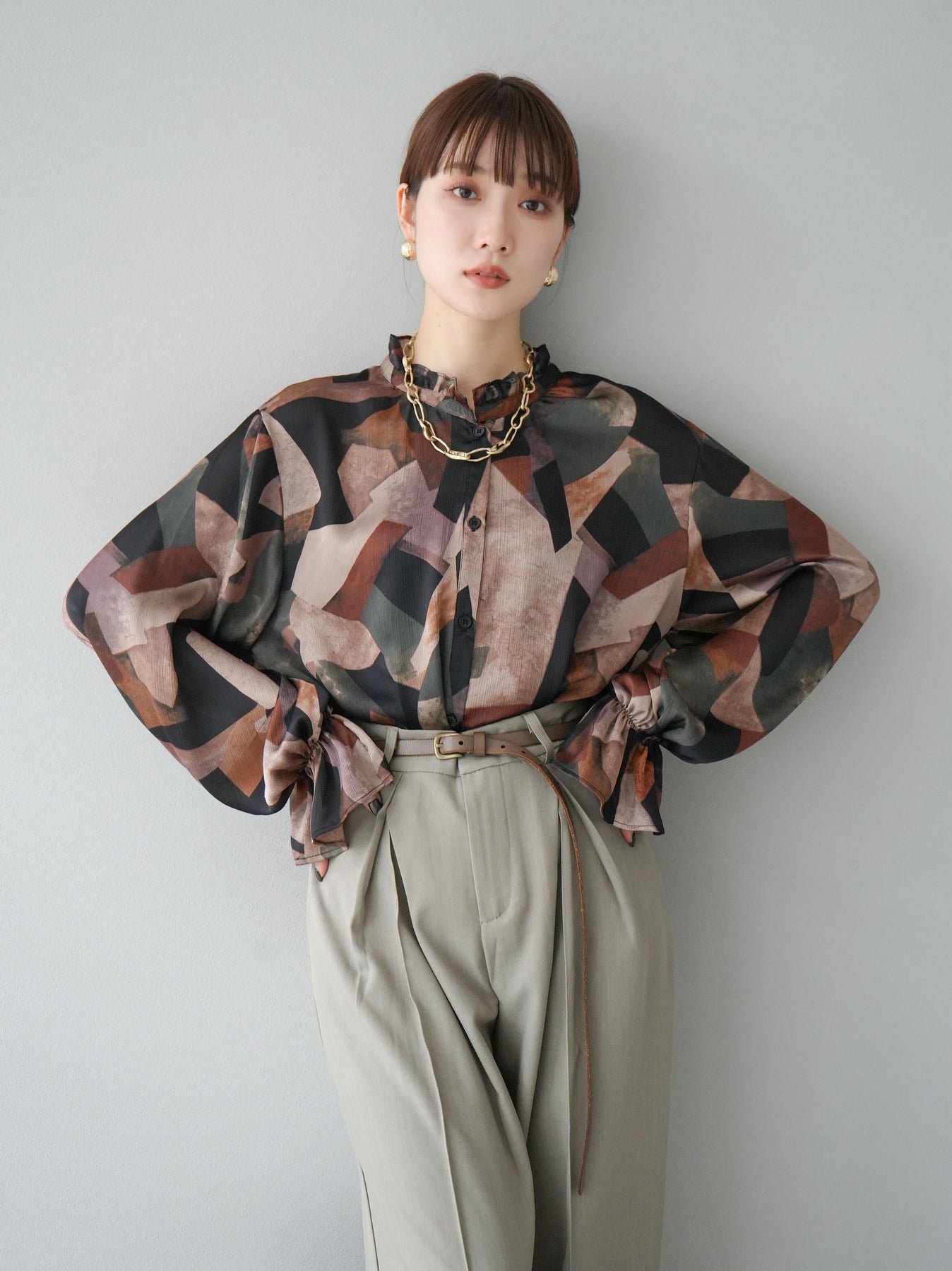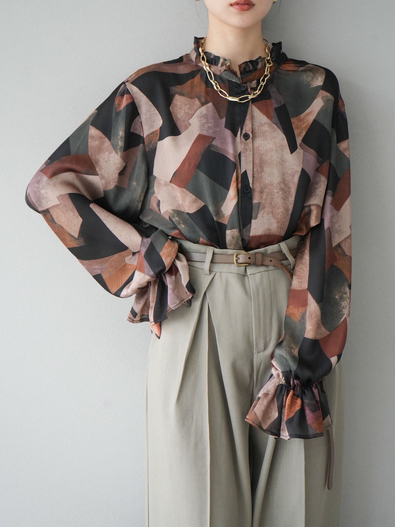 [SET]レトロプリントフリルブラウス+選べるアクセセット(2set)