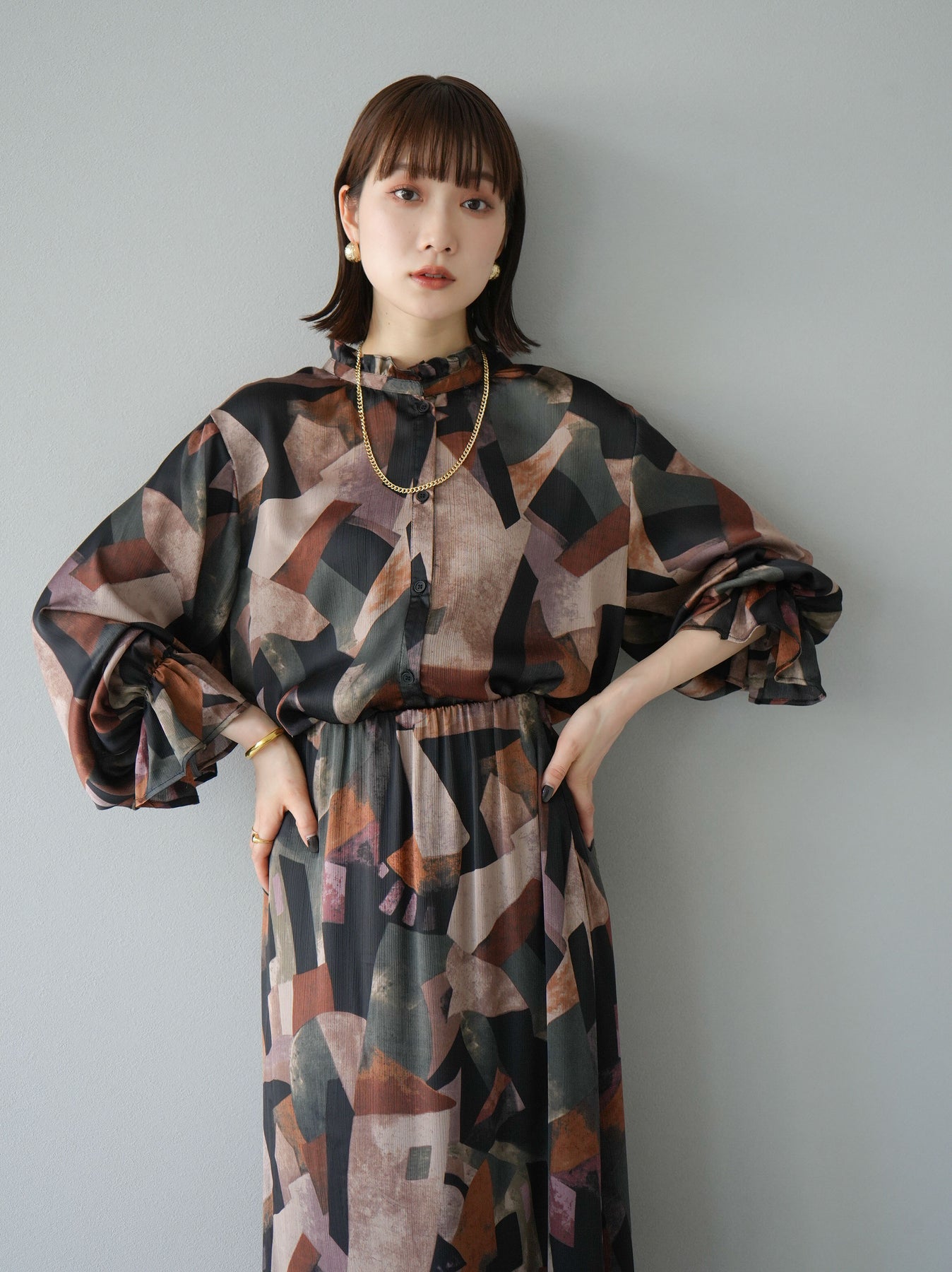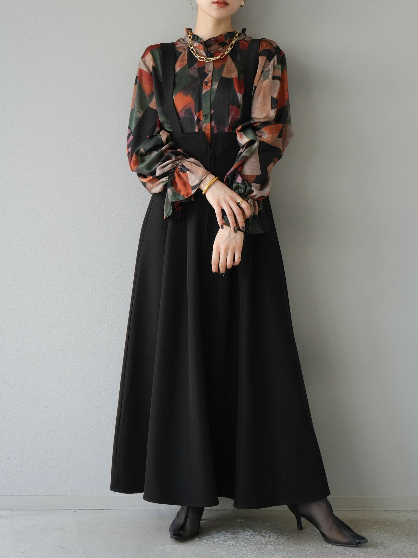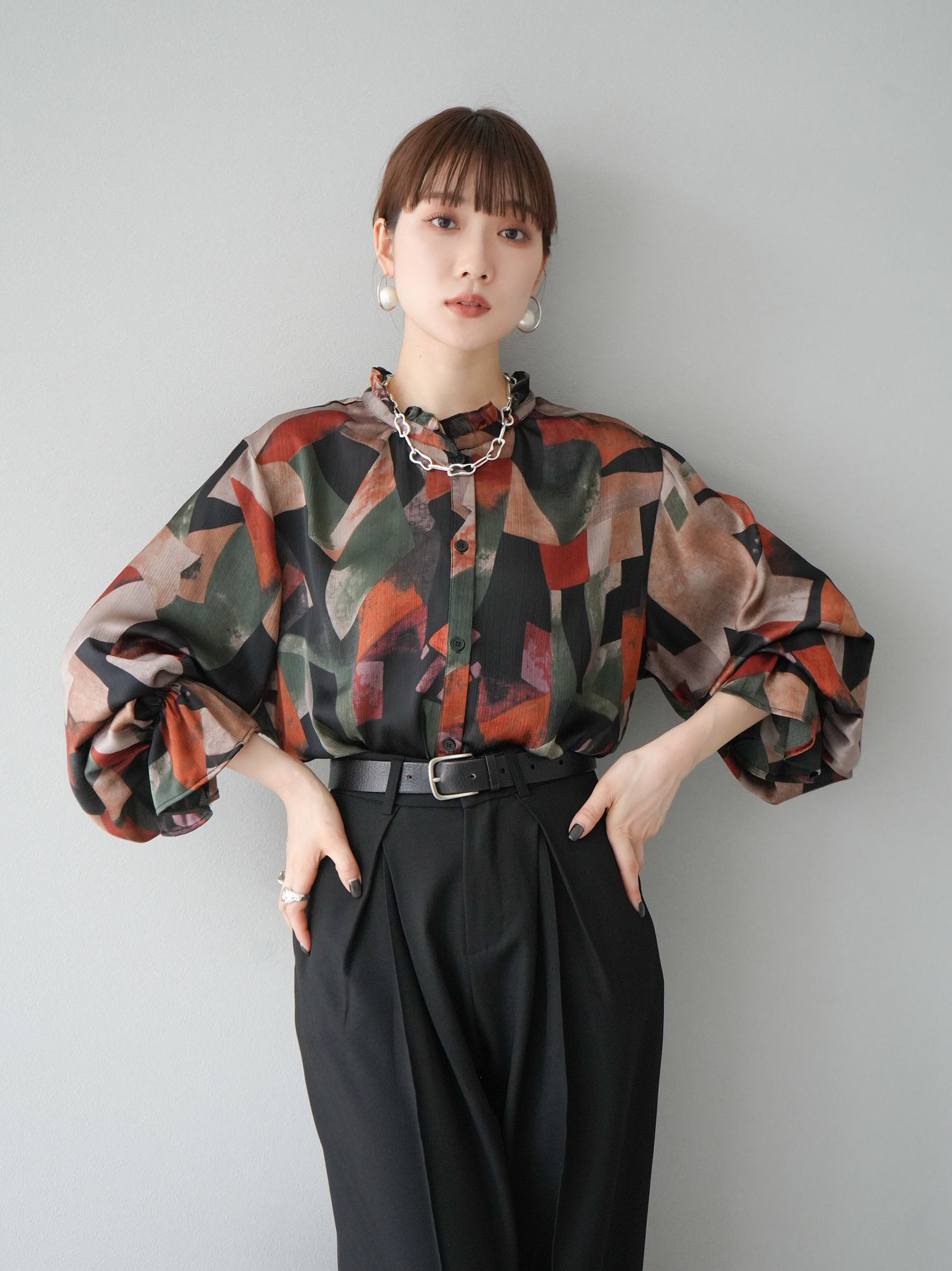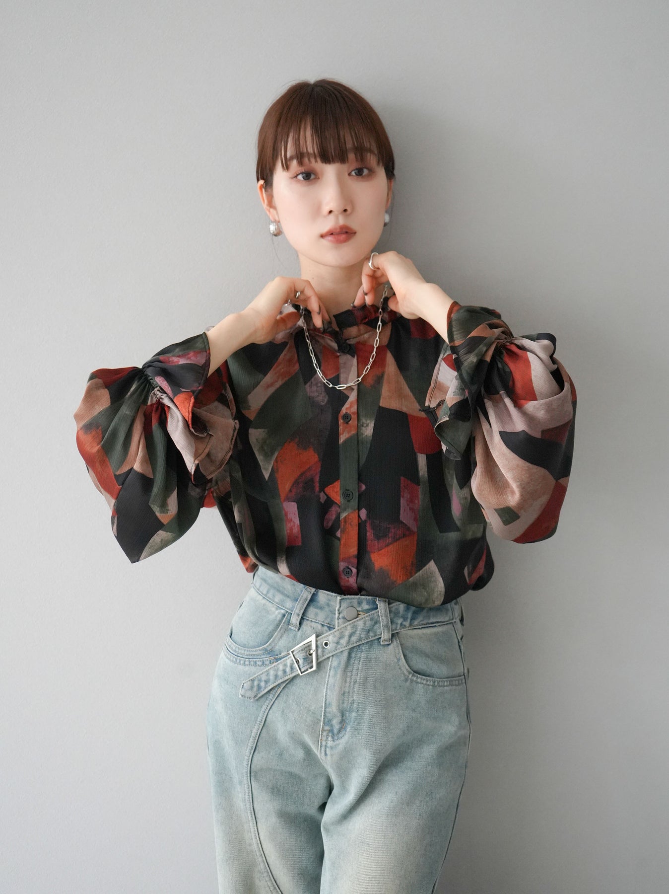 [SET]レトロプリントフリルブラウス+選べるアクセセット(2set)