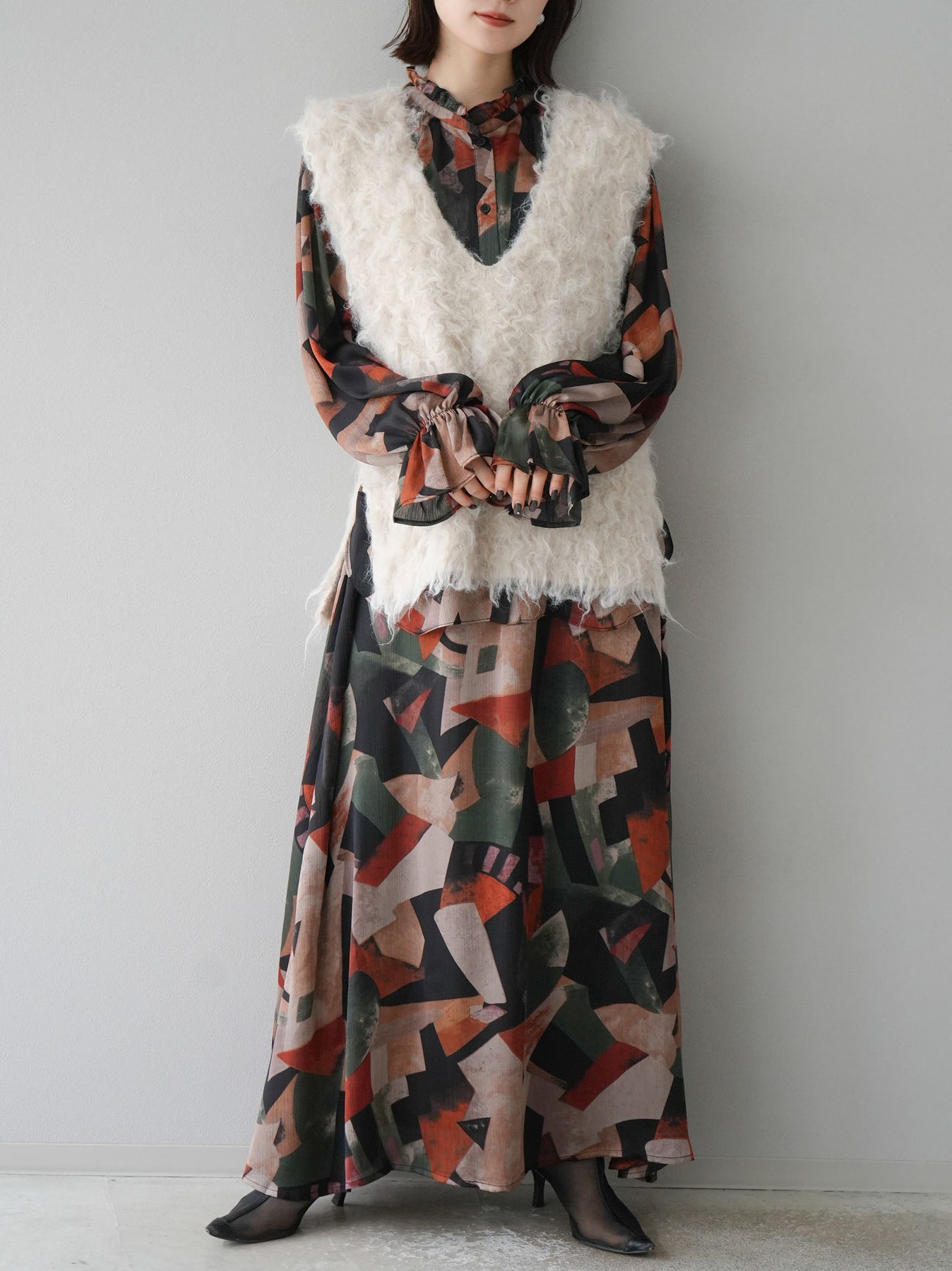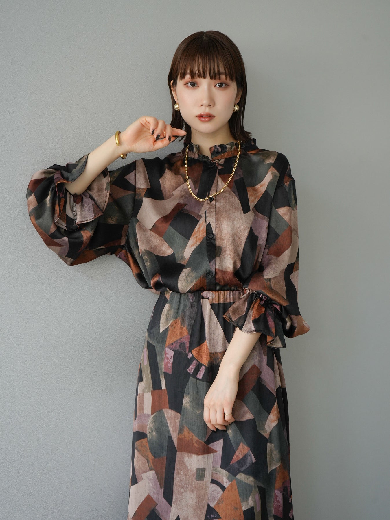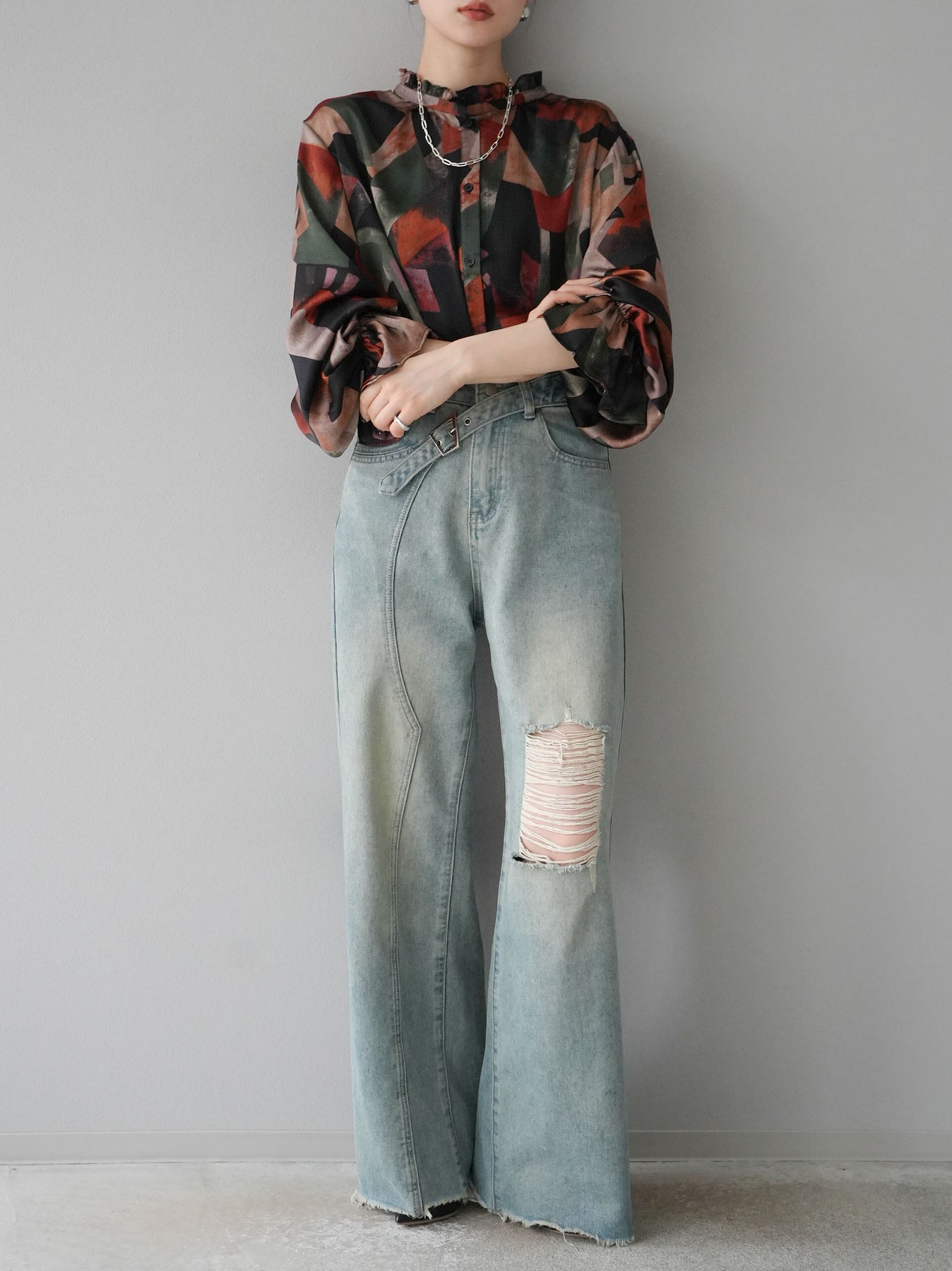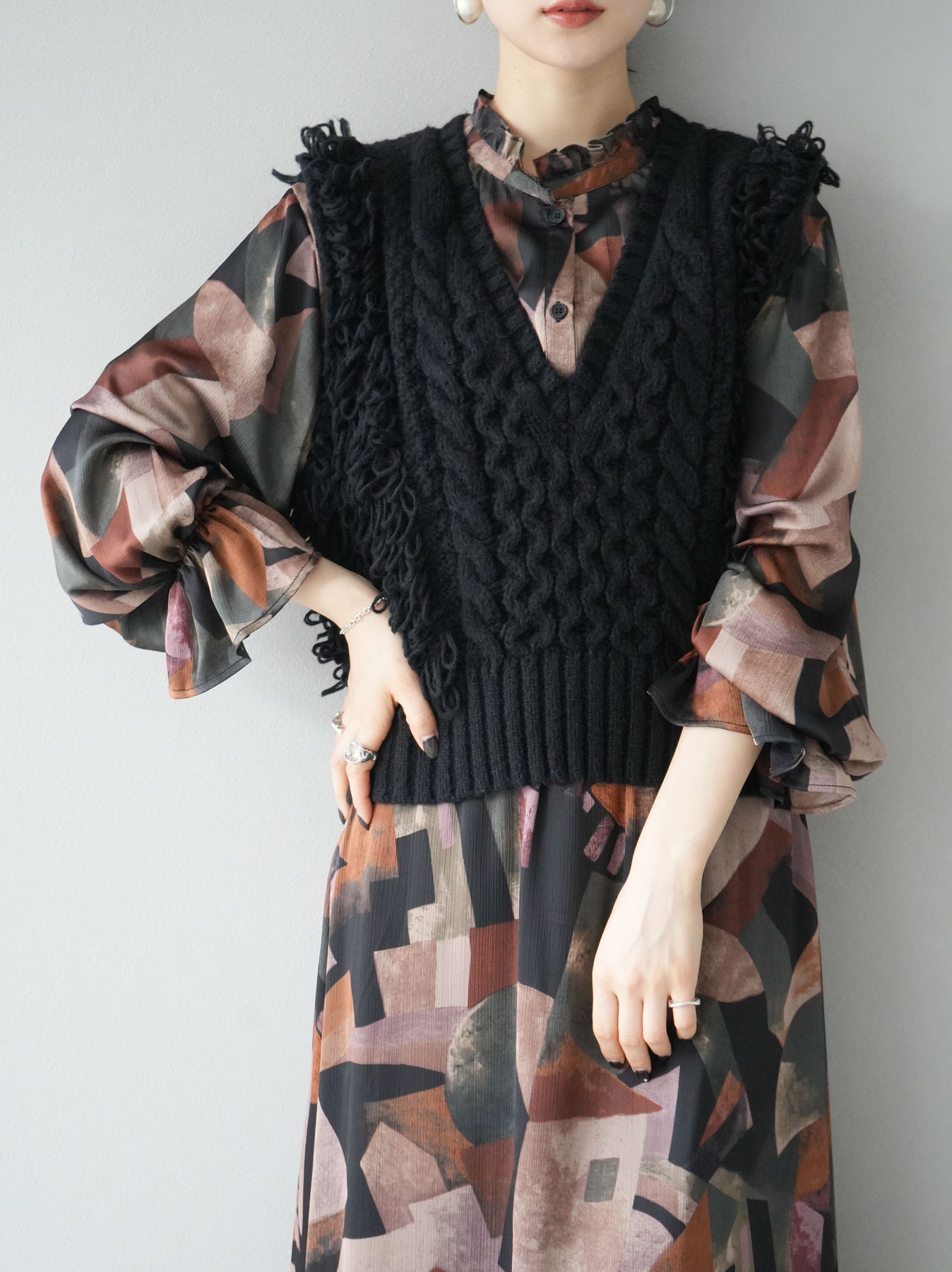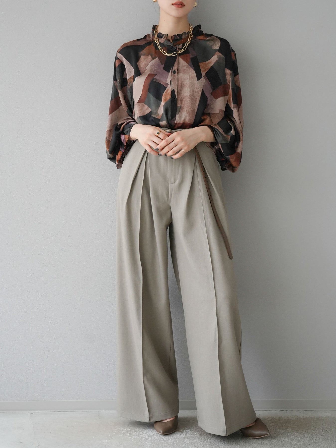 [SET]レトロプリントフリルブラウス+選べるアクセセット(2set)