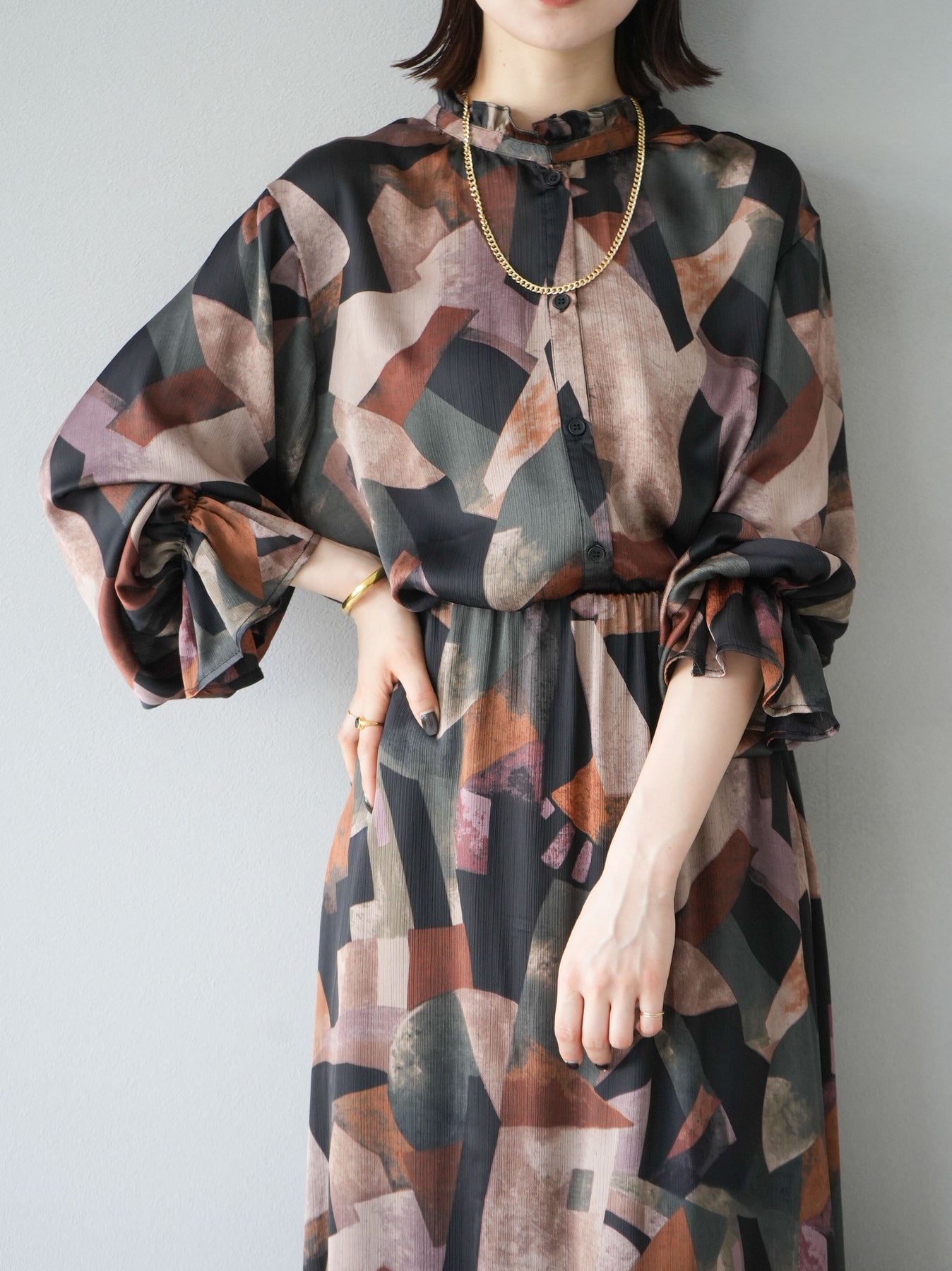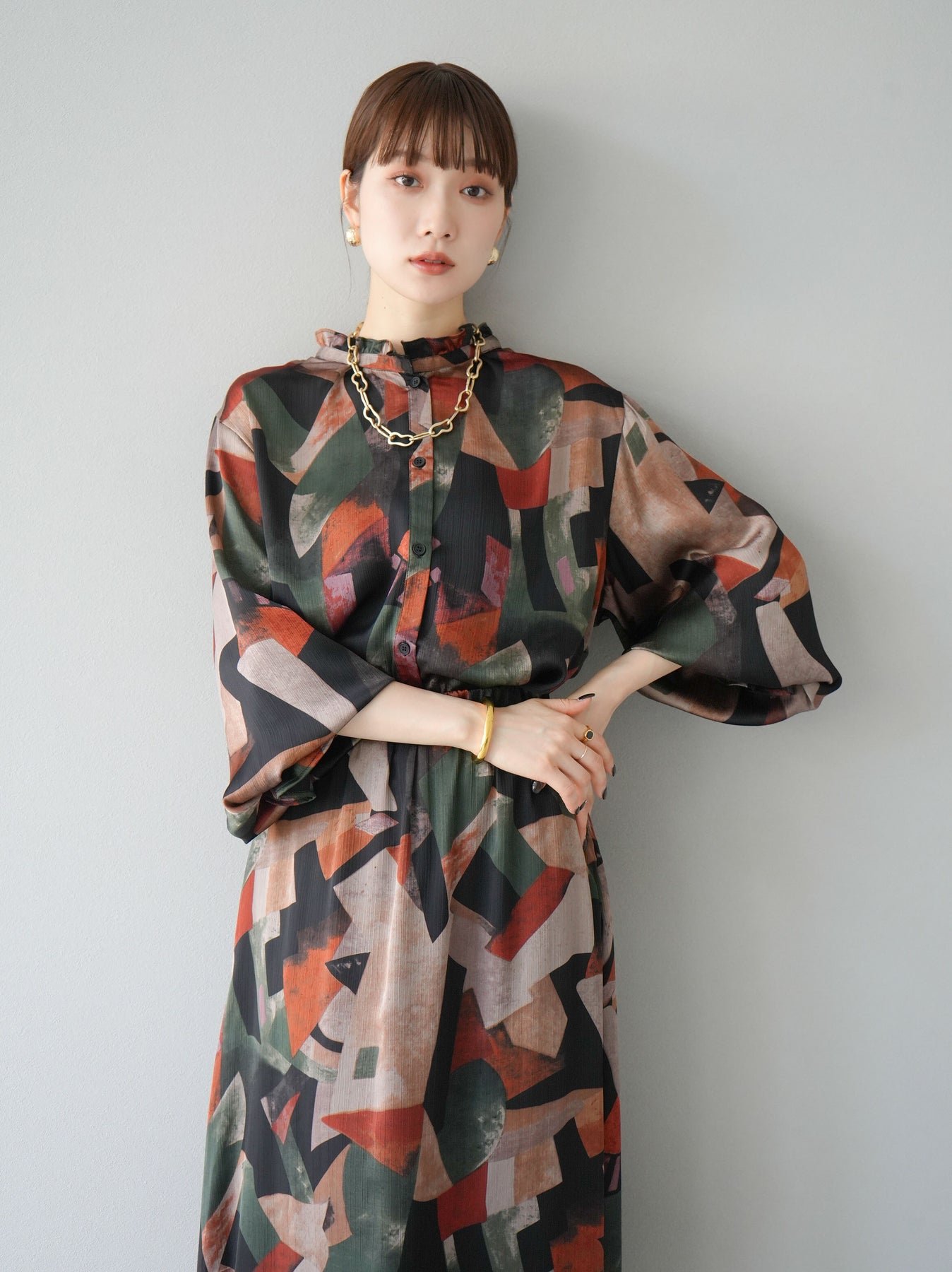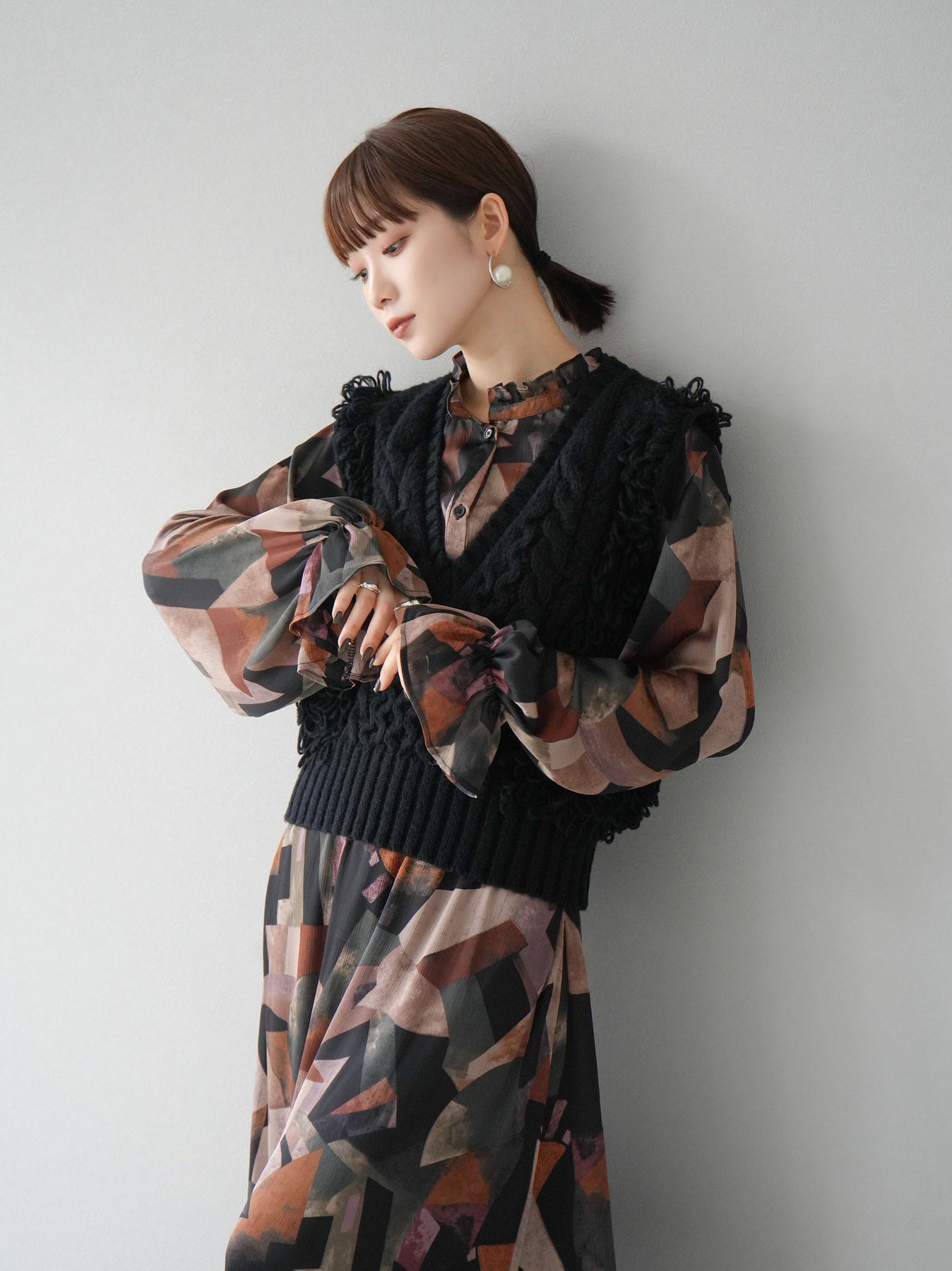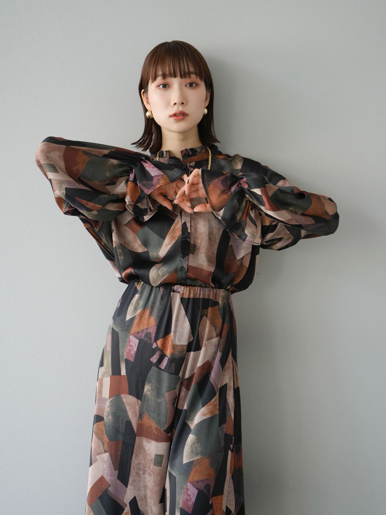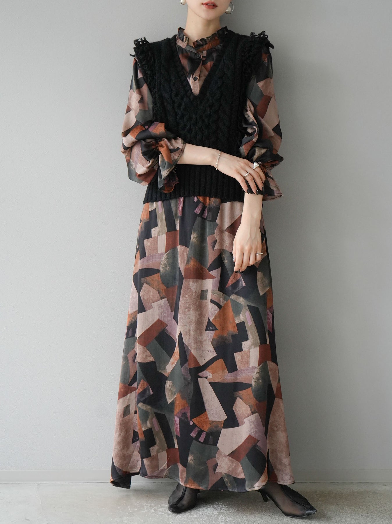 [SET]レトロプリントフリルブラウス+選べるアクセセット(2set)