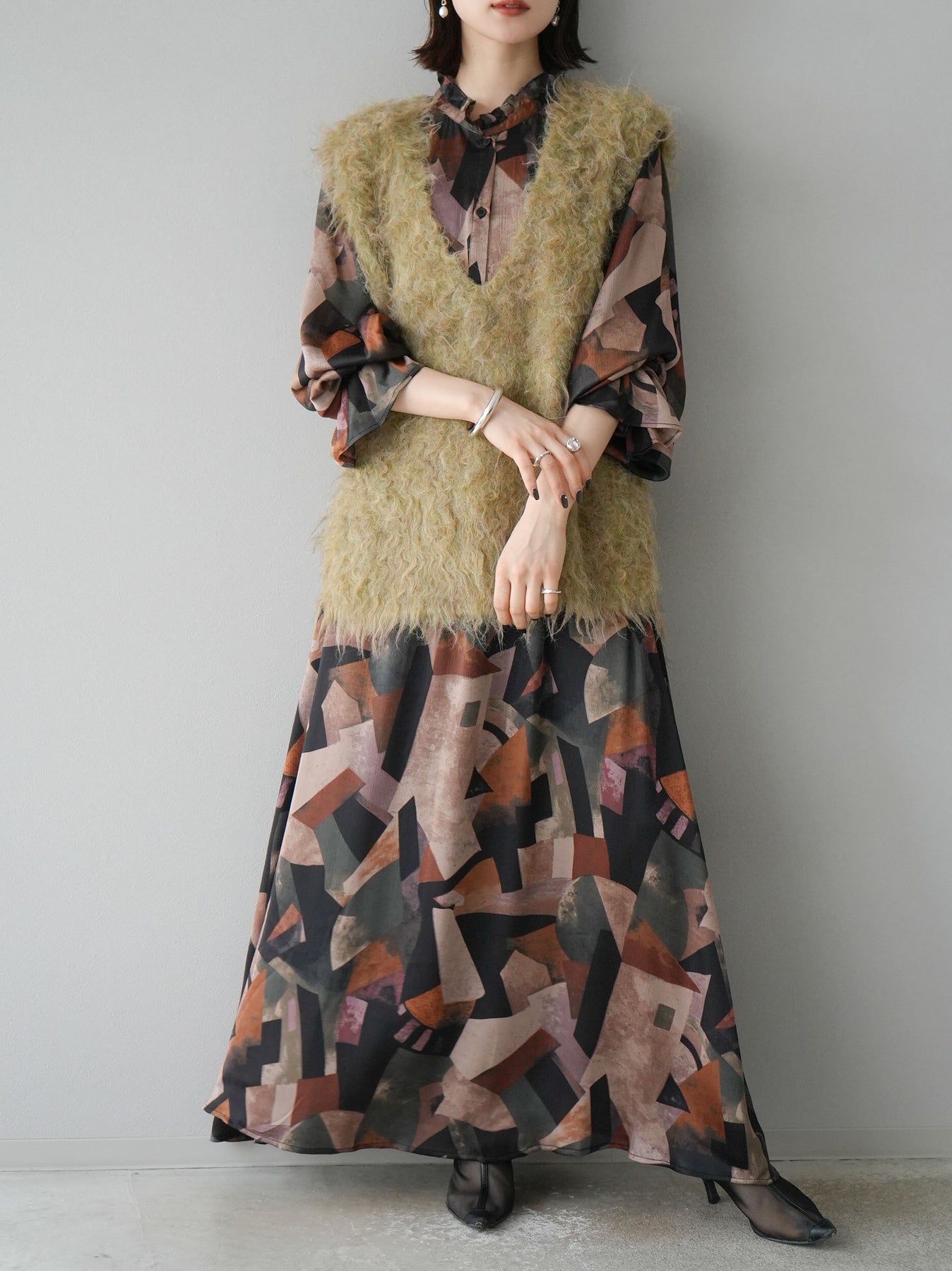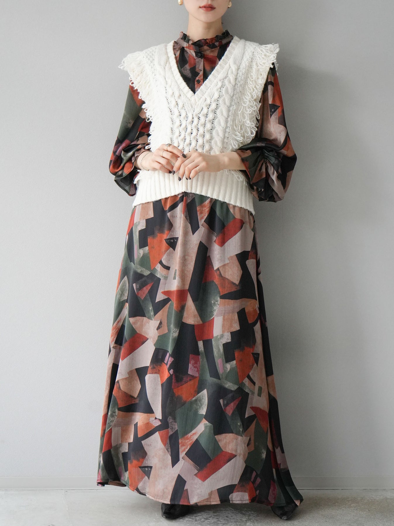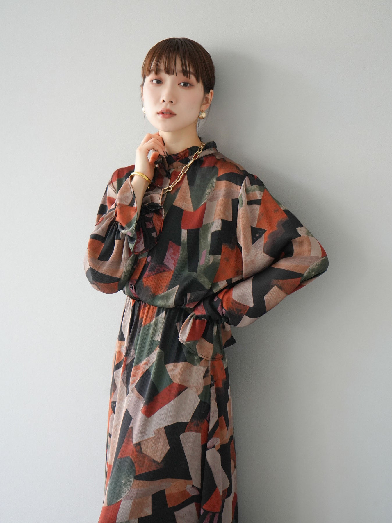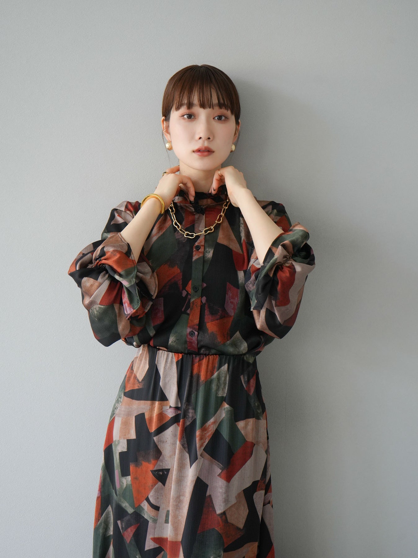 [SET]レトロプリントフリルブラウス+選べるアクセセット(2set)