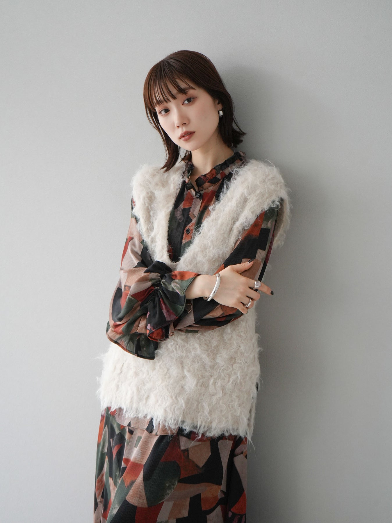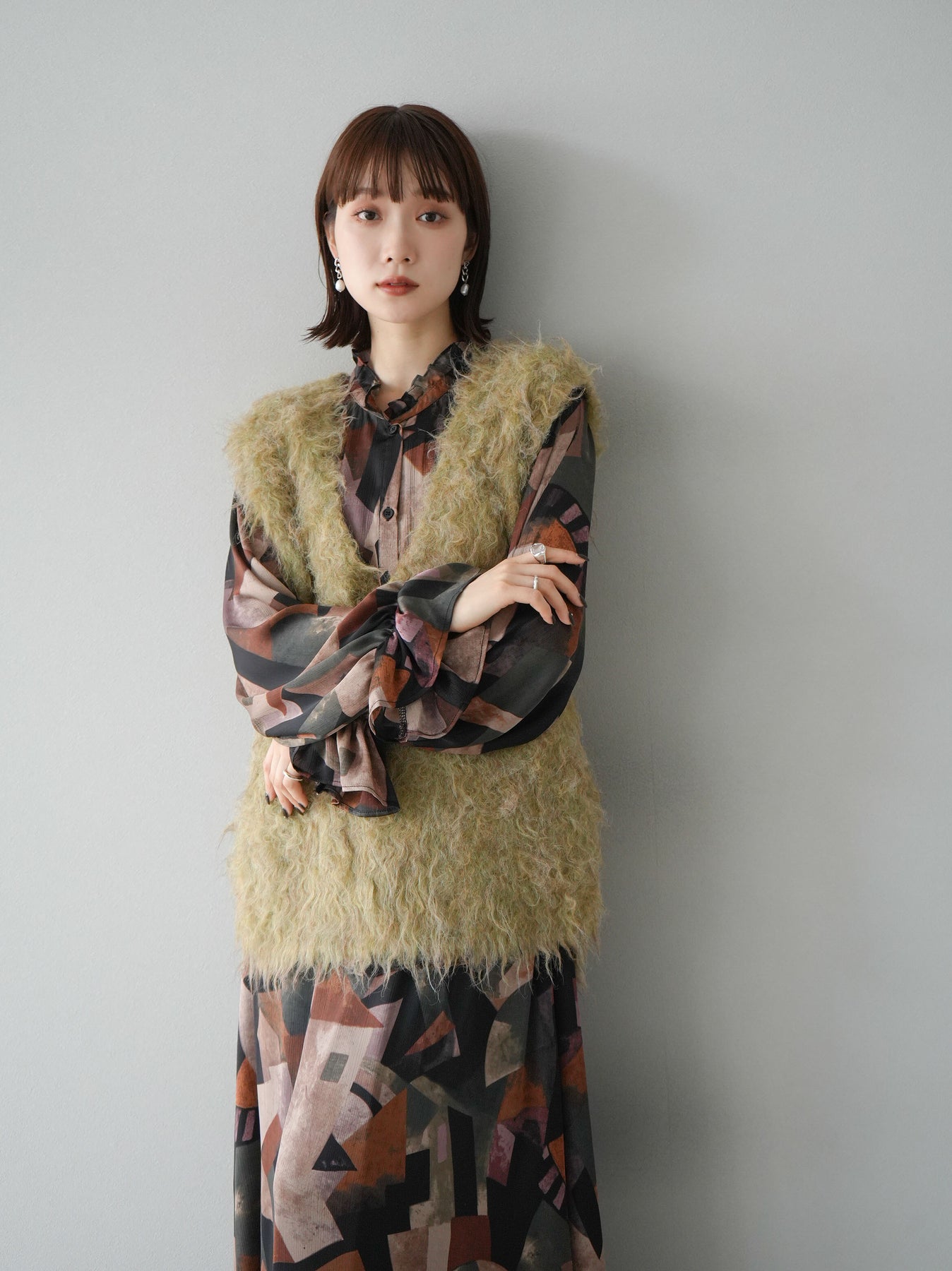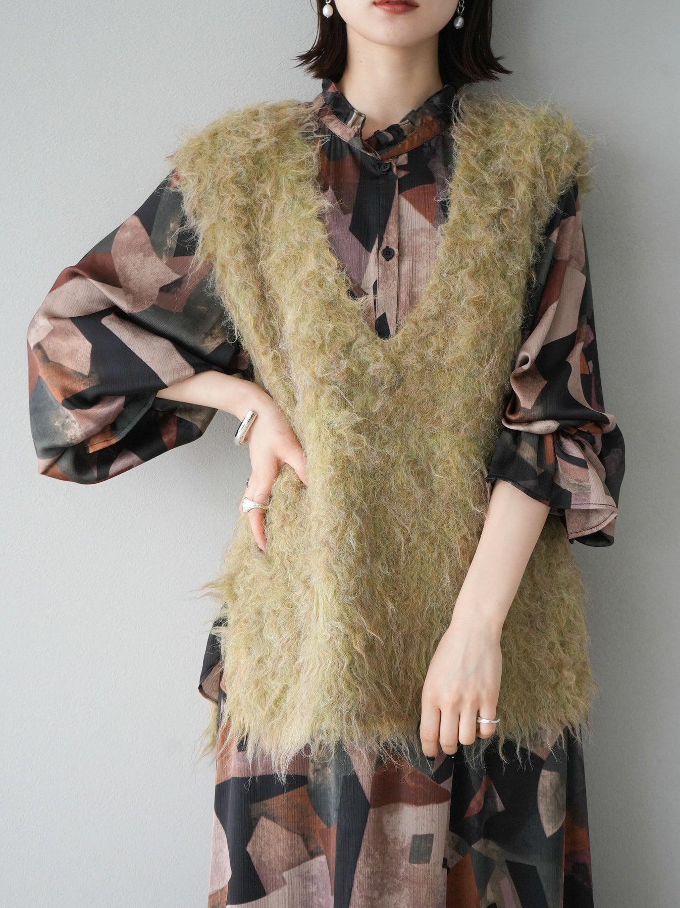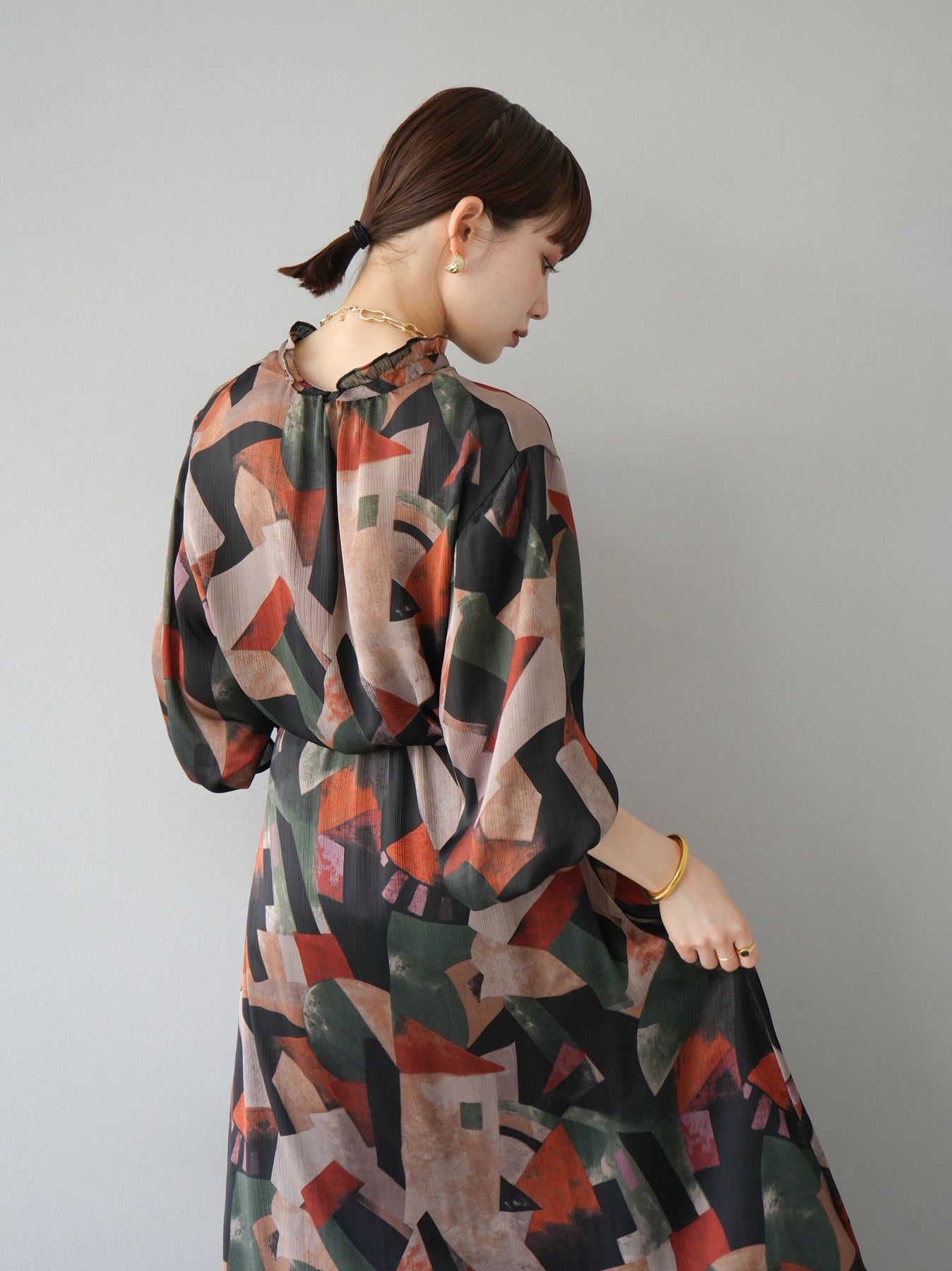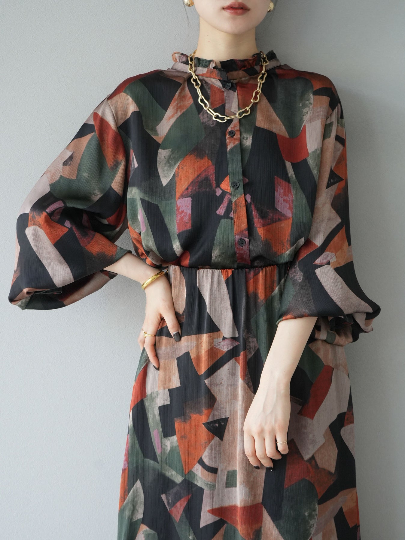 [SET]レトロプリントフリルブラウス+選べるアクセセット(2set)