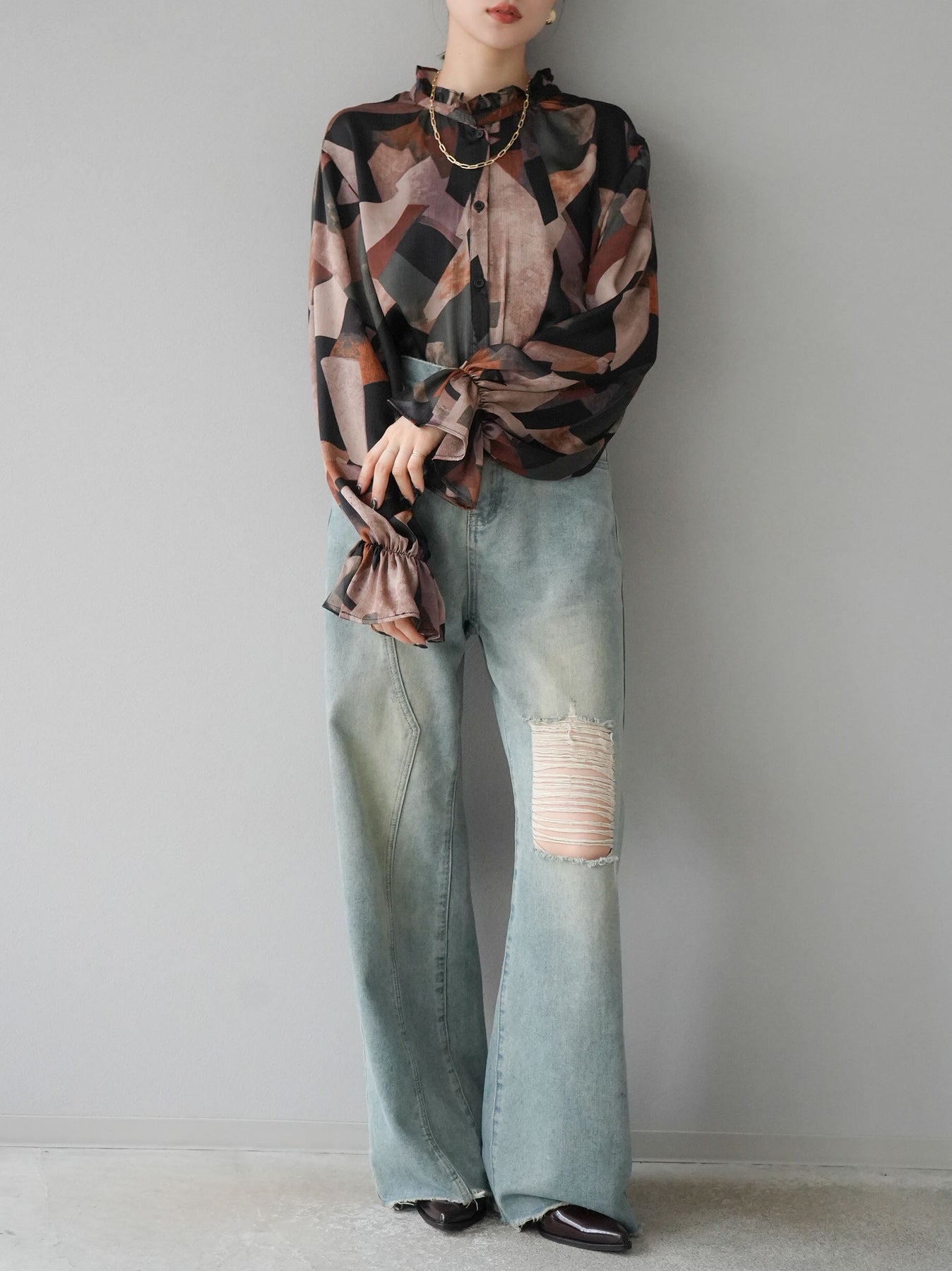 ◆ [予約]レトロプリントフリルブラウス