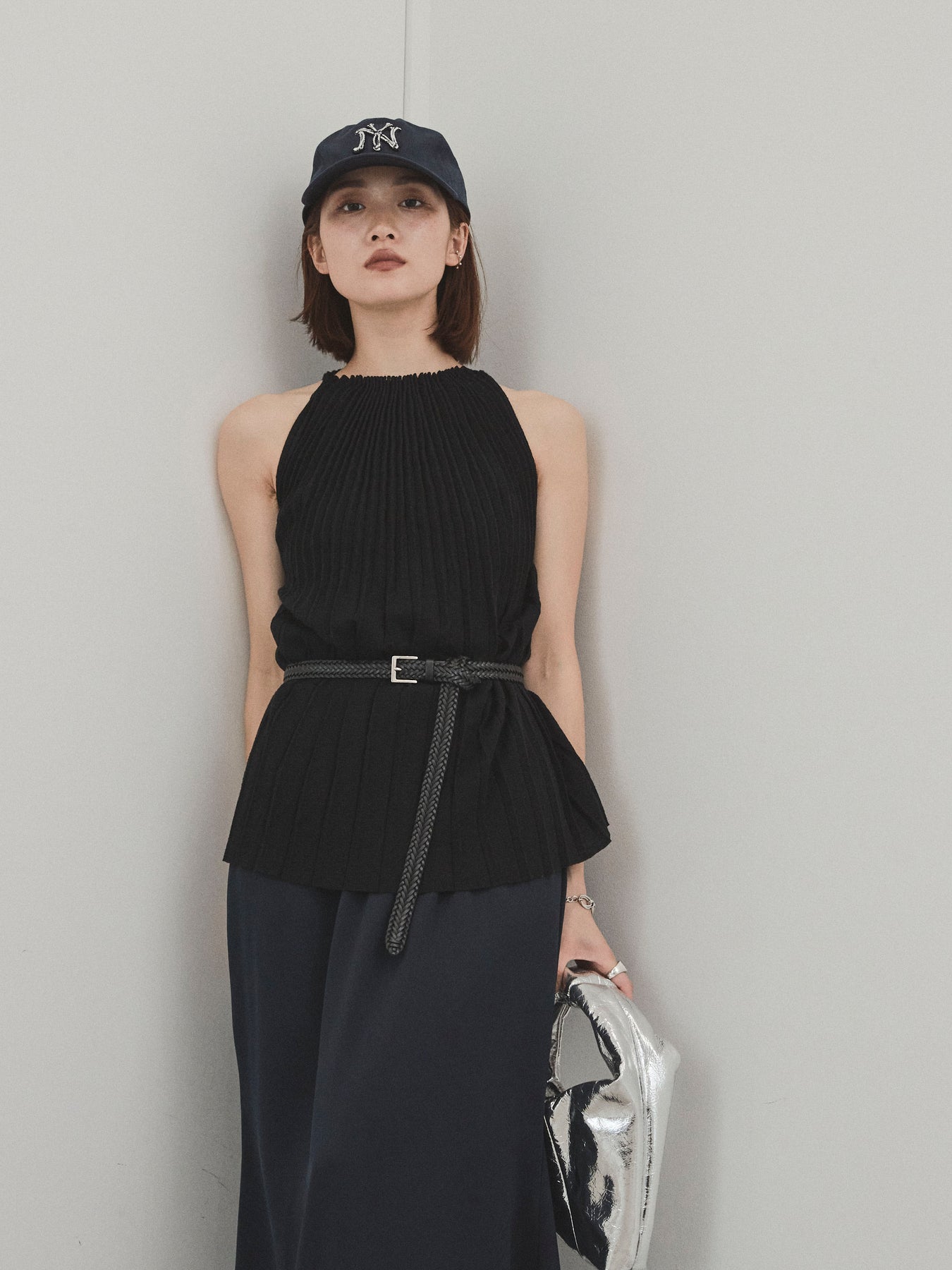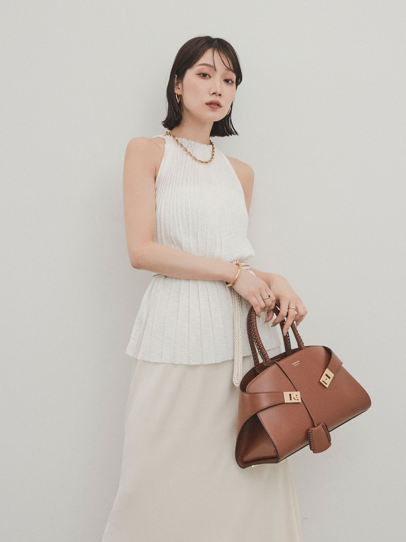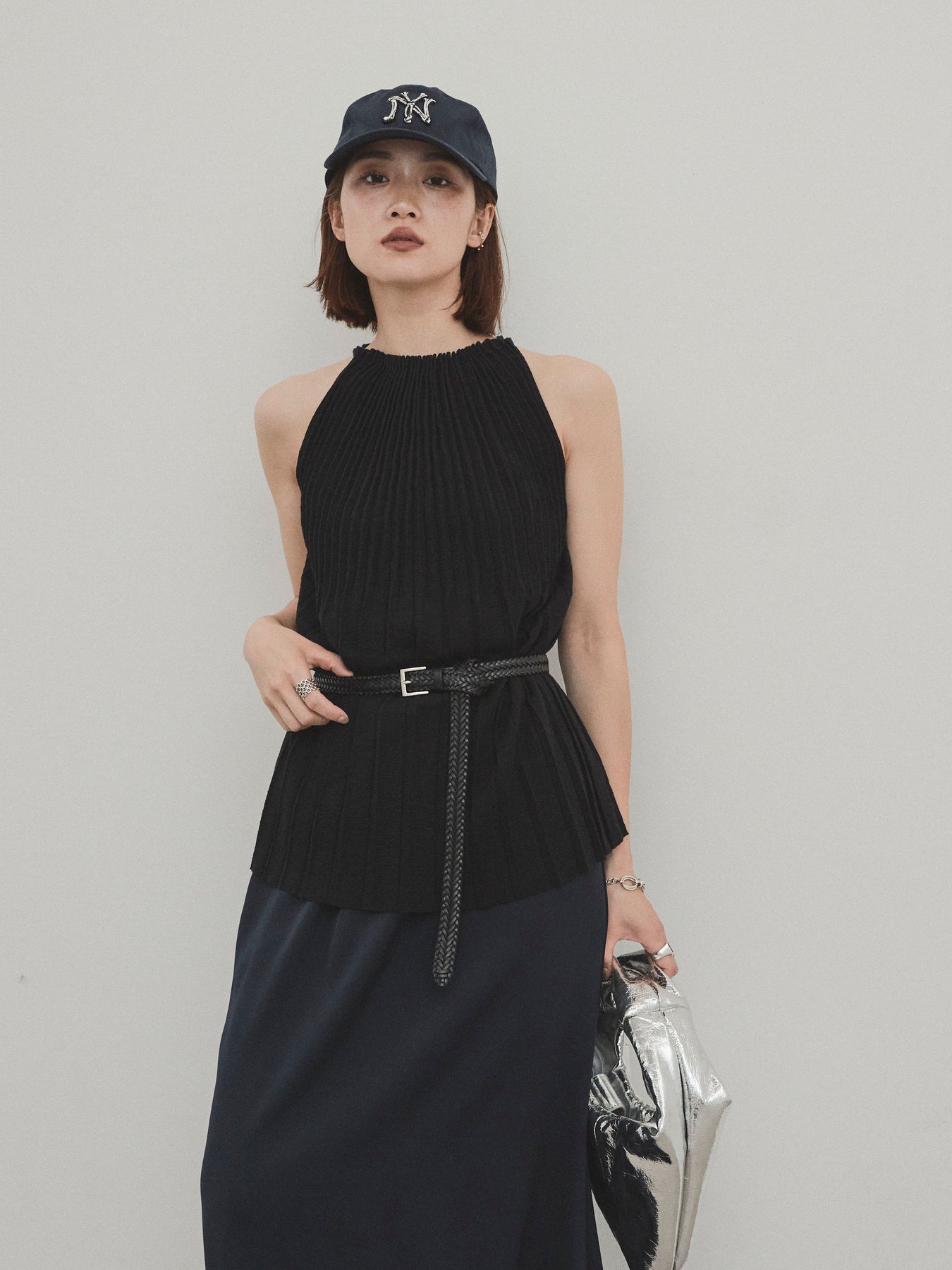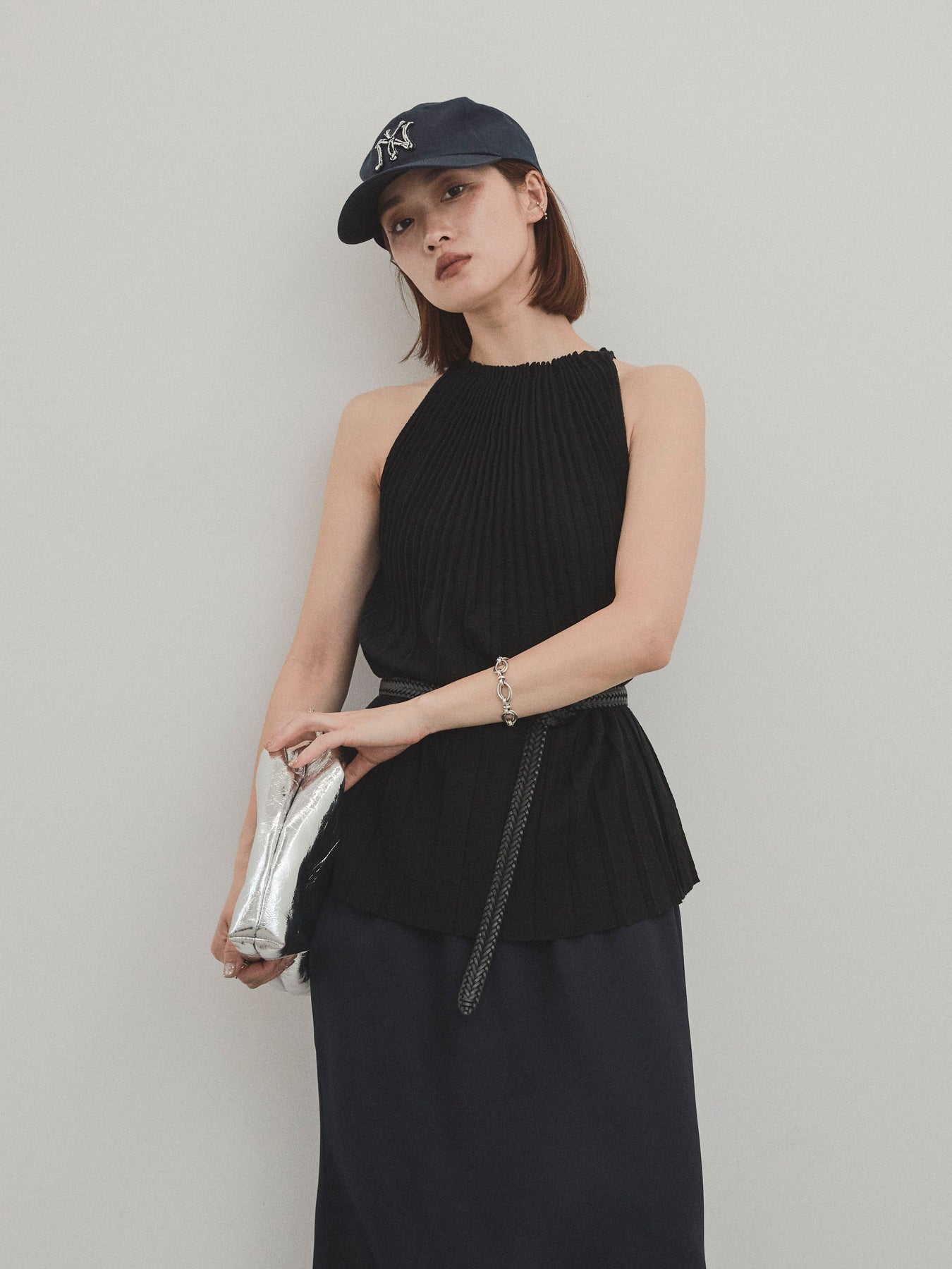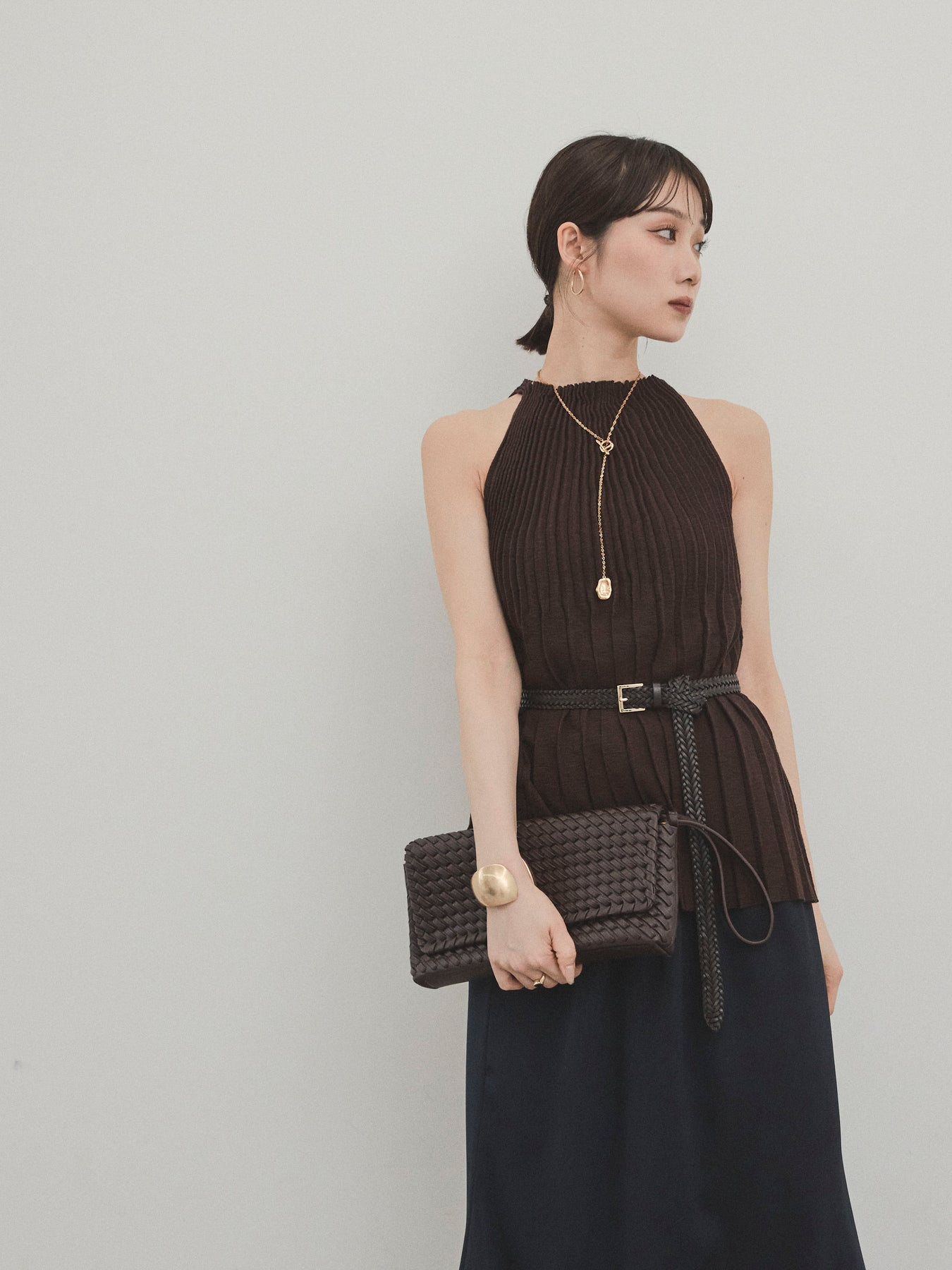 縦ラインが美しいプリーツ編みで仕立てた、大人の洗練を感じさせるニットキャミソール。 身体のラインを拾いすぎない絶妙なシルエットで、スタイルアップも叶える一枚です。 ややハイネック寄りのデザインと肩の露出を抑えた絶妙なアームホールのカットが、ヘルシーながらも上品な印象に。 さらりとした肌あたりのニット素材で、暑い季節でも快適に着用できます。 一枚での着用はもちろん、ジャケットやシャツのインナーとしても活躍する万能トップス。 カジュアルからきれいめまで、幅広いコーディネートに対応できるアイテムです。