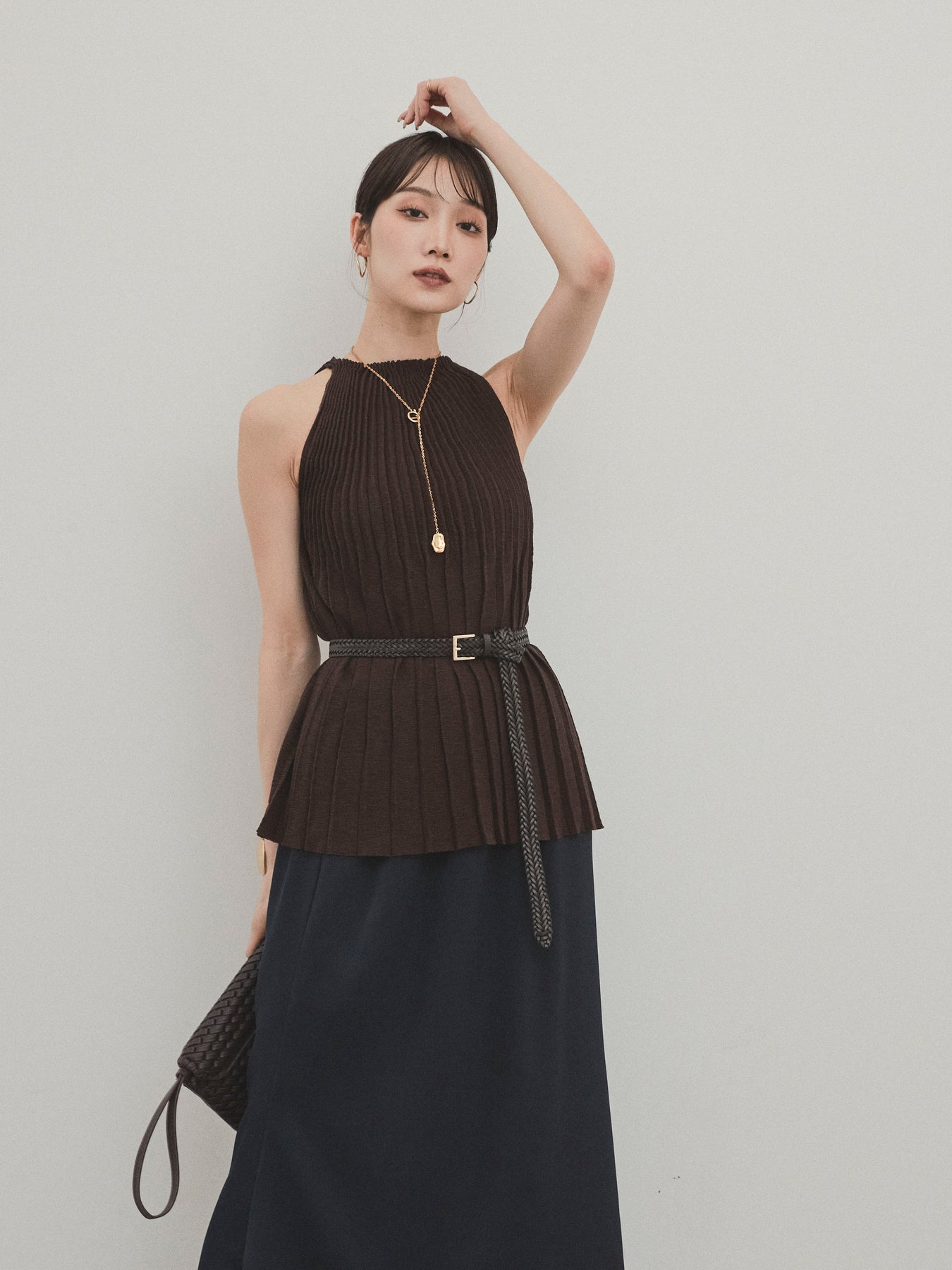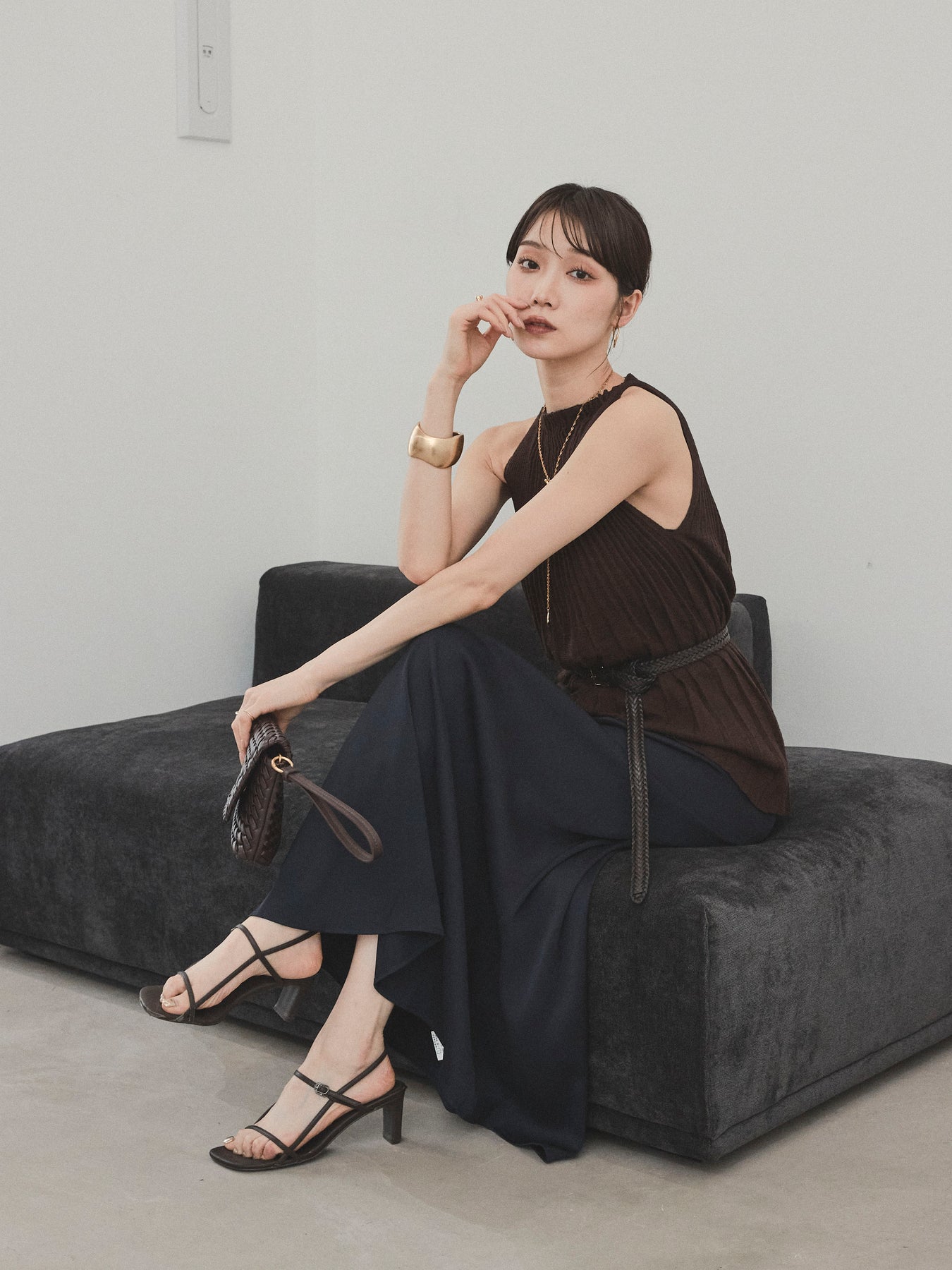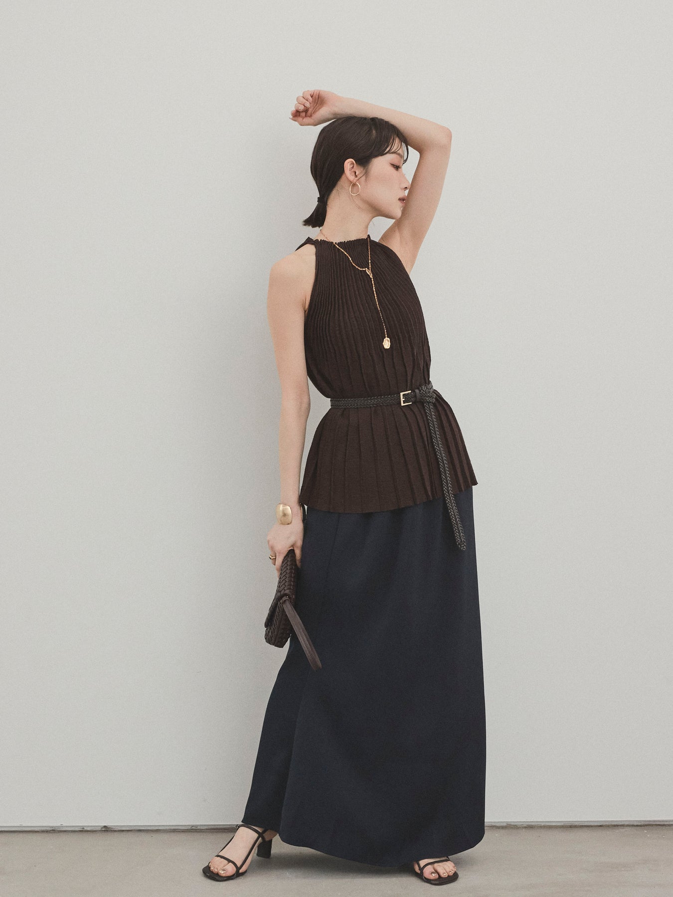 [SET]プリーツニットキャミソール+リラックスナロースカート(2set)
