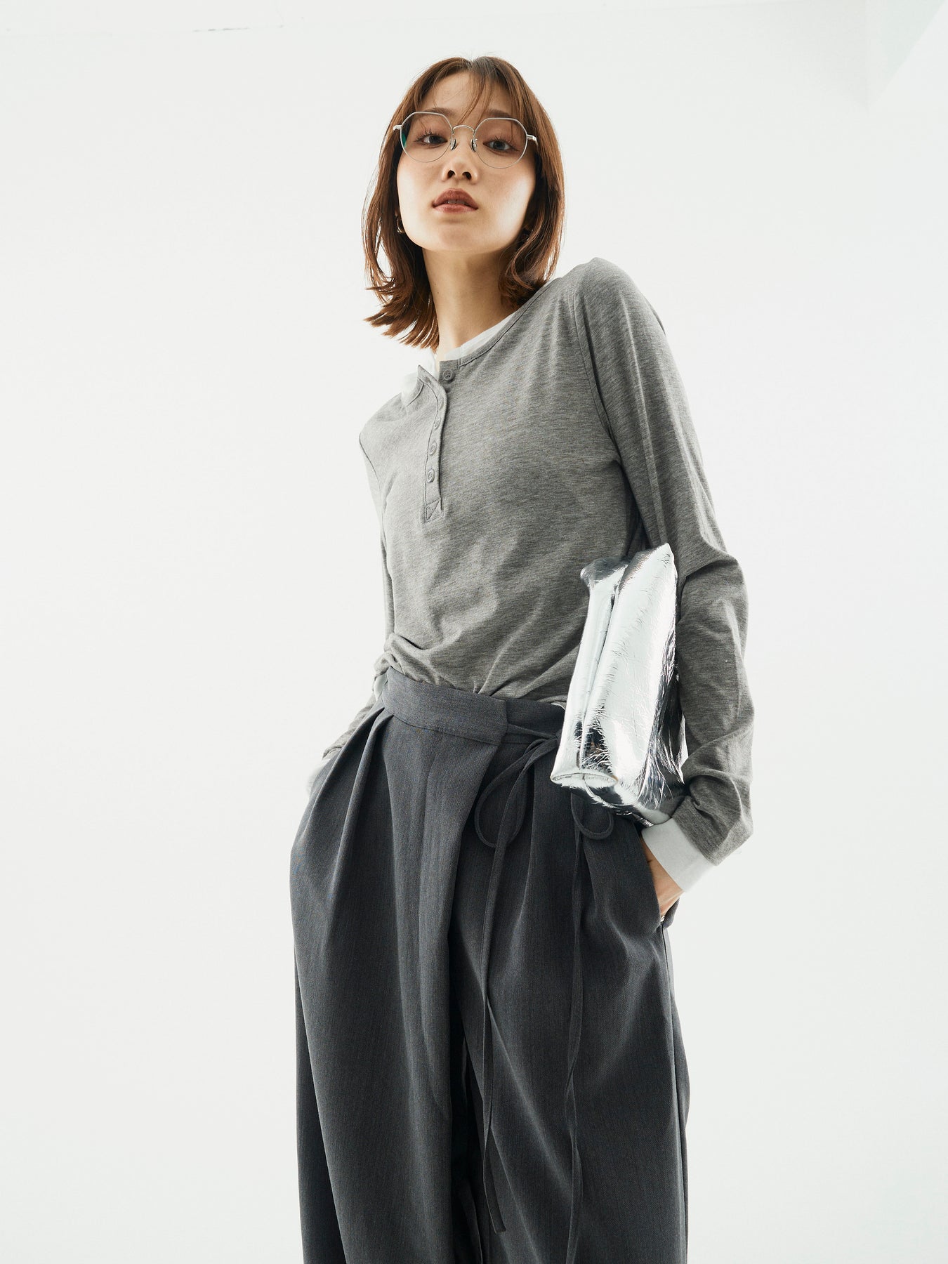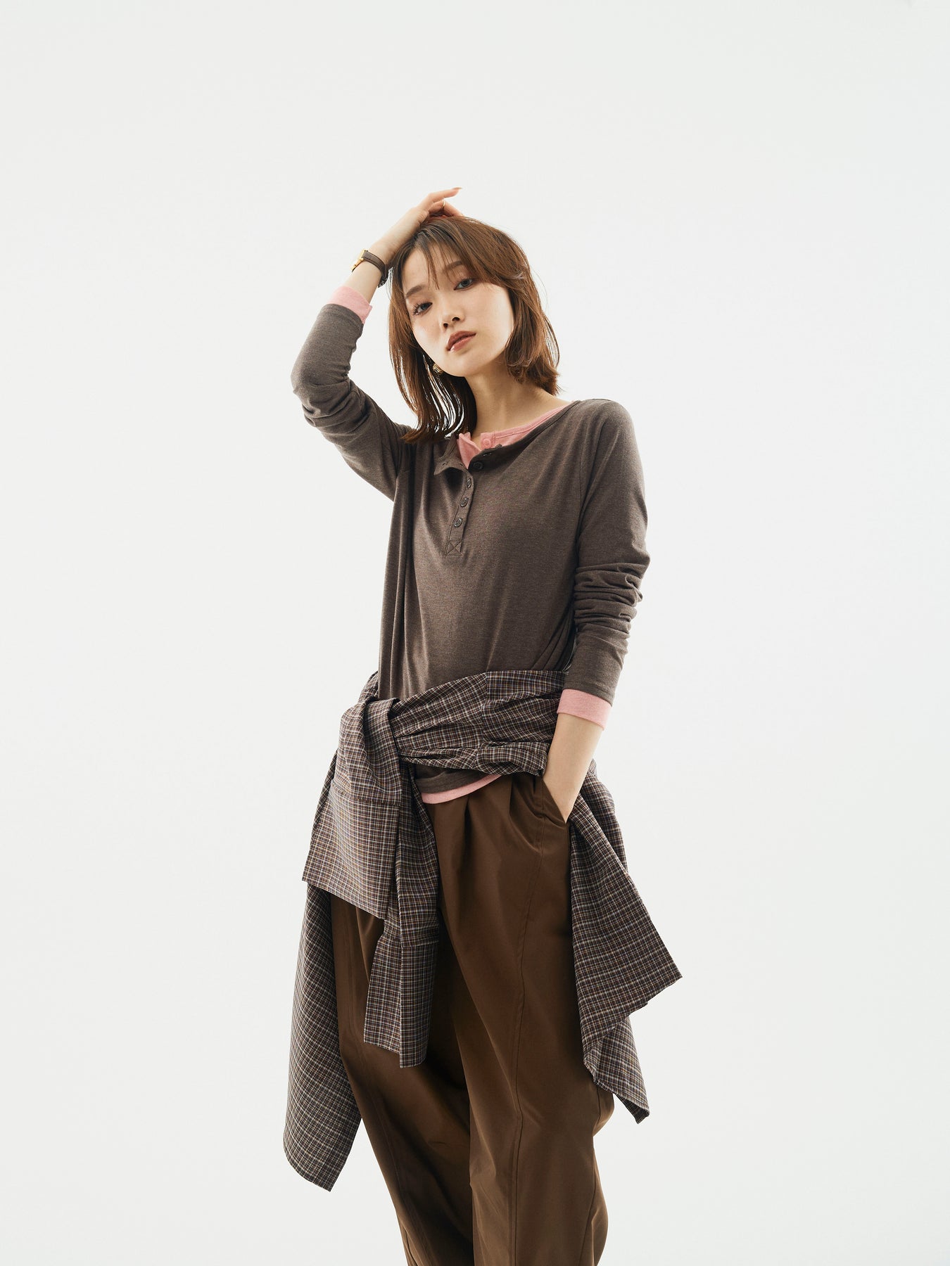 [予約]配色レイヤードヘンリーネックトップス + [予約]配色レイヤードヘンリーネックトップス