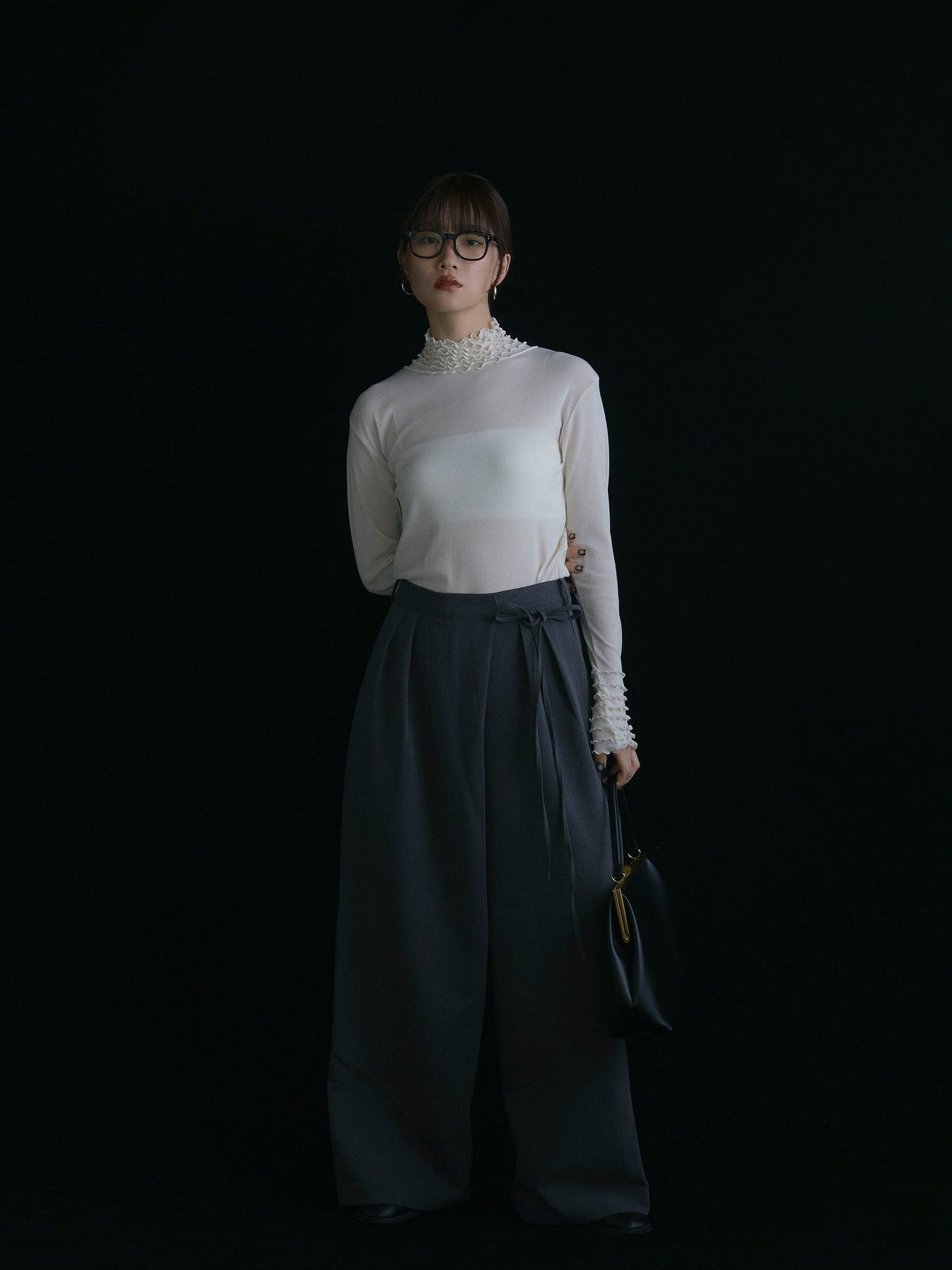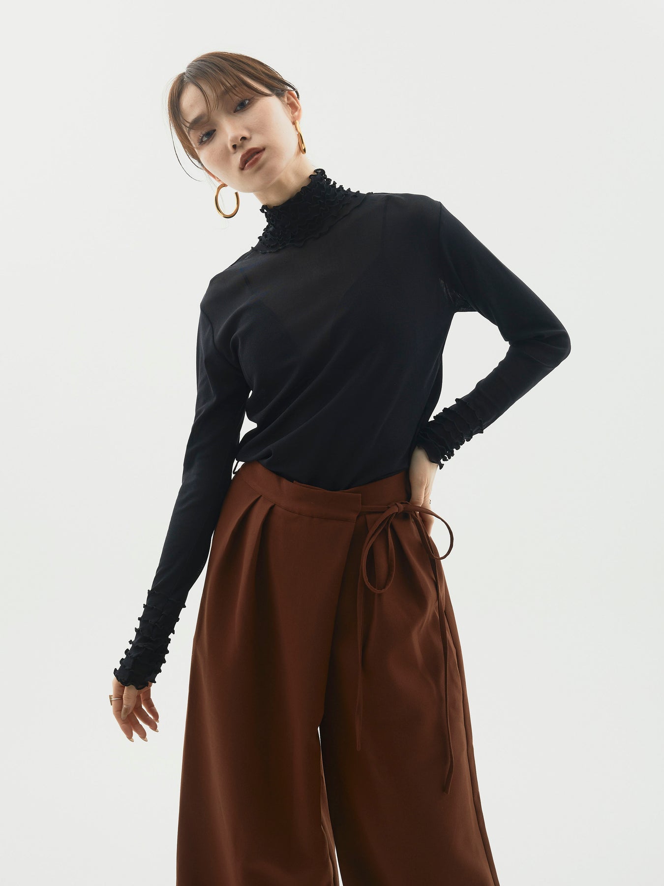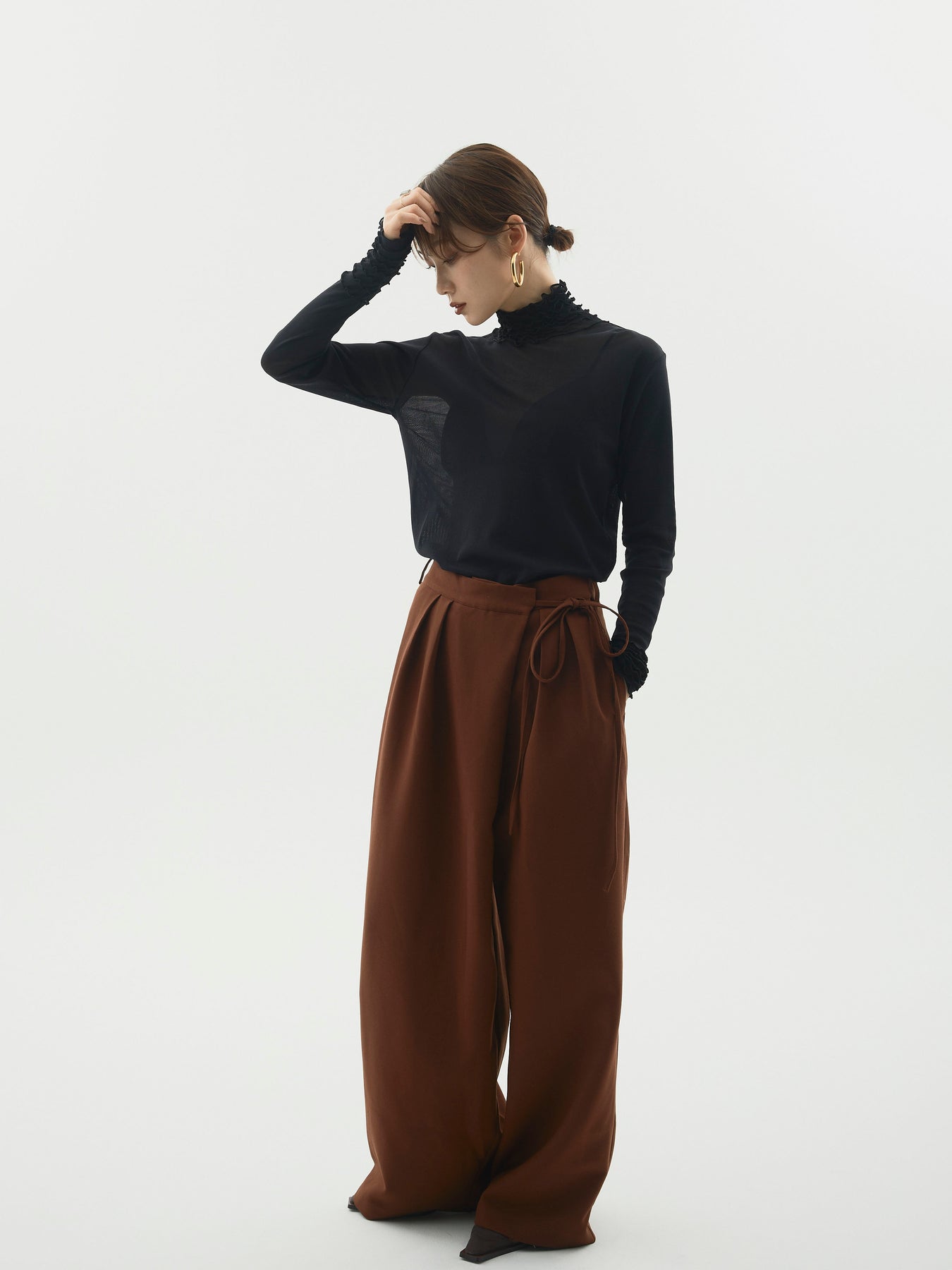 【Allure】[SET]シアーフリルメロートップス+ラップデザインタックワイドパンツ(2set)