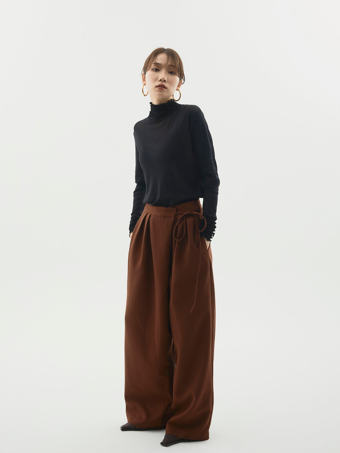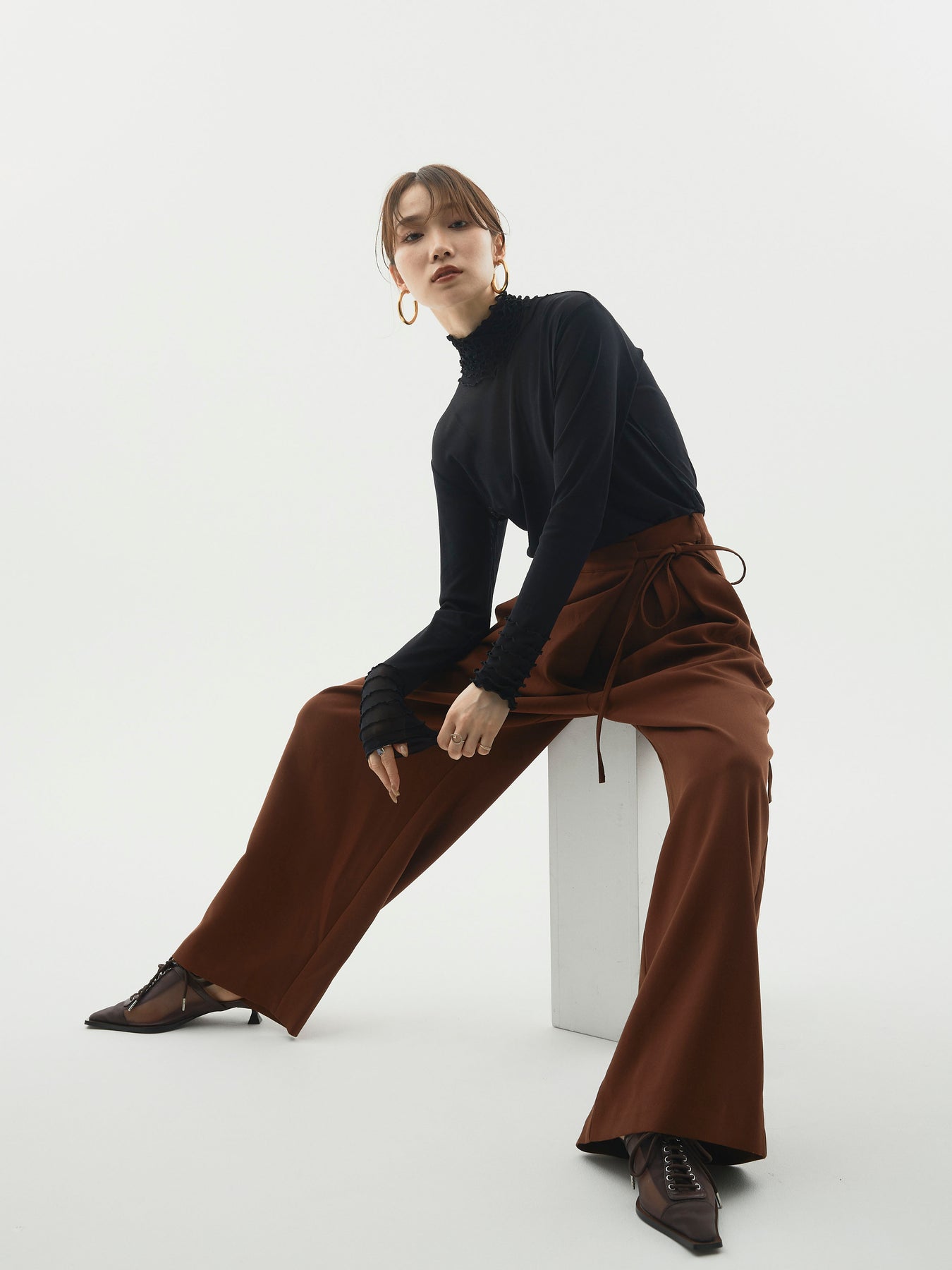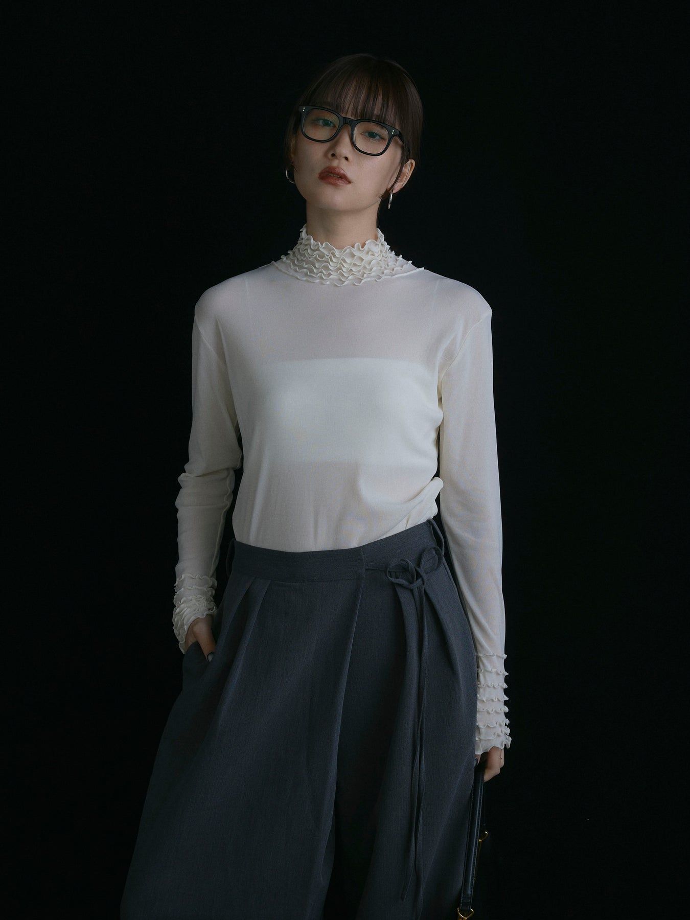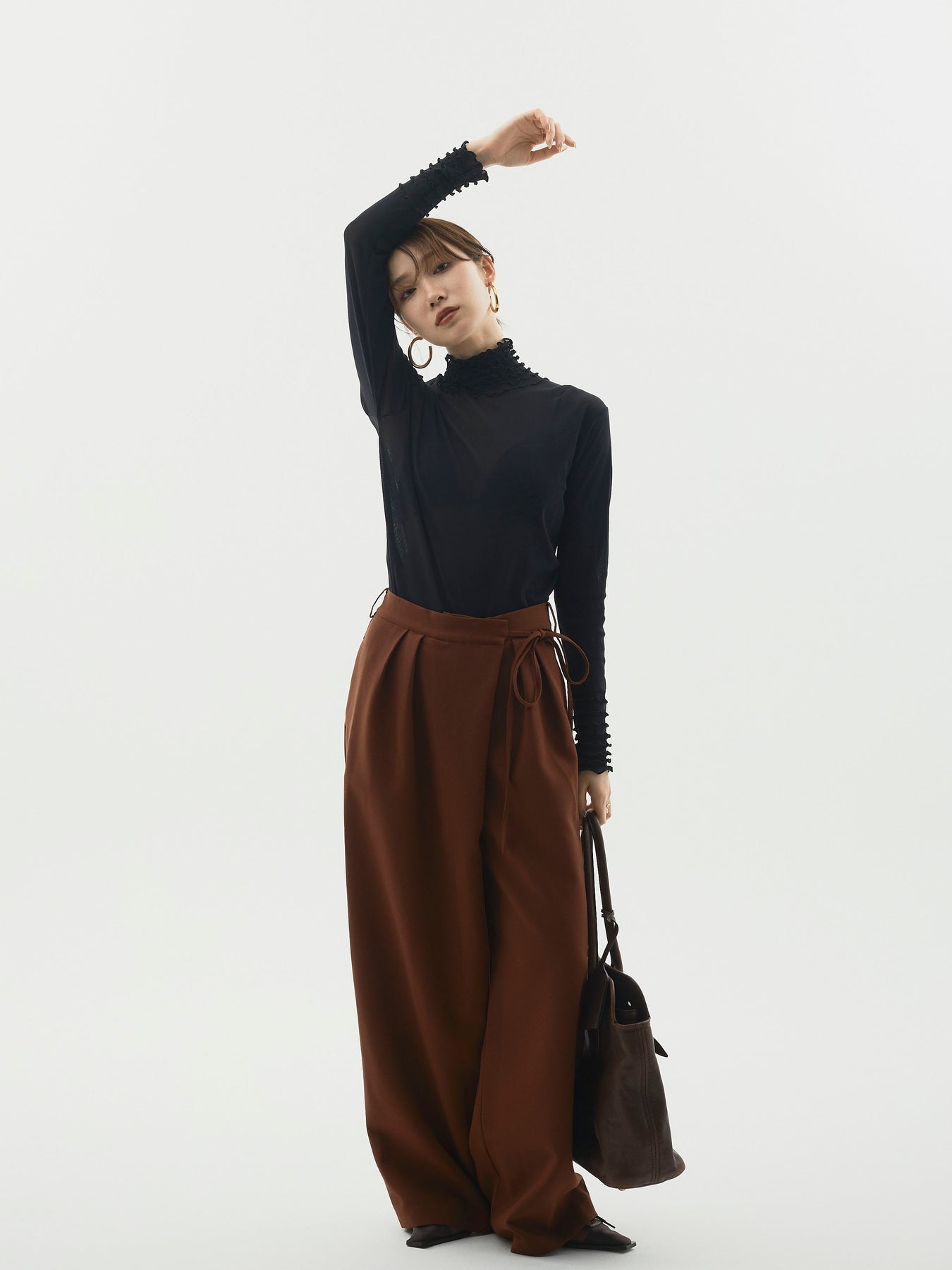 【Allure】[SET]シアーフリルメロートップス+ラップデザインタックワイドパンツ(2set)