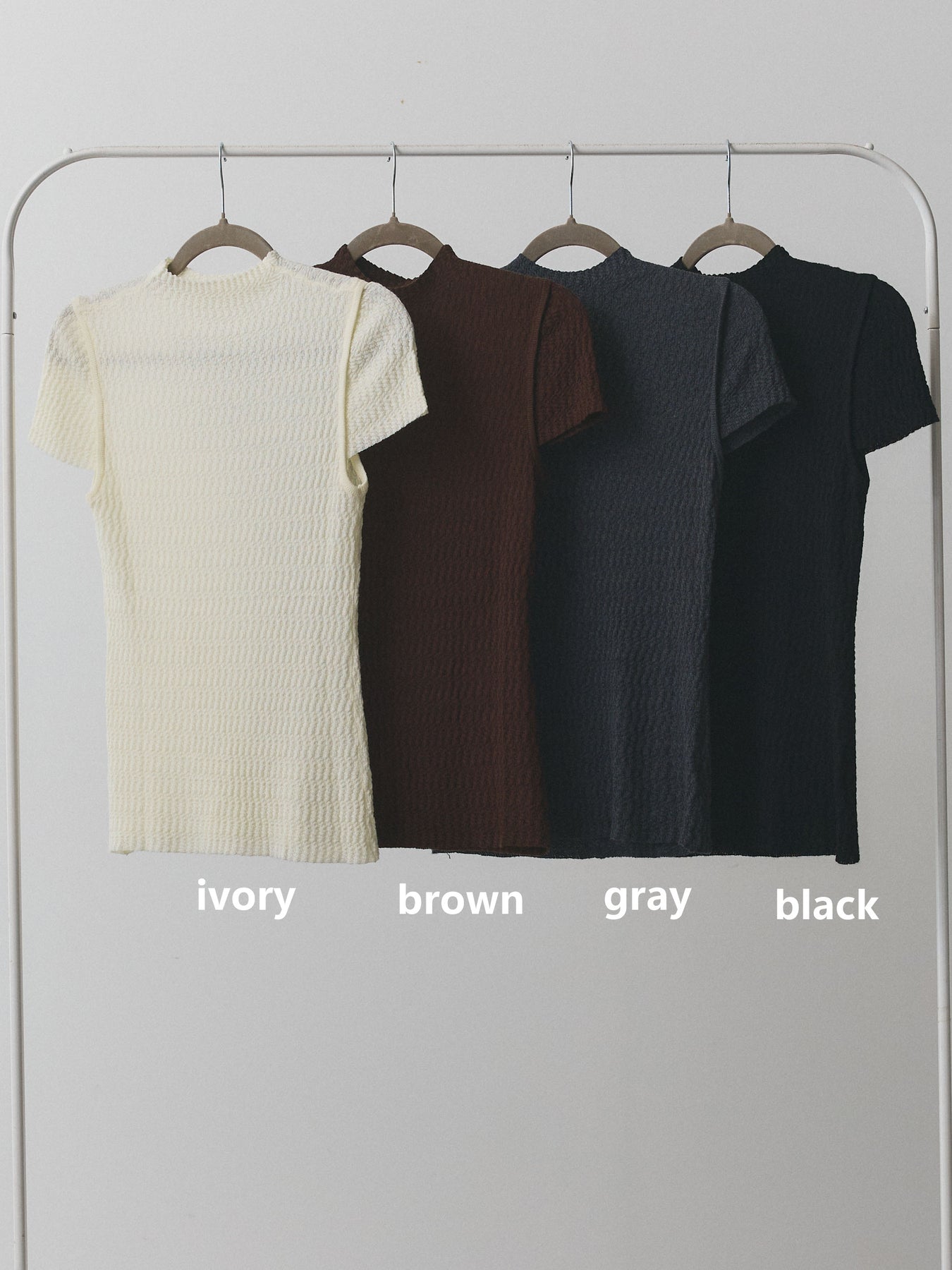 立体感のあるリブ編みで仕立てたハーフスリーブのニットトップス。すっきりとしたシルエットで着こなしやすく、シンプルながらも表情のある素材感がスタイリングに奥行きをプラスします。伸縮性があり快適な着心地で、一枚で着るのはもちろん、ジャケットやカーディガンのインナーとしても活躍。シーズンを通してデイリーに取り入れやすい万能アイテムです。 ※ボトムス、キャミソール(インナー)以外の商品は一律でインナーは付属していません。