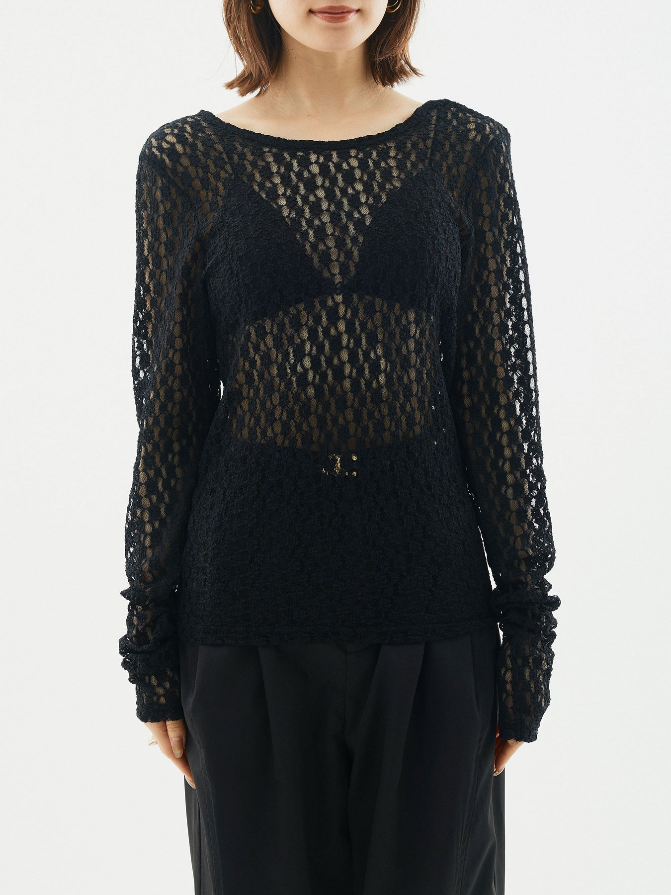 [予約]バックラウンドレーストップス/ブラック