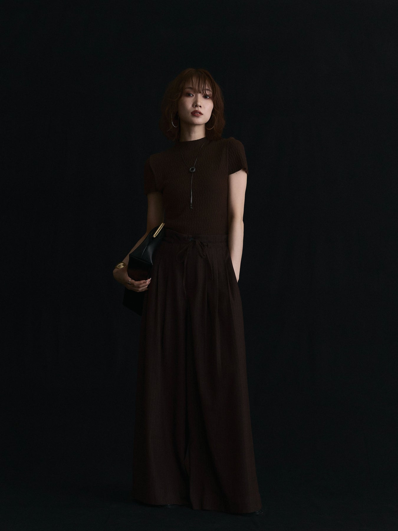 立体感のあるリブ編みで仕立てたハーフスリーブのニットトップス。すっきりとしたシルエットで着こなしやすく、シンプルながらも表情のある素材感がスタイリングに奥行きをプラスします。伸縮性があり快適な着心地で、一枚で着るのはもちろん、ジャケットやカーディガンのインナーとしても活躍。シーズンを通してデイリーに取り入れやすい万能アイテムです。 ※ボトムス、キャミソール(インナー)以外の商品は一律でインナーは付属していません。